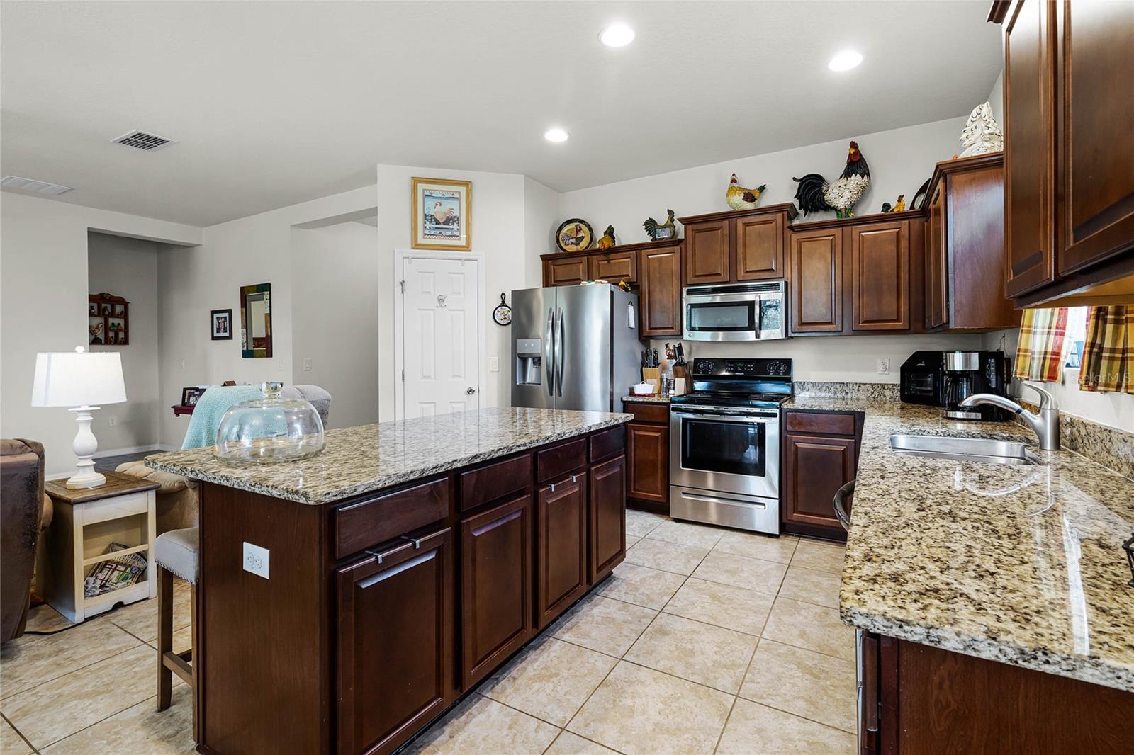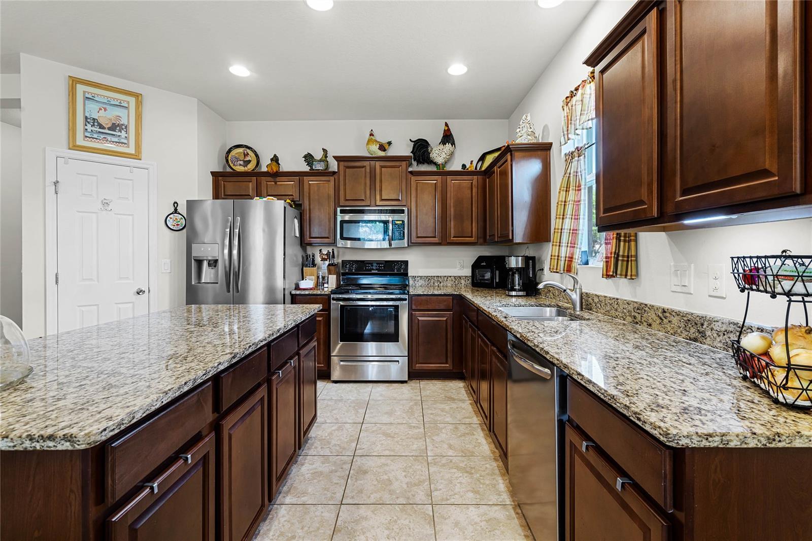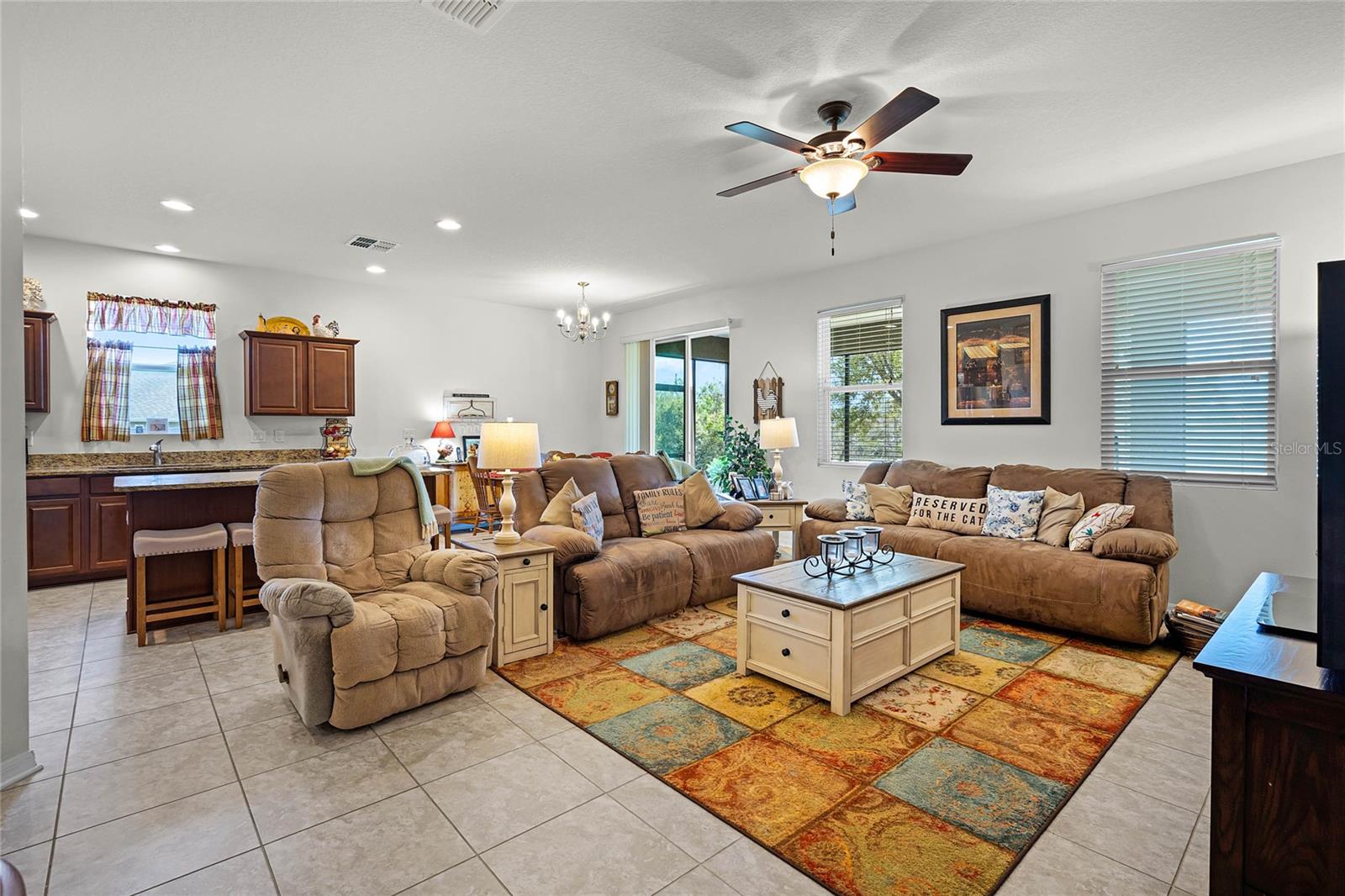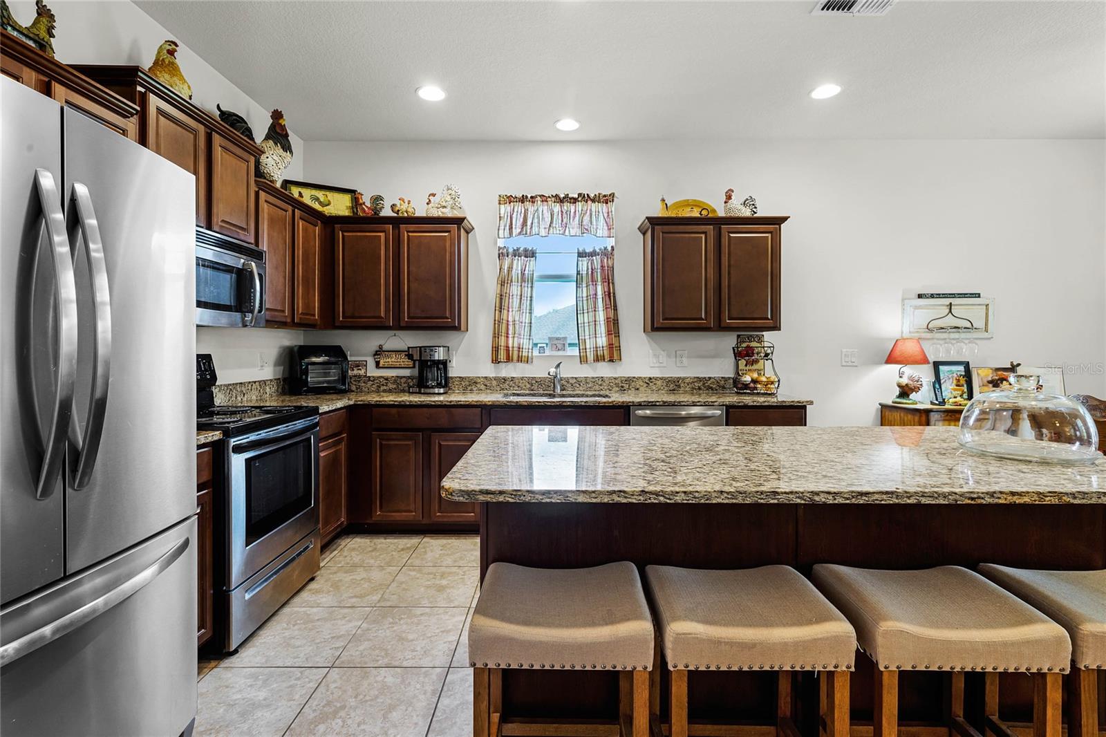 Introducing this stunning 4-bedroom, 2-bathroom home, offering 1,898 square feet of luxurious living in the gated Bridgeford Crossing community in Davenport. Built in 2014, this property exudes modern elegance and comes complete with a spacious 2-car garage for added convenience. Step inside to a contemporary open floor plan featuring a central island, stainless steel appliances, and granite countertops—perfect for cooking and entertaining. The expansive living area is designed for hosting family and friends with ease. The master suite is a private retreat, boasting dual vanities, a large shower with dual shower heads, and a spacious walk-in closet. Each bedroom maintains a high standard of quality, and the hall bath also showcases granite finishes. Enjoy outdoor living on the expansive 10 x 40 rear lanai, with serene pond views and pristine landscaping. The community offers exceptional amenities, including tennis courts, a clubhouse, a pool, a gym, and even a movie theater. With no rear neighbors, you’ll enjoy complete privacy, and the HOA covers lawn maintenance and cable. Ideally located in a sought-after community close to Disney, shopping, dining, and major attractions, with easy access to highways, this is a rare opportunity to own a truly exceptional home. Don’t miss out on making it yours!