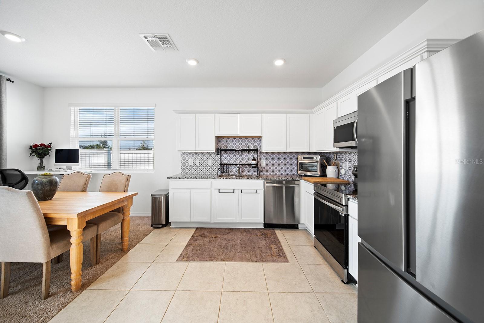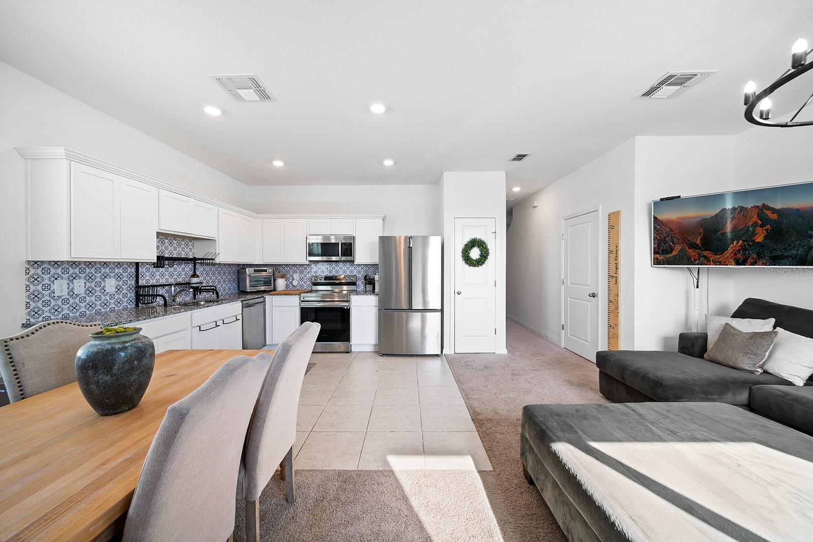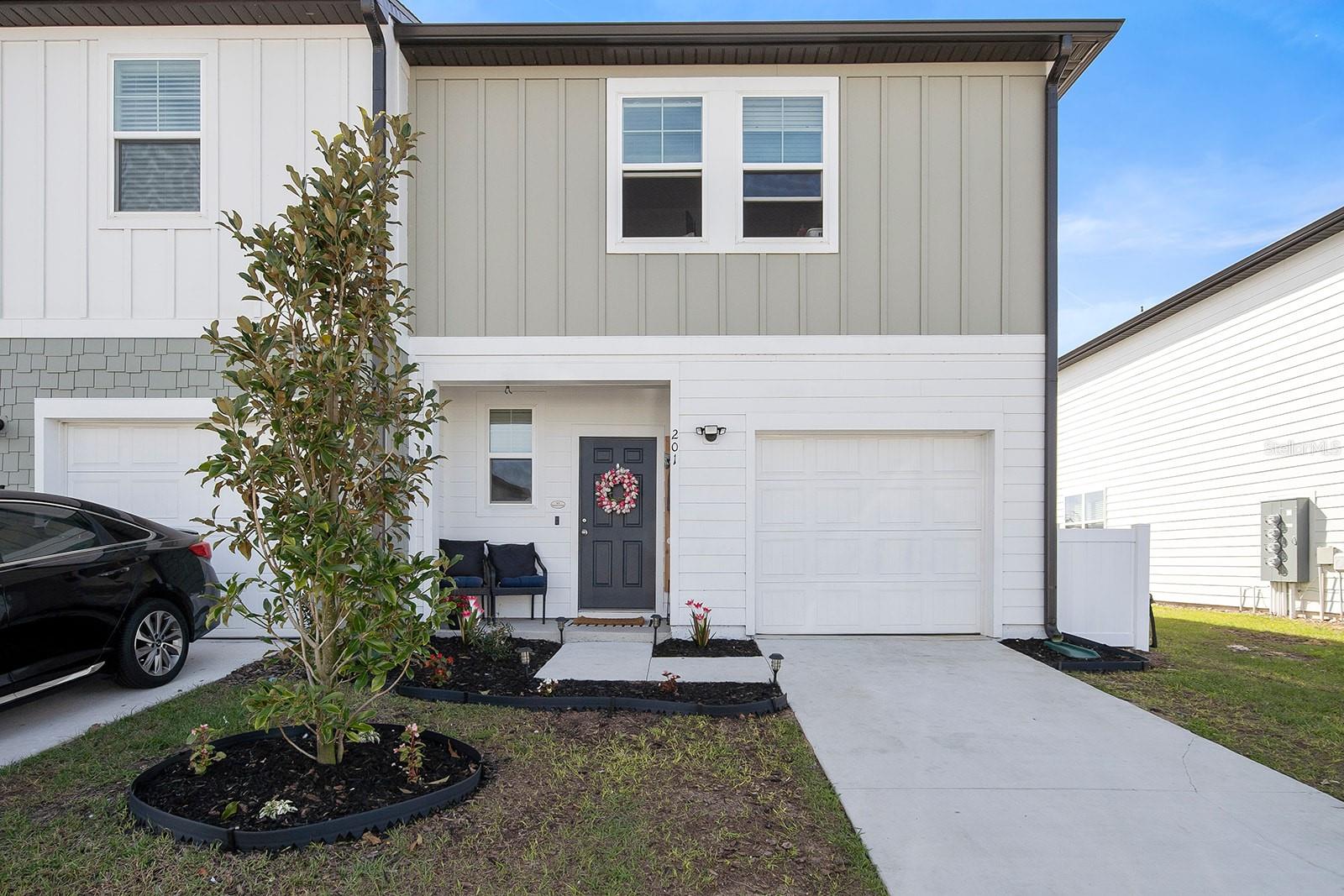 This gorgeous, 2023 townhome is an absolute dream! At 3 bedrooms, 2.5 bathrooms and situated in the highly sought-after neighborhood of Madison Place, there is something for everyone here, come inside and take a look! Driving up you will appreciate the lovely front porch and the spacious, attached one-car garage. As you step inside, soaring high ceilings greet you as well as cozy carpeting throughout. Just ahead you will find a convenient half bath on the way to the heart of the home, the airy, open living area. The kitchen is a chef’s dream, with stainless steel appliances, unique tile backsplash, granite countertops and plenty of cabinetry, you will be pleased as you host your next gathering in this beautiful and functional space! Upstairs you will find the primary suite, complete with a massive walk-in closet and attached en-suite with shower/tub combo. This space is bright and open with extra large windows and a stunning, chandelier light fixture. Down the hall you will find two more bedrooms and a shared bathroom giving you ample space for overnight guests or both would make a perfect office/den. Off the back you will find a shady concrete patio overlooking the private, fenced-in rear yard, perfect for summer barbecues, running around with your furry friends and spring gardening! Madison Place includes many wonderful amenities such as a nice nearby playground and a community pool with a covered seating area. Centrally located with easy access to HWY 27, close to shopping, dining, top-rated schools, and less than an hour away from many exciting attractions in the popular Orlando! Do not miss out on this rare opportunity to own a new home with nothing to do, just move in and enjoy! Call today to learn more and schedule a tour before it's gone!