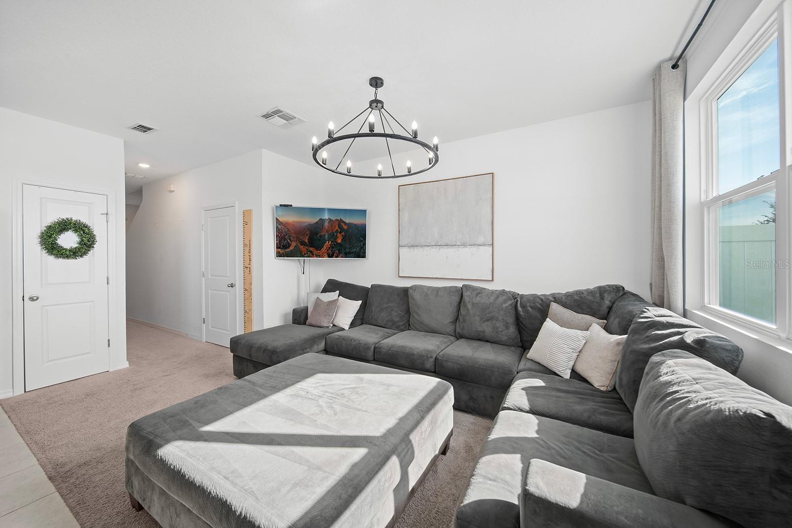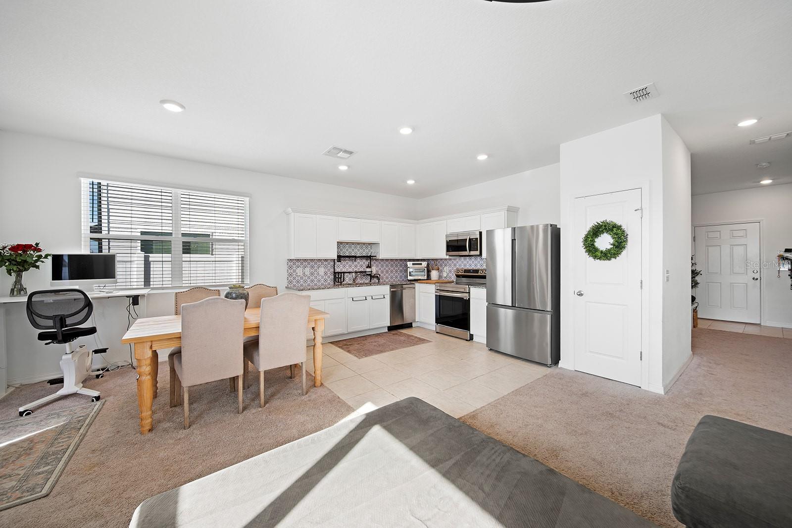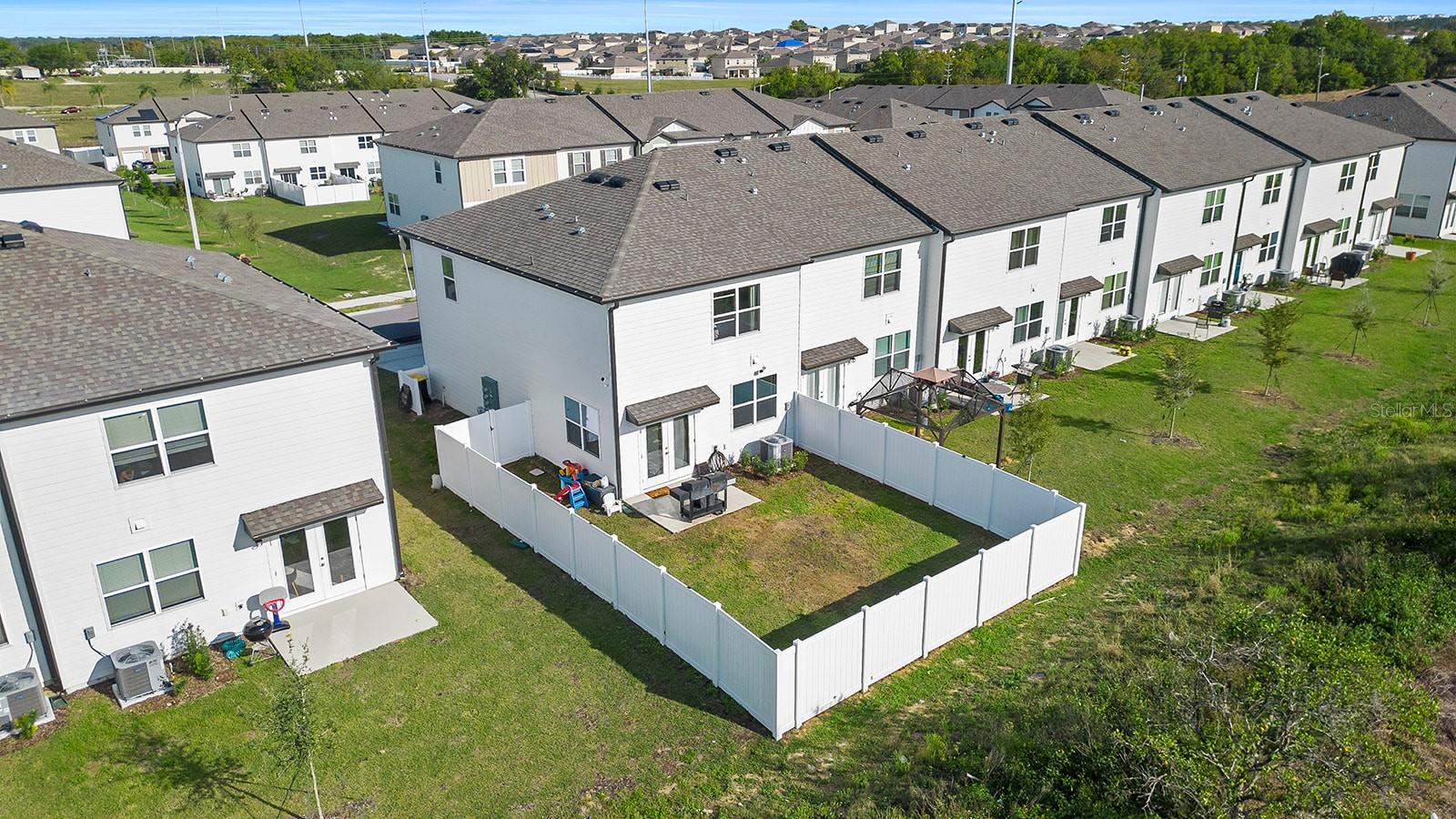 This gorgeous, 2023 townhome is an absolute dream! At 3 bedrooms, 2.5 bathrooms and situated in the highly sought-after neighborhood of Madison Place, there is something for everyone here, come inside and take a look! Driving up you will appreciate the lovely front porch and the spacious, attached one-car garage. As you step inside, soaring high ceilings greet you as well as cozy carpeting throughout. Just ahead you will find a convenient half bath on the way to the heart of the home, the airy, open living area. The kitchen is a chef’s dream, with stainless steel appliances, unique tile backsplash, granite countertops and plenty of cabinetry, you will be pleased as you host your next gathering in this beautiful and functional space! Upstairs you will find the primary suite, complete with a massive walk-in closet and attached en-suite with shower/tub combo. This space is bright and open with extra large windows and a stunning, chandelier light fixture. Down the hall you will find two more bedrooms and a shared bathroom giving you ample space for overnight guests or both would make a perfect office/den. Off the back you will find a shady concrete patio overlooking the private, fenced-in rear yard, perfect for summer barbecues, running around with your furry friends and spring gardening! Madison Place includes many wonderful amenities such as a nice nearby playground and a community pool with a covered seating area. Centrally located with easy access to HWY 27, close to shopping, dining, top-rated schools, and less than an hour away from many exciting attractions in the popular Orlando! Do not miss out on this rare opportunity to own a new home with nothing to do, just move in and enjoy! Call today to learn more and schedule a tour before it's gone!
