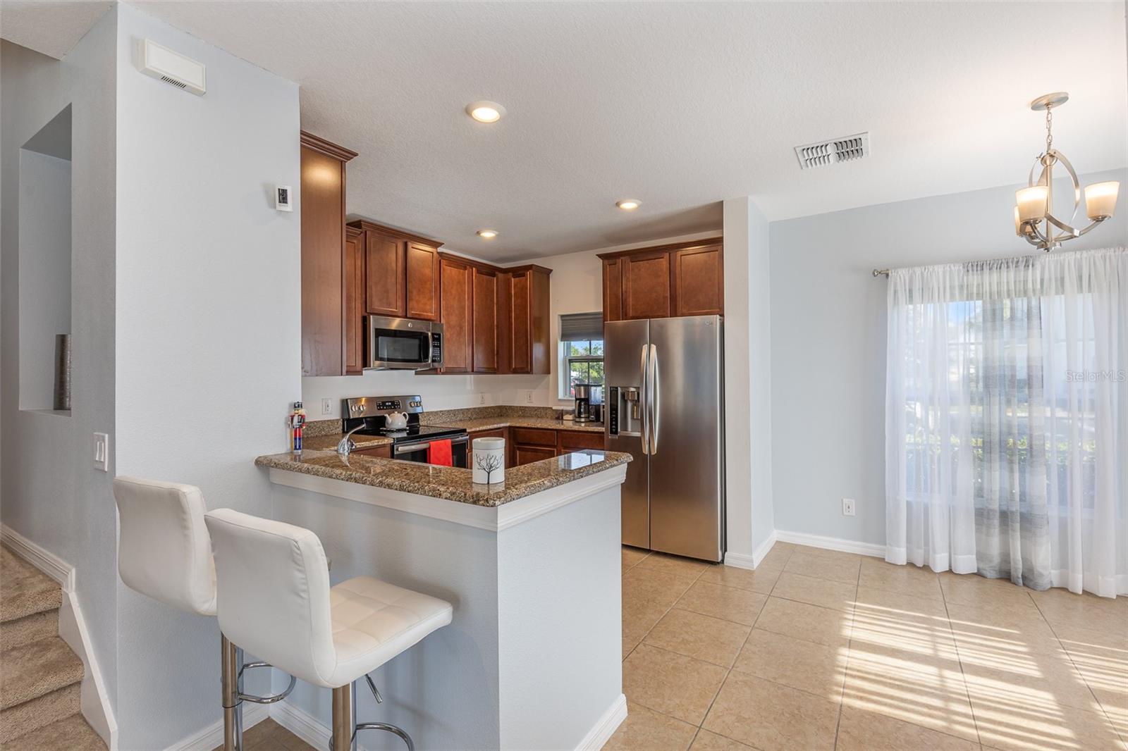 Introducing a captivating two-story corner townhome nestled in the gated community of Williams Preserve. This elegant residence boasts three bedrooms, 2 1/2 bathrooms, and a host of upscale features. Step inside to discover an inviting open floor plan accentuated by tile floors, granite countertops, and 42-inch wood cabinets in the kitchen. The 10-foot ceilings and modern paint colors create ambiance, while the carpeted second floor offers a cozy retreat. The primary suite is a sanctuary of comfort, complete with a luxurious shower, Jack and Jill sinks in the en suite, and a spacious laundry area for added convenience. A highlight is the large custom oversized walk-in closet, ideal for organizing your wardrobe. Enjoy peaceful nights with blackout shades that enhance privacy and relaxation. Outside, the community amenities include a sparkling pool and cabana, perfect for unwinding on sunny days. Families will appreciate the tot lot to play and create lasting memories. For fitness enthusiasts, there are ample areas for walking or jogging, ensuring a healthy lifestyle. Convenience is key, with proximity to Highway 27 and Route 192, granting easy access to Disney theme parks, renowned restaurants, banks, and shopping centers. In case of emergencies, Orlando Health Hospital is just a short eight-minute drive away. Located in the vibrant city of Davenport, Florida, this townhome offers a harmonious blend of luxury, comfort, and accessibility. Don't miss the opportunity to make this your dream home in the Sunshine State.