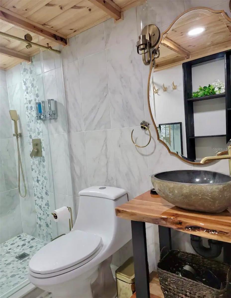 Investor alert! Rare opportunity to purchase a completely renovated, mobile home that has been divided into two units and a luxury tiny home that is ready to make money from day one in Davenport. A variety of options are available as you can live in one unit and manage the others via short or long term rentals, a combination of both or convert back to an oversized modular home. Currently rented through AIRBNB and VRBO with proven returns. Attention to detail is shown throughout the units along with each unit having an outdoor area, privacy fencing, tropical feel, grills and patio furniture. Less than a mile from US 27, 25 minutes theme parks, multiple dining, shopping and entertainment surround the area and centrally located 1 1/2 hours to beaches on the Atlantic and Gulf coast. Cash Only