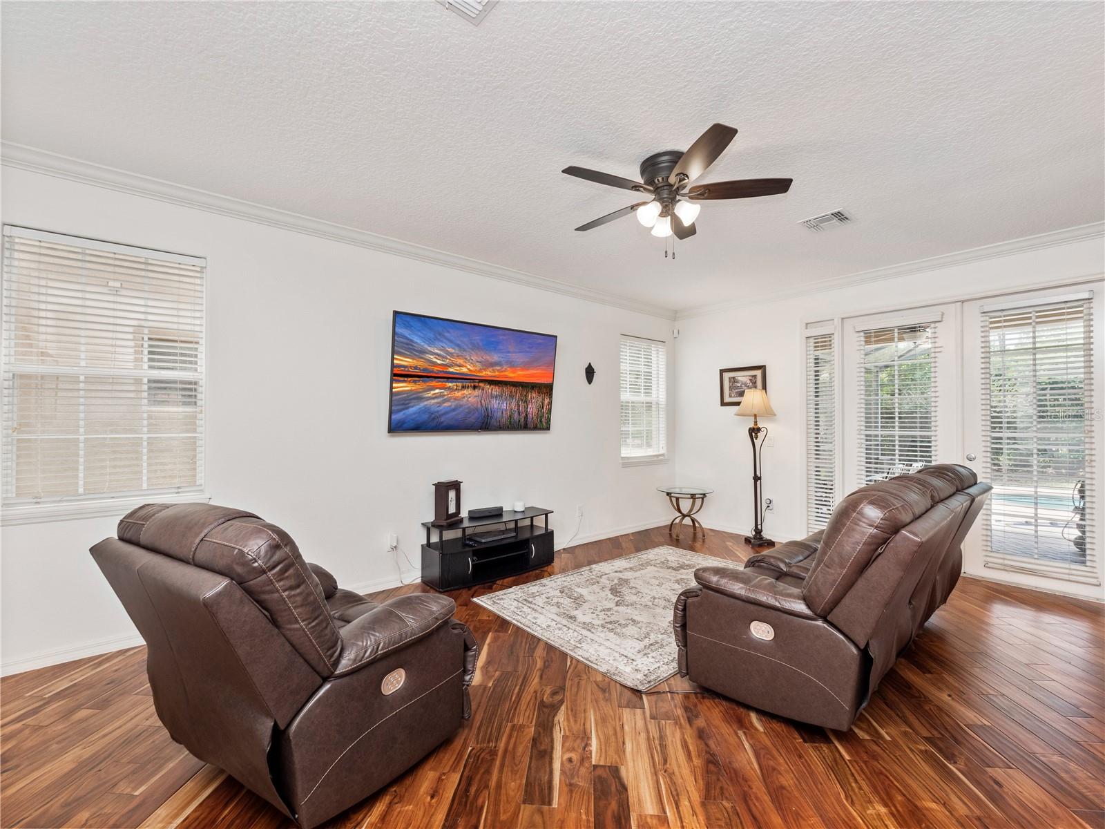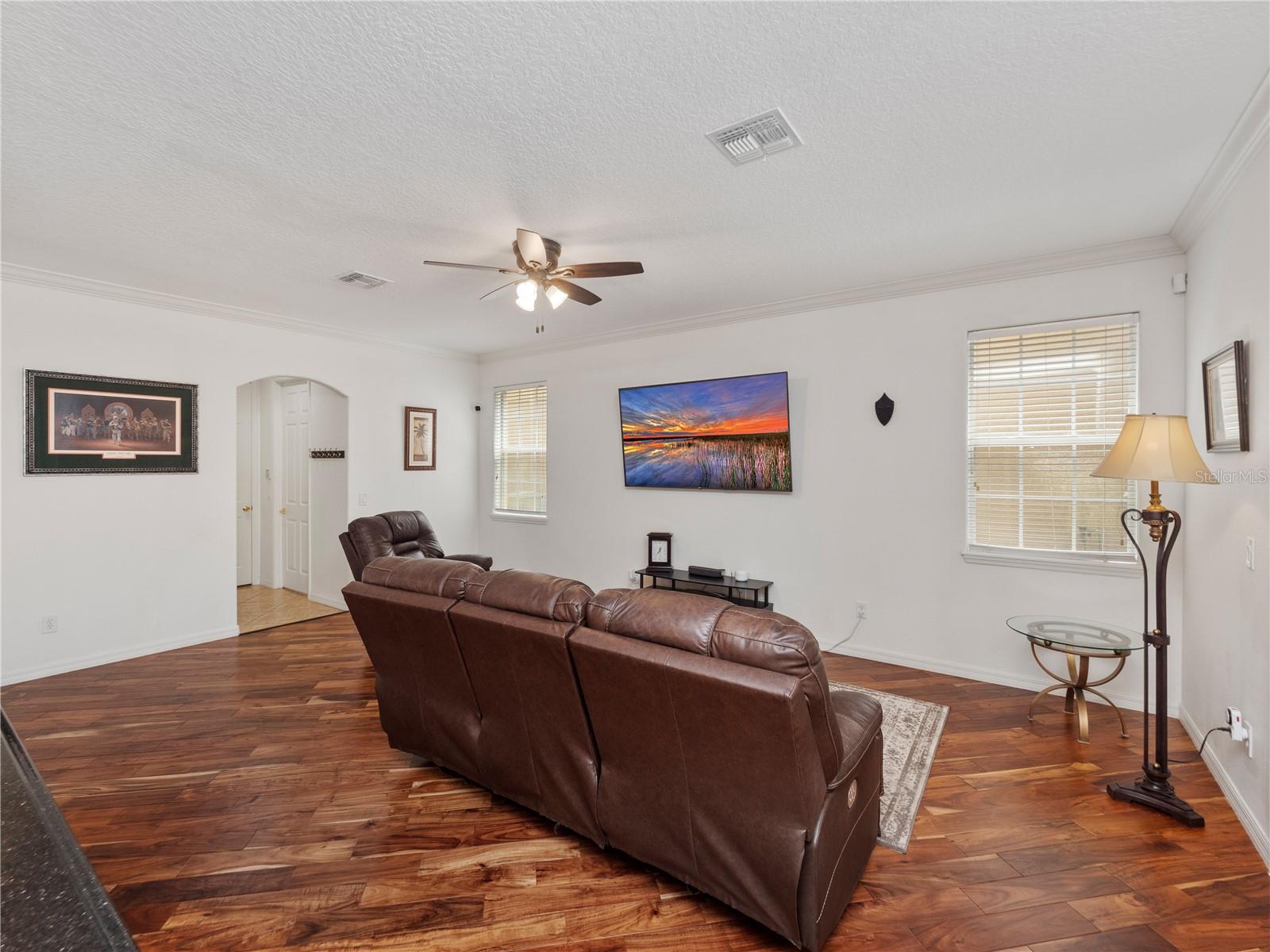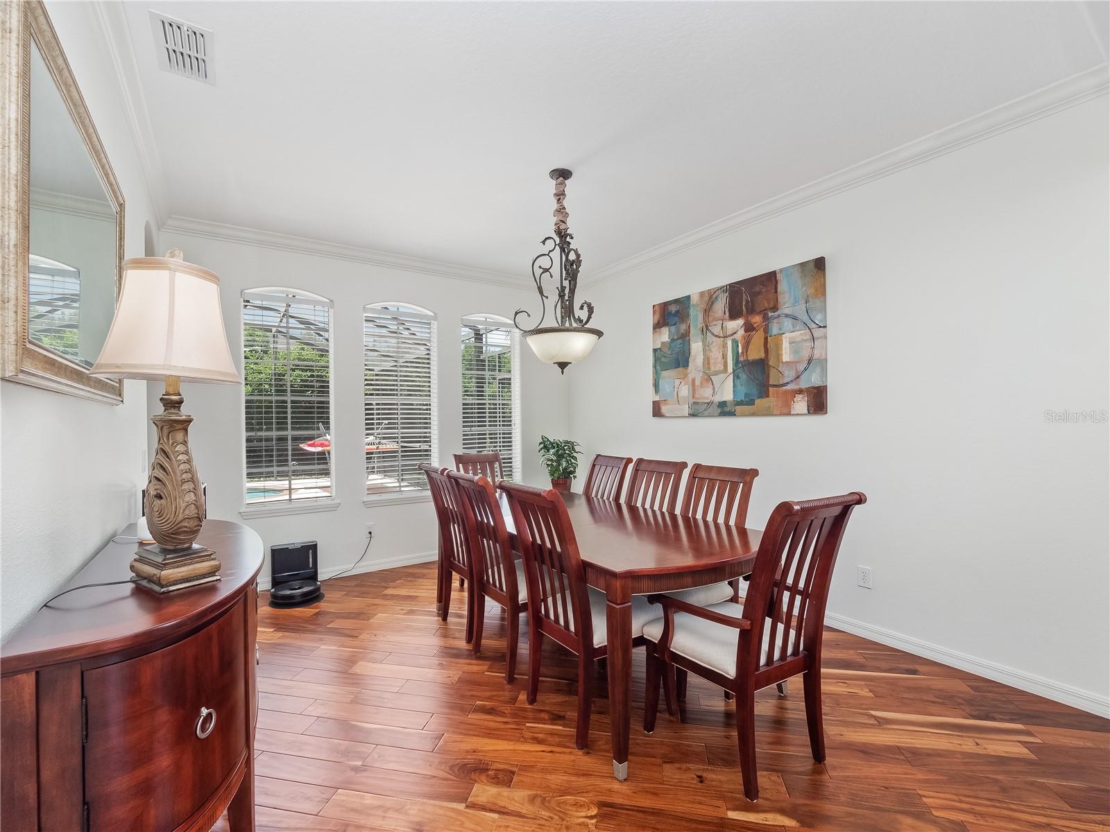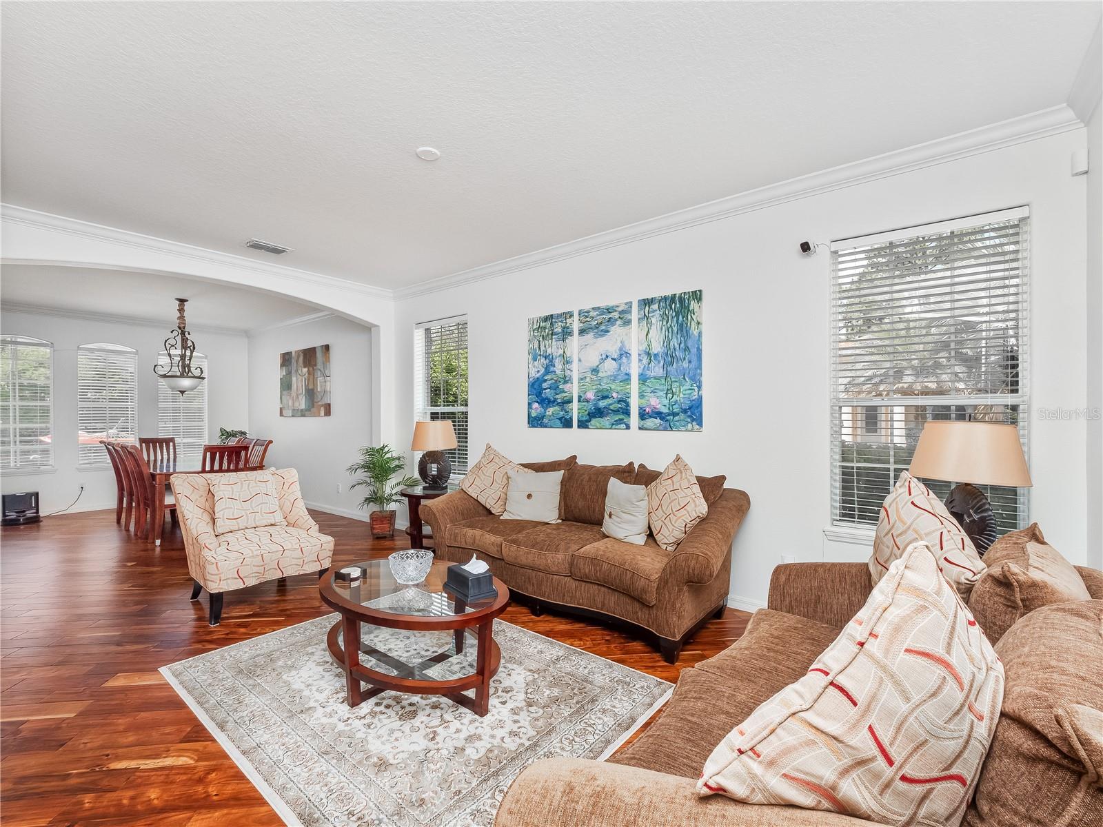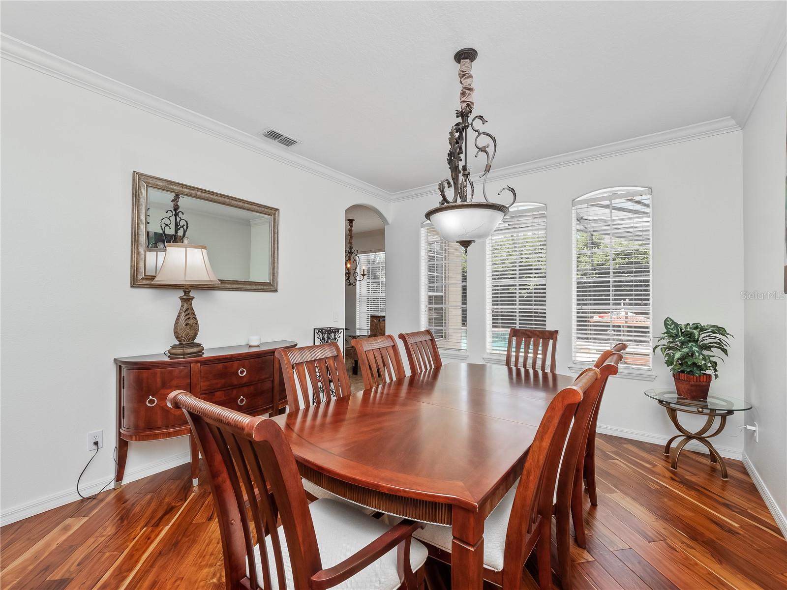 Welcome to your dream home nestled within the prestigious gated Golf community of Providence! This exquisite Toll Brothers residence boasts elegance and comfort at every turn and a new roof in 2020. As you approach, marvel at the modern stone exterior complemented by an extended red pavered driveway leading to your spacious 2-car garage. Situated on a large corner lot, this home exudes curb appeal. Step inside to discover 3000 sq ft of meticulously designed living space. The foyer welcomes you with its bright ambiance, courtesy of natural light filtering through the arched columns. With 9ft ceilings downstairs and 10ft ceilings upstairs, the sense of openness is unparalleled. The main floor features modern wood-look plank floors, seamlessly connecting the living areas. You'll find two large living spaces, one conveniently adjacent to the kitchen which is perfect for entertaining. Whether hosting a formal dinner party or enjoying a casual meal, the formal dining area and kitchen nook offer versatile options. The heart of the home lies in the gourmet kitchen, boasting 42-inch cherry cabinets, sleek black granite countertops, and black appliances including a built-in oven, microwave, and flat-top cooker. Showcase your fine china in the elegant glass-insert cabinet while enjoying ample storage and a convenient breakfast bar. Escape to your own private oasis in the backyard, where a screened-in pool awaits surrounded by lush, mature landscaping. Bask in the tropical vibes and soak up the afternoon sun, making every day feel like a vacation. At the top of the stairs, you're greeted by a bright and spacious loft, perfect for a playroom, home office, or flex space to suit your needs. The primary bedroom is truly a sanctuary, offering ample room to unwind and recharge. But it's the walk-in closet that truly steals the show, stretching the entire length of the bedroom and providing abundant storage for your extensive wardrobe, shoes, and accessories. Adjacent to the bedroom lies the luxurious master bathroom. Immerse yourself in the oversized Jacuzzi tub, perfect for soaking away the stresses of the day or step into the walk-in shower with its sleek glass stall. Dual vanities with his and her sinks offer convenience and style, while ample counter space provides the perfect spot for your daily grooming routine. Venture further into this exceptional Toll Brothers home to discover three additional spacious bedrooms, each offering comfort and functionality. These bedrooms provide ample space for family members or guests, ensuring everyone enjoys their own private haven. Don't miss the opportunity to make this luxurious retreat yours! Schedule a showing today.