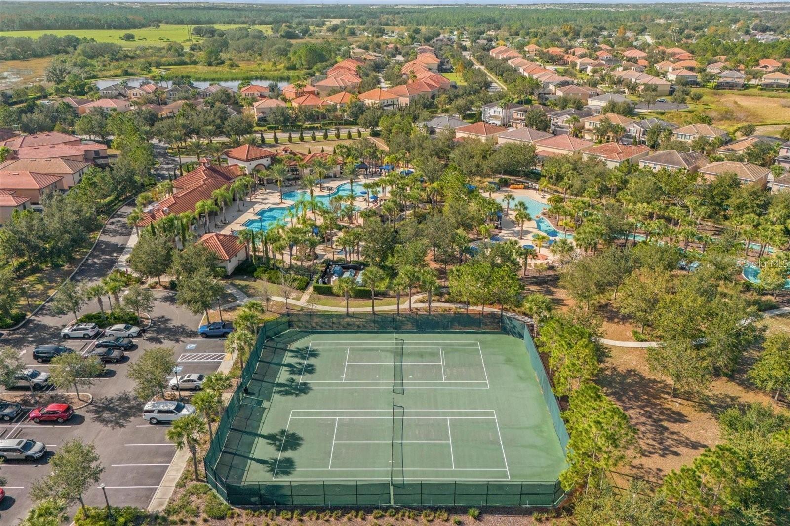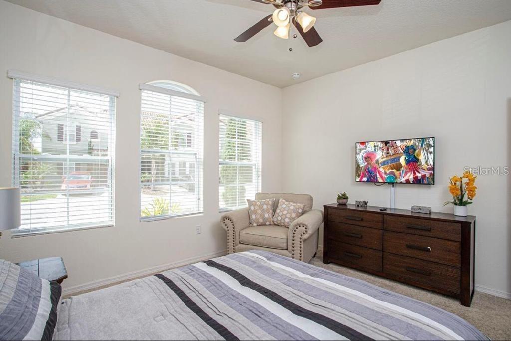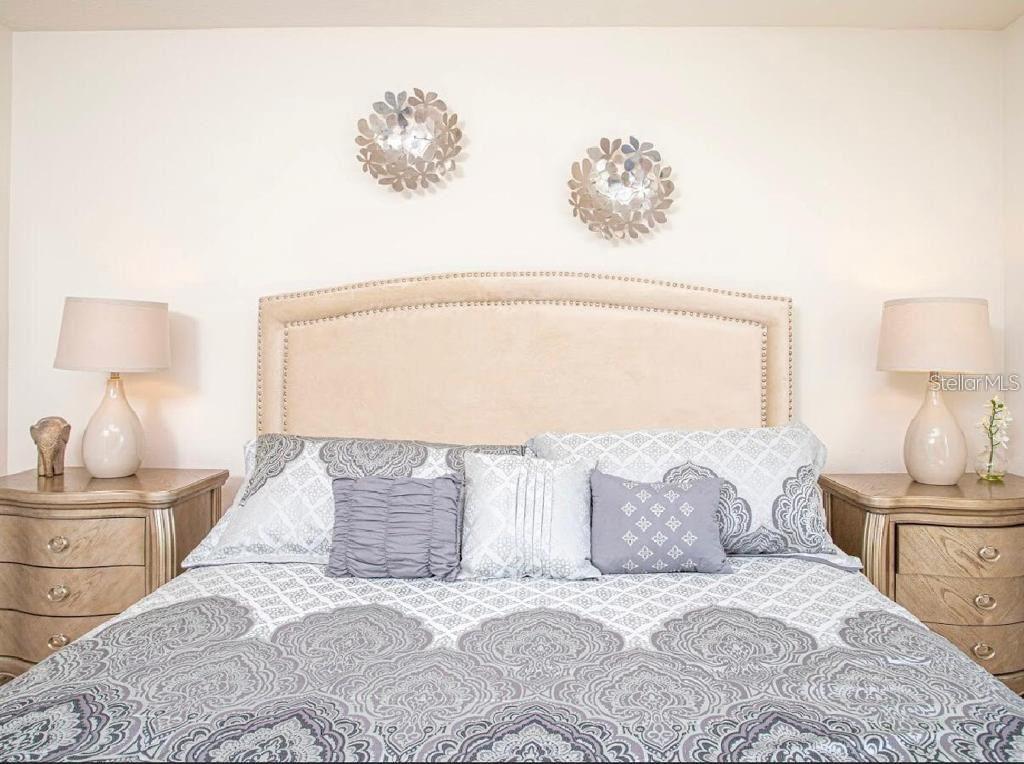 Amazing resort vacation townhome, with 4 bedrooms / 3.5 baths this beautiful property is everything a guest needs for that Perfect getaway or VACATION style!! it will be sold FULLY FURNISHED, Located in the Solterra Resort. The resort center is within a short distance and offers a 5,600-square-foot clubhouse. The Kitchen/ dining and Living Room overlook its very own plunge pool and back onto the conservation area behind for perfect privacy and a beautiful view (no rear neighbors). The main floor has a bedroom with a king-size bed. The Kitchen opens up to the Living and Dining area and overlooks the beautiful pool area with a covered lanai and screen enclosure. Additionally, there is also a half bath under the lanai for the pool area. On the second floor, you will find a King Master Suite with a walk-in closet and full bathroom. Two bedrooms, both with two twin beds. These two rooms share a full bath. The laundry room is also located upstairs. Solterra Resort offers great amenities like community activities, a fitness center with 24-hour access, a resort-style pool with a water slide and lazy river, poolside cabanas with food and beverage service, tennis courts, and soccer fields, and a 24/7 security guard. PLEASE NOTE THAT THE HOUSE HAS BEEN RECENTLY PAINTED