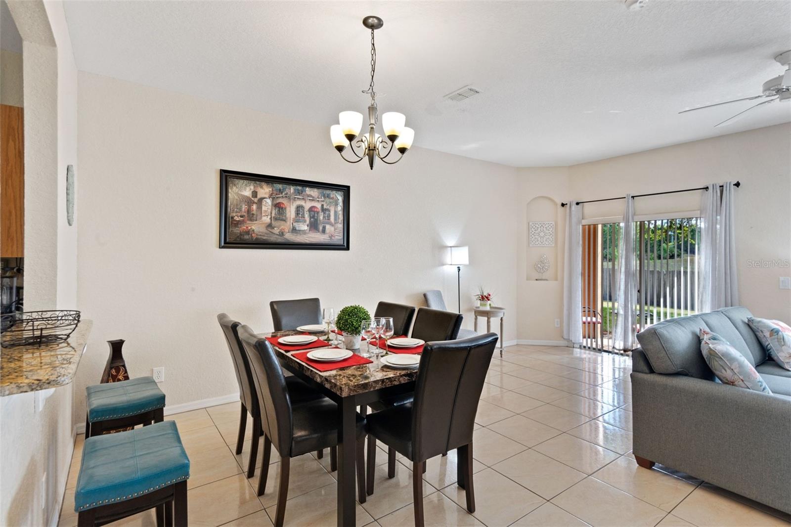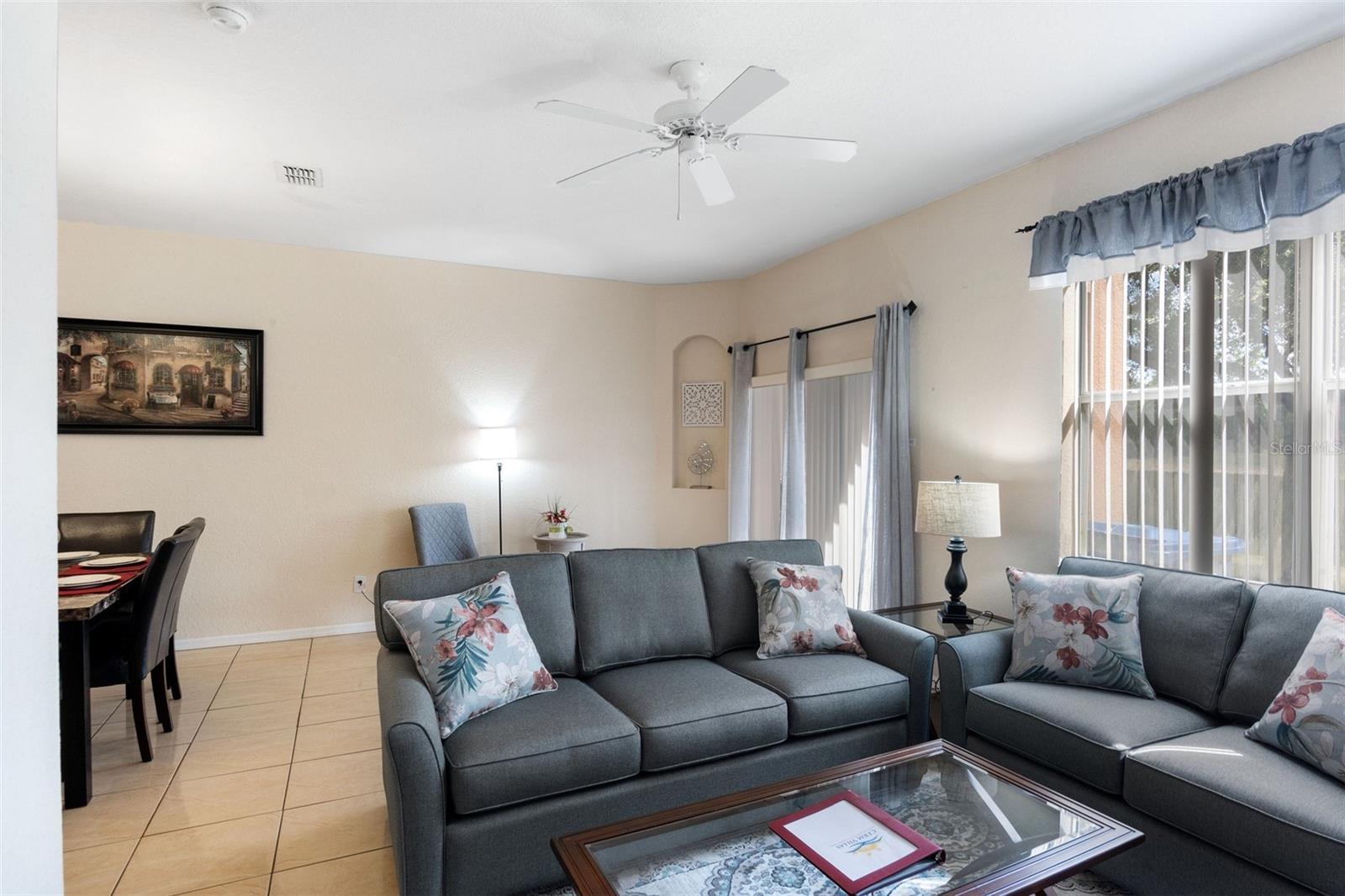 Located on the well-known Regal Palms Resort & Spa, this 3-bedroom condo with 2.5 bathrooms is just around the corner from the Resort's Water Park and other exciting amenities. If you are looking for an ideal investment opportunity, this home has everything you need to succeed. The excellent condition of the property speaks to a high level of maintenance. Recent upgrades include marble countertops, new stainless-steel kitchen appliances, new living room furniture and new bedding and lighting fixtures. Smart TV in each bedroom. Enjoy the privacy of the patio which looks onto an extended green area. Walking distance to the Clubhouse, Water Park with Lazy River and onsite restaurant. Highlands Reserve Golf Course is located just across Sand Mine Road. Golfing enthusiasts can find twenty plus golf courses within a thirty-minute radius of the home. The condo is next door to Berry Town Shopping Center which is home to Publix and many restaurants. Close to Orlando's Theme Parks and Florida State Parks.