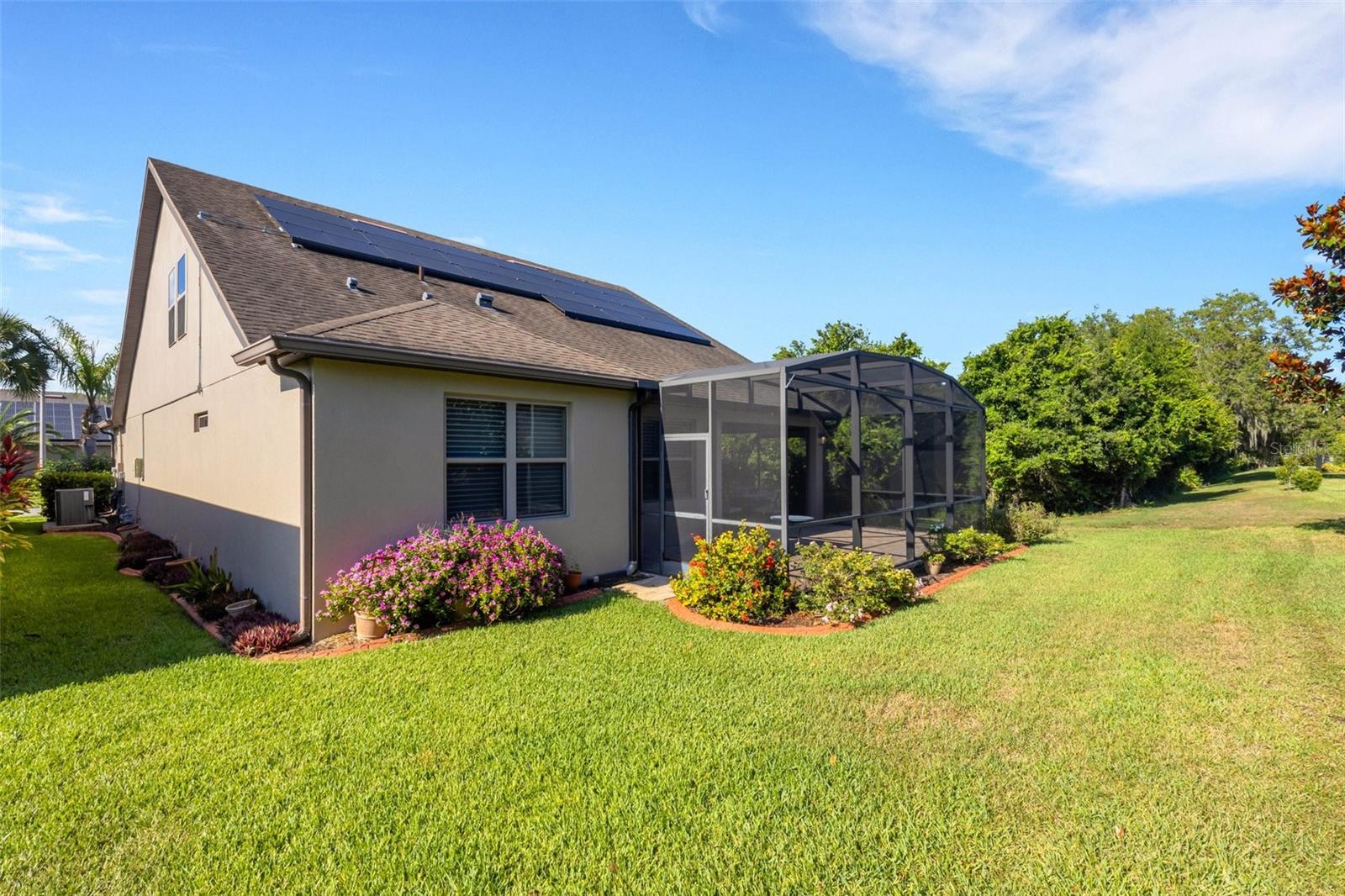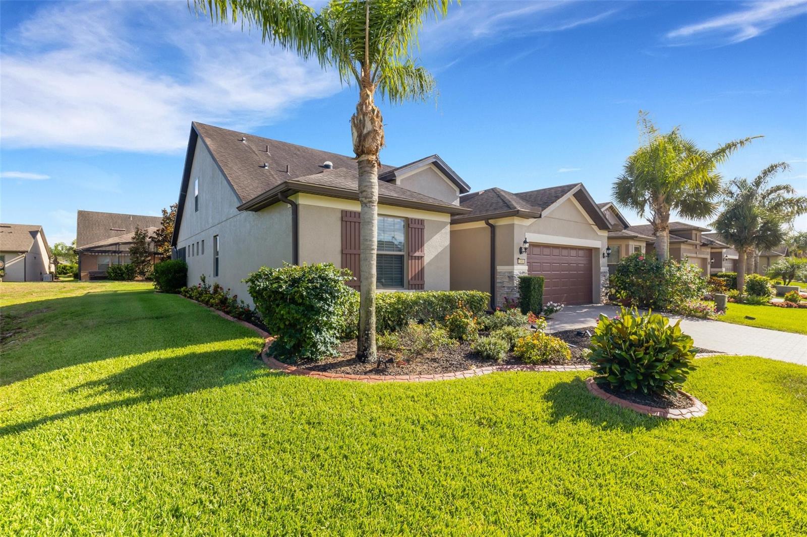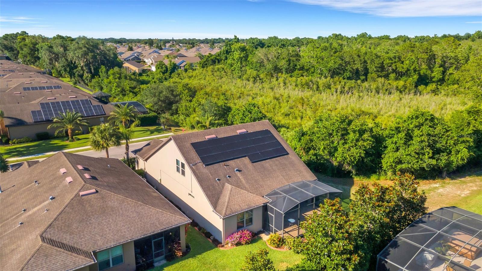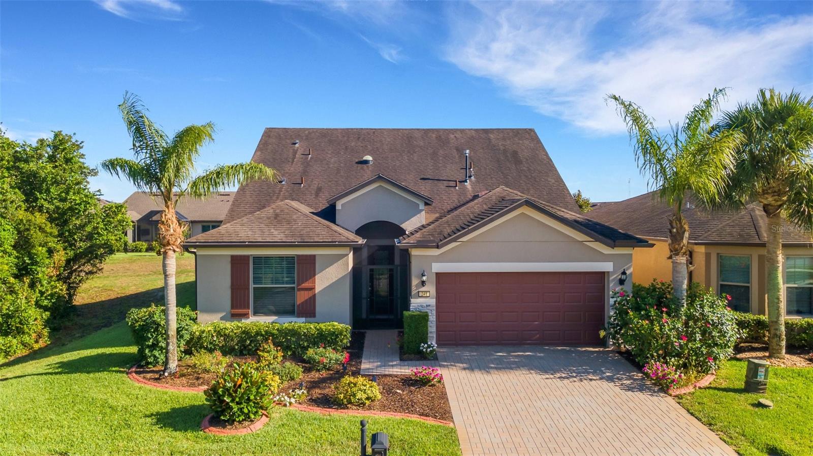 Welcome home! Beautiful Summerwood home with a loft in Del Webb, a 55+ community inside the guard gates of Ridgewood Lakes. Plenty of space for comfortable living with 2 bedrooms, 2 bathrooms, a den/study, formal dining room on the ground floor and 1 bedroom, 1 bathroom, and a large living area in the upstairs loft. Perfect for visitors. There are numerous upgrades throughout the house. You'll find ceiling fans in each bedroom as well as the great room, Hunter Douglas shades on the windows, quartz window sills, upgraded bathrooms with tiled walls and glass enclosures. The kitchen has light cabinets, a closet pantry, and plenty of storage. The primary bedroom is room enough for a king size bed. The master walk in closet has custom organizer and there are dual sinks and a vanity in the master bath. Out back in an extended lanai screened for enjoyment of the outdoors. This home sides to a conservation area. There are solar panels here to help keep energy costs down. The garage is 2 car plus a golf cart garage and has an epoxy floor and overhead storage. Now check out the proximity to the clubhouse. The Del Webb clubhouse is about 30,000 sq ft with many amenities to enjoy. Inside is a full gym, walking track, billiards, ping pong, craft rooms, ballrooms, a library of books and movies to enjoy, indoor pool and spa, and a tavern to enjoy food, drink, and entertainment. Outside the clubhouse is another pool and spa, fire pit, pickleball, tennis, bocce ball, basketball, shuffleboard, the garden club, a playground for the little visitors, and a large dog park. The community is close to shopping, Posner Park, Advent Health Hospital, and not far away are the Disney Parks.