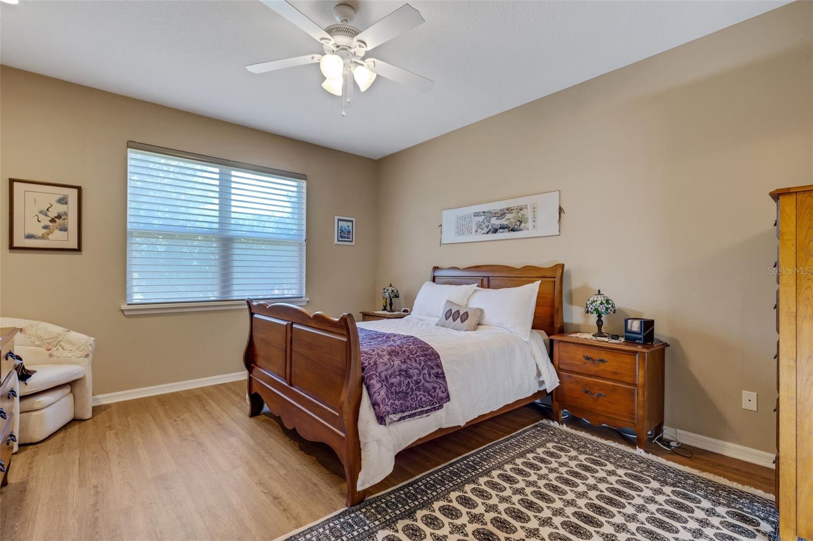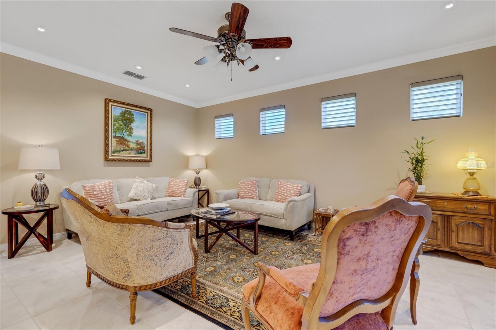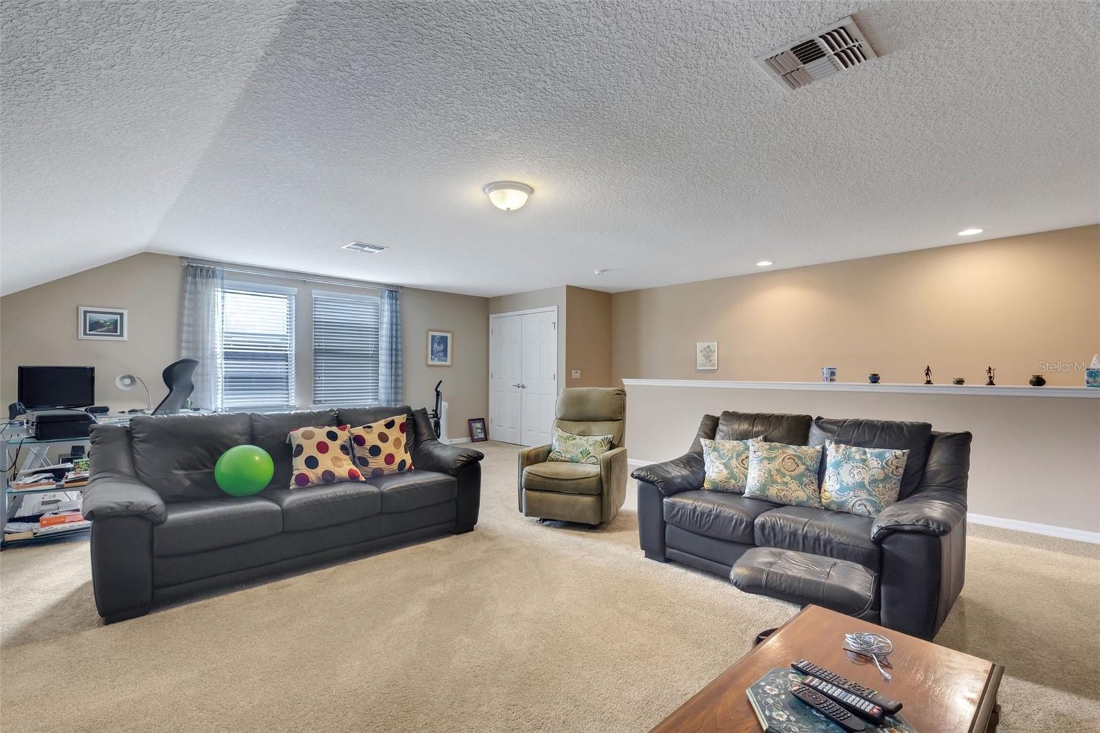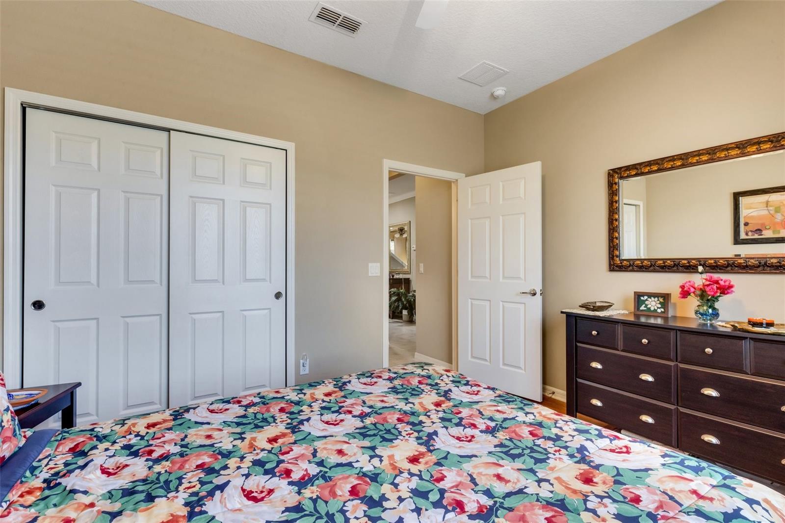 Welcome home! Beautiful Summerwood home with a loft in Del Webb, a 55+ community inside the guard gates of Ridgewood Lakes. Plenty of space for comfortable living with 2 bedrooms, 2 bathrooms, a den/study, formal dining room on the ground floor and 1 bedroom, 1 bathroom, and a large living area in the upstairs loft. Perfect for visitors. There are numerous upgrades throughout the house. You'll find ceiling fans in each bedroom as well as the great room, Hunter Douglas shades on the windows, quartz window sills, upgraded bathrooms with tiled walls and glass enclosures. The kitchen has light cabinets, a closet pantry, and plenty of storage. The primary bedroom is room enough for a king size bed. The master walk in closet has custom organizer and there are dual sinks and a vanity in the master bath. Out back in an extended lanai screened for enjoyment of the outdoors. This home sides to a conservation area. There are solar panels here to help keep energy costs down. The garage is 2 car plus a golf cart garage and has an epoxy floor and overhead storage. Now check out the proximity to the clubhouse. The Del Webb clubhouse is about 30,000 sq ft with many amenities to enjoy. Inside is a full gym, walking track, billiards, ping pong, craft rooms, ballrooms, a library of books and movies to enjoy, indoor pool and spa, and a tavern to enjoy food, drink, and entertainment. Outside the clubhouse is another pool and spa, fire pit, pickleball, tennis, bocce ball, basketball, shuffleboard, the garden club, a playground for the little visitors, and a large dog park. The community is close to shopping, Posner Park, Advent Health Hospital, and not far away are the Disney Parks.