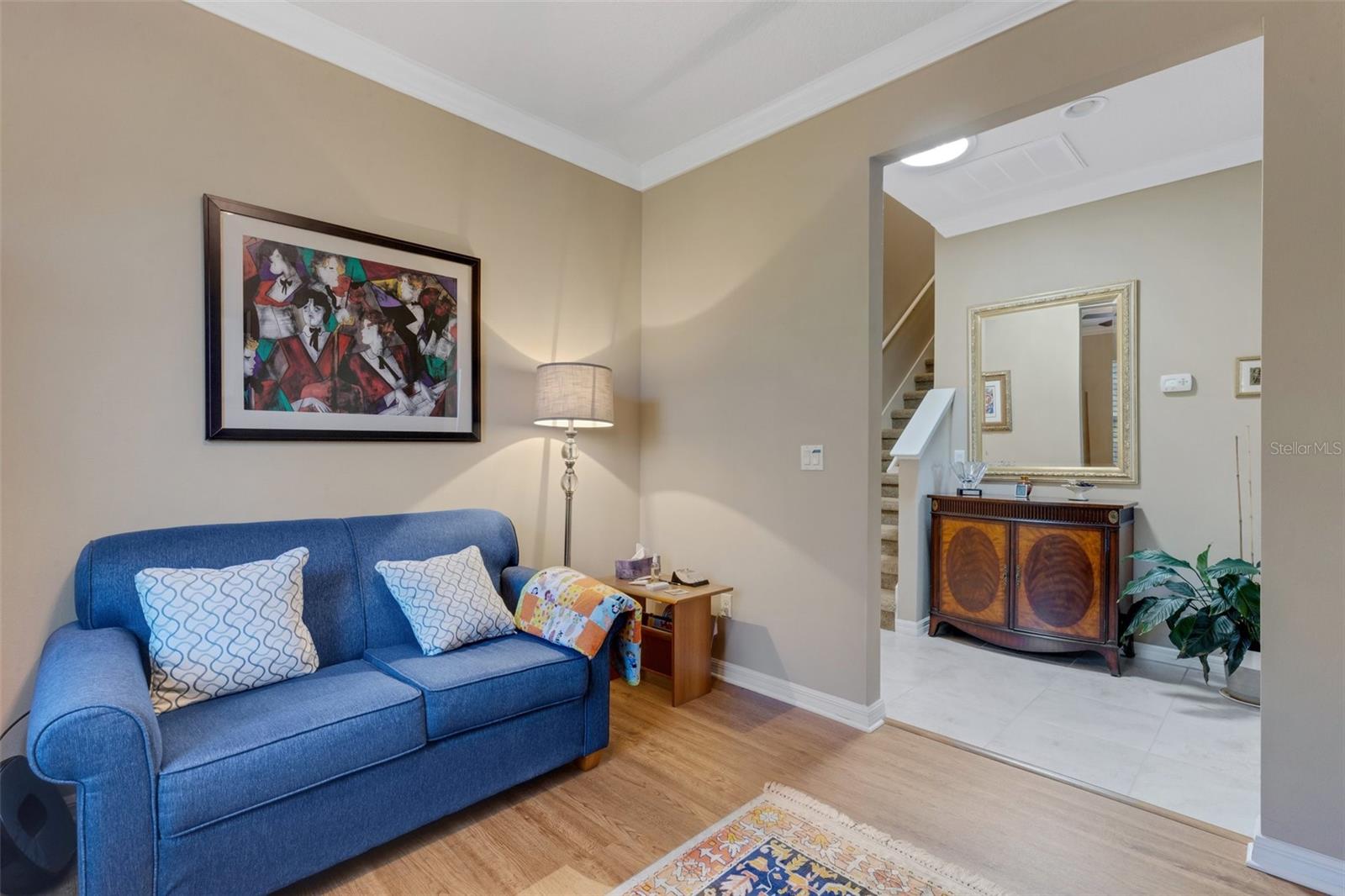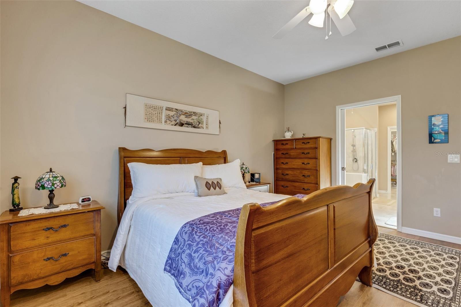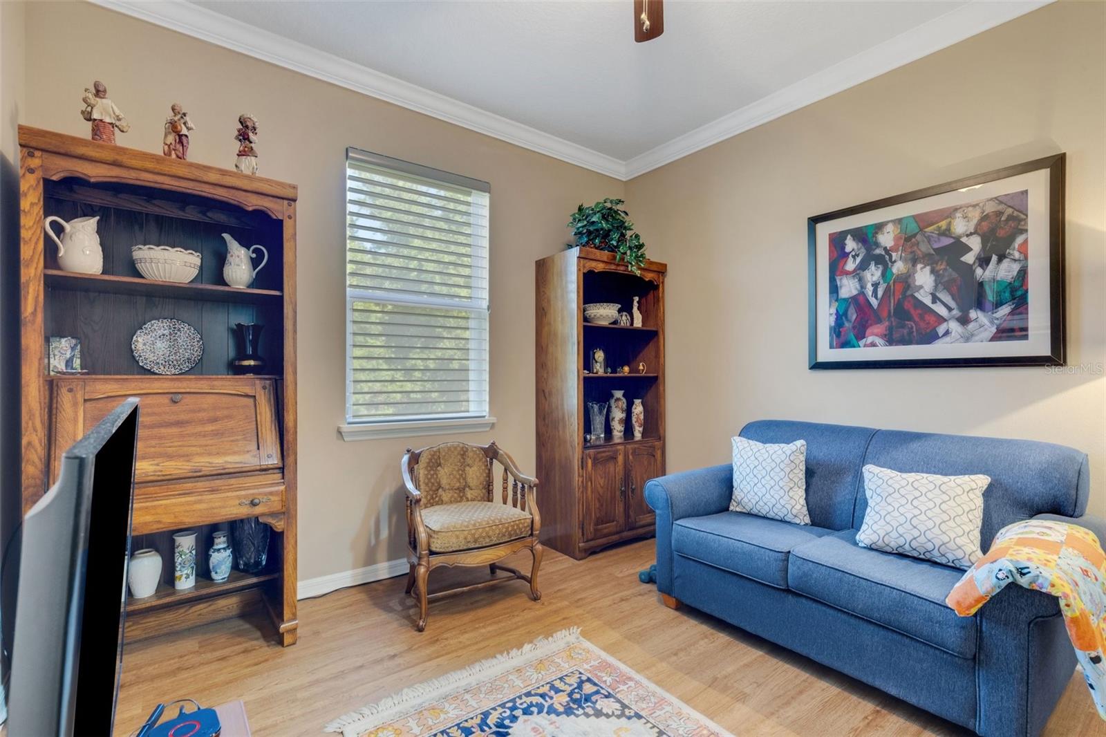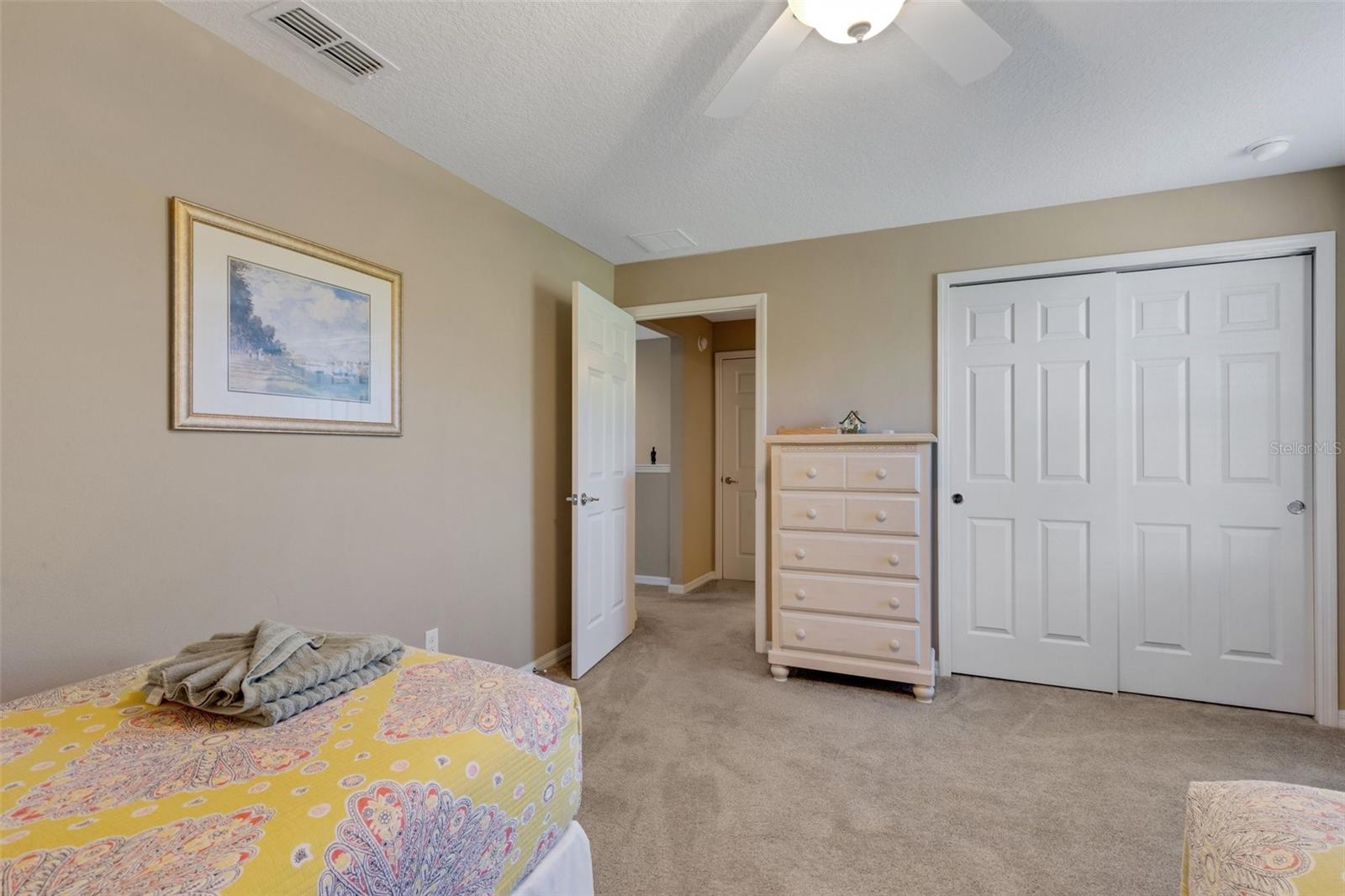 Welcome home! Beautiful Summerwood home with a loft in Del Webb, a 55+ community inside the guard gates of Ridgewood Lakes. Plenty of space for comfortable living with 2 bedrooms, 2 bathrooms, a den/study, formal dining room on the ground floor and 1 bedroom, 1 bathroom, and a large living area in the upstairs loft. Perfect for visitors. There are numerous upgrades throughout the house. You'll find ceiling fans in each bedroom as well as the great room, Hunter Douglas shades on the windows, quartz window sills, upgraded bathrooms with tiled walls and glass enclosures. The kitchen has light cabinets, a closet pantry, and plenty of storage. The primary bedroom is room enough for a king size bed. The master walk in closet has custom organizer and there are dual sinks and a vanity in the master bath. Out back in an extended lanai screened for enjoyment of the outdoors. This home sides to a conservation area. There are solar panels here to help keep energy costs down. The garage is 2 car plus a golf cart garage and has an epoxy floor and overhead storage. Now check out the proximity to the clubhouse. The Del Webb clubhouse is about 30,000 sq ft with many amenities to enjoy. Inside is a full gym, walking track, billiards, ping pong, craft rooms, ballrooms, a library of books and movies to enjoy, indoor pool and spa, and a tavern to enjoy food, drink, and entertainment. Outside the clubhouse is another pool and spa, fire pit, pickleball, tennis, bocce ball, basketball, shuffleboard, the garden club, a playground for the little visitors, and a large dog park. The community is close to shopping, Posner Park, Advent Health Hospital, and not far away are the Disney Parks.