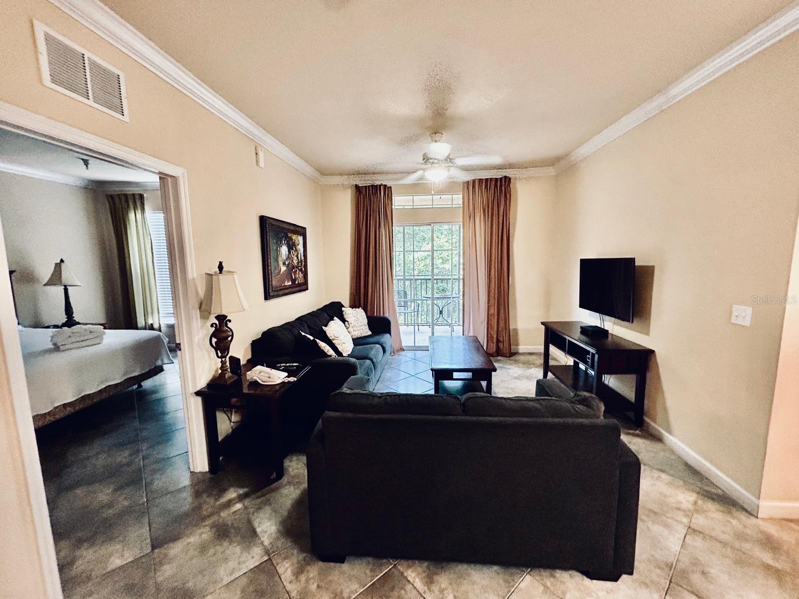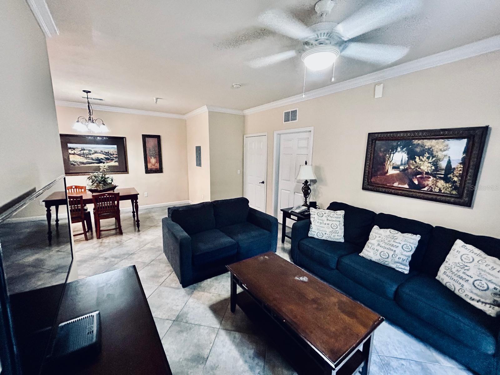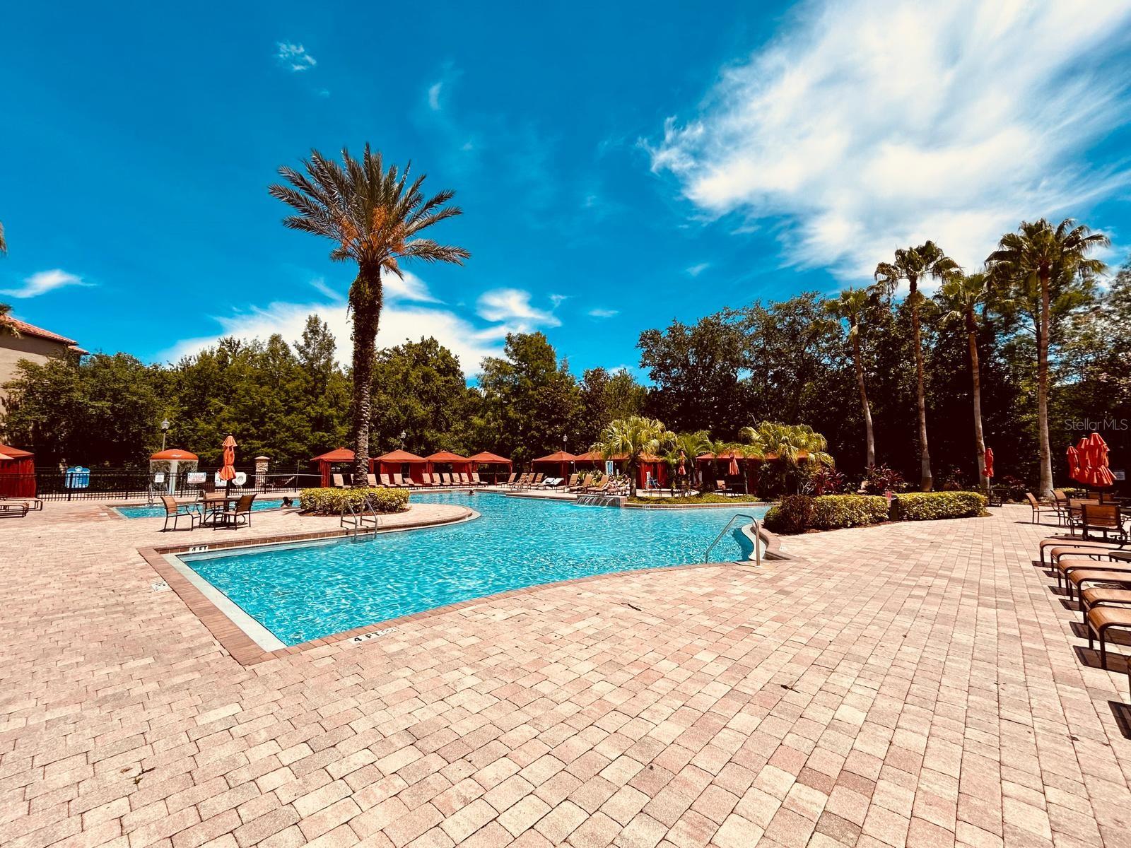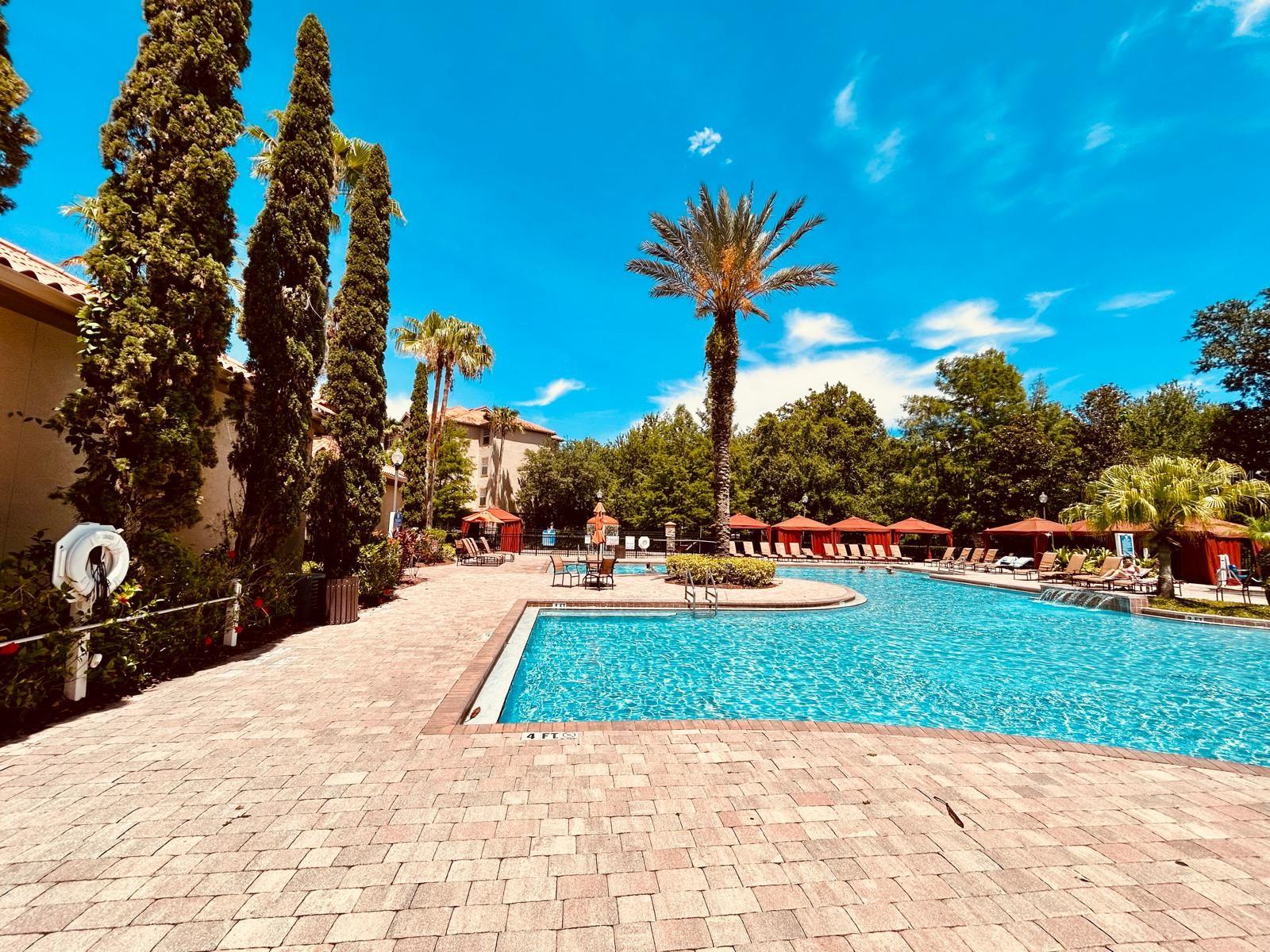 Looking for an exceptional condo community? Don't miss this opportunity! This Mediterranean-style complex offers a stunning 2-bedroom, 2-bathroom unit on the 3rd floor, fully furnished for your convenience. Features: - Tile roofs and elevators - On-site management - Spacious living room that opens to a screened porch - Full-size kitchen with granite countertops, equipped with dishes, pots, pans, and appliances Community Amenities: - Resort-style pools with cabanas - Fitness center - Movie theater - Tiki bar and café - On-site Tuscana store Prime Location: - Minutes away from World-Class Golf Courses - Close proximity to Disney World and other top attractions This beautiful condo offers both luxury and convenience in an unbeatable location. Make it your new home today!