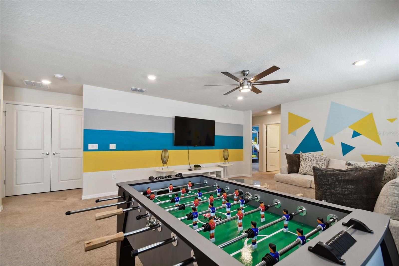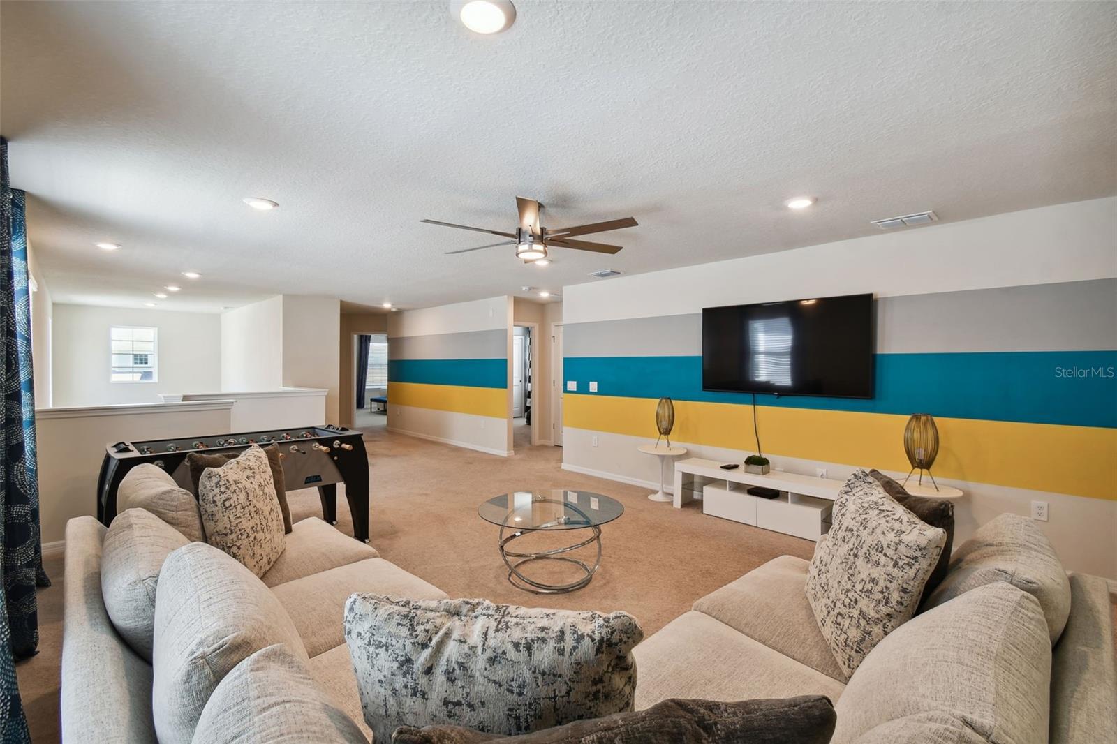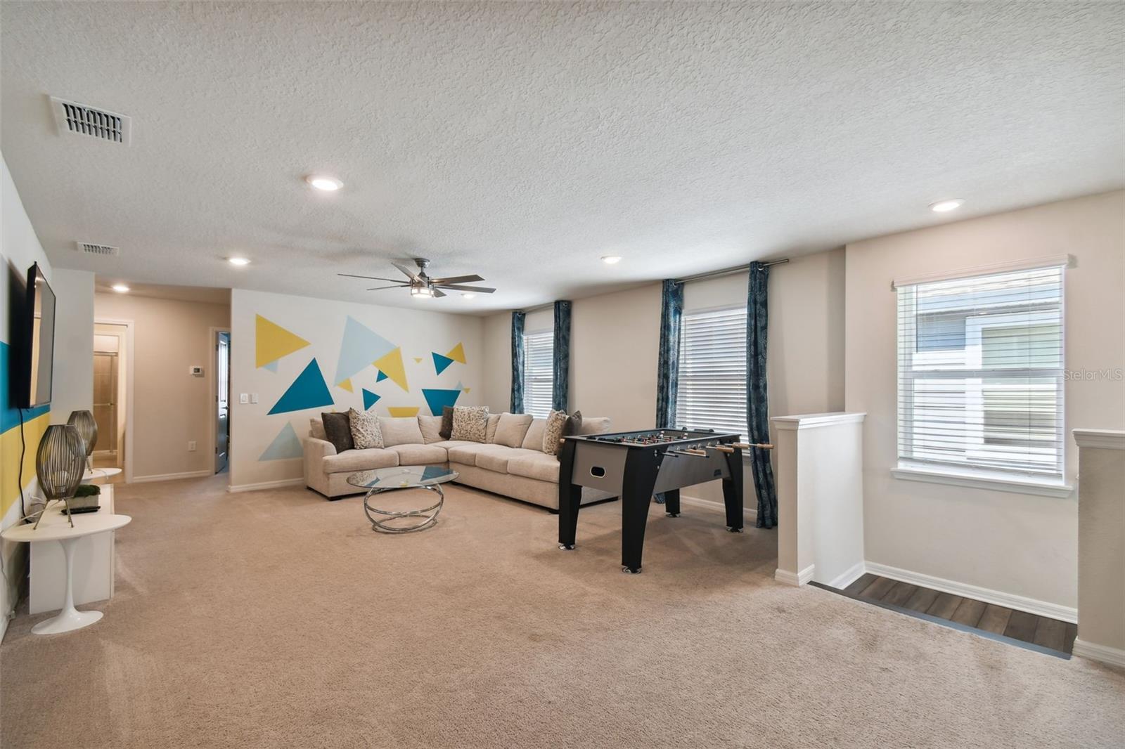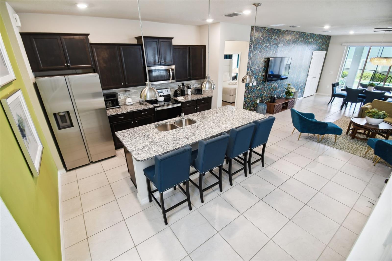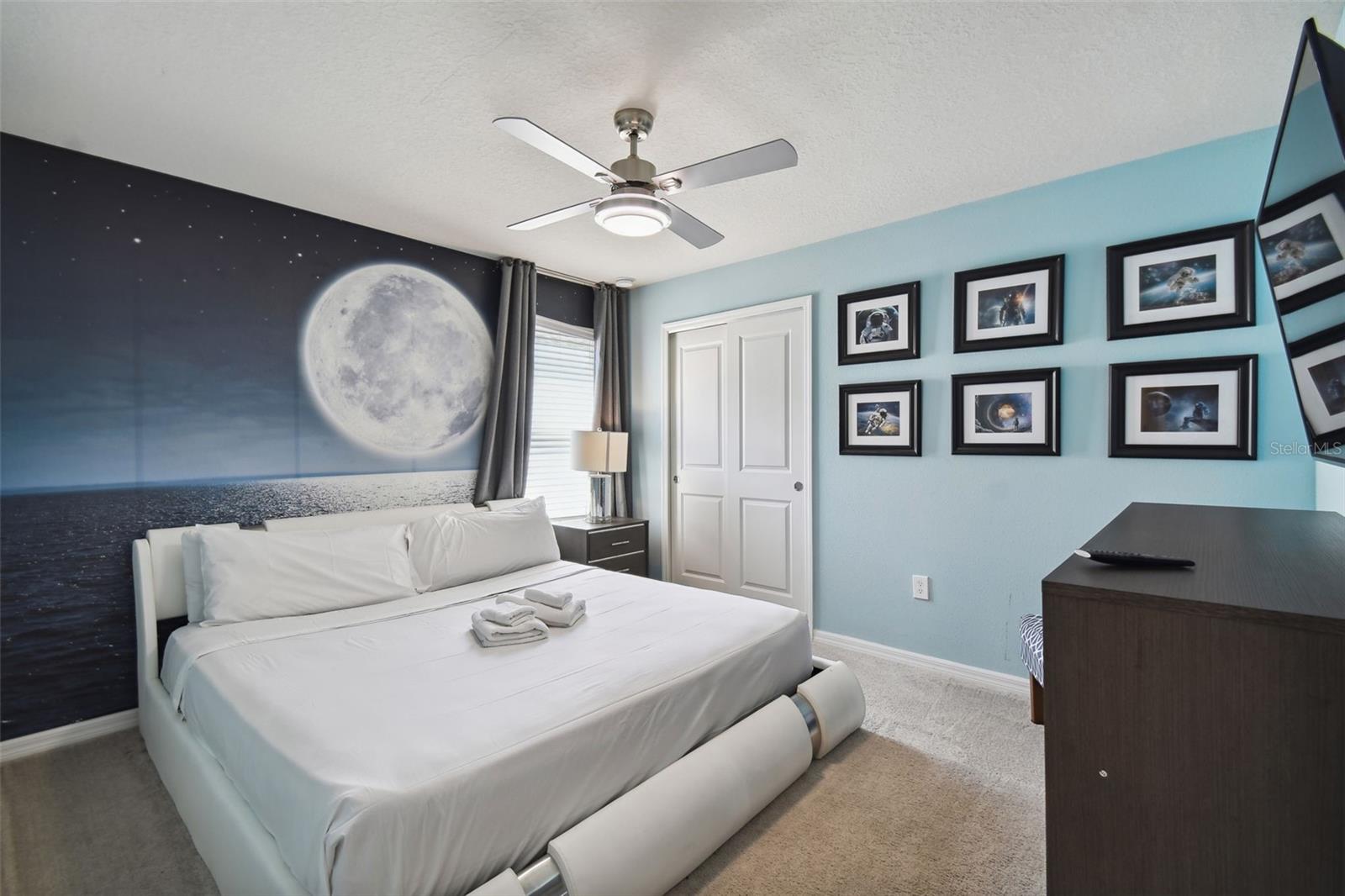 Whether you plan to use as a short term vacation rental or as a second home vacation getaway... this home & community are right for you! This spacious 6 bedroom, 4.5 bath, 2022 built pool home is located in the highly sought after Windsor Island Resort Community. As soon as you walk in the house you'll notice the soaring ceilings and open concept floorplan, complete with a kitchen/dining/great room combo with huge sliding glass doors leading to the outside oasis. Master Bedroom & En Suite- with garden tub, dual sinks, shower, water closet- are located on the first floor. Also on the main level, you'll find the laundry room & half bath. Upstairs you have a massive loft, the remaining bedrooms and a home theater! Amenities include- waterpark style community resort pool with dueling slides- lazy river- hot tub/spa- splash pad-pool side miniature golf course- outdoor bar and dinning- fire pit area- clubhouse- fitness center- arcade/ gaming room- playground- basketball courts- soccer fields & more! Close to Disney & other Theme Parks, Local Attractions, Shopping, Restaurants, Orlando International Airport & Major Highways taking you the Beaches... this location is BEYOND prime!