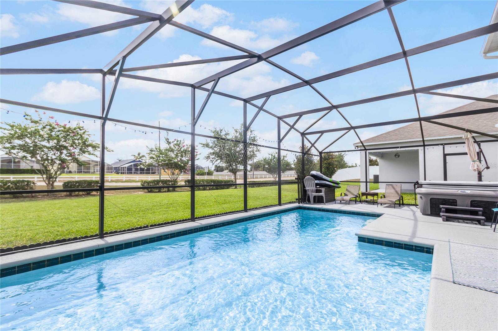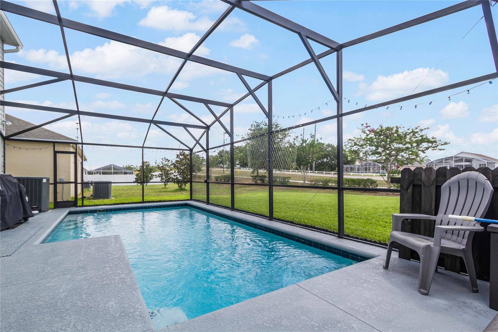 One or more photo(s) has been virtually staged. Beat High Rates with Low Monthly Expenses! The extremely low electric bill ($33 PER MONTH due to solar) and HOA ($45) will make up for the current higher interest rates! Potentially saving you $600-900 per month! Lowest priced pool home of its size and age in the whole of Davenport! Step into this expansive 5-bedroom, 3-bathroom pool home, brimming with incredible upgrades like whole-house solar and water filtration! Meticulously maintained by its original owner, this home feels like new and offers an array of exceptional features. You'll be captivated by the sparkling pool and the spacious, oversized secondary bedrooms. The open floor plan creates a welcoming atmosphere, ideal for both everyday living and entertaining. The front of the home boasts a charming dining room, while the back reveals a beautifully designed kitchen, casual dining area, and living room. The kitchen is a chef's dream, complete with a walk-in pantry, cooking island, abundant counter space, and stainless steel appliances. Granite countertops grace both the kitchen and all bathrooms, adding a touch of luxury throughout. Sliding doors lead from the kitchen to the pool deck, perfect for seamless indoor-outdoor living. Stepping outside you’ll love sunny mornings on the patio with a coffee and there’s plenty of space for backyard barbecues. You'll also appreciate the vibrant landscaping that enhances the curb appeal with lovely colorful flowers. Inside, ceramic tile floors adorn the foyer, hallway, bathrooms, and kitchen, ensuring durability and easy maintenance. For those who find stairs challenging, there's a full bedroom and bathroom with a walk-in closet conveniently located on the ground floor and nicely tucked away for added privacy. The remaining four bedrooms and two bathrooms are situated upstairs, providing ample space for everyone. The primary suite is a true retreat, featuring a huge walk-in closet and large bathroom with double sinks, a shower, and private commode. An enormous bonus room upstairs offers versatile space for a game room, office, or additional living area. This home comes with significant upgrades, including 33 on-roof solar panels valued at $33,000, which result in an astonishingly low electric bill of just $33 during Florida's hot summer months! The whole-house water filtration system, worth $1,200, ensures clean and pure water throughout. The pool, an investment of $42,000, promises endless enjoyment and relaxation. Additionally, the home is equipped with front and rear gutters, a built-in pest system and a termite bond for added peace of mind. Located in a quiet Davenport community with a playground, this home benefits from a low annual HOA fee and is centrally situated close to I-4. You'll find yourself just 5 minutes away from Posner Village, which offers a luxury Cinépolis movie theater, a variety of department, pet, makeup, clothing, and electronics stores, as well as a abundance of restaurants. Enjoy the best of Florida living with convenient access to major attractions: less than 30 minutes to Magic Kingdom and under 40 minutes to SeaWorld and Universal Studios. This is a neighborhood where short-term renting is not permitted, fostering a strong sense of community where you can truly get to know your neighbors. Sellers able to accommodate a quick closing. Don't miss this opportunity to own a stunning home with exceptional upgrades in an unbeatable location!