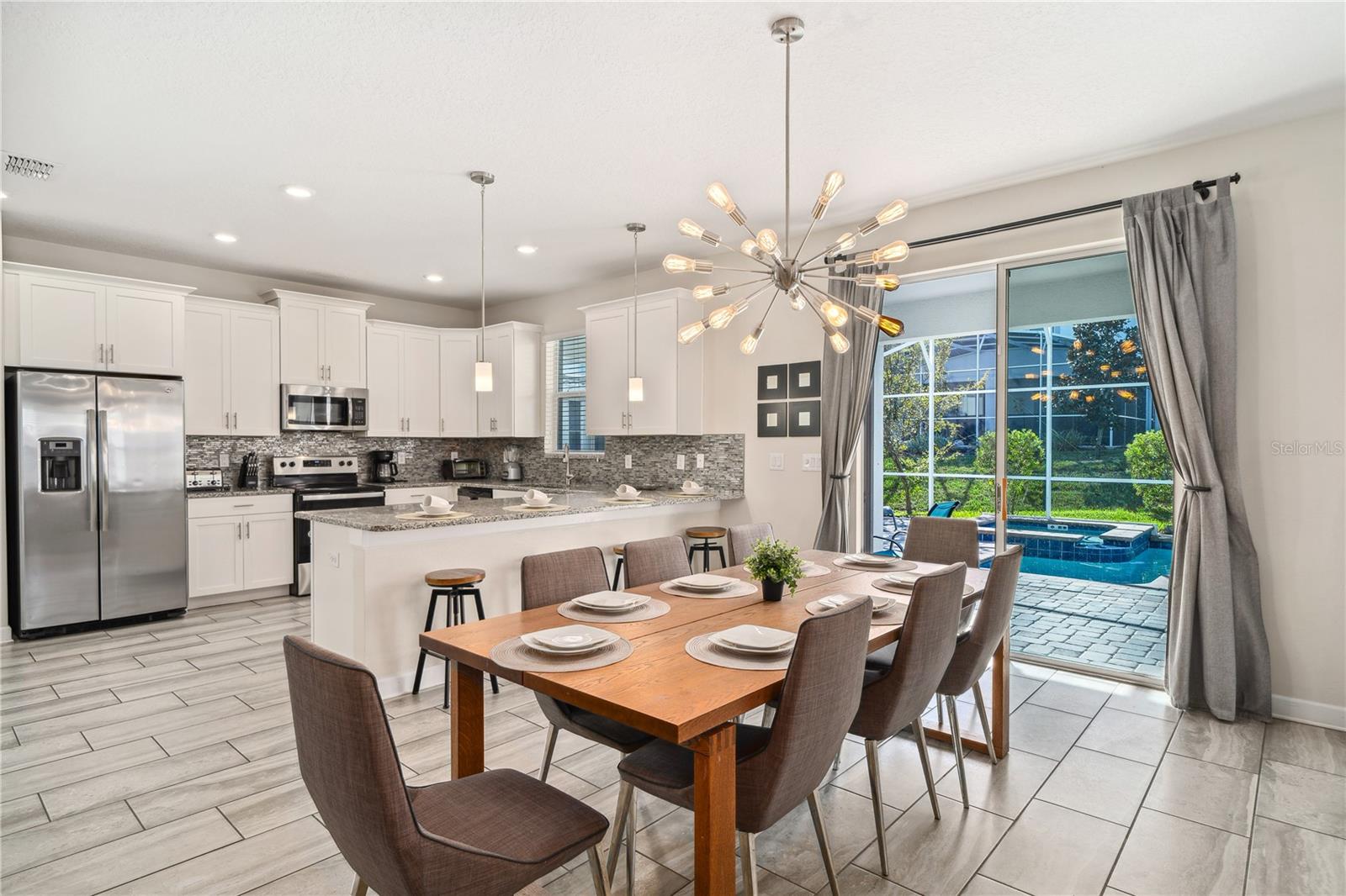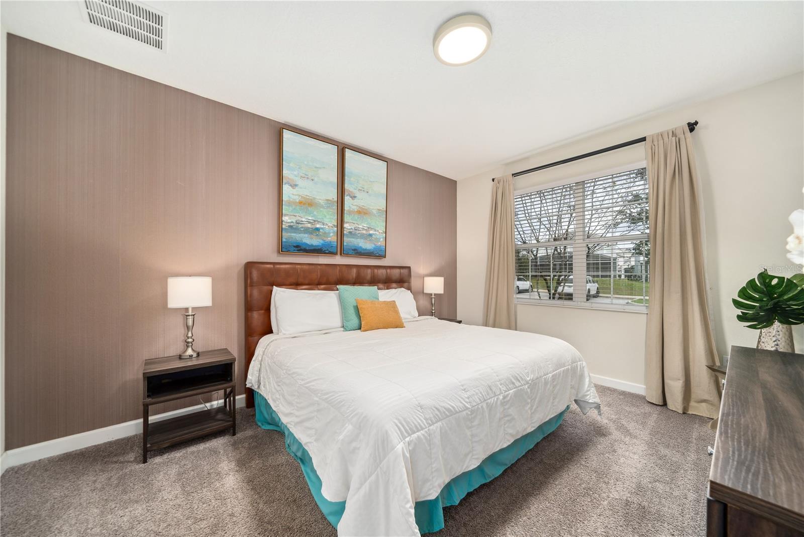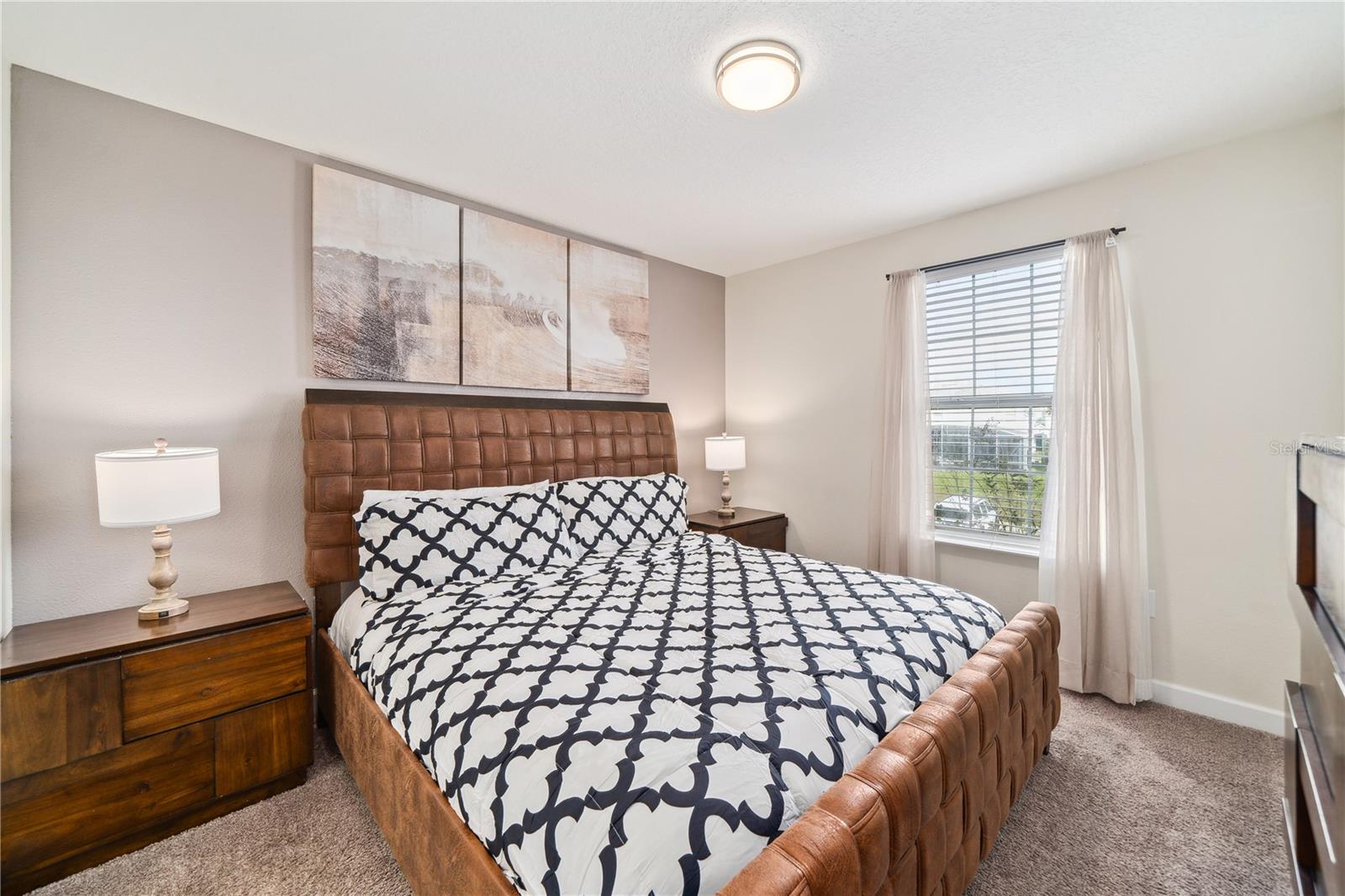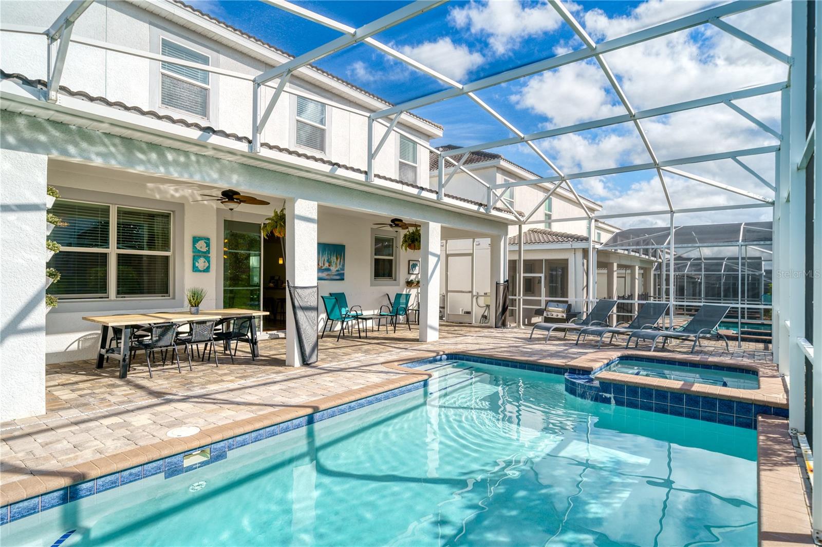 Welcome to 9022 Stinger Drive, a modern and elegant 6-bedroom, 6-bathroom home located in the highly sought-after Champions Gate Resort, specifically in "The Retreat." This FULLY FURNISHED property offers an exceptional location to the OASIS CLUB HOUSE and an impressive array of top-notch amenities, making it a rare find in the market. Upon entering the home, you'll be immediately struck by the professionally decorated interior, which has been beautifully maintained. The FIRST PRIMARY SUITE is conveniently located on the LOWER LEVEL, offering both privacy and ease of access. The en-suite bathroom with large walk-in shower and vanities is an ideal tranquil space. The OPEN FLOOR PLAN provides a seamless flow from the gathering area to the large kitchen, with a full view of the beautiful serene pool and spa. Additionally, there is a common playroom, perfect for kids' playtime adjacent to the kitchen. The large and open kitchen complete with granite countertops, open island-like countertop with ample seating area, side by side refrigerator, glass top range, built-in microwave, and dishwasher make this space a great area for friends and family in preparing meals. Flowing from the kitchen area into the formal dining area creates the perfect space for all to enjoy. Opening into the pool area offers a large covered lanai with ample seating to overlook the pool & spa area. Upstairs, you'll find a THEMED Mickey & Minnie bedroom and guest bathroom. An oversized SECOND PRIMARY SUITE with a sitting area, as well as a bathroom with a soaking tub and shower, provides an ideal space for quiet relaxation. There are also two additional guest rooms with their own en-suites, along with a family/flex space with a sitting/TV area. Completing the perfection of this RARE investment opportunity is the fact that across from the property are MULTIPLE PARKING SPOTS making it an ideal spot when arriving with multiple vehicles with family and friends. Spanning over 3300 square feet, this spacious home offers one of the larger 6-bedroom floor plans available in Champions Gate. The south-facing pool is perfect for enjoying the Florida sun and hosting relaxing pool days with family and friends. Champions Gate Resort is renowned for its exceptional amenities, including a multimillion-dollar community pool and clubhouse, lazy river, fitness center, golf course, full-service restaurant, and much more. The resort's proximity to Disney Parks, restaurants, theme parks, highways, and shopping further adds to its allure. Whether you're seeking a second home or an investment property, this fully furnished home is truly turn-key. With the association taking care of exterior maintenance, you can focus on creating lasting memories with your loved ones. This is an incredible opportunity to own a piece of paradise in Champions Gate Resort. Make this home the backdrop for unforgettable family moments and start enjoying the resort lifestyle you've always dreamed of. Don't miss out on the chance to own this stunning property in one of the most desirable locations in the area.