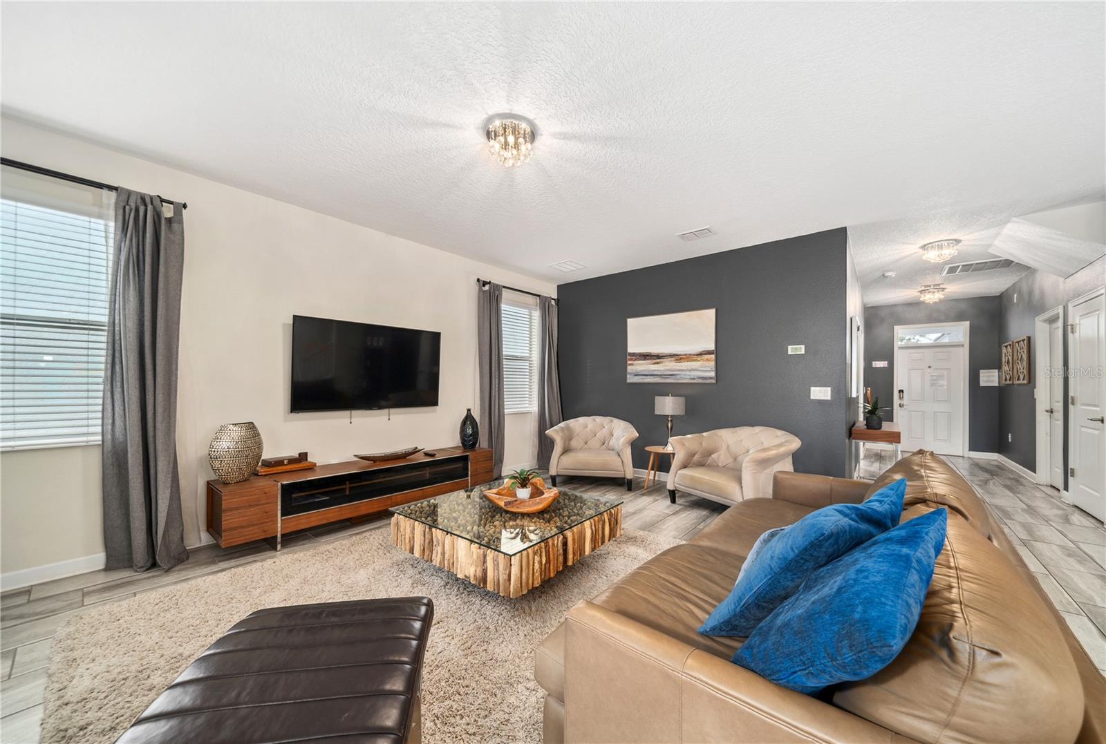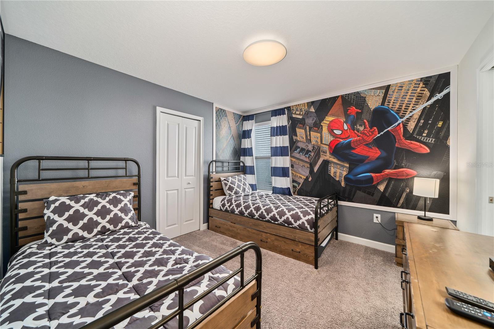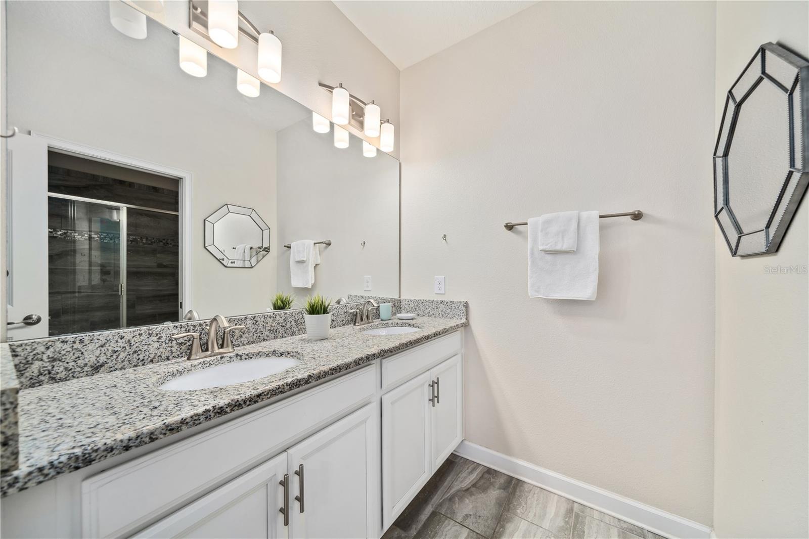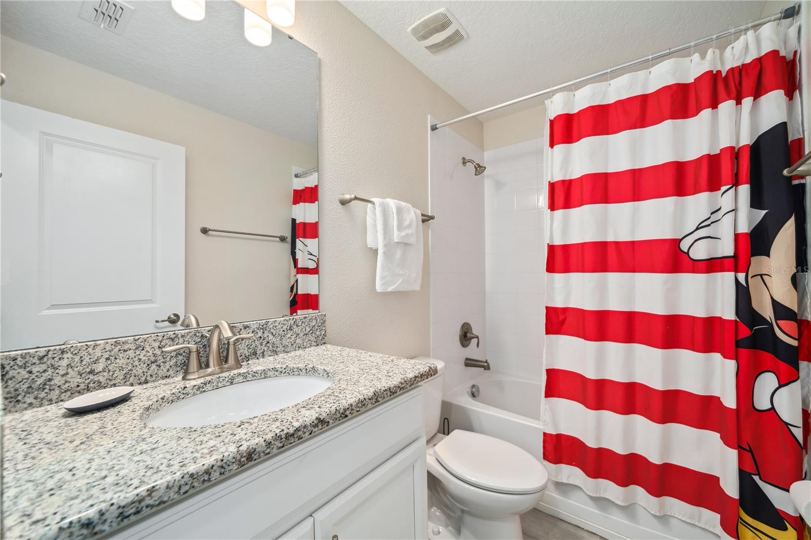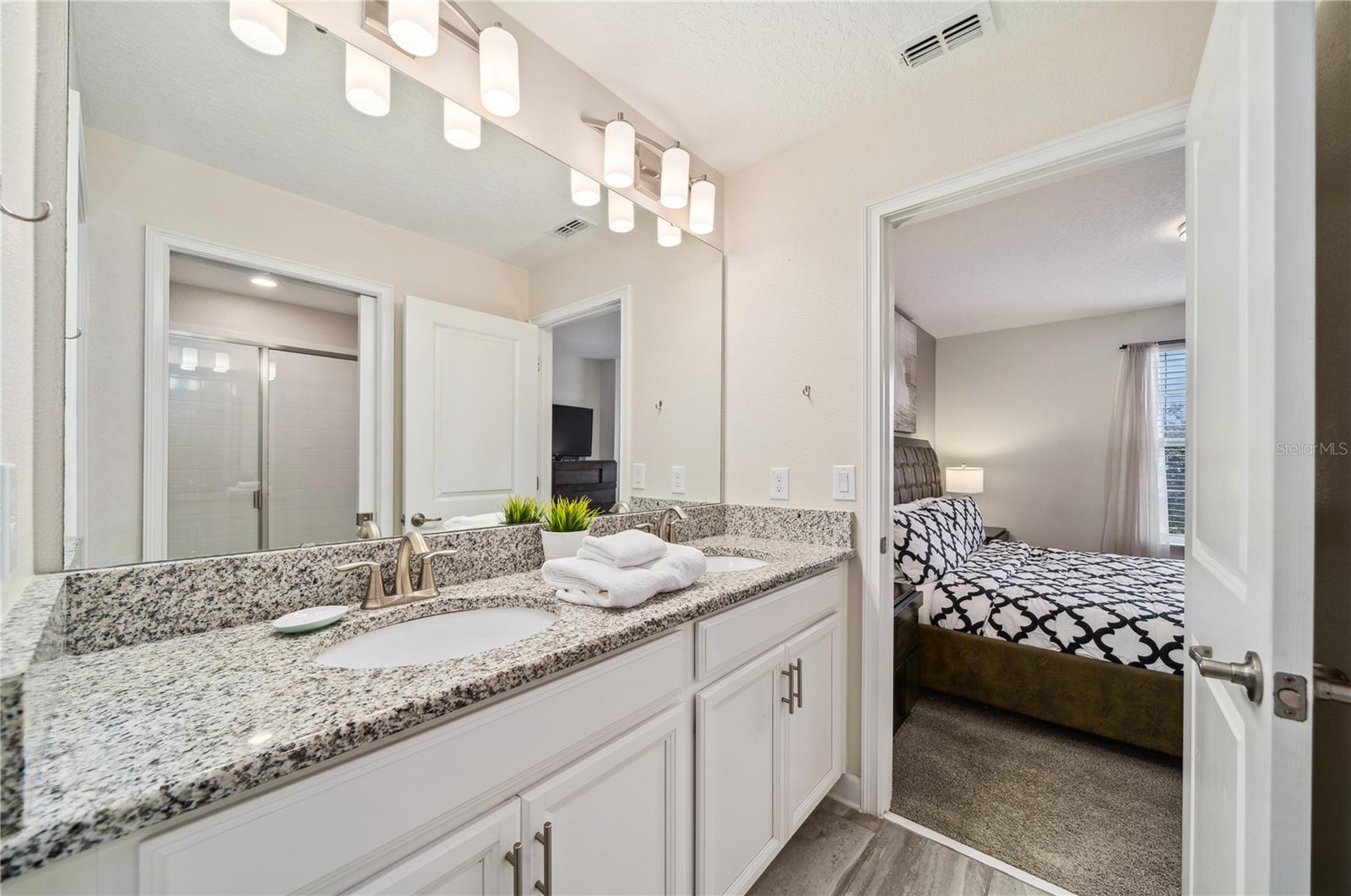 Welcome to 9022 Stinger Drive, a modern and elegant 6-bedroom, 6-bathroom home located in the highly sought-after Champions Gate Resort, specifically in "The Retreat." This FULLY FURNISHED property offers an exceptional location to the OASIS CLUB HOUSE and an impressive array of top-notch amenities, making it a rare find in the market. Upon entering the home, you'll be immediately struck by the professionally decorated interior, which has been beautifully maintained. The FIRST PRIMARY SUITE is conveniently located on the LOWER LEVEL, offering both privacy and ease of access. The en-suite bathroom with large walk-in shower and vanities is an ideal tranquil space. The OPEN FLOOR PLAN provides a seamless flow from the gathering area to the large kitchen, with a full view of the beautiful serene pool and spa. Additionally, there is a common playroom, perfect for kids' playtime adjacent to the kitchen. The large and open kitchen complete with granite countertops, open island-like countertop with ample seating area, side by side refrigerator, glass top range, built-in microwave, and dishwasher make this space a great area for friends and family in preparing meals. Flowing from the kitchen area into the formal dining area creates the perfect space for all to enjoy. Opening into the pool area offers a large covered lanai with ample seating to overlook the pool & spa area. Upstairs, you'll find a THEMED Mickey & Minnie bedroom and guest bathroom. An oversized SECOND PRIMARY SUITE with a sitting area, as well as a bathroom with a soaking tub and shower, provides an ideal space for quiet relaxation. There are also two additional guest rooms with their own en-suites, along with a family/flex space with a sitting/TV area. Completing the perfection of this RARE investment opportunity is the fact that across from the property are MULTIPLE PARKING SPOTS making it an ideal spot when arriving with multiple vehicles with family and friends. Spanning over 3300 square feet, this spacious home offers one of the larger 6-bedroom floor plans available in Champions Gate. The south-facing pool is perfect for enjoying the Florida sun and hosting relaxing pool days with family and friends. Champions Gate Resort is renowned for its exceptional amenities, including a multimillion-dollar community pool and clubhouse, lazy river, fitness center, golf course, full-service restaurant, and much more. The resort's proximity to Disney Parks, restaurants, theme parks, highways, and shopping further adds to its allure. Whether you're seeking a second home or an investment property, this fully furnished home is truly turn-key. With the association taking care of exterior maintenance, you can focus on creating lasting memories with your loved ones. This is an incredible opportunity to own a piece of paradise in Champions Gate Resort. Make this home the backdrop for unforgettable family moments and start enjoying the resort lifestyle you've always dreamed of. Don't miss out on the chance to own this stunning property in one of the most desirable locations in the area.