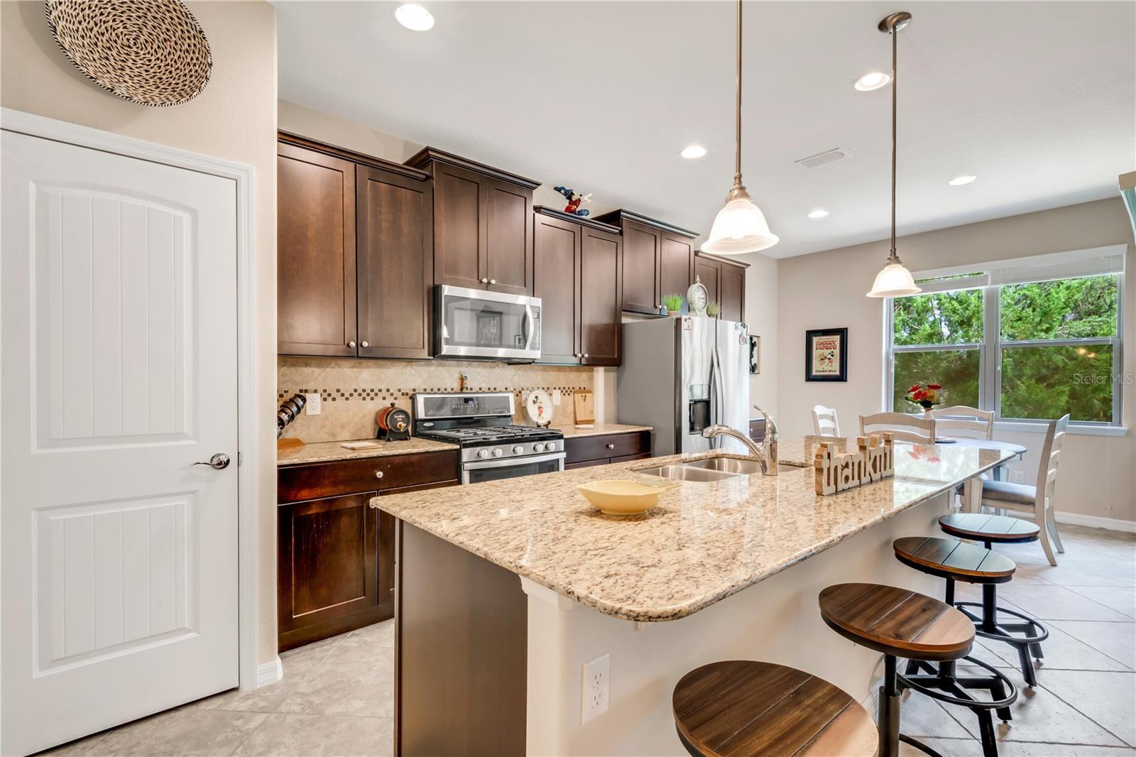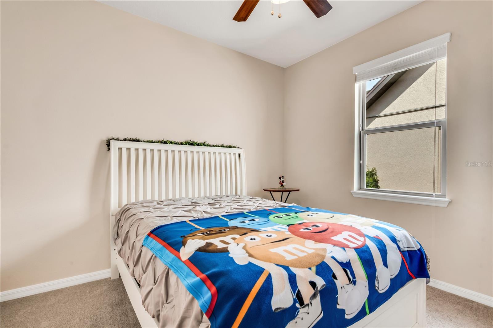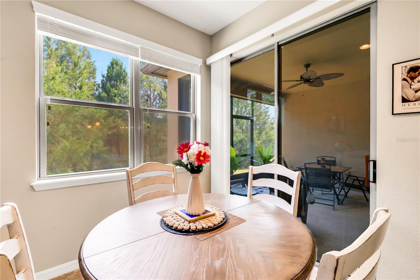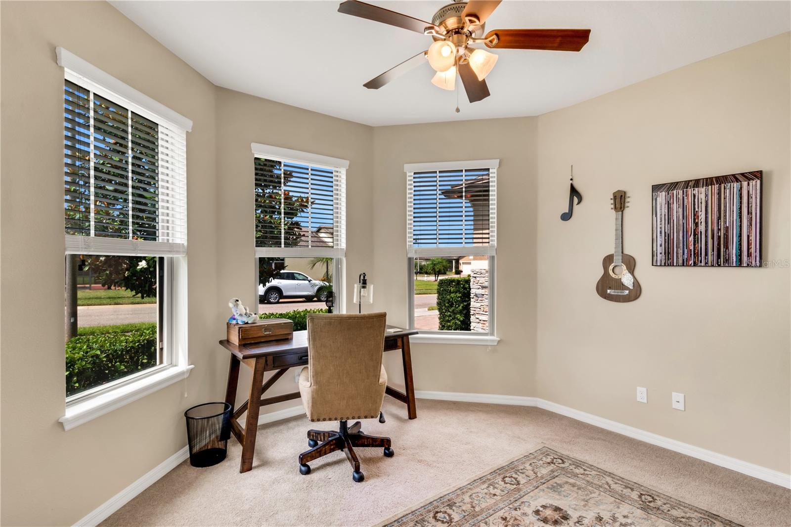 Welcome to Del Webb Orlando, a beautiful 55+ community inside the guard gates of Ridgewood Lakes. This home is the popular Vernon Hill floor plan with 3 bedrooms, 2 bathrooms, plus a den/office. The bedrooms all have ceiling fans for comfort. The open floor plan has the dining room, great room, and kitchen all adjacent to each other yet arranged comfortably. There is a kitchen nook for informal eating. The primary bedroom is towards the back and has a large bathroom and a large walk in closet attached. The room is large enough for a king bed. The primary bathroom has a shower and separate tub along with dual sinks. Out back is a screened in lanai for sitting and enjoying the sunsets. The hedges behind were recently planted and will continue to grow and provide privacy. The garage has the 4 ft extension providing extra room. This home is located very close to the clubhouse and all the amenities. Inside the clubhouse you'll find a library of books and movies, a full gym, indoor pool and spa, his and her locker rooms, craft rooms, ball rooms, and a tavern for enjoying food, drink, entertainment as well as visiting with friends. Outside you'll find pickleball, tennis, basketball, bocce ball, shuffleboard, a park for the little guests, another park for the 4 legged residents(dog park), and plenty of miles to walk, bike, or cruise in the golf cart. Speaking of golf, inside this gated community is the White Heron Golf course. Enjoy golf as much as you want without leaving the gates. All this and so close to shopping, Disney, Universal, Sea World, and medical facilities.
