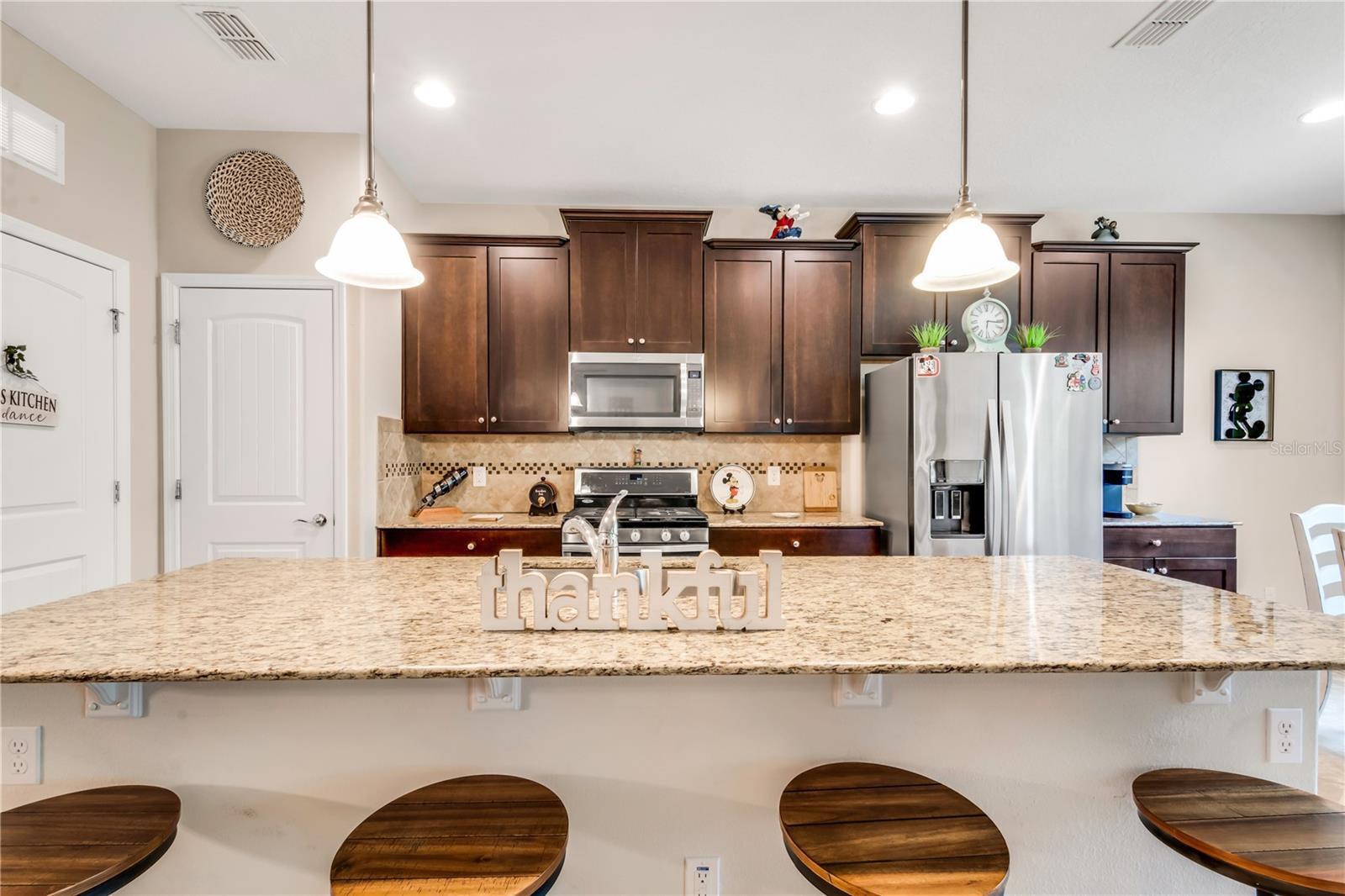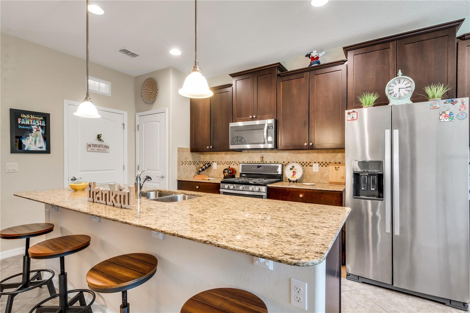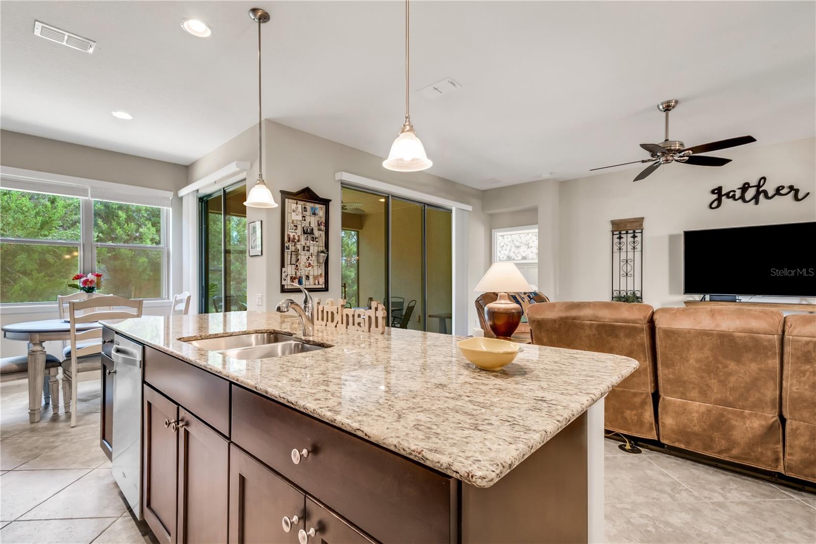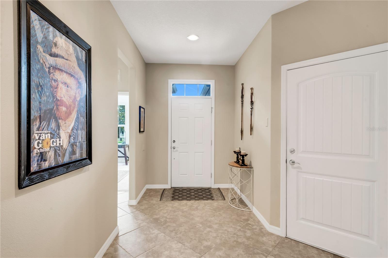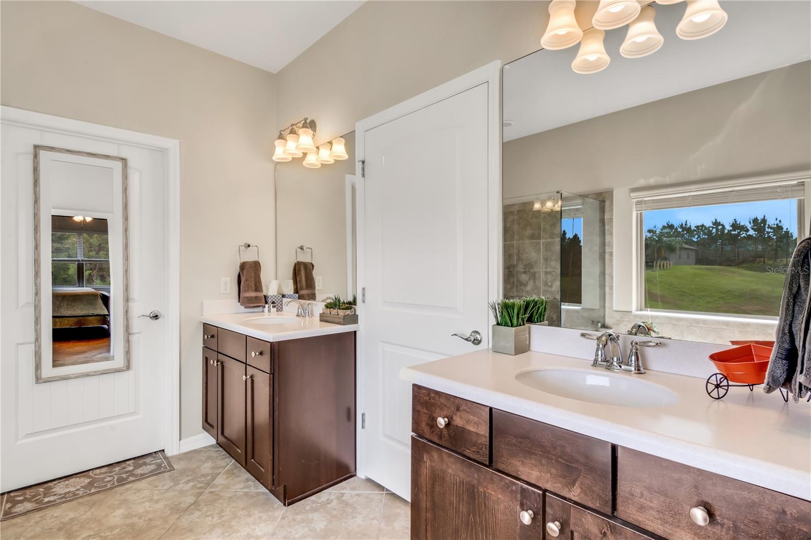 Welcome to Del Webb Orlando, a beautiful 55+ community inside the guard gates of Ridgewood Lakes. This home is the popular Vernon Hill floor plan with 3 bedrooms, 2 bathrooms, plus a den/office. The bedrooms all have ceiling fans for comfort. The open floor plan has the dining room, great room, and kitchen all adjacent to each other yet arranged comfortably. There is a kitchen nook for informal eating. The primary bedroom is towards the back and has a large bathroom and a large walk in closet attached. The room is large enough for a king bed. The primary bathroom has a shower and separate tub along with dual sinks. Out back is a screened in lanai for sitting and enjoying the sunsets. The hedges behind were recently planted and will continue to grow and provide privacy. The garage has the 4 ft extension providing extra room. This home is located very close to the clubhouse and all the amenities. Inside the clubhouse you'll find a library of books and movies, a full gym, indoor pool and spa, his and her locker rooms, craft rooms, ball rooms, and a tavern for enjoying food, drink, entertainment as well as visiting with friends. Outside you'll find pickleball, tennis, basketball, bocce ball, shuffleboard, a park for the little guests, another park for the 4 legged residents(dog park), and plenty of miles to walk, bike, or cruise in the golf cart. Speaking of golf, inside this gated community is the White Heron Golf course. Enjoy golf as much as you want without leaving the gates. All this and so close to shopping, Disney, Universal, Sea World, and medical facilities.