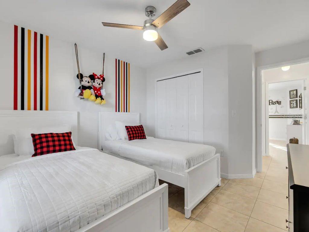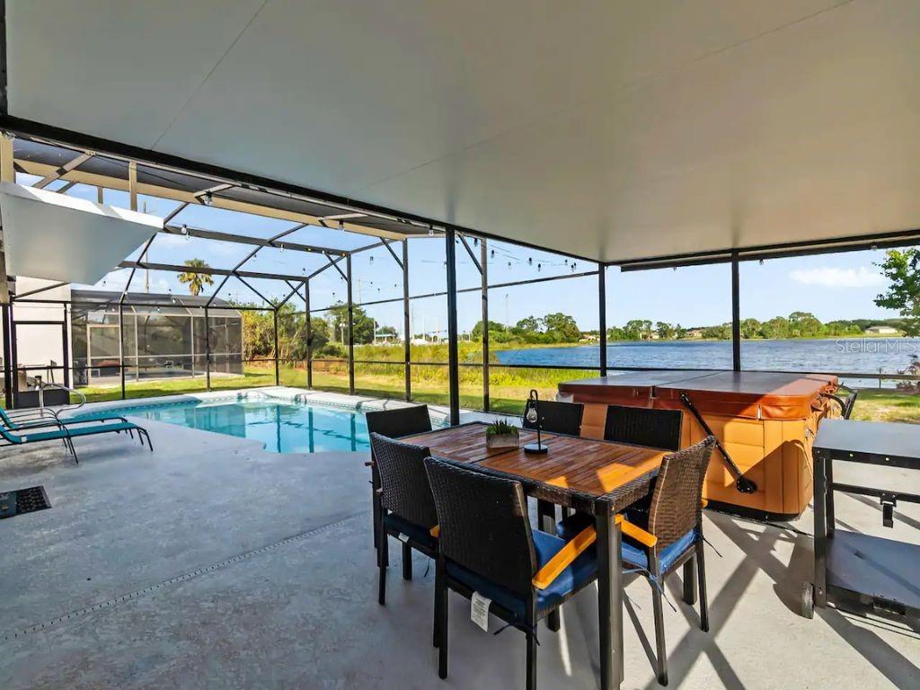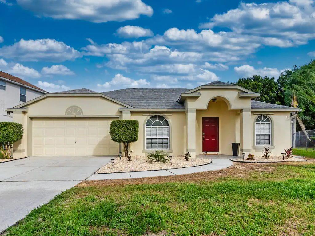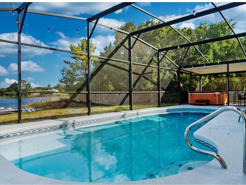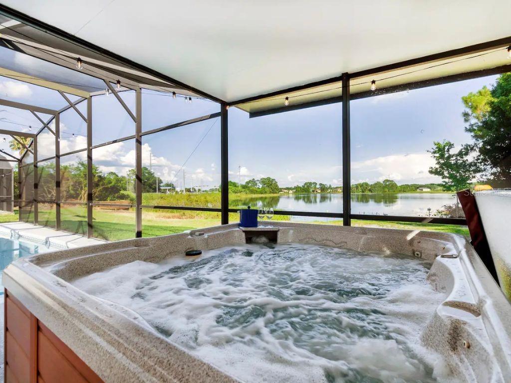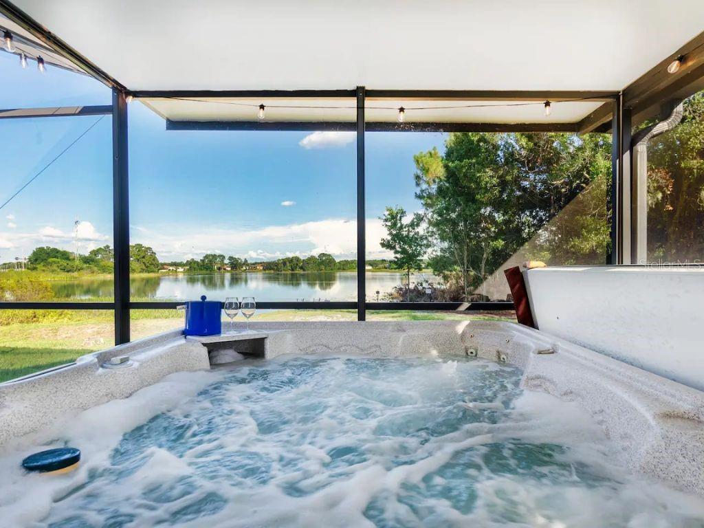 ! SHORT-TERM RENTAL, VACATION HOME, FULLY FURNISHED, PRIVATE POOL, TURNKEY AIRBNB, NO REAR NEIGHBORS, WATER VIEW. This gorgeous home is in the desirable Robbins Rest Place in beautiful Davenport, FL. The home comes fully furnished and ready for your needs as an investment home with current bookings or to move in as a primary home. It features 3 bedrooms and 2 full baths with 1,325 sq ft. The split floor plan is amazing, featuring a master suite, a separate entrance to the pool bathroom, a living room, and a family room. There is plenty of space to entertain your friends and family or for guests to enjoy your new vacation home. Appreciate the tile flooring throughout the house. The master bedroom features a large walk-in master closet, and the 2 bathrooms are completely remodeled, brand new kitchen with stainless steel appliances Enjoy the large lot with a covered porch and an amazing screened-in private pool south-facing the Lake located on 1/4 acre. Large, screened pool deck and extra space for entertainment, with tables and chairs. Hurricane shutters are available. Other features include a washer and dryer included in the sale, ceiling fans, and many more upgrades! The home is located minutes from Disney, Champions Gate, near Old Lake Wilson Road, close to shops and restaurants, and Disney attractions,