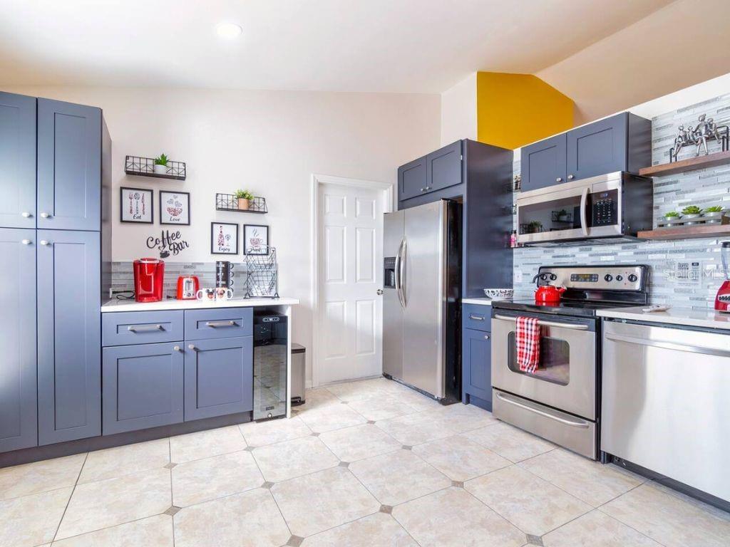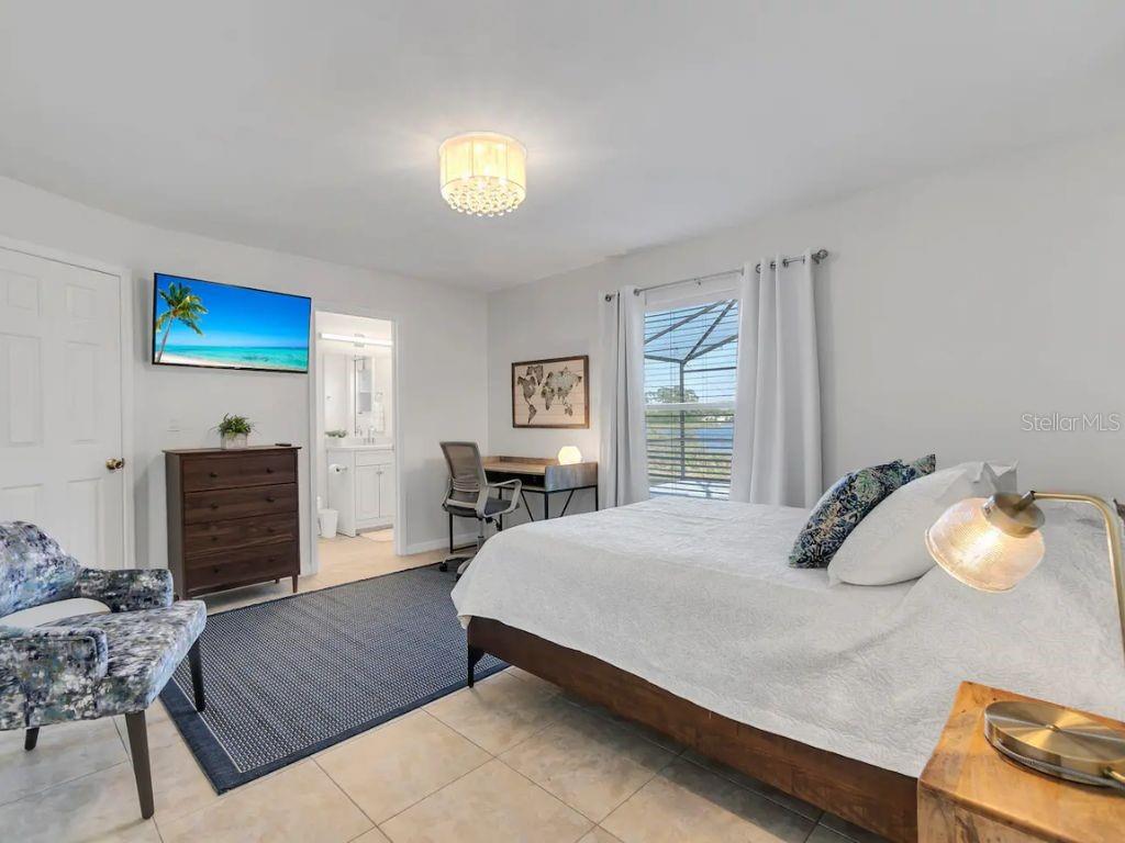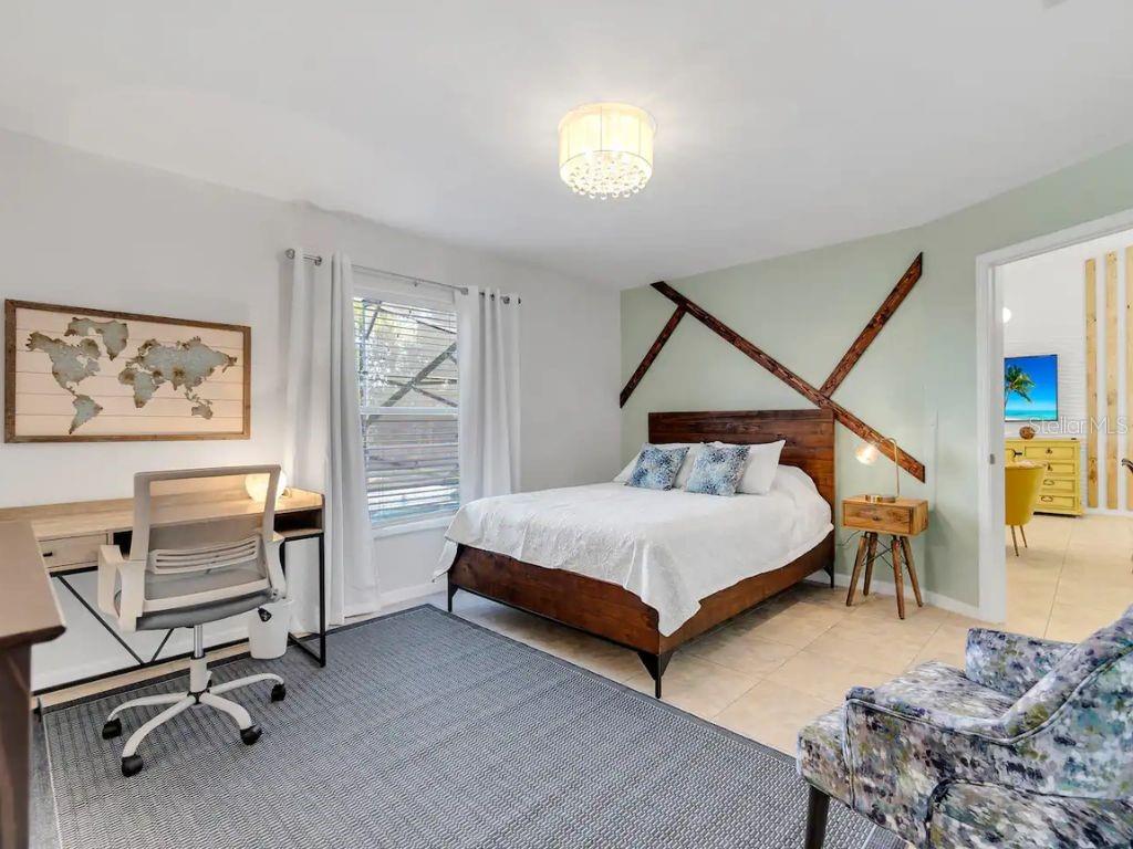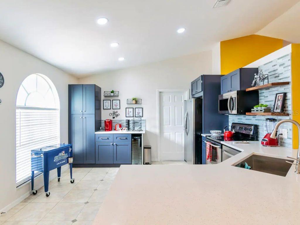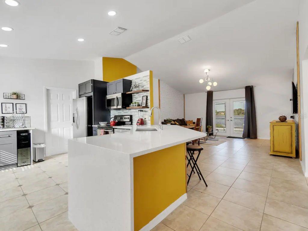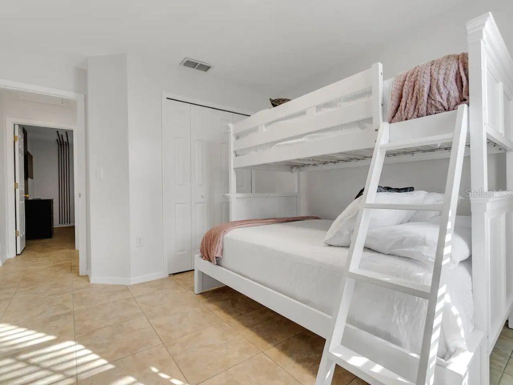 ! SHORT-TERM RENTAL, VACATION HOME, FULLY FURNISHED, PRIVATE POOL, TURNKEY AIRBNB, NO REAR NEIGHBORS, WATER VIEW. This gorgeous home is in the desirable Robbins Rest Place in beautiful Davenport, FL. The home comes fully furnished and ready for your needs as an investment home with current bookings or to move in as a primary home. It features 3 bedrooms and 2 full baths with 1,325 sq ft. The split floor plan is amazing, featuring a master suite, a separate entrance to the pool bathroom, a living room, and a family room. There is plenty of space to entertain your friends and family or for guests to enjoy your new vacation home. Appreciate the tile flooring throughout the house. The master bedroom features a large walk-in master closet, and the 2 bathrooms are completely remodeled, brand new kitchen with stainless steel appliances Enjoy the large lot with a covered porch and an amazing screened-in private pool south-facing the Lake located on 1/4 acre. Large, screened pool deck and extra space for entertainment, with tables and chairs. Hurricane shutters are available. Other features include a washer and dryer included in the sale, ceiling fans, and many more upgrades! The home is located minutes from Disney, Champions Gate, near Old Lake Wilson Road, close to shops and restaurants, and Disney attractions,