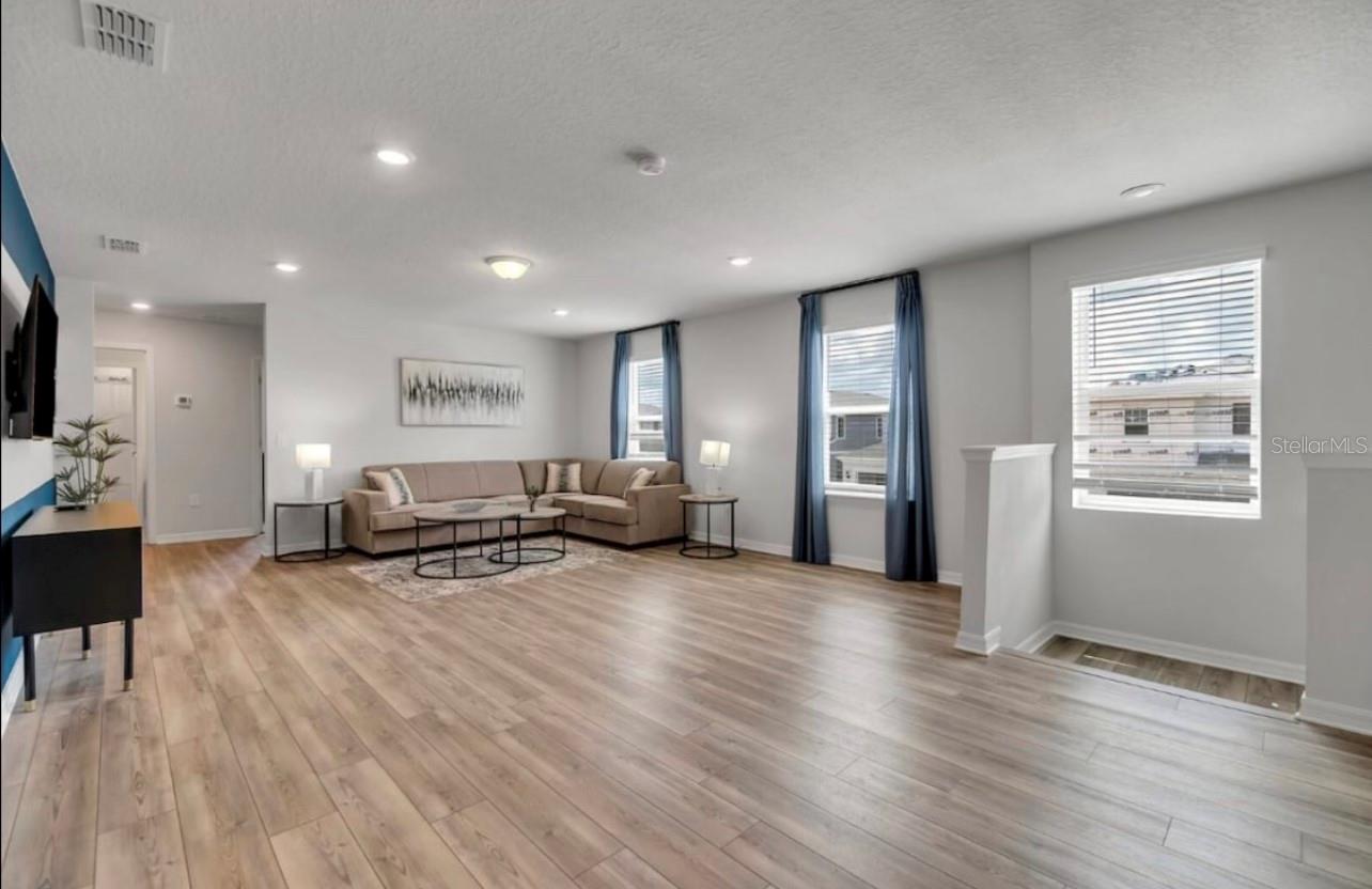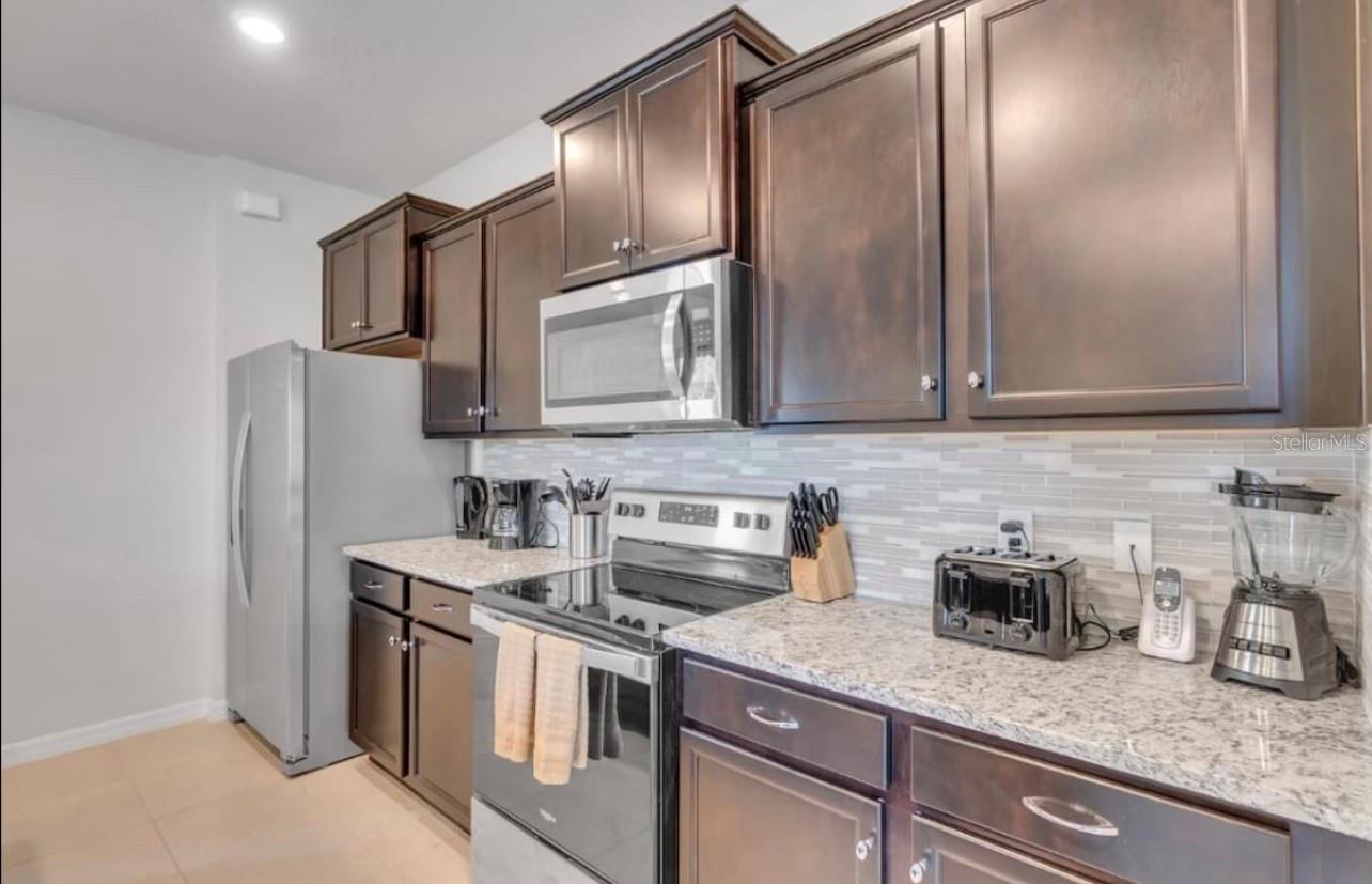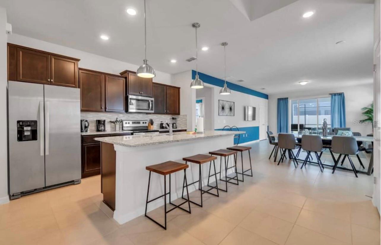Whether you plan to use as a short term vacation rental or a personal vacation getaway... this home & community are right for you! Don't miss your chance to bypass builder waiting lists and get into a FRESH, 2022 built Pulte Home! This spacious 7 bedroom, 5.5 bath 2 car garage pool home is located in the highly sought after Windsor Island Resort Community. As soon as you walk in you'll notice the soaring ceilings and open concept floorplan, complete with a kitchen/dining/great room combo with huge sliding glass doors leading to the outside oasis. Master Bedroom & En Suite- with garden tub, dual sinks, shower, water closet- are located on the first floor. Also on the main level, you'll find the laundry room, half bath and a beautiful gourmet kitchen complete with granite countertops, stainless steal appliances and a large breakfast bar that's perfect for entertaining and everyday living alike! Upstairs you have a massive loft and the remaining bedrooms. Amenities include- waterpark style community resort pool with dueling slides- lazy river- hot tub/spa- splash pad-pool side miniature golf course- outdoor bar and dinning- fire pit area- clubhouse- fitness center- arcade/ gaming room- playground- basketball courts- soccer fields & more! Close to Disney & other Theme Parks, Local Attractions, Shopping, Restaurants, Orlando International Airport & Major Highways taking you the Beaches... this location is BEYOND prime!