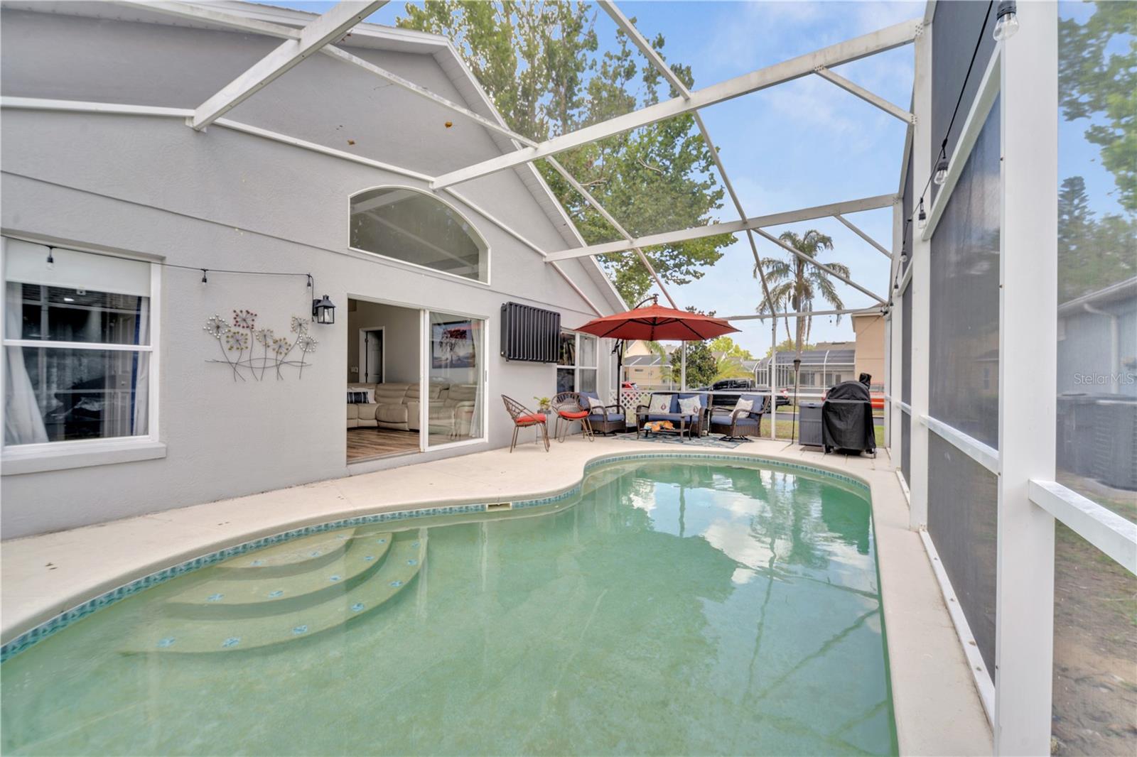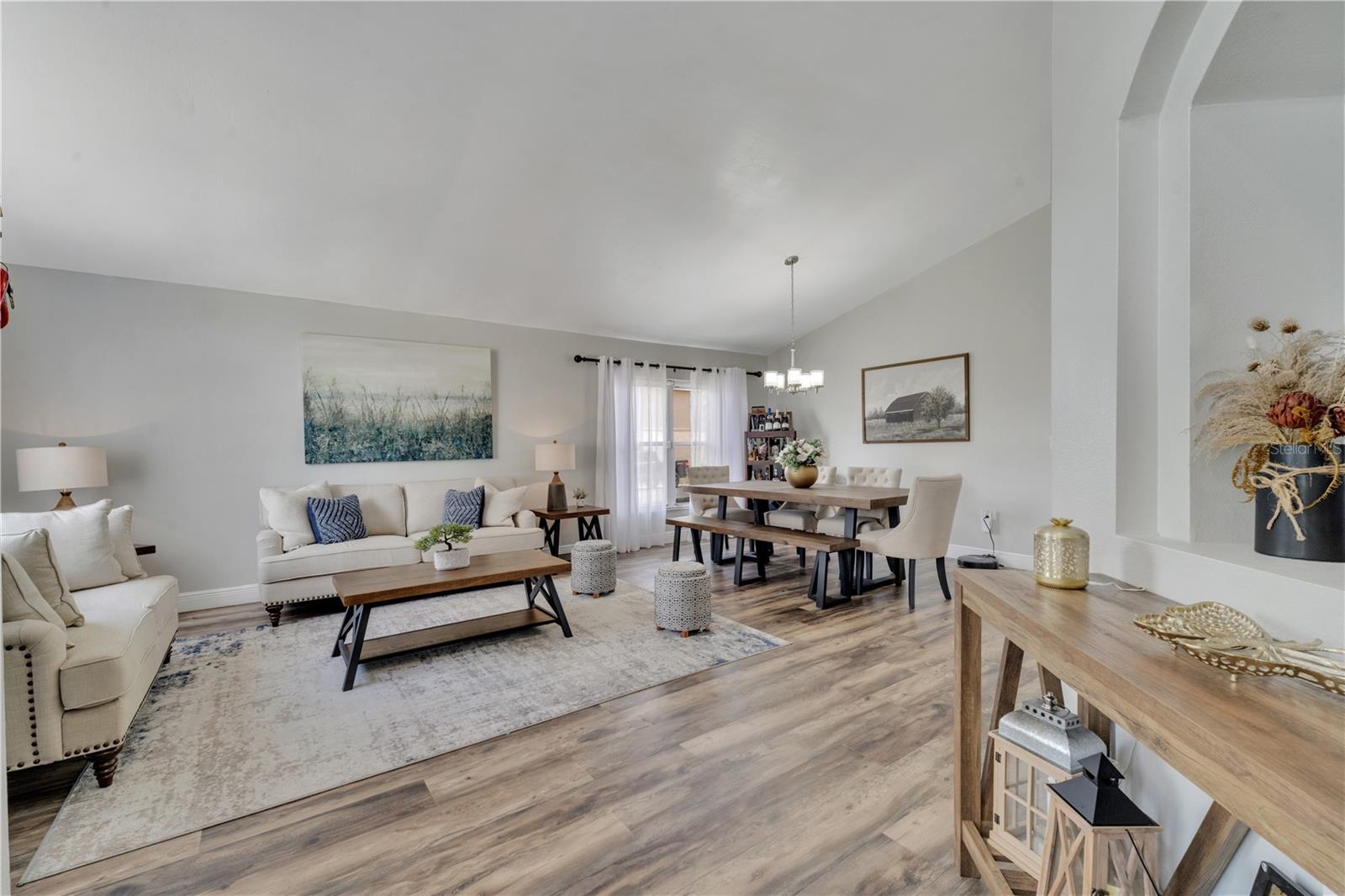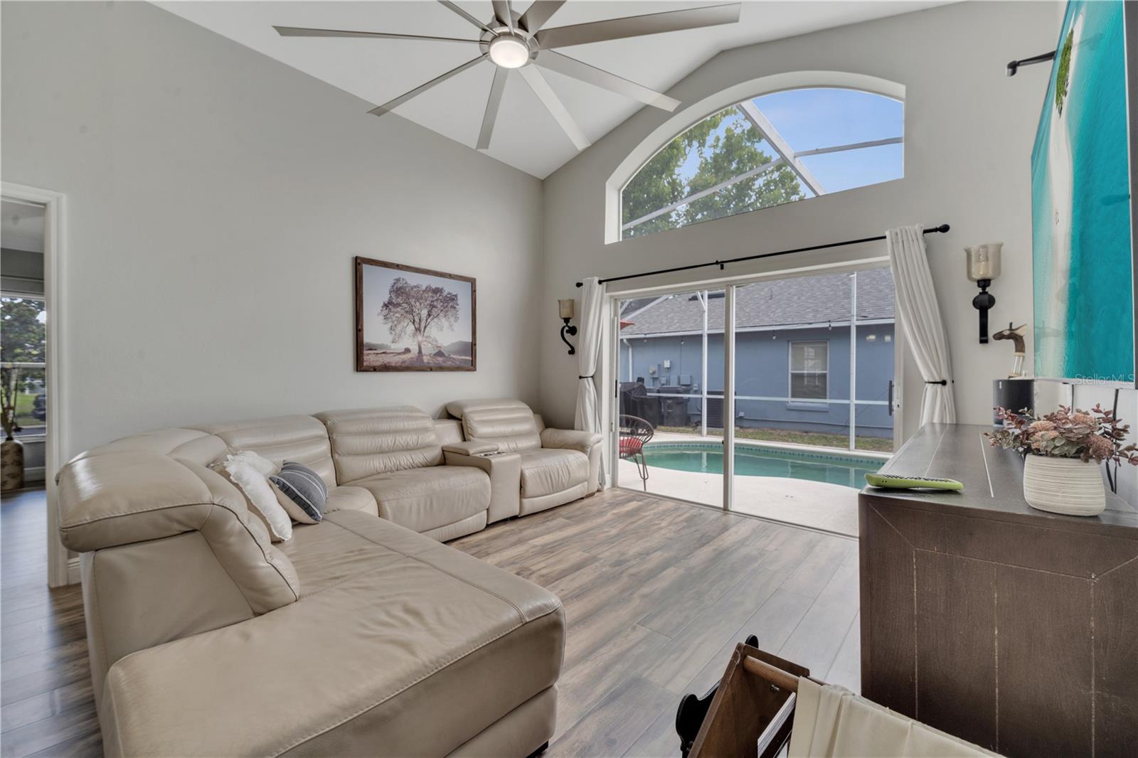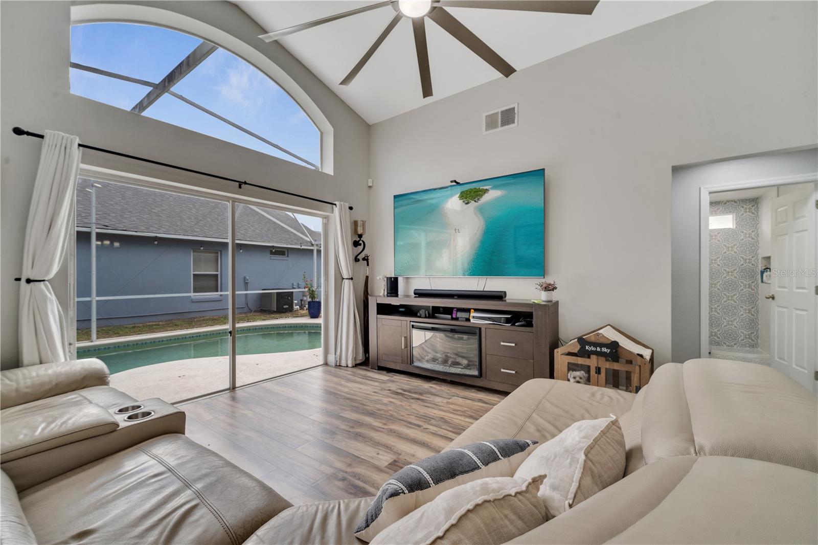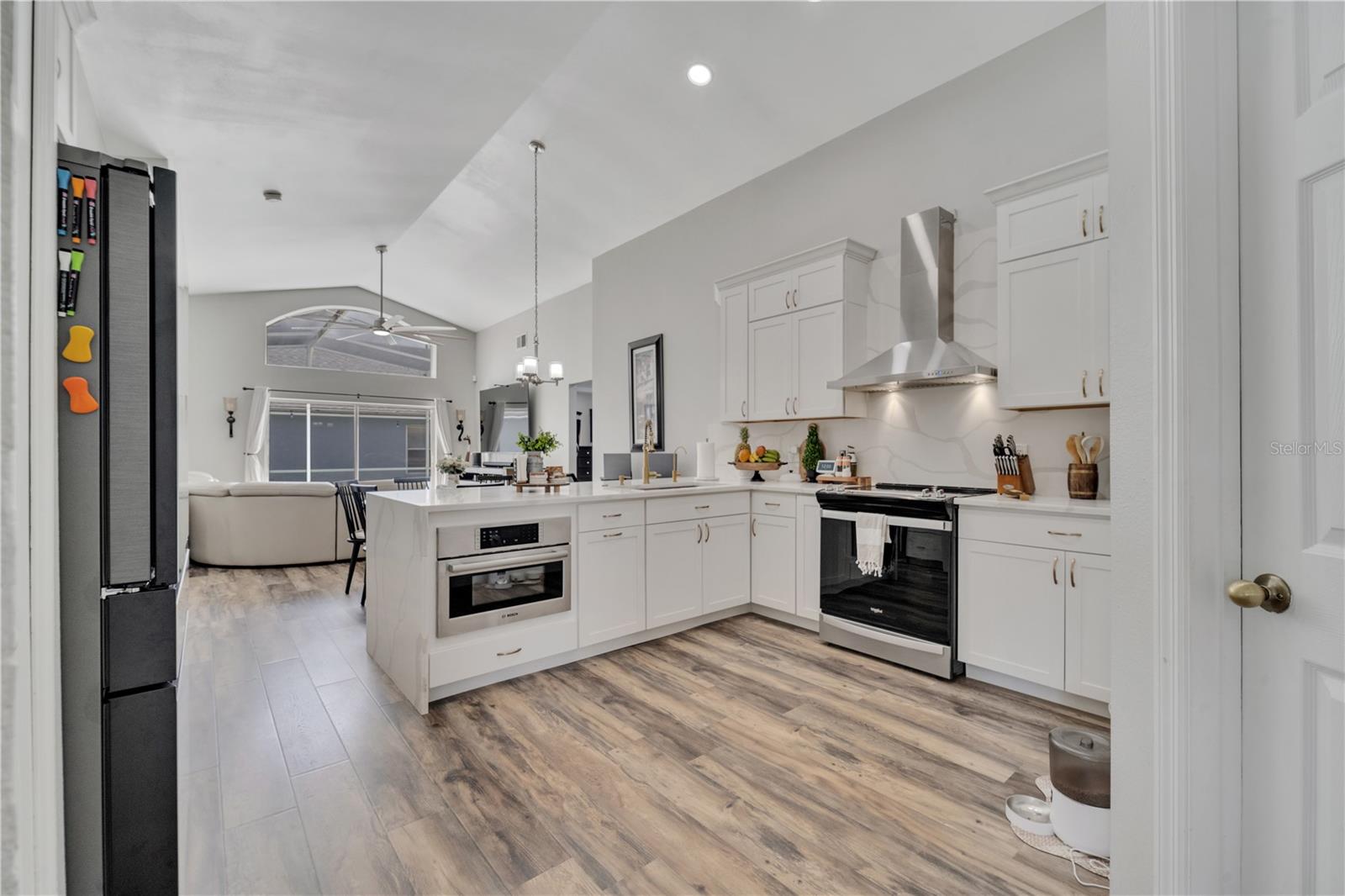 Welcome to the highly sought-after Westridge gated community. This stunning 4 bedroom, 2 bathroom home, perfectly situated on an Oversized Corner Lot, boasts a private heated pool and an array of recent upgrades that elevate its charm and functionality. Step inside to find brand-new real wood plank flooring throughout, setting a warm and inviting tone. The kitchen is a chef's dream, featuring sleek rainfall quartz countertops, a bright and stylish backsplash, 42-inch white cabinets, stainless steel appliances, and recessed lighting. Both bathrooms have been completely remodeled with quartz countertops, exuding a spa-like ambiance. The home's interior and exterior have been freshly painted, and it includes a new front door and rolling blinds for added privacy and convenience. The roof was replaced in 2017, and the AC system is from 2015, ensuring peace of mind and energy efficiency. Custom-built shelving in closets provides ample storage, while modern amenities like a Ring doorbell, security cameras, smart thermostat, Alexa-compatible front door, and lighting enhance everyday living. The pool area is a true oasis, with a brand-new pool pump and LED lights that change colors, perfect for evening relaxation or entertaining guests. The garage is equipped with a 9,500-watt generator connection and features counter space and flooring ideal for a home office or homeschooling setup. This home is not only a haven for personal enjoyment but also an excellent investment opportunity with short-term rentals allowed. The LOW HOA covers gate access, exterior maintenance, including lawn mowing, and provides access to community amenities such as a pool, gym, and clubhouse. Located just minutes from Champions Gate, I-4, Posner Park, Disney shops, and restaurants, Villas at Westridge offers convenience and a vibrant lifestyle. White PVC fences are permitted, adding to the home's privacy and aesthetic appeal. Plus, it's USDA eligible!