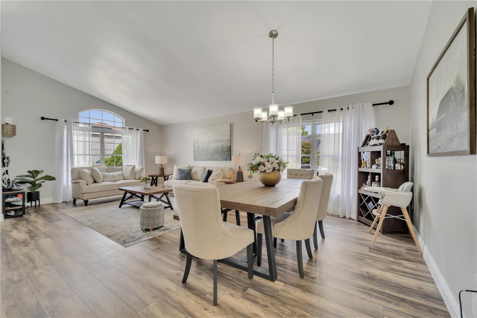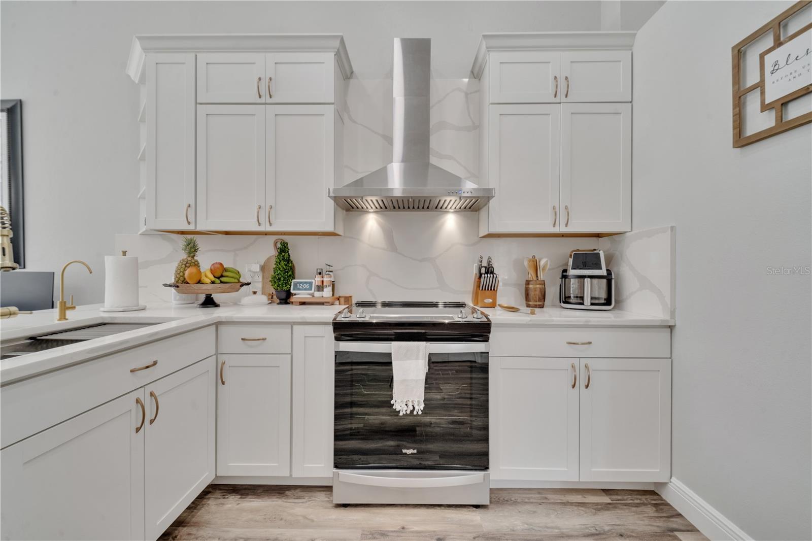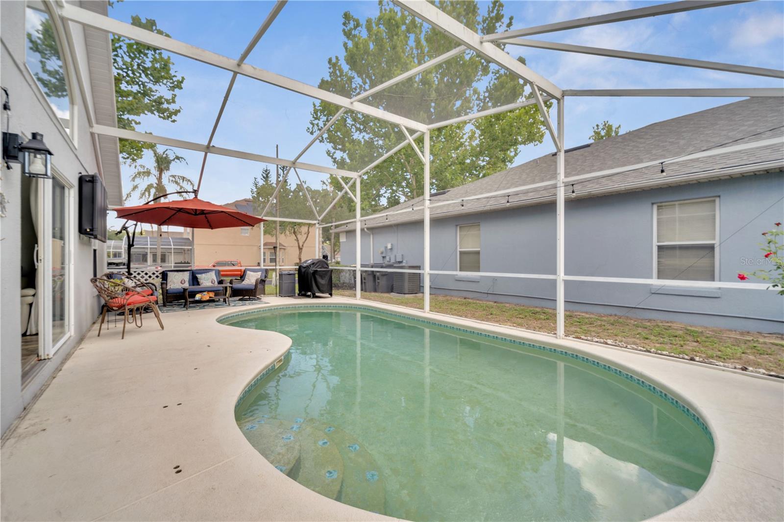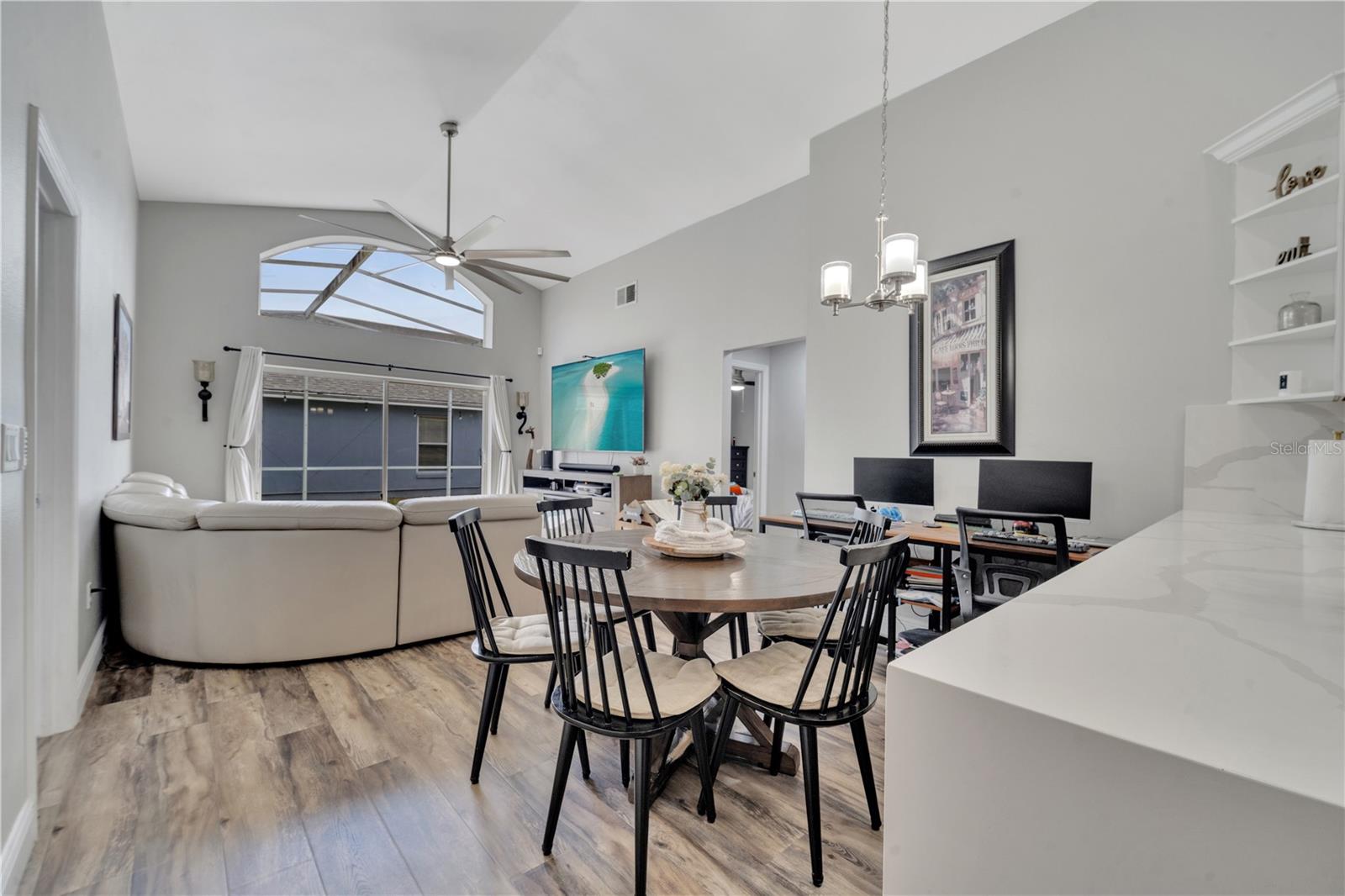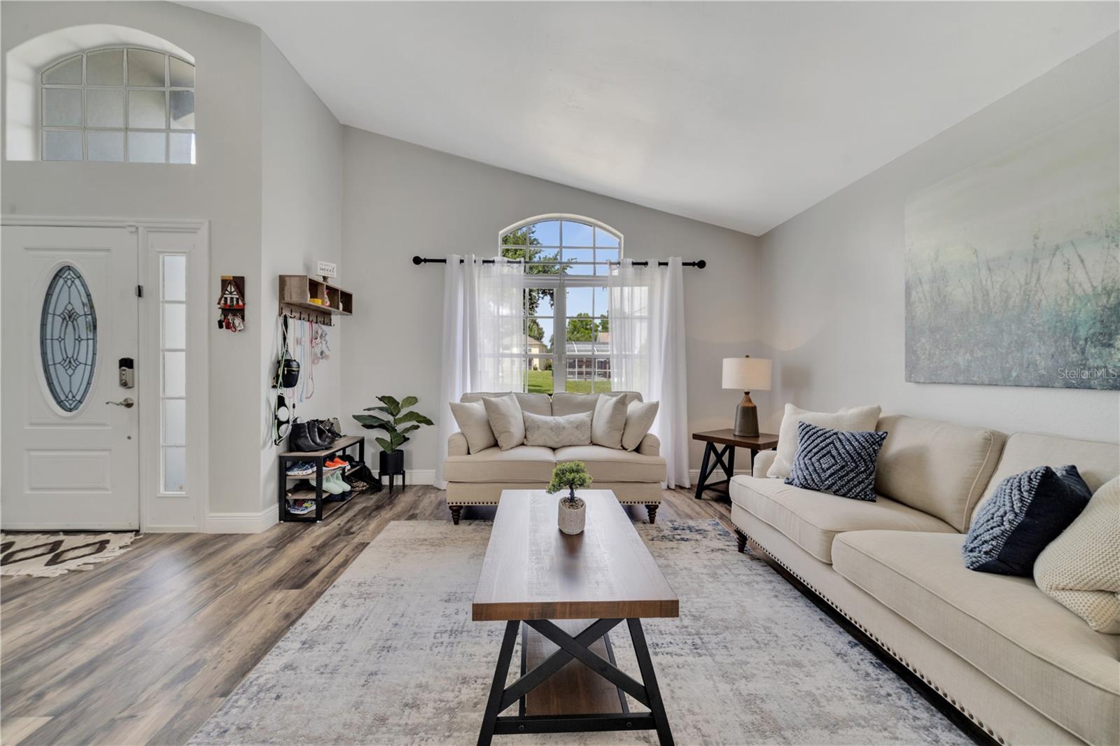 Welcome to the highly sought-after Westridge gated community. This stunning 4 bedroom, 2 bathroom home, perfectly situated on an Oversized Corner Lot, boasts a private heated pool and an array of recent upgrades that elevate its charm and functionality. Step inside to find brand-new real wood plank flooring throughout, setting a warm and inviting tone. The kitchen is a chef's dream, featuring sleek rainfall quartz countertops, a bright and stylish backsplash, 42-inch white cabinets, stainless steel appliances, and recessed lighting. Both bathrooms have been completely remodeled with quartz countertops, exuding a spa-like ambiance. The home's interior and exterior have been freshly painted, and it includes a new front door and rolling blinds for added privacy and convenience. The roof was replaced in 2017, and the AC system is from 2015, ensuring peace of mind and energy efficiency. Custom-built shelving in closets provides ample storage, while modern amenities like a Ring doorbell, security cameras, smart thermostat, Alexa-compatible front door, and lighting enhance everyday living. The pool area is a true oasis, with a brand-new pool pump and LED lights that change colors, perfect for evening relaxation or entertaining guests. The garage is equipped with a 9,500-watt generator connection and features counter space and flooring ideal for a home office or homeschooling setup. This home is not only a haven for personal enjoyment but also an excellent investment opportunity with short-term rentals allowed. The LOW HOA covers gate access, exterior maintenance, including lawn mowing, and provides access to community amenities such as a pool, gym, and clubhouse. Located just minutes from Champions Gate, I-4, Posner Park, Disney shops, and restaurants, Villas at Westridge offers convenience and a vibrant lifestyle. White PVC fences are permitted, adding to the home's privacy and aesthetic appeal. Plus, it's USDA eligible!