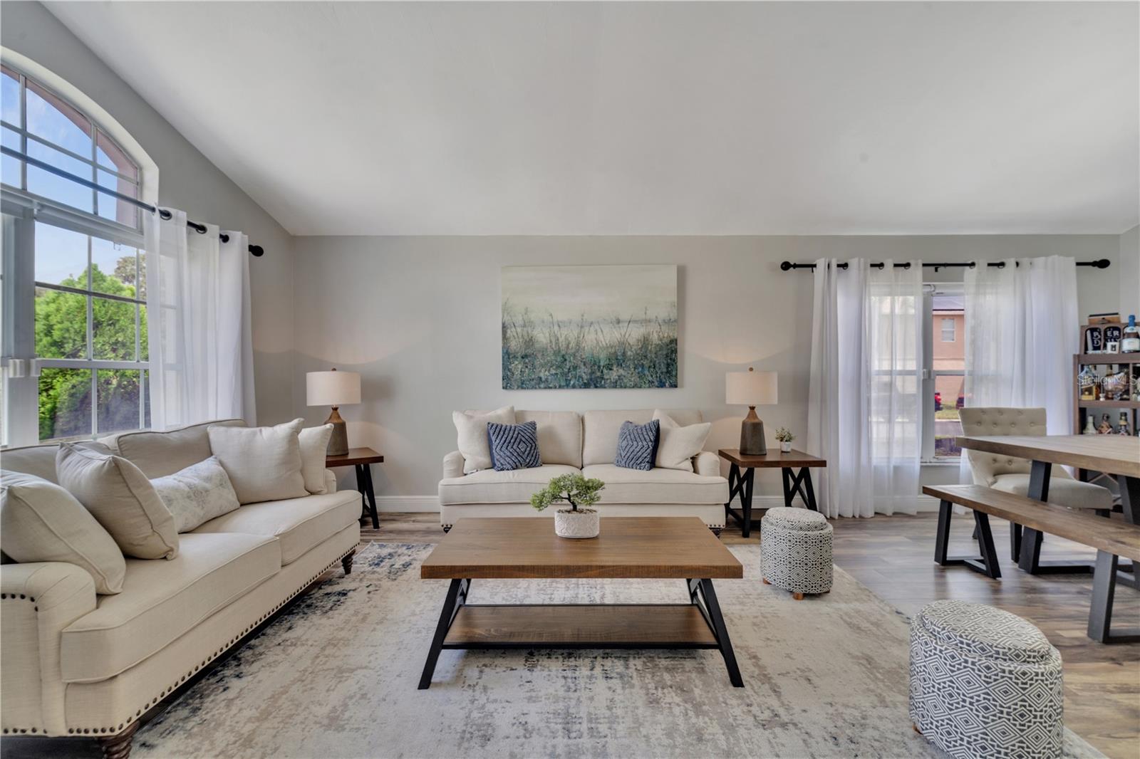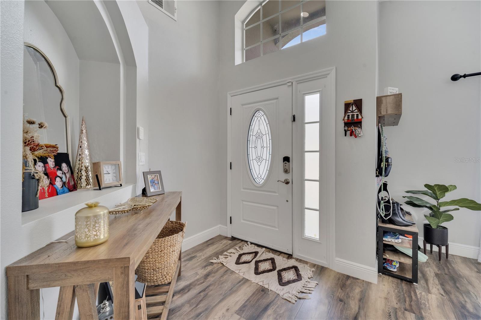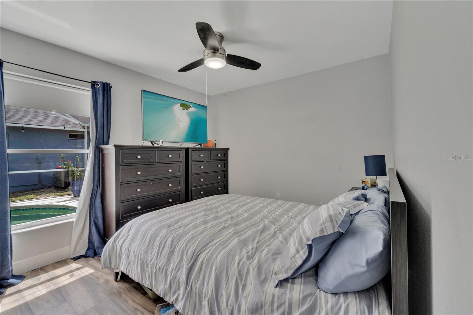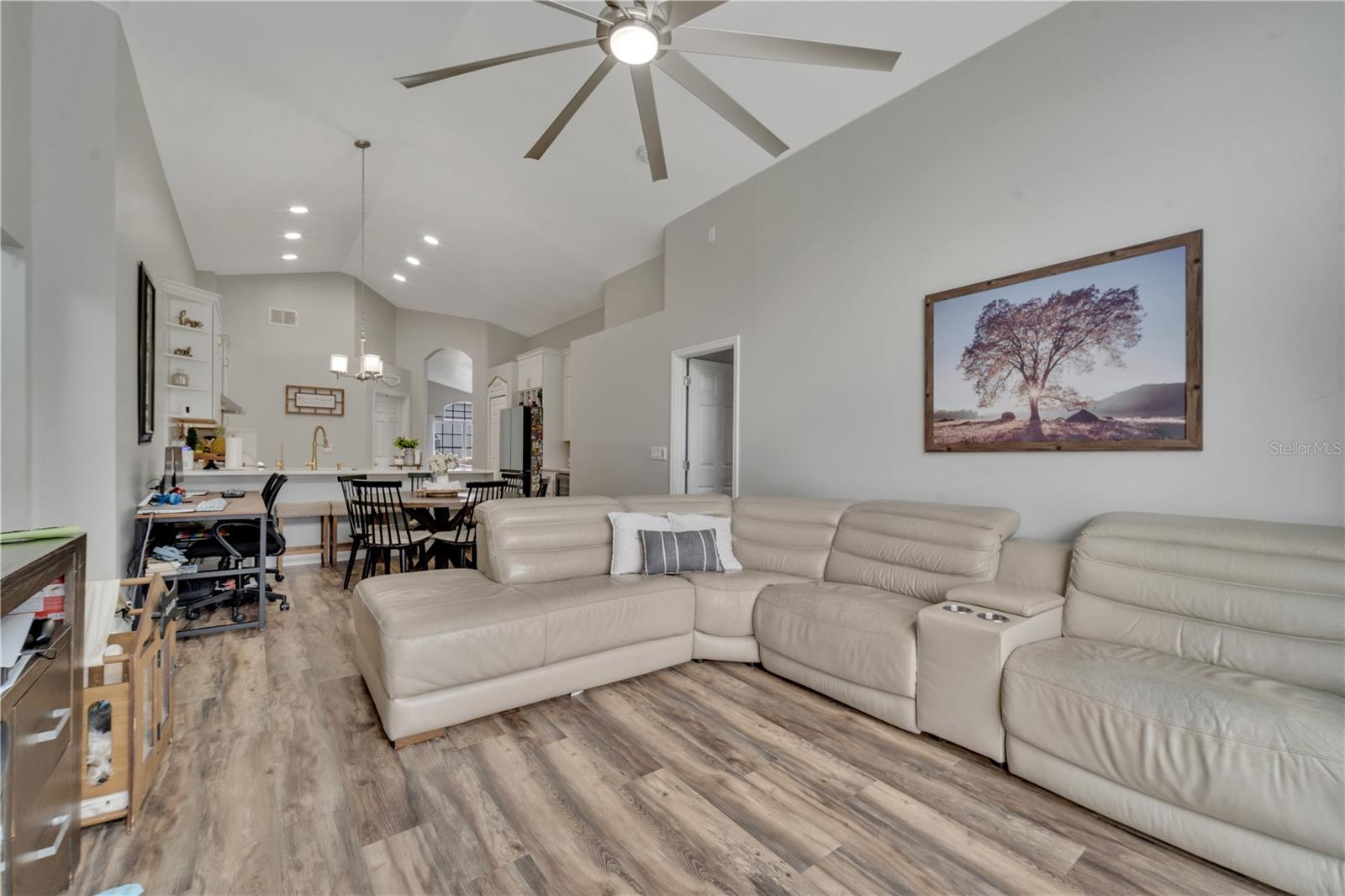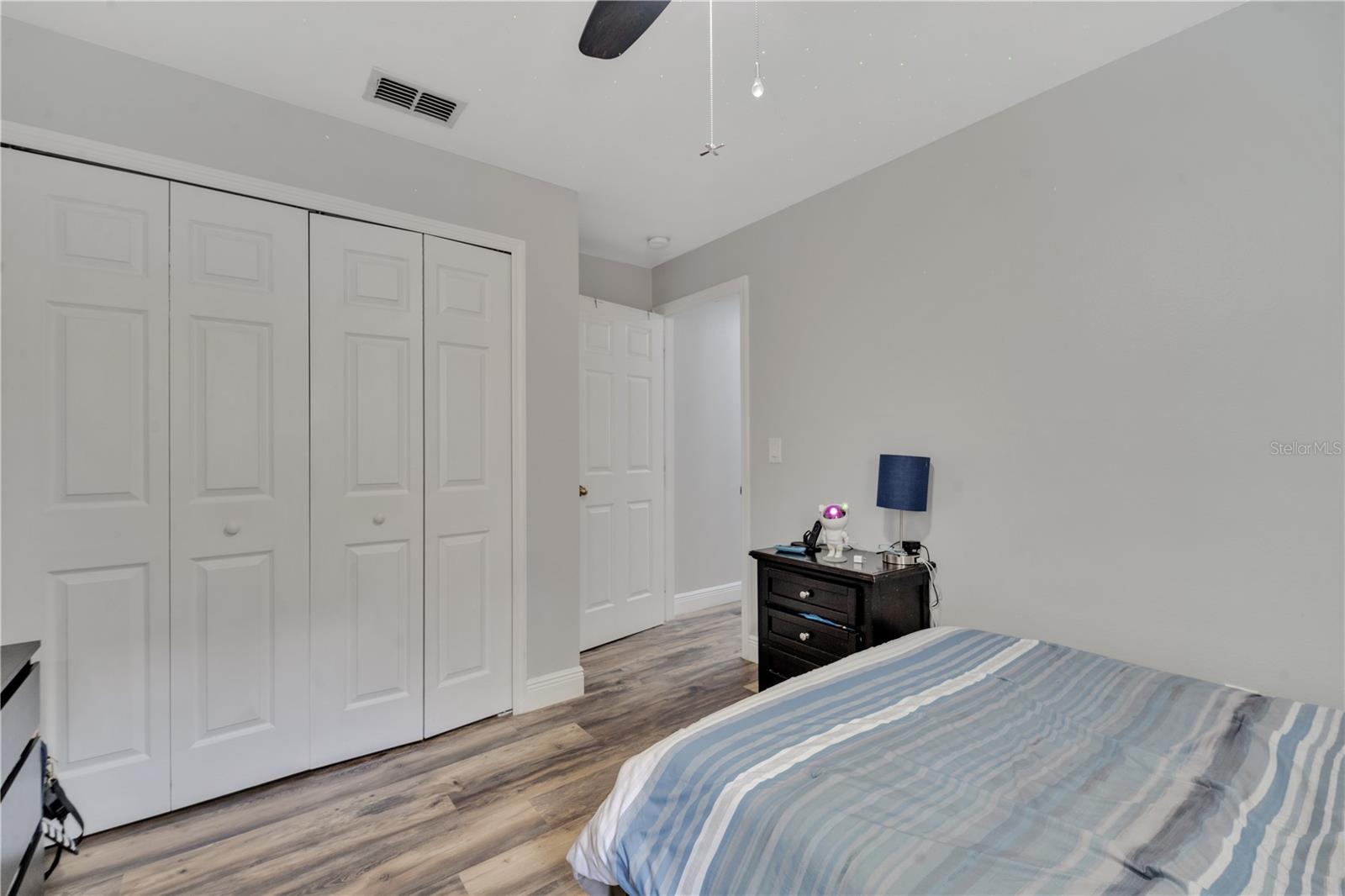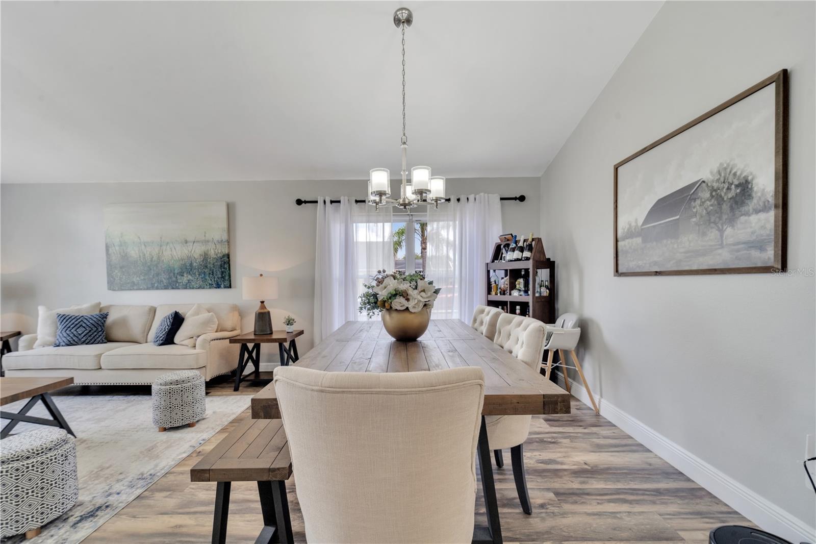 Welcome to the highly sought-after Westridge gated community. This stunning 4 bedroom, 2 bathroom home, perfectly situated on an Oversized Corner Lot, boasts a private heated pool and an array of recent upgrades that elevate its charm and functionality. Step inside to find brand-new real wood plank flooring throughout, setting a warm and inviting tone. The kitchen is a chef's dream, featuring sleek rainfall quartz countertops, a bright and stylish backsplash, 42-inch white cabinets, stainless steel appliances, and recessed lighting. Both bathrooms have been completely remodeled with quartz countertops, exuding a spa-like ambiance. The home's interior and exterior have been freshly painted, and it includes a new front door and rolling blinds for added privacy and convenience. The roof was replaced in 2017, and the AC system is from 2015, ensuring peace of mind and energy efficiency. Custom-built shelving in closets provides ample storage, while modern amenities like a Ring doorbell, security cameras, smart thermostat, Alexa-compatible front door, and lighting enhance everyday living. The pool area is a true oasis, with a brand-new pool pump and LED lights that change colors, perfect for evening relaxation or entertaining guests. The garage is equipped with a 9,500-watt generator connection and features counter space and flooring ideal for a home office or homeschooling setup. This home is not only a haven for personal enjoyment but also an excellent investment opportunity with short-term rentals allowed. The LOW HOA covers gate access, exterior maintenance, including lawn mowing, and provides access to community amenities such as a pool, gym, and clubhouse. Located just minutes from Champions Gate, I-4, Posner Park, Disney shops, and restaurants, Villas at Westridge offers convenience and a vibrant lifestyle. White PVC fences are permitted, adding to the home's privacy and aesthetic appeal. Plus, it's USDA eligible!
