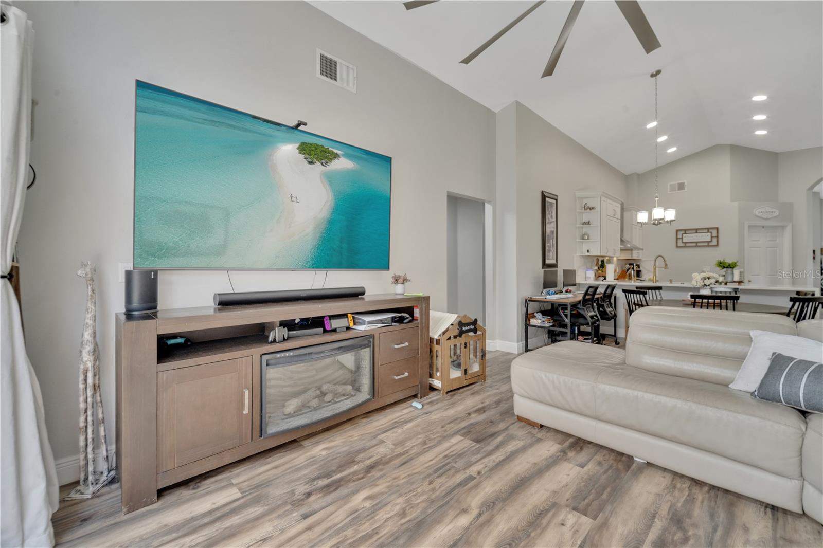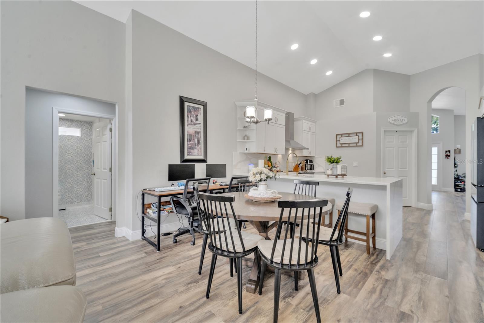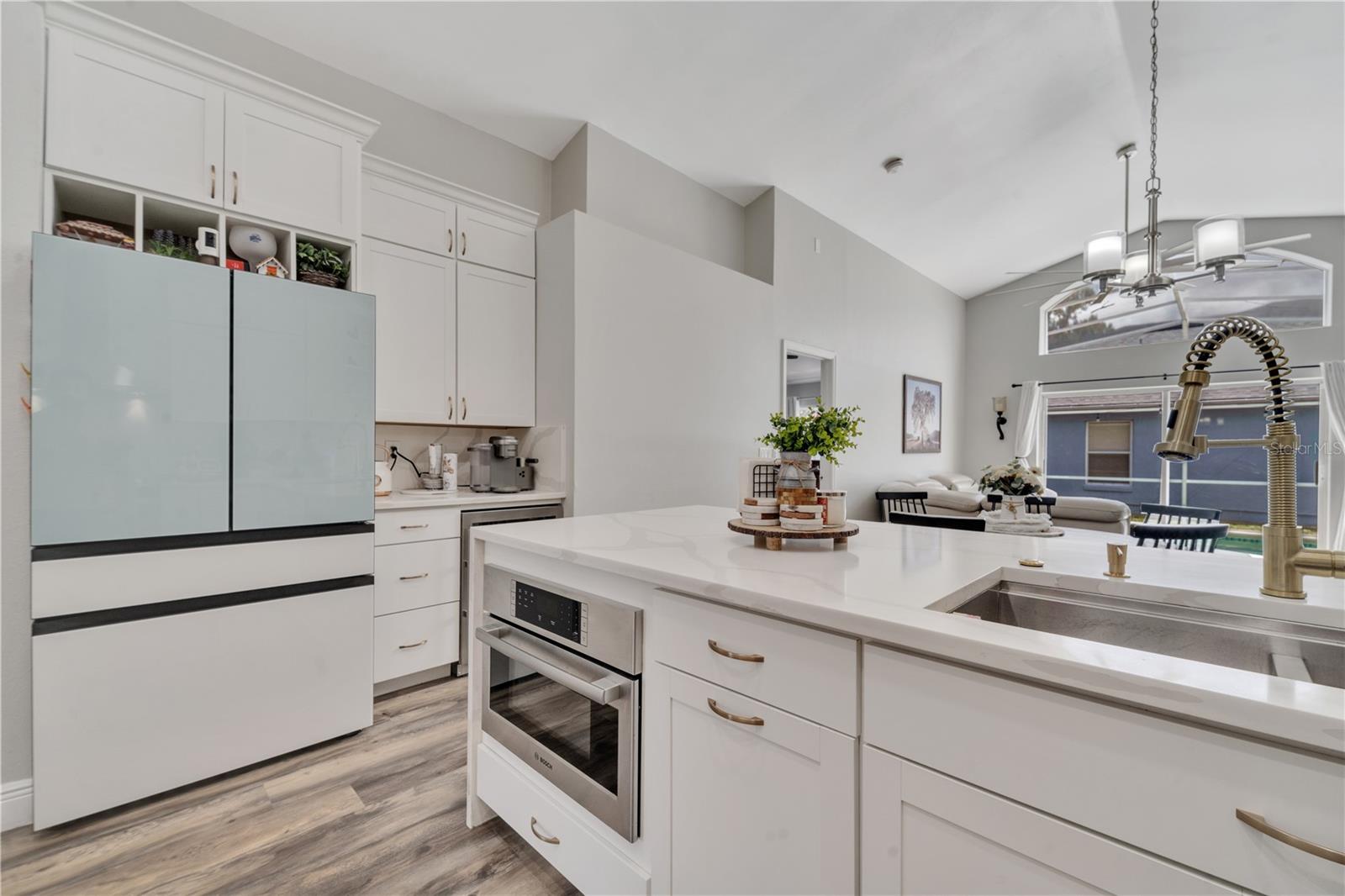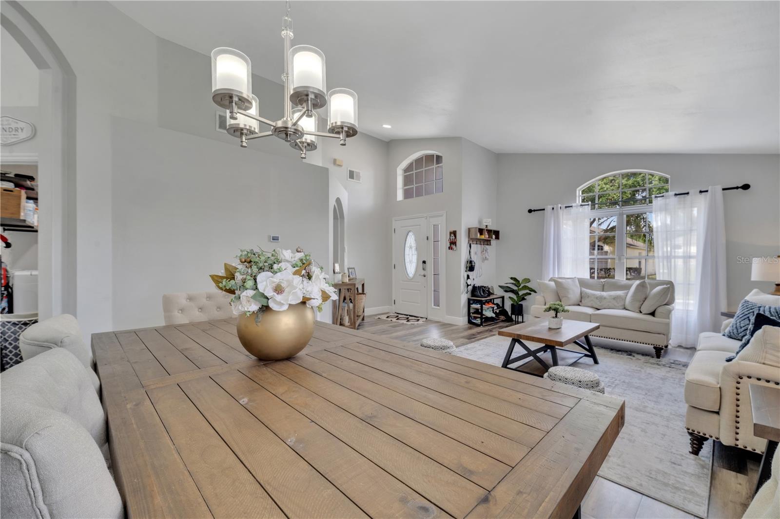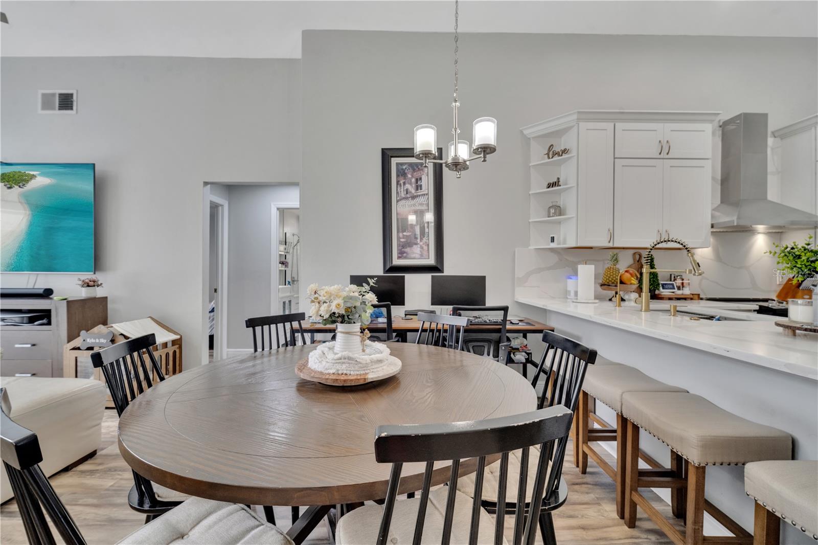Welcome to the highly sought-after Westridge gated community. This stunning 4 bedroom, 2 bathroom home, perfectly situated on an Oversized Corner Lot, boasts a private heated pool and an array of recent upgrades that elevate its charm and functionality. Step inside to find brand-new real wood plank flooring throughout, setting a warm and inviting tone. The kitchen is a chef's dream, featuring sleek rainfall quartz countertops, a bright and stylish backsplash, 42-inch white cabinets, stainless steel appliances, and recessed lighting. Both bathrooms have been completely remodeled with quartz countertops, exuding a spa-like ambiance. The home's interior and exterior have been freshly painted, and it includes a new front door and rolling blinds for added privacy and convenience. The roof was replaced in 2017, and the AC system is from 2015, ensuring peace of mind and energy efficiency. Custom-built shelving in closets provides ample storage, while modern amenities like a Ring doorbell, security cameras, smart thermostat, Alexa-compatible front door, and lighting enhance everyday living. The pool area is a true oasis, with a brand-new pool pump and LED lights that change colors, perfect for evening relaxation or entertaining guests. The garage is equipped with a 9,500-watt generator connection and features counter space and flooring ideal for a home office or homeschooling setup. This home is not only a haven for personal enjoyment but also an excellent investment opportunity with short-term rentals allowed. The LOW HOA covers gate access, exterior maintenance, including lawn mowing, and provides access to community amenities such as a pool, gym, and clubhouse. Located just minutes from Champions Gate, I-4, Posner Park, Disney shops, and restaurants, Villas at Westridge offers convenience and a vibrant lifestyle. White PVC fences are permitted, adding to the home's privacy and aesthetic appeal. Plus, it's USDA eligible!