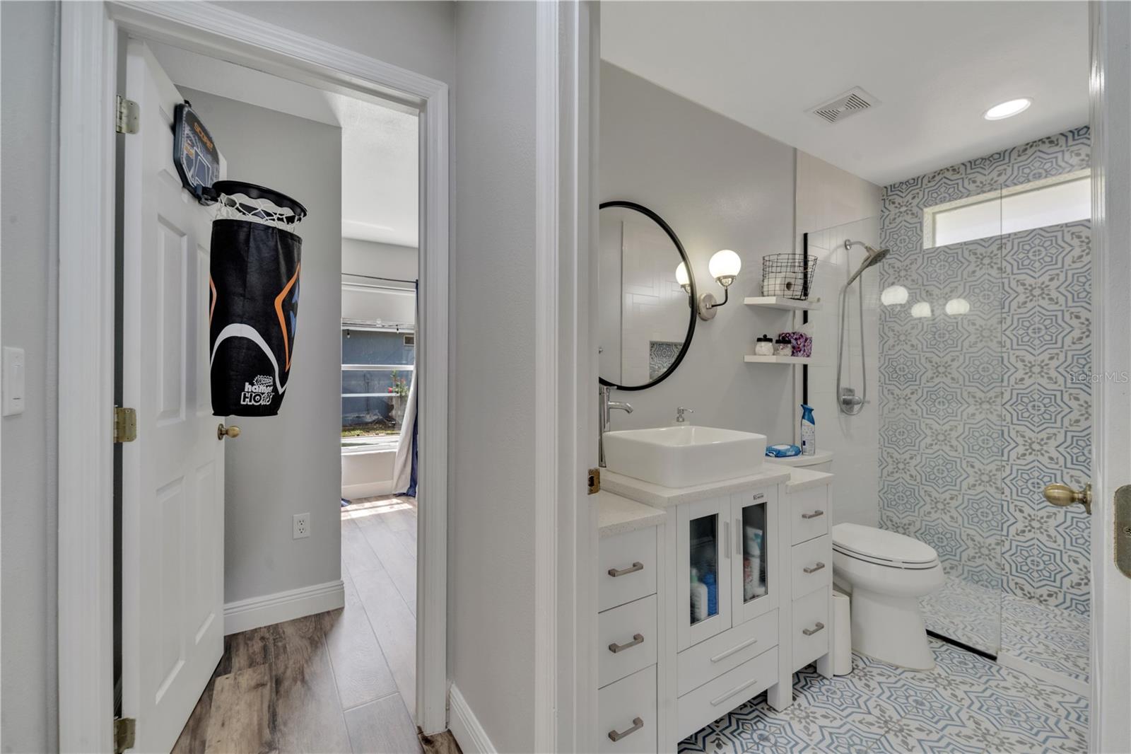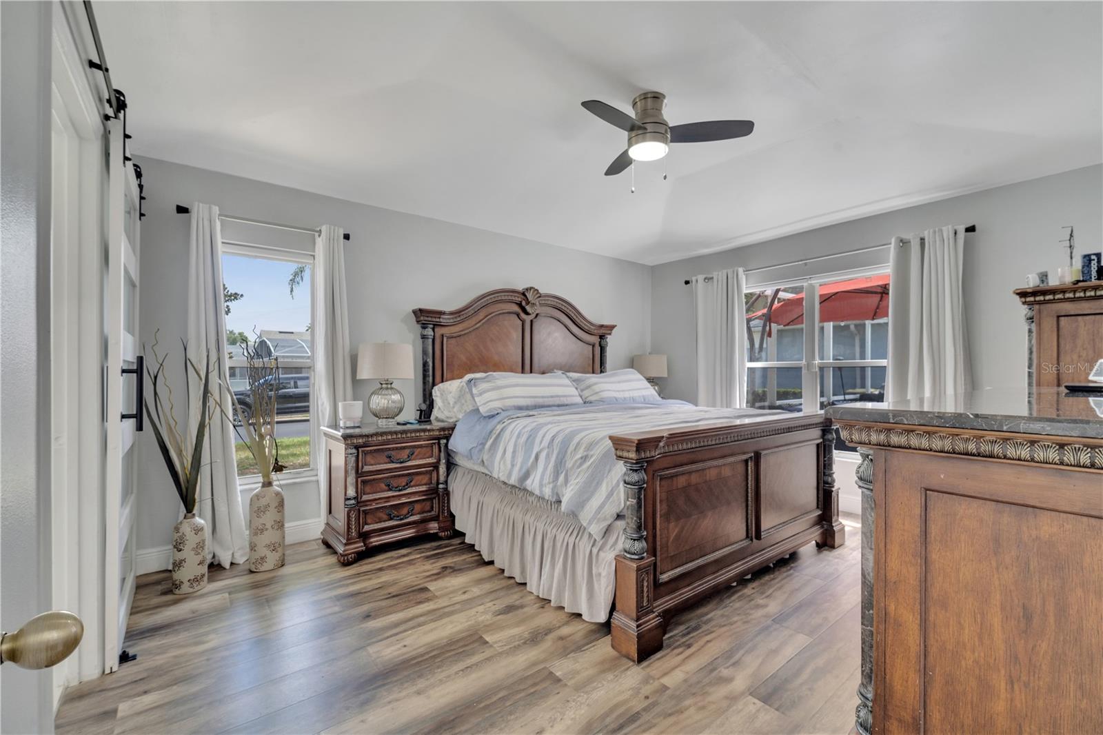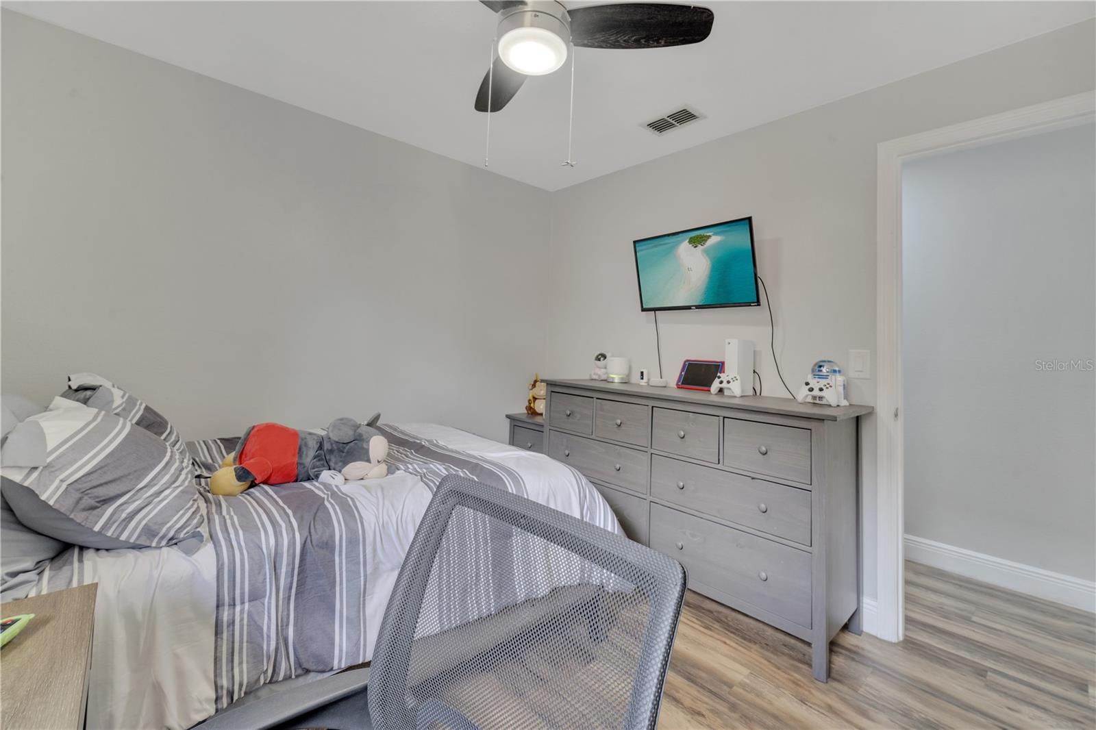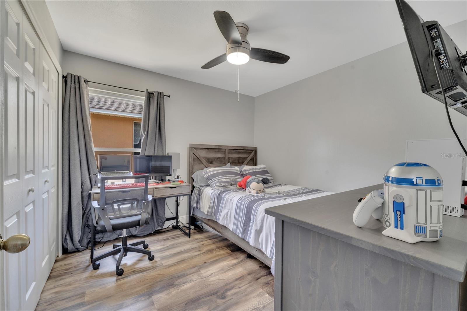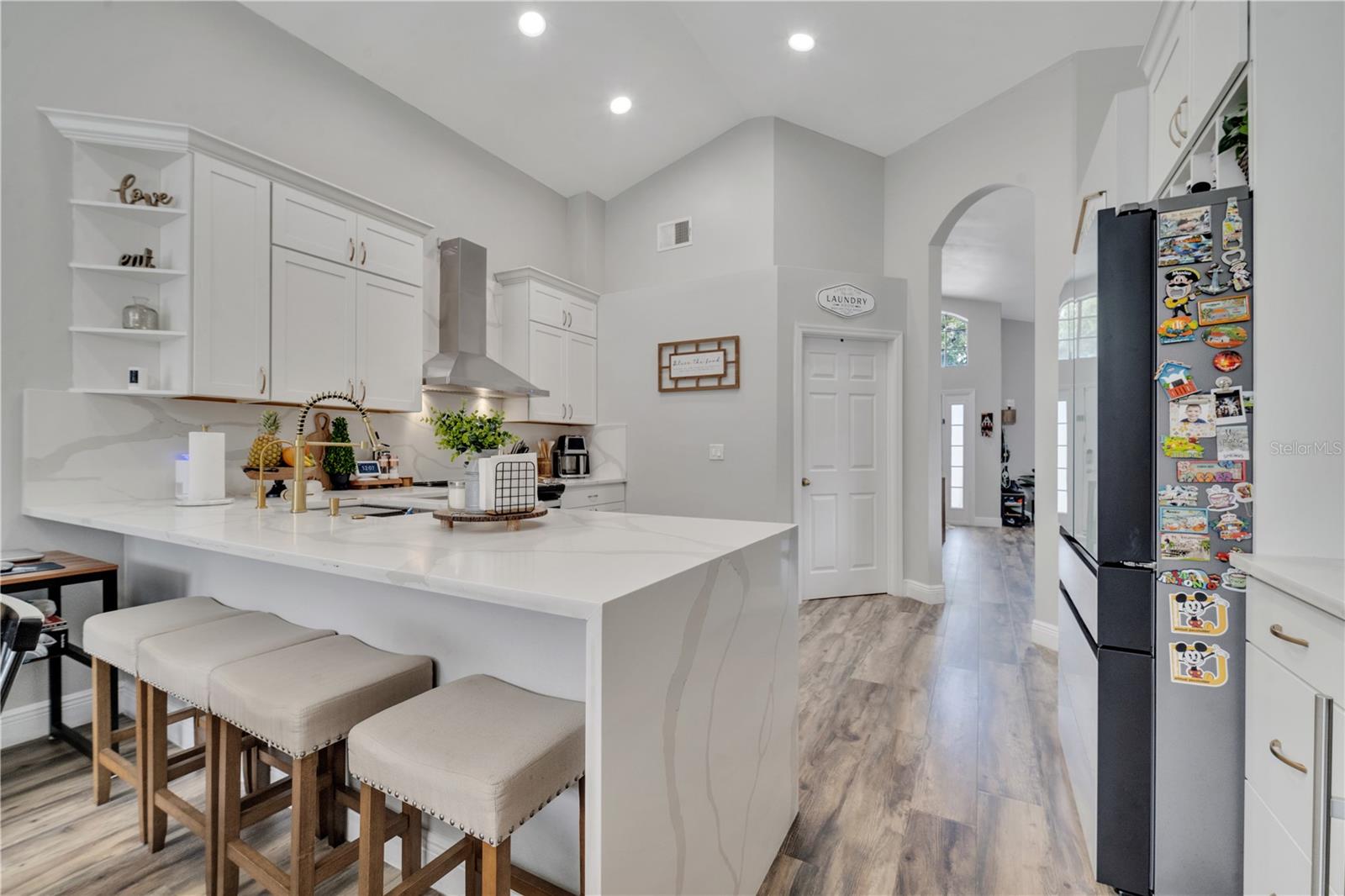 Welcome to the highly sought-after Westridge gated community. This stunning 4 bedroom, 2 bathroom home, perfectly situated on an Oversized Corner Lot, boasts a private heated pool and an array of recent upgrades that elevate its charm and functionality. Step inside to find brand-new real wood plank flooring throughout, setting a warm and inviting tone. The kitchen is a chef's dream, featuring sleek rainfall quartz countertops, a bright and stylish backsplash, 42-inch white cabinets, stainless steel appliances, and recessed lighting. Both bathrooms have been completely remodeled with quartz countertops, exuding a spa-like ambiance. The home's interior and exterior have been freshly painted, and it includes a new front door and rolling blinds for added privacy and convenience. The roof was replaced in 2017, and the AC system is from 2015, ensuring peace of mind and energy efficiency. Custom-built shelving in closets provides ample storage, while modern amenities like a Ring doorbell, security cameras, smart thermostat, Alexa-compatible front door, and lighting enhance everyday living. The pool area is a true oasis, with a brand-new pool pump and LED lights that change colors, perfect for evening relaxation or entertaining guests. The garage is equipped with a 9,500-watt generator connection and features counter space and flooring ideal for a home office or homeschooling setup. This home is not only a haven for personal enjoyment but also an excellent investment opportunity with short-term rentals allowed. The LOW HOA covers gate access, exterior maintenance, including lawn mowing, and provides access to community amenities such as a pool, gym, and clubhouse. Located just minutes from Champions Gate, I-4, Posner Park, Disney shops, and restaurants, Villas at Westridge offers convenience and a vibrant lifestyle. White PVC fences are permitted, adding to the home's privacy and aesthetic appeal. Plus, it's USDA eligible!