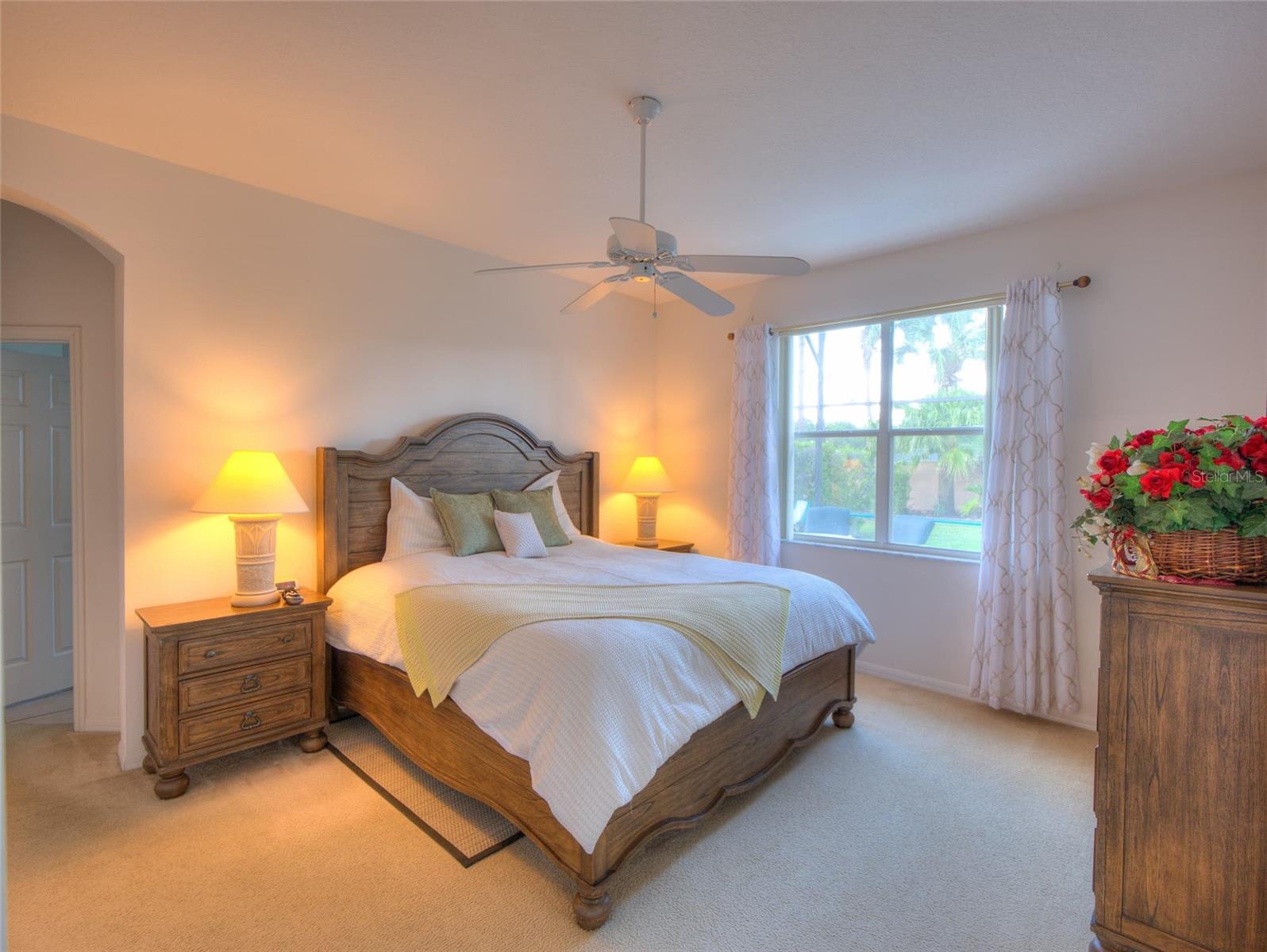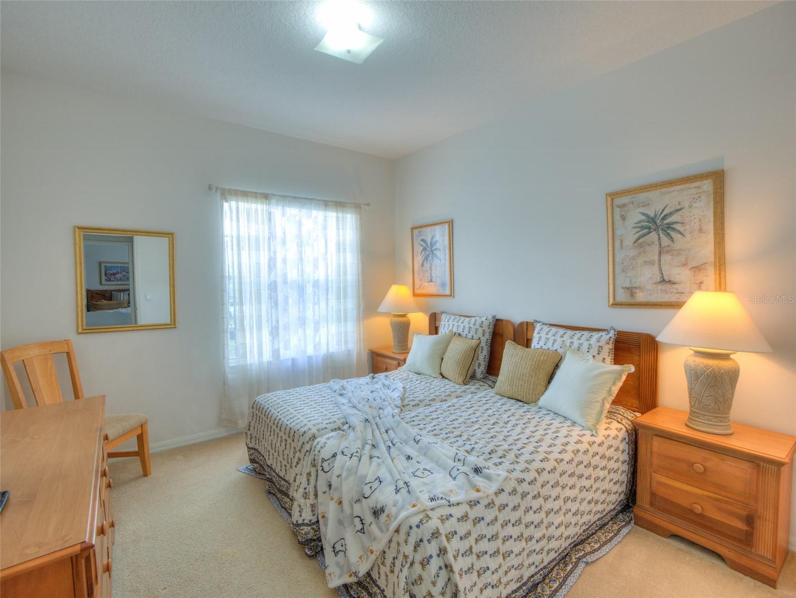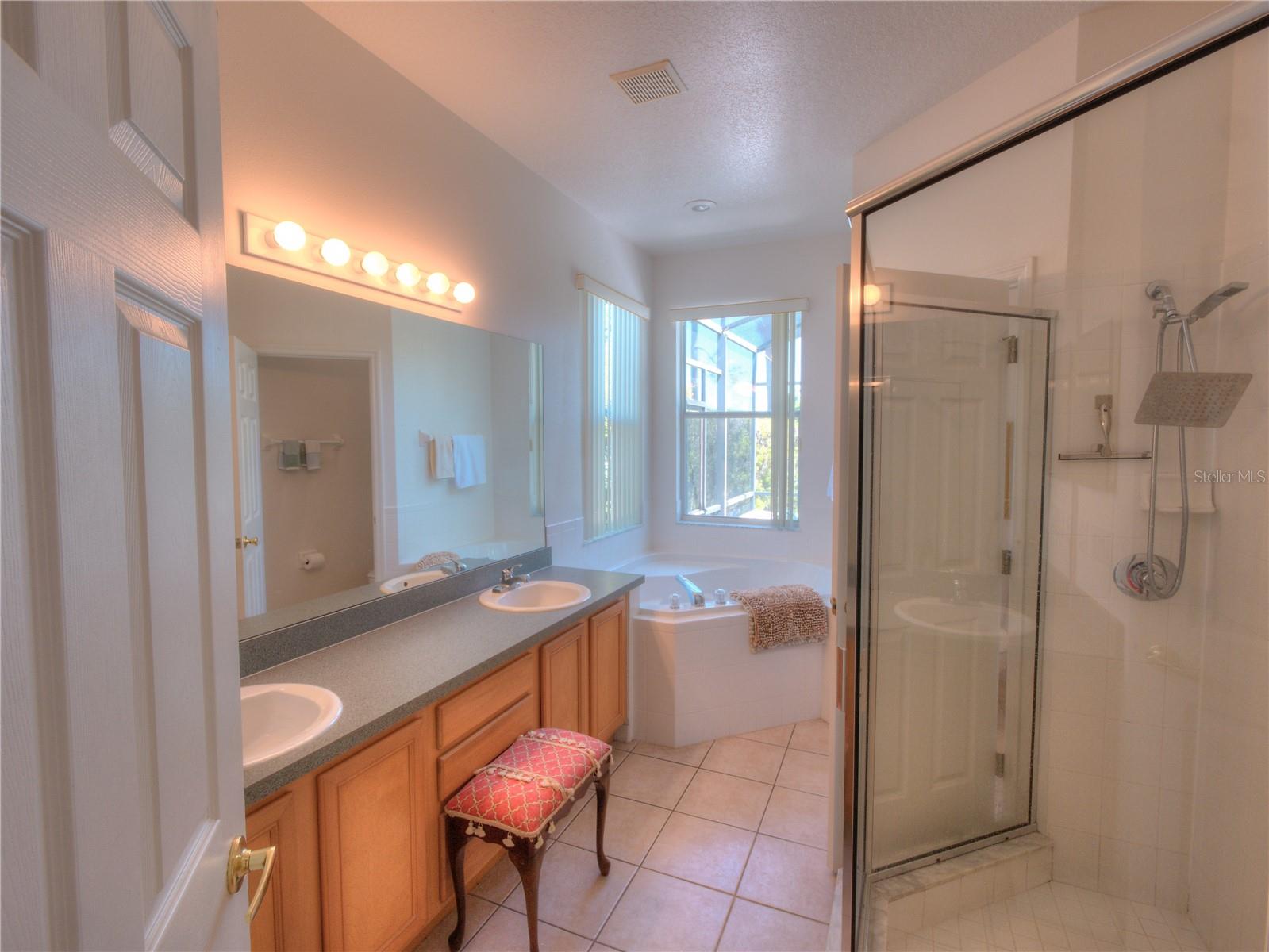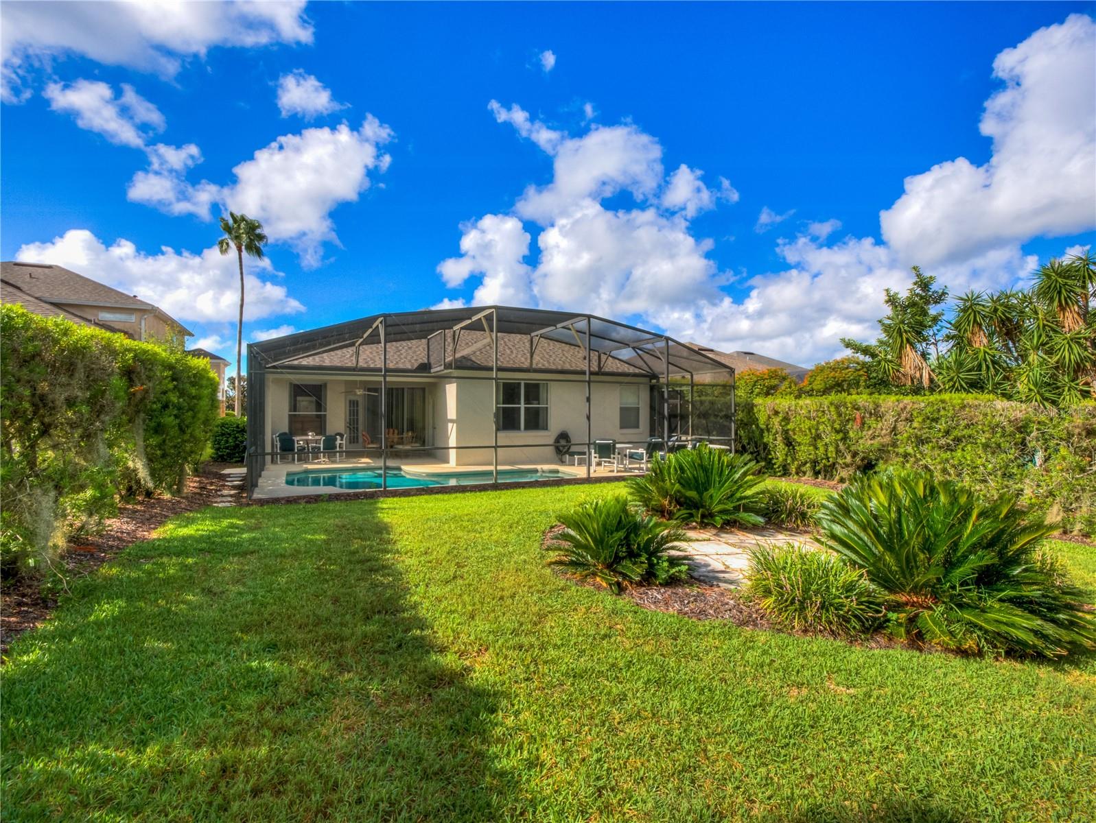 Welcome to your exquisite, fully-furnished pool home, featuring a brand new roof (May 2024), brand new water heater with transferrable warranty (December 2024), and freshly painted exterior (August 2024). Enjoy a beautiful, expansive, and private backyard with no rear neighbors—perfect for outdoor living. As you enter, an inviting foyer leads to a versatile formal dining area, setting the stage for gracious entertaining. The spacious living room flows seamlessly onto the patio through a large sliding glass door, creating an open, airy ambiance that integrates effortlessly with the well-appointed kitchen. Discover a breakfast bar, updated appliances, a generous pantry, and a charming bay window seating area, making this space both functional and inviting. Indulge in the luxury of two master suites, each featuring its own bathroom, walk-in closet, and private access to the pool area. One suite offers a walk-in shower and serene seclusion, while the other showcases a dual-sink vanity, soaking tub, and walk-in shower. Fresh window treatments and new bedding throughout the home further enhance its ready-to-enjoy appeal. Positioned for privacy, the guest bedrooms are located at the front of the home, each offering ample closet space. Step outside to your own private retreat—a sparkling pool surrounded by expansive lounging and dining areas, all set on a spacious lot with no rear neighbors. Additional recent updates include a brand new pool screen (2024), brand new pool deck resurfacing (July 2024), newer HVAC (2017), pool pump (2017), microwave (2019), and dishwasher (2019), ensuring this home is ready for immediate enjoyment. Nestled in the highly desirable Calabay Parc community just off US-27, with convenient access to I-4, shopping, dining, and local attractions, this property combines luxury with practicality. Very close proximity to Disney World and Universal/Theme Park Areas. Don't miss the opportunity to experience the ultimate in Florida living—schedule your private showing today and envision yourself in this exceptional residence!