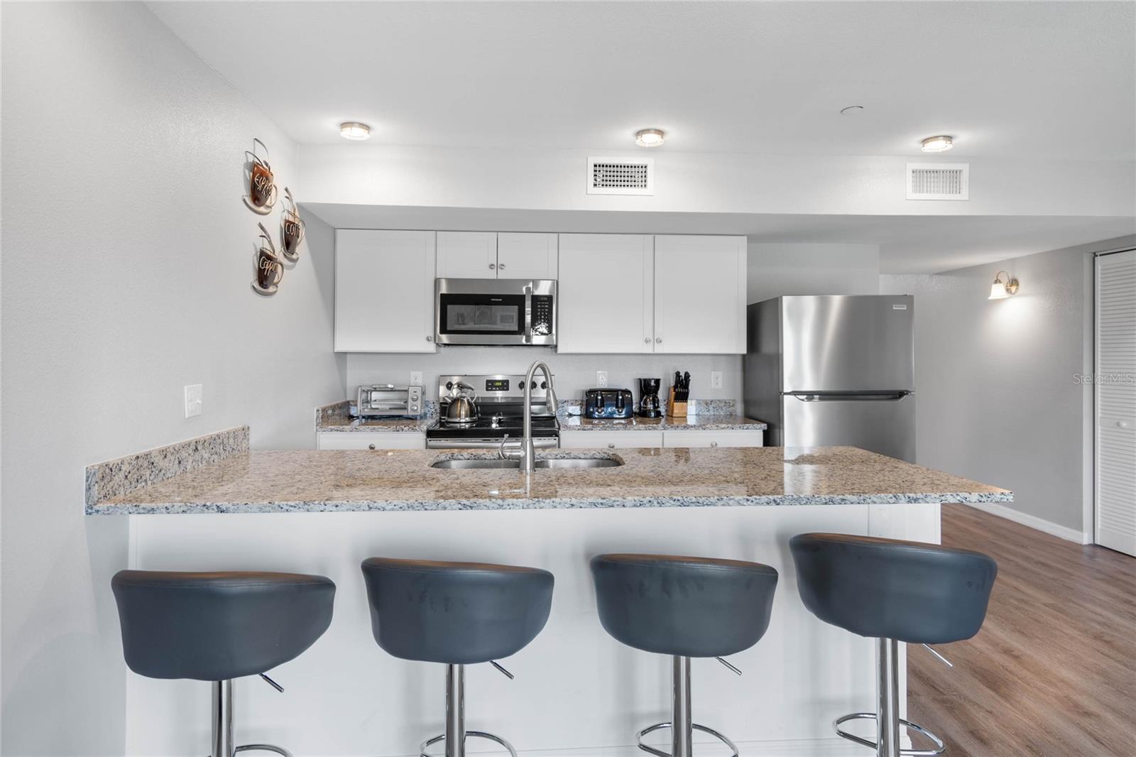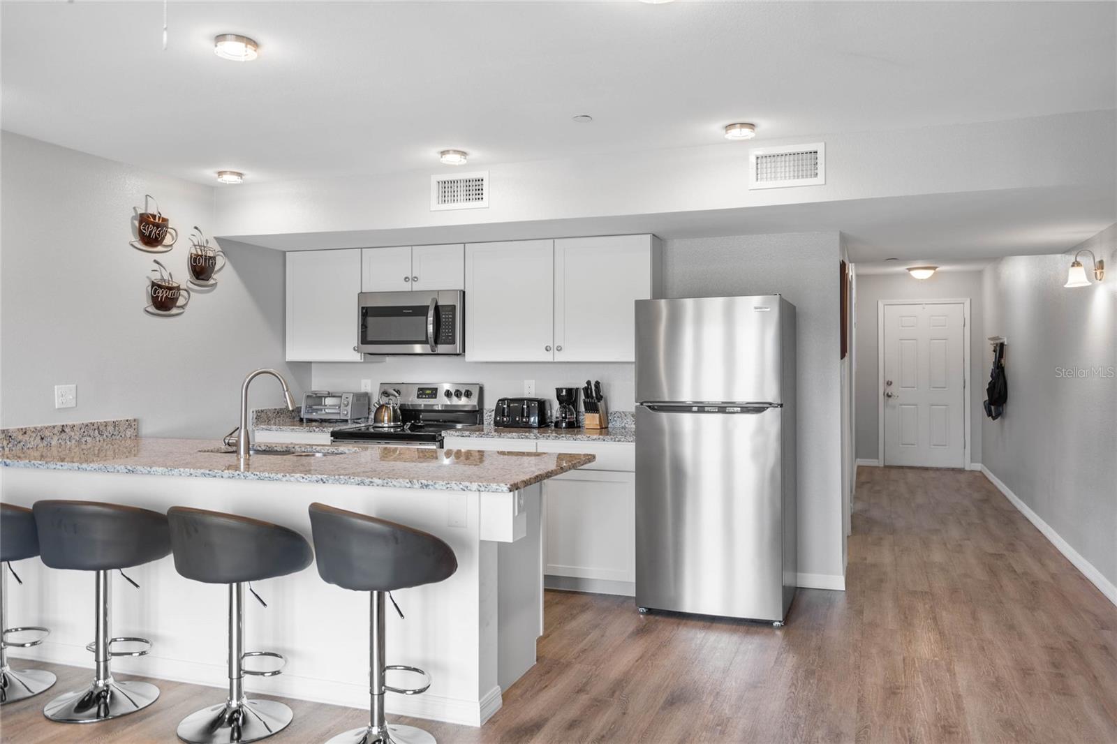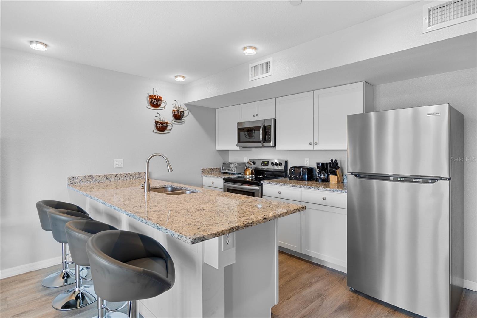 Welcome to your dream condo! Like new with two spacious bedrooms and two full bathrooms. A beautiful double balcony overlooks Palm views at the rear, giving access to the living areas in the master suite. The kitchen has beautiful countertops, stainless steel appliances, and great countertop space. The home has an open floor plan, making it a great space for entertaining. There is no carpet in this home and it is in pristine condition. Located in the heart of Davenport this condo is located in regal palms with all the amenities and lifestyle that comes along with it including beautiful pool, lazy river, ice cream shop, bar, establish restaurant, and so much more. The homeowner association takes care of the landscaping, water, trash, elevators, Wi-Fi, and cable. This home can be leased as a vacation rental or uses a primary residence, offering an abundance of options. This area is experiencing massive growth. The community is located near multiple golf courses, celebration, theme parks, and so much more. Welcome to your own personal piece of paradise.