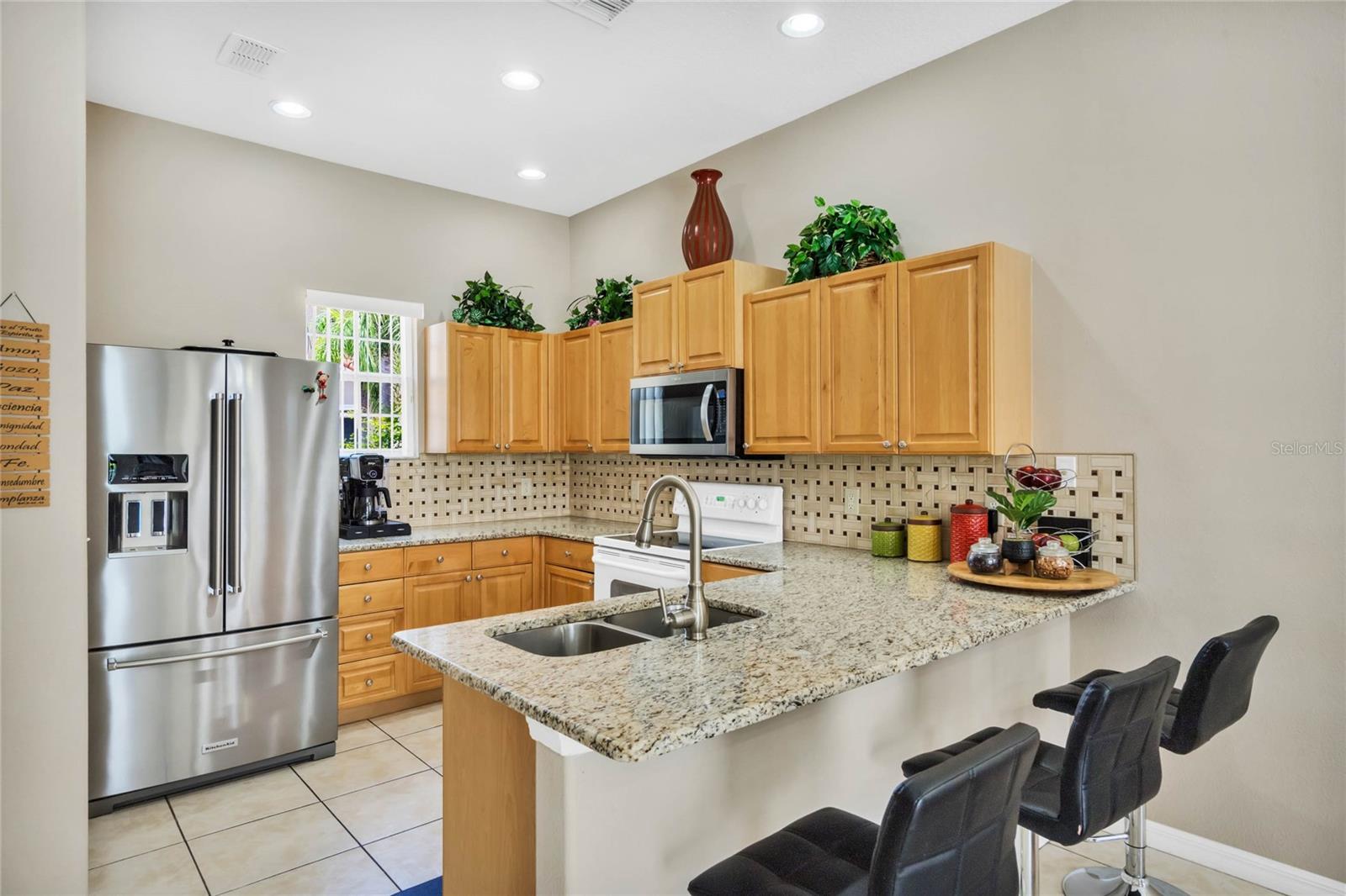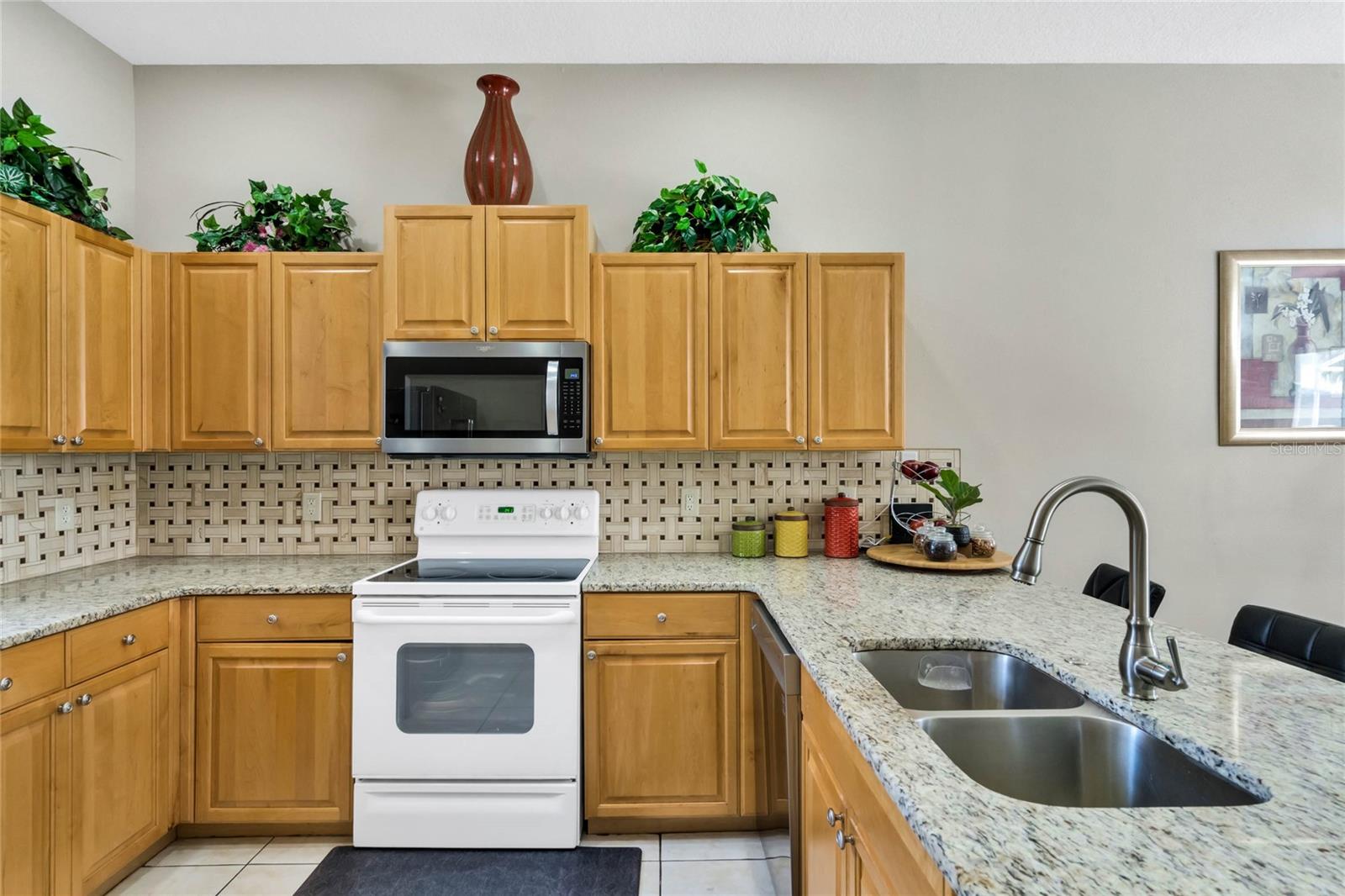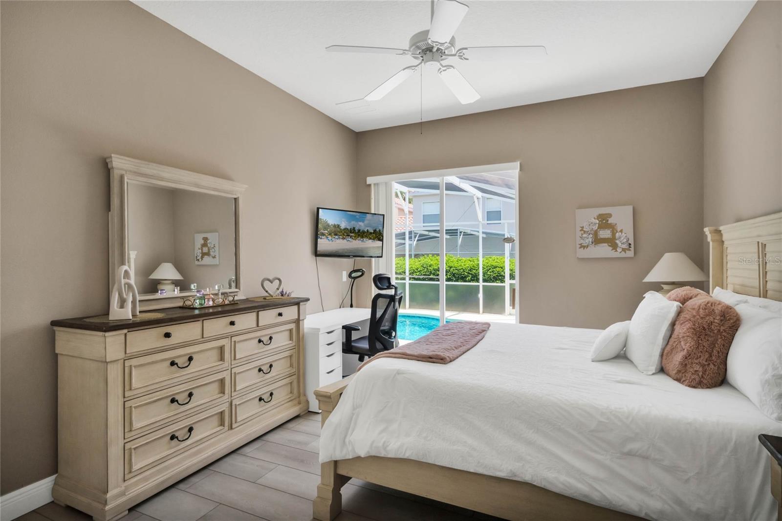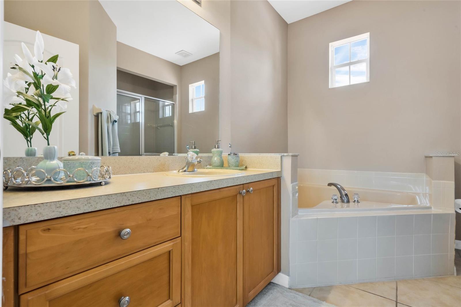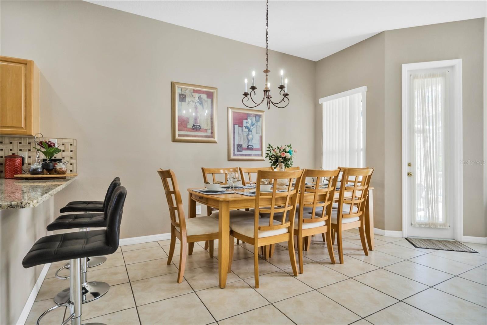 Seller may consider buyer concessions if made in an offer. Welcome to this stunning 1762 square foot home, boasting 4 bedrooms, 3.5 baths, and a refreshing pool and spa, all meticulously maintained to showcase the pride of ownership. This residence features two master bedrooms, one conveniently located on the main floor and the other on the second floor. As you walk in you will be welcomed by an open, light and airy floor plan is accentuated by elegant ceramic tile floors in the living room, kitchen and dining area, creating a welcoming atmosphere for both relaxation and entertainment. As you come up the spacious stairs you will find the second owner suite with its own tub and standup shower as well as double sink feature. Accompanied by two other specious guest bedrooms and its own shower/tub combination in that third bathroom. Stepping outside, you'll find a private pool and spa, complemented by screened enclosures and a covered lanai, offering a perfect setting for outdoor enjoyment and relaxation. Property has Newly installed granite counter tops, New water heater tank and freshly painted on the outside. The style of the tiled roof along with beautiful palm trees will give you a relaxing feeling as soon as you approach the property. Nestled in the gated community of Tuscan Hills in Davenport, this home provides access to fantastic amenities such as tennis courts, volleyball court, Clubhouse, Fitness Center, Gated Community, Playground, Sidewalk, Tennis Courts enhancing the lifestyle of its residents and or guests. Not to mention Cable TV, Internet, and Pest Control are covered by your HOA.This property is an ideal fit for a personal vacation home, as well as a lucrative short-term or long-term rental for those seeking an income-producing investment. Its prime location places it just minutes away from the renowned Disney Parks major highways that provide easy and fast access to other theme parks, shopping malls and all the exciting attractions Orlando has to offer. Whether you're looking for a private retreat or a savvy investment opportunity, this home offers the best of both worlds. Come see your very own PRIVATE OAISES. Dont miss the chance to live in a community where everyday feels like a vacation.