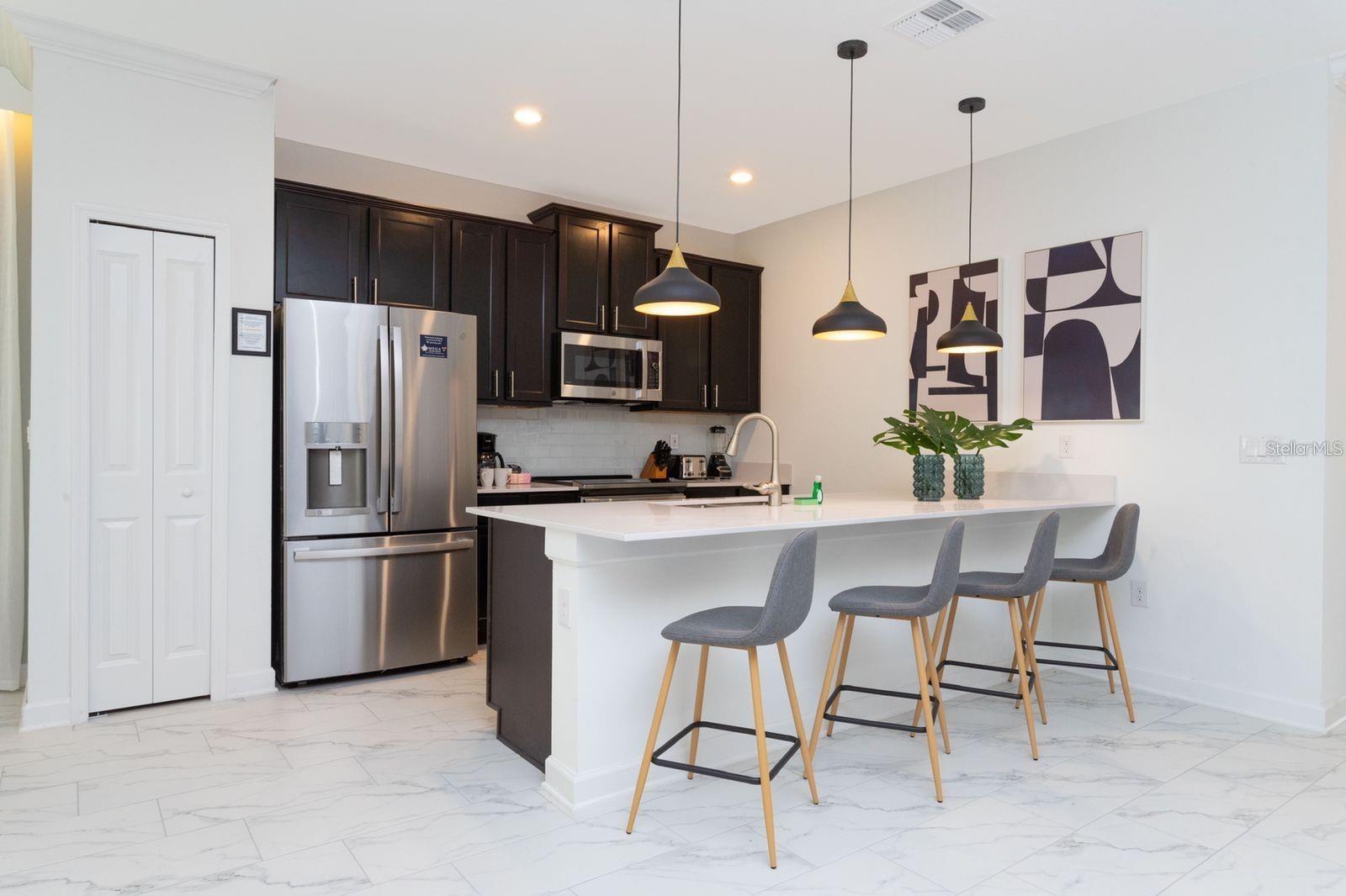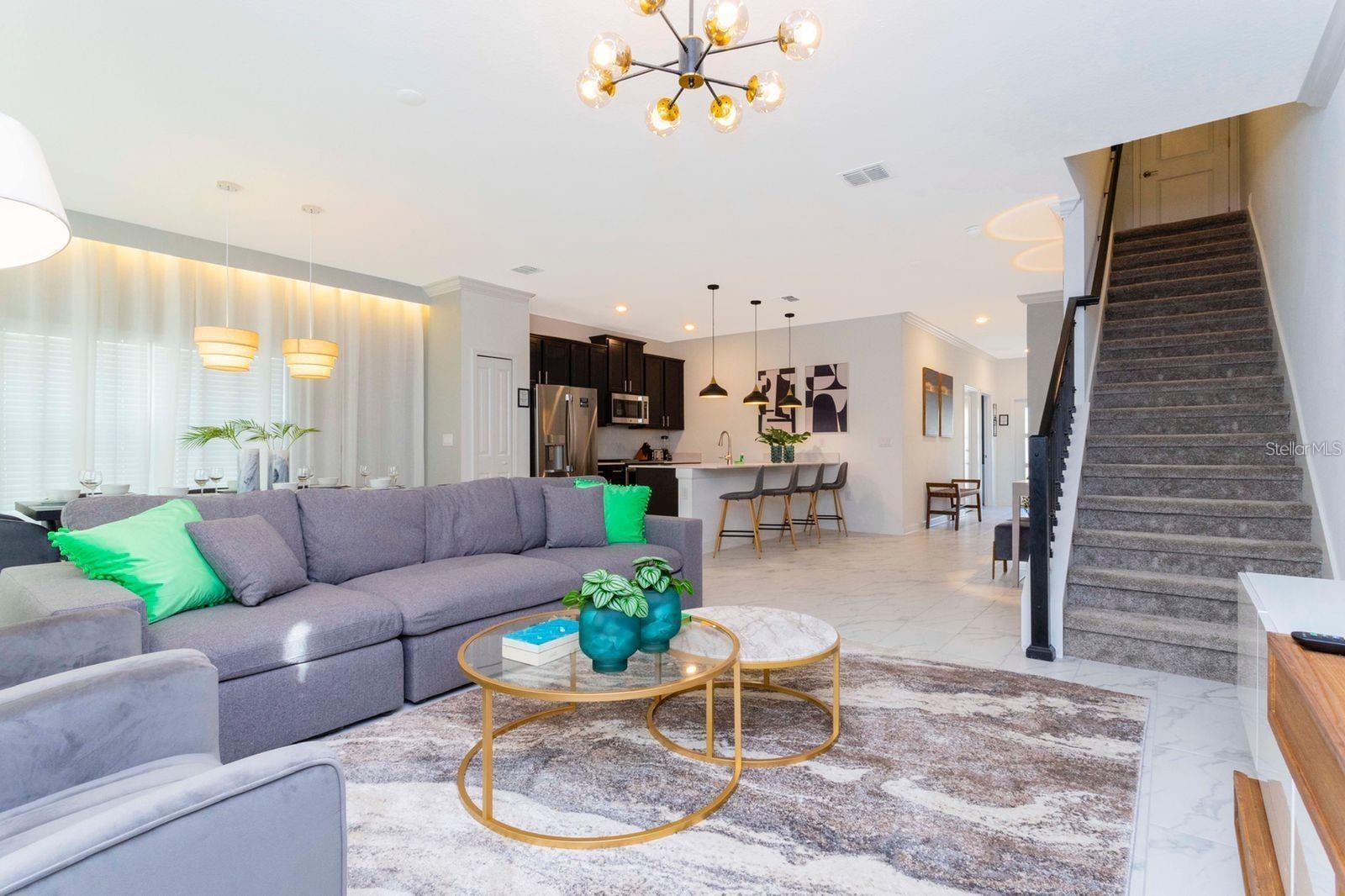 Fully Furnished Turnkey Townhouse 5 Bed, 4 Bath at Champions Gate Resort! Experience Luxury Living Just Minutes from Orlando's Top Attractions. Townhouse is the epitome of modern living, offering an unmatched blend of convenience and entertainment for you and your guests. Property Highlights: Turnkey Elegance: Your new townhouse comes fully furnished, allowing you to move in hassle-free and start enjoying the ultimate Orlando lifestyle from day one. Prime Location: Only minutes away from Orlando's premier attractions, making it the perfect retreat for residents and vacationers alike. Resort-Style Amenities: Dive into the luxury of Champions Gate Resort, where a world of entertainment awaits. Enjoy a resort-style pool, water slides, cabanas, lazy river, arcade room, gym, and much more! Open Concept Living: Step into a lower level that seamlessly combines kitchen, living, and dining spaces. The living room, adorned with a comfortable sofa and flat-screen TV, invites relaxation and family time. The fully equipped kitchen boasts stainless steel appliances, ample counter and cabinet space, and a spacious island with seating for four. The adjacent dining area, with a table for eight, sets the stage for delightful meals. Private Outdoor Oasis: Step outside onto the patio deck, where your own private splash pool awaits. Ideal for unwinding after a day of adventures, the deck also features outdoor dining and loungers, creating a perfect setting for memorable moments under the Florida sun. Bedroom Bliss: First Floor Retreat: Discover a beautifully decorated bedroom with a queen-size bed and flat-screen TV, along with another bedroom showcasing a full over twin bunk bed. Masterful Upstairs Haven: Ascend to the second floor, where the master bedroom beckons with a king bed and an ensuite bathroom boasting double sinks and a walk-in shower. Two additional guest bedrooms, one with a king-size bed and another with enchanting Disney-themed decor, complete the upstairs retreat. Your Chance for a New Lifestyle: Seize the opportunity to own a fully furnished turnkey townhouse at Champions Gate Resort! Whether you're seeking a vacation retreat, this property offers a chance to embrace the luxurious and carefree Florida lifestyle.
