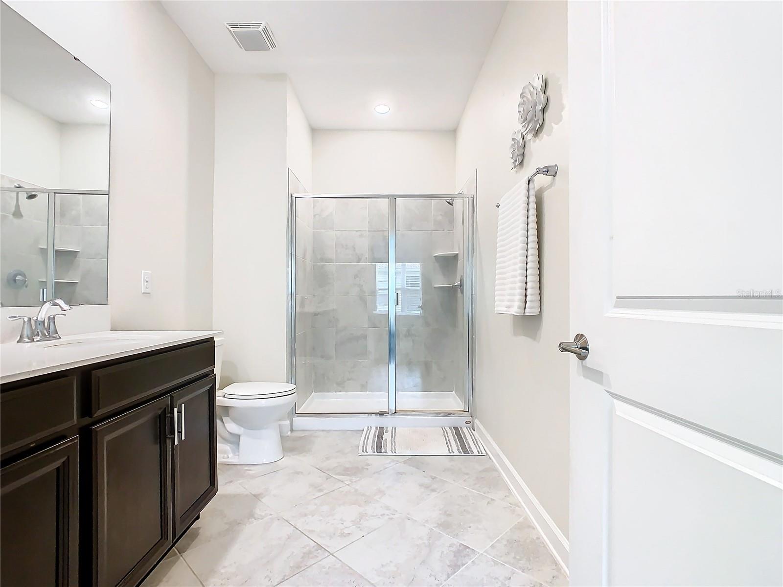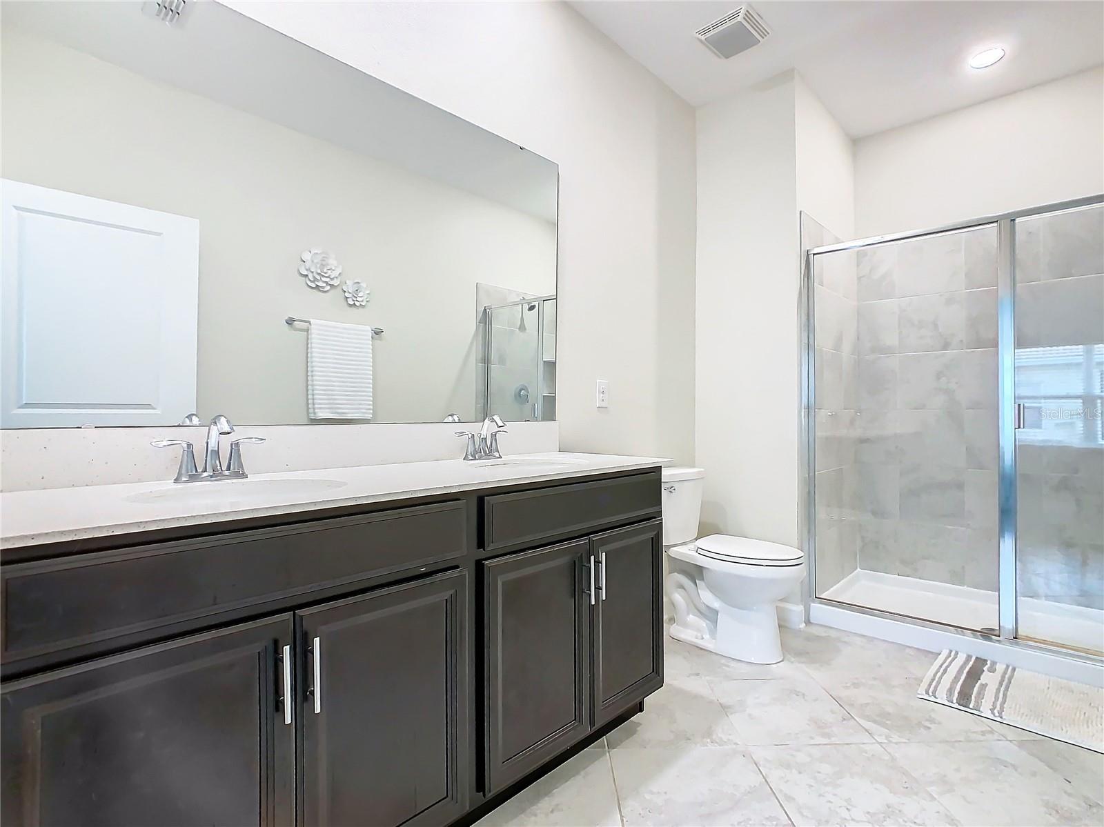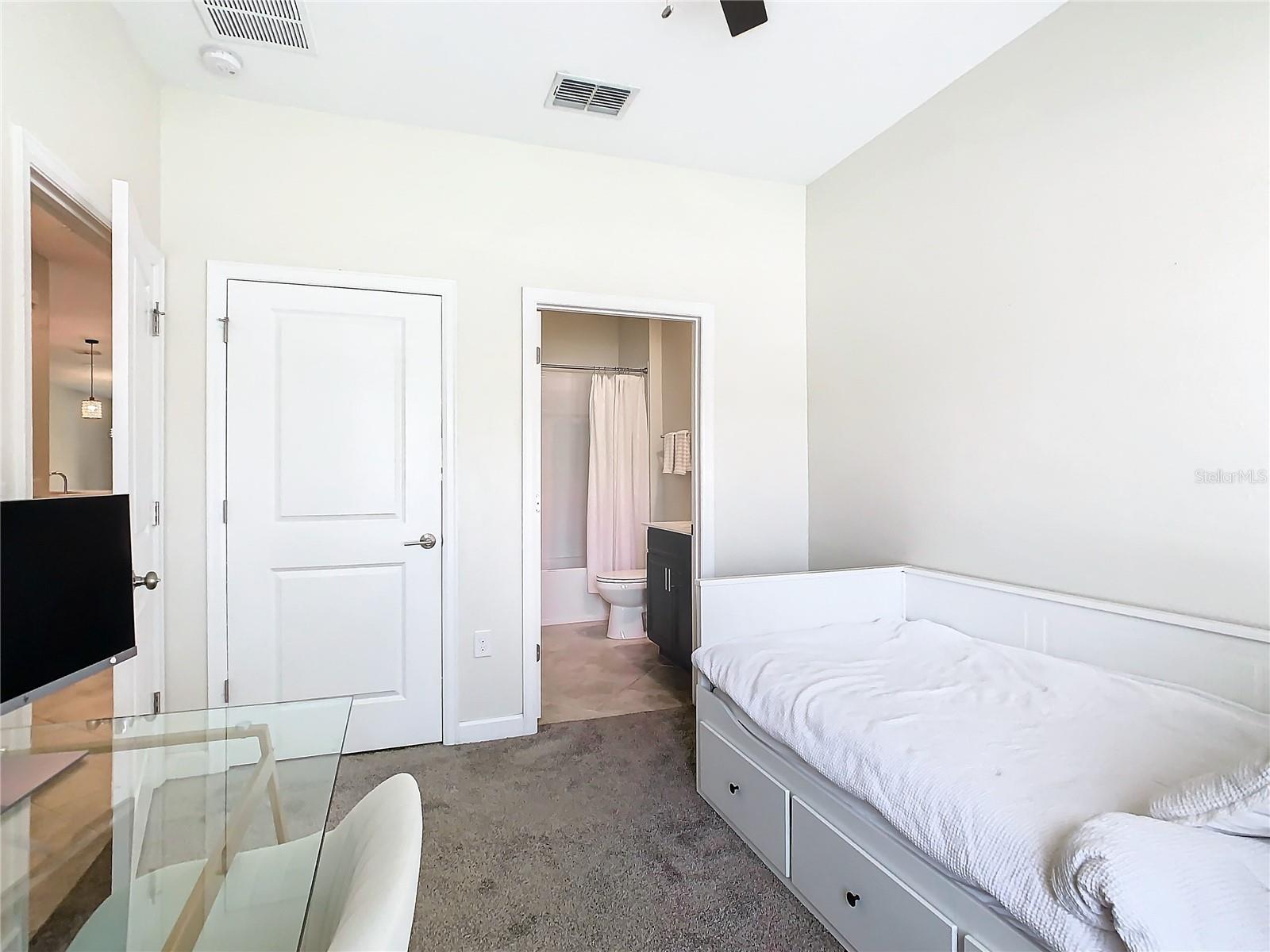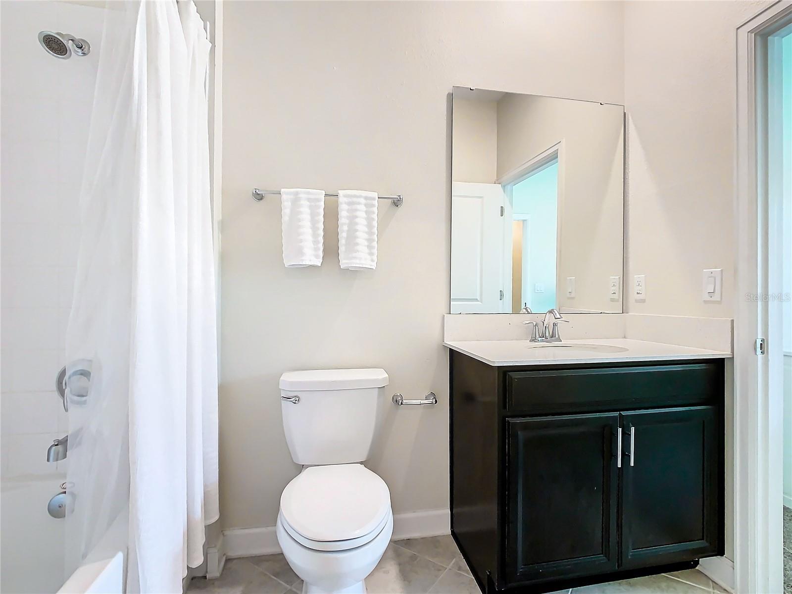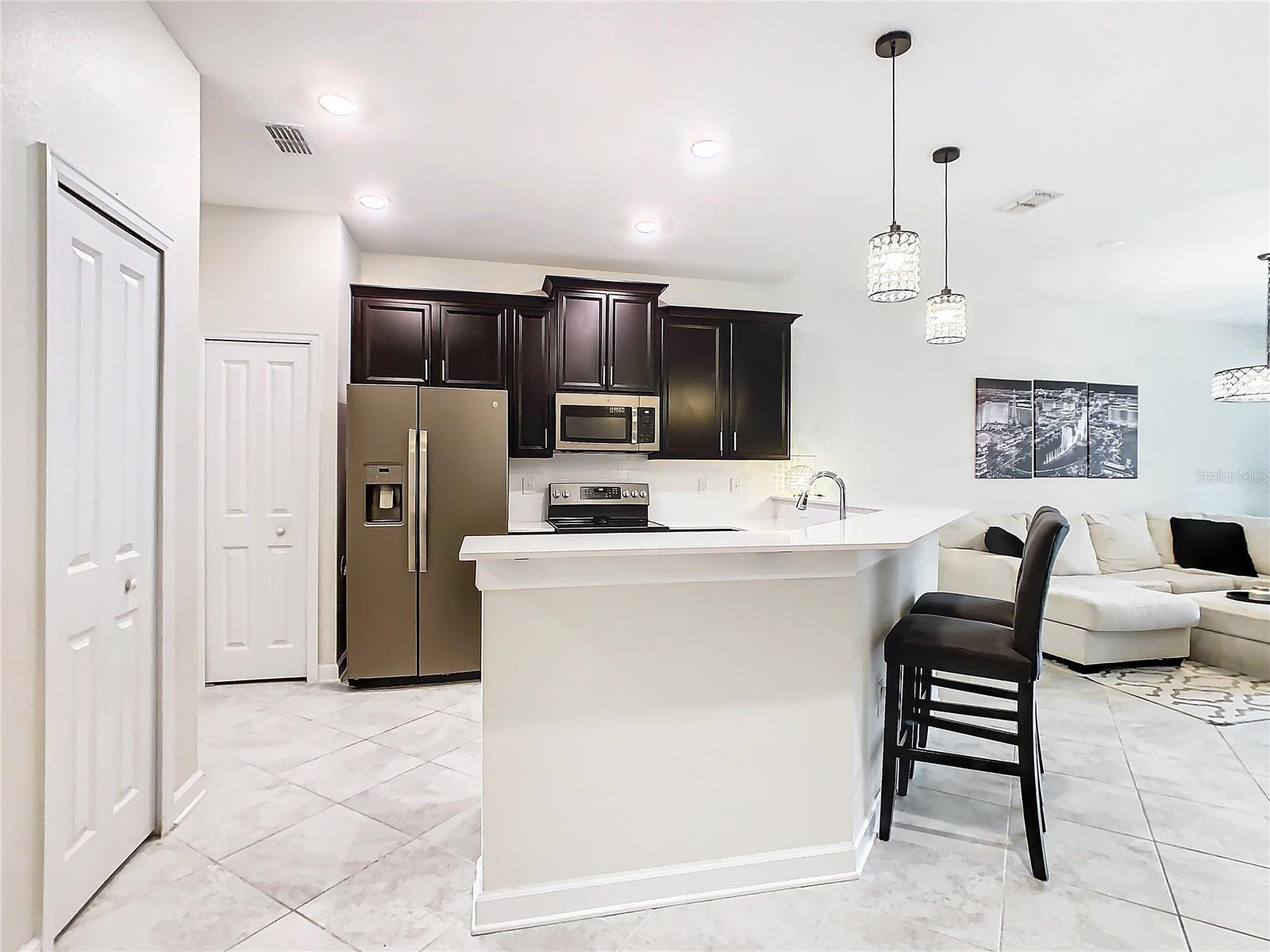 **Golf Membership Included** Welcome to the Villa's at the the Country Club North. Located in the Guard gated community of Champion's Gate is this beautiful 2 bed 2 bath villa, which also features a bonus office/den space which could be utilized as a third bedroom. Before you enter this home you will notice that the home has one of the longest driveways of any villa here, allowing you to park TWO cars instead of one. As you enter the home you will immediately notice the open concept living area and diamond pattern laid tile flooring, throughout the main living area. This home features a split floor plan, with both bedrooms having direct access to a bathroom. Making your way to the kitchen you will notice that Quartz countertops cover the entire kitchen countertop area, and the kitchen is complete with matte finish appliances, which will convey with the sale of the home. This kitchen also features a bar top area, making it a true eat in kitchen, perfect for entertaining. Across from the kitchen you will find the bonus room, currently being utilized as an office, this space could also be used as a formal dining/living room, or could even be turned into a third bedroom. This home features an open concept floor plan, and is perfect for entertaining. Located in the back of the home you will find the primary bedroom, complete with an oversized walk in closet and en-suite bathroom, featuring Quartz countertops and dual sinks. To the rear of the home, off the living room, you will find a wall to wall sliding glass door leading you into your screened in Lanai, allowing you you enjoy peaceful Florida days, bug free. Champion's Gate features an abundance of amenities including two water parks, two fitness centers, pickle ball/tennis courts, Golf, putting green, and also an owners only clubhouse called The Plaza. The Plaza clubhouse is resident only and features two pools, Hottub, gym, saunas, and a resident only bar/reataurant. There is so much to love about Champion's Gate, now is your time to call it home.
