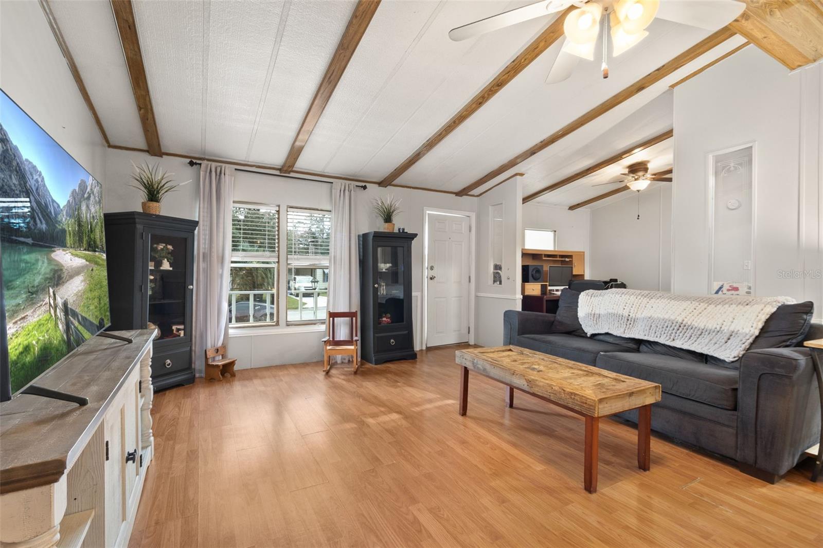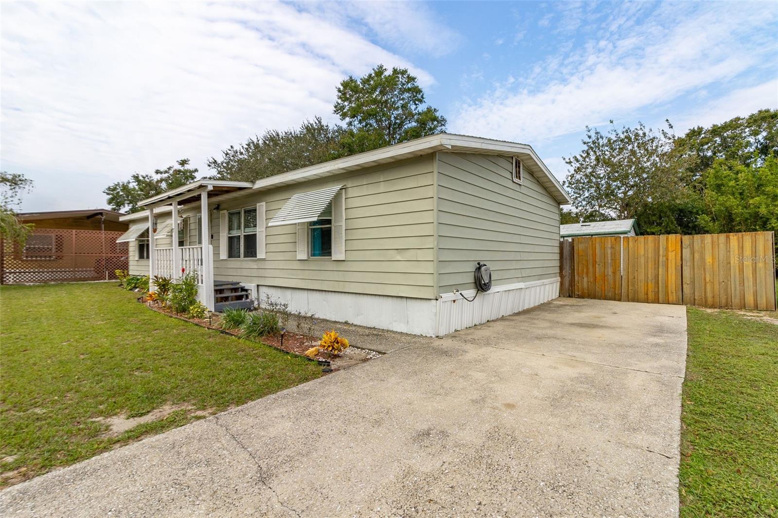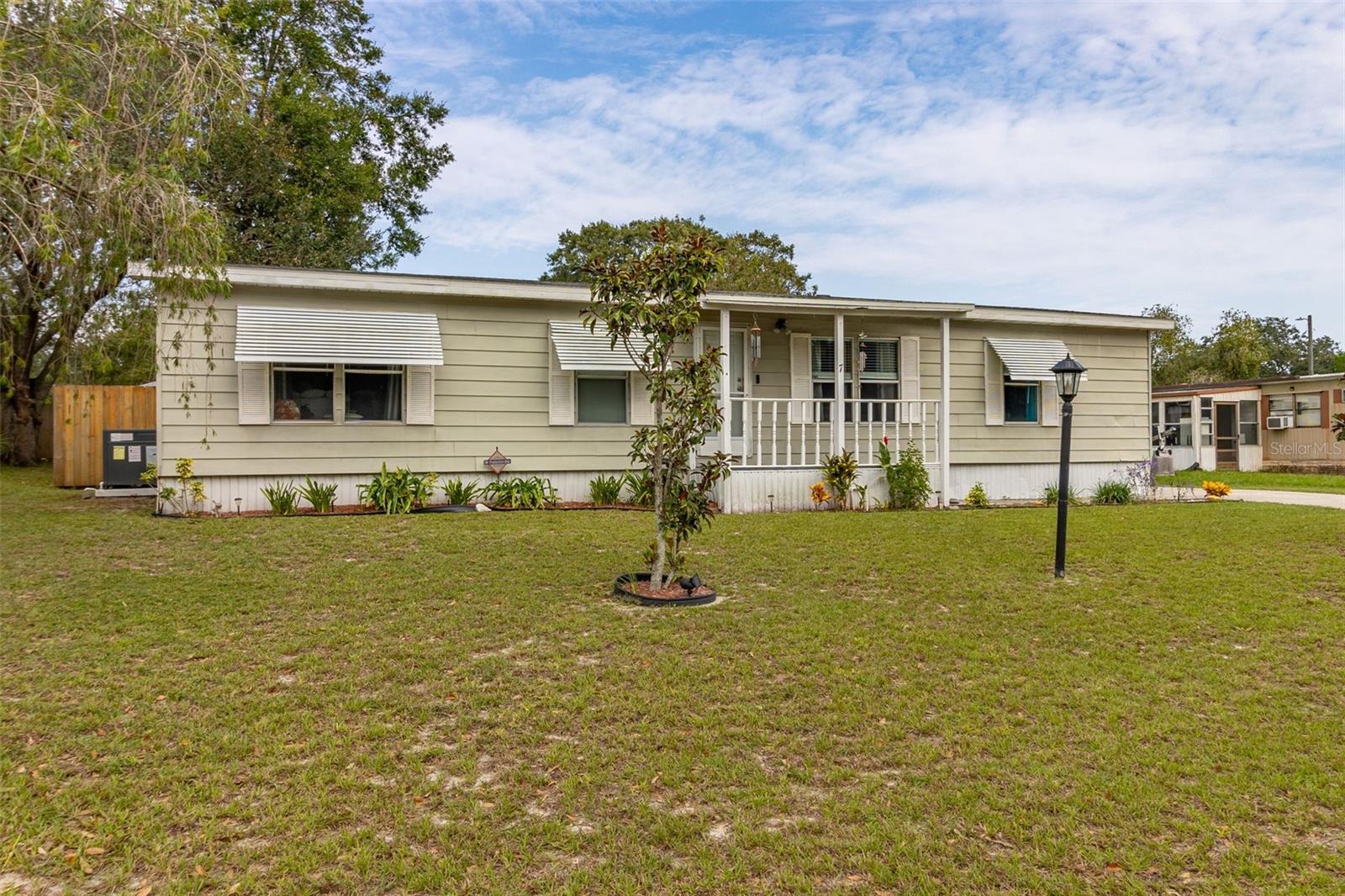 PRICE IMPROVEMENT on this property! This lovingly cared for manufactured house is seeking for new owner. 3 bedrooms, 2 bathrooms, 1,152 sqf property is a great choice as a first home for your family, your winter place in Florida, or even as an income generating investment. Inside, you will find the heart of the home with remodeled kitchen (2024) with sparkly quartz countertop and sleek stainless steel appliances. It is perfect for cooking and entertaining. Main bedroom is on the opposite wing of the house, giving privacy from the other 2 guest bedrooms, and everyone can gather in the living room flows to dining room. Step out to the back porch and sip your coffee in the morning, or gather round the fire pit on cool nights. Fenced in spacious backyard to house your favorite fruit trees or storing your big toys. 2 sheds are staying for you to keep your garden tools organized or as extra storages. The home boasts a new AC system (2023) to ensure comfort year-round. With newer roof (2018), new flooring on the guest bedrooms (2024) and updated plumbing, this property offers peace of mind and is ready for you to move in and enjoy. The community provide amenities such as pool, shuffleboard court and a clubhouse. Location can't get any better. Main arteries US 27 and I-4 are right around the corner. Beaches on both sides of Central Florida are only 80 miles away, Disney's theme parks are less than 10 miles. And Central Florida is filled with so many attractions, you can never be bored! Davenport itself has been blooming in the last 5 years, bringing so many business, job opportunities, shopping centers and multicultural cuisines to this side of town. Make your appointment today to check out this gem.