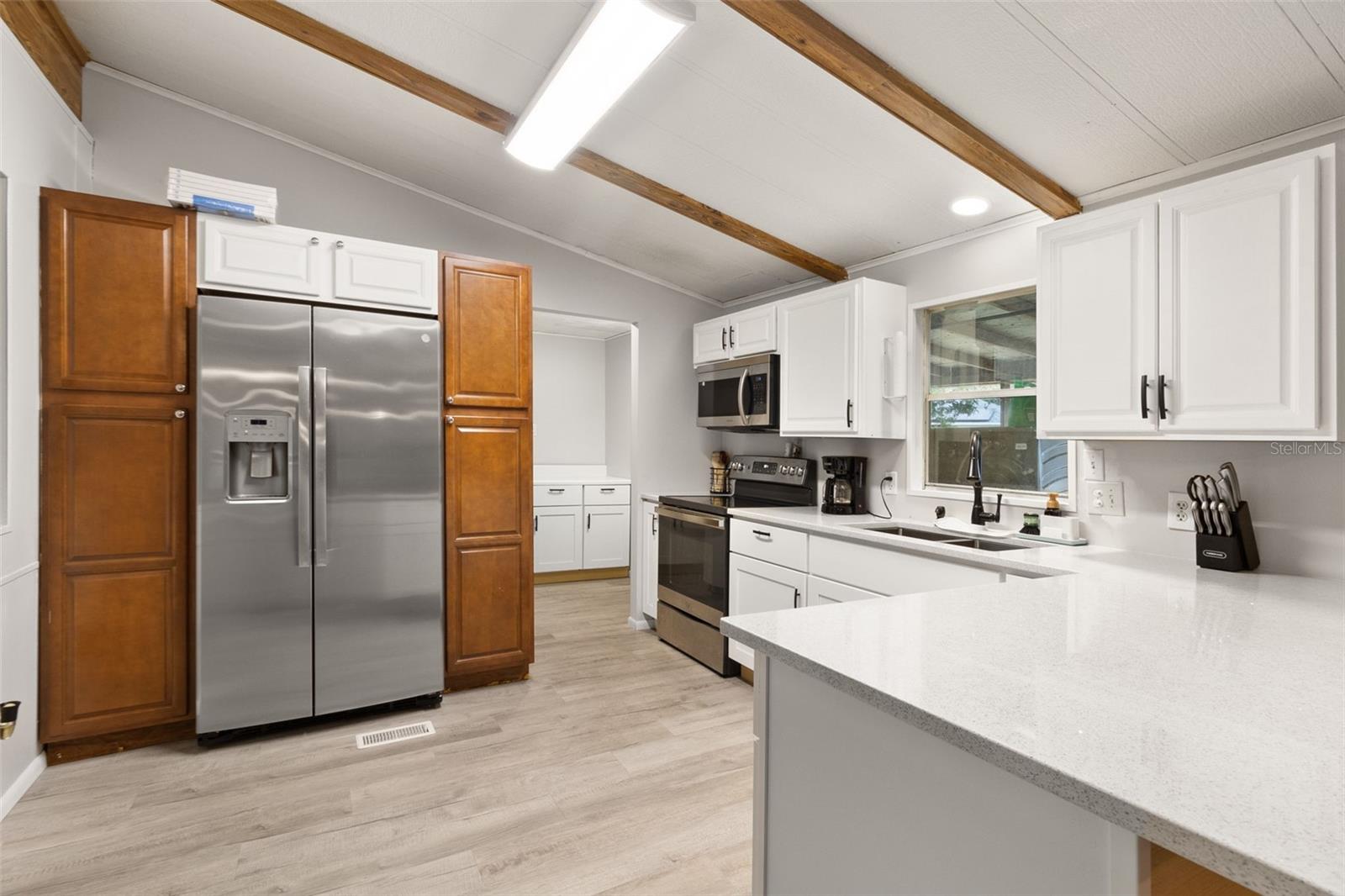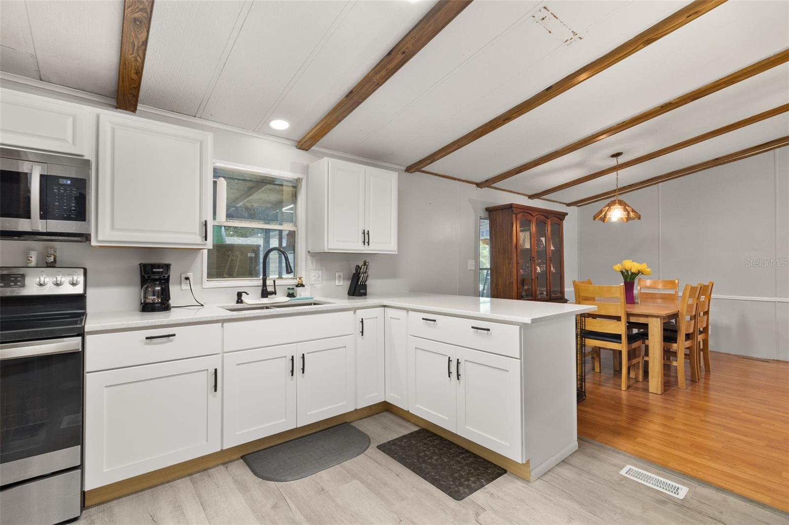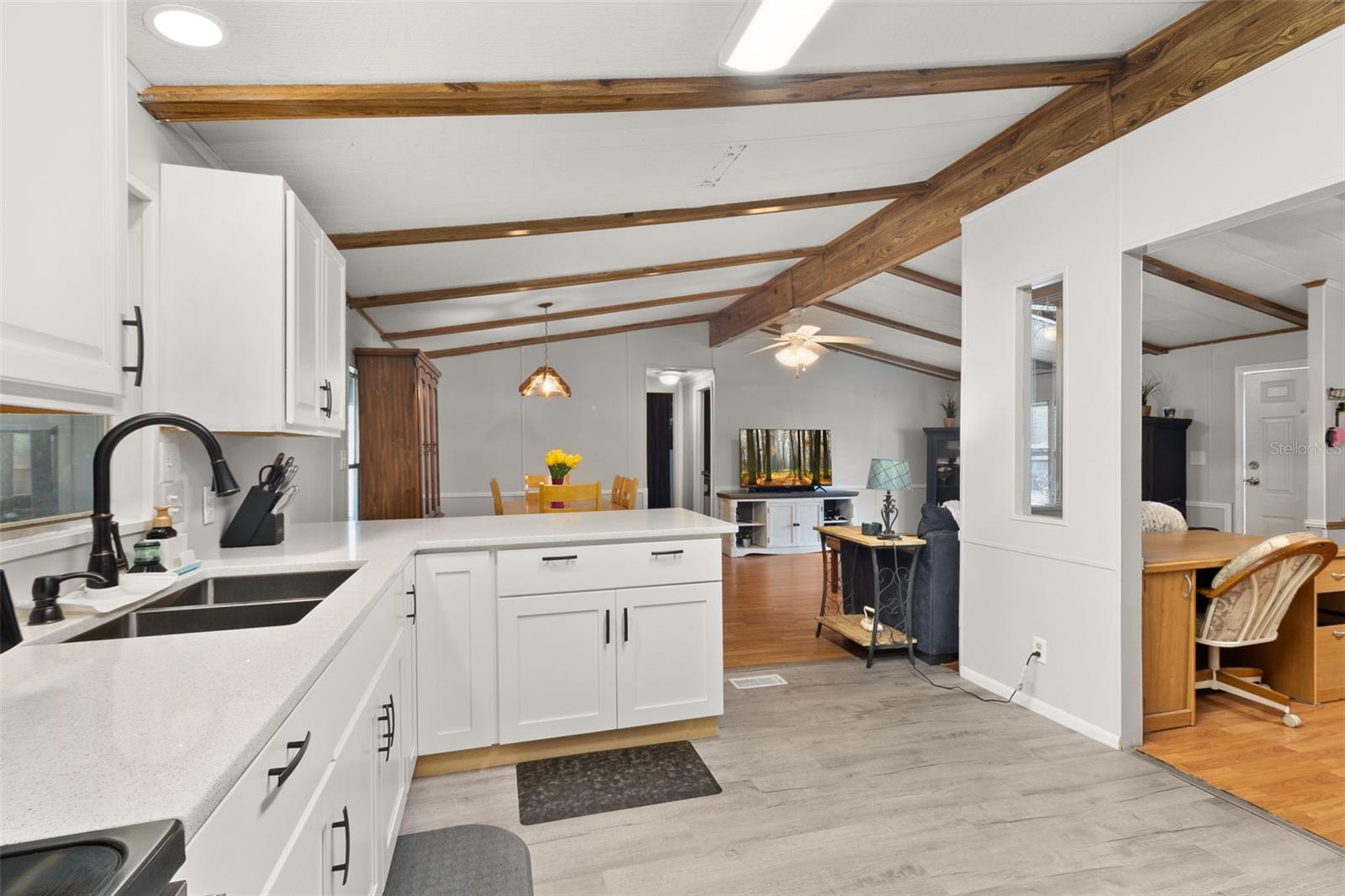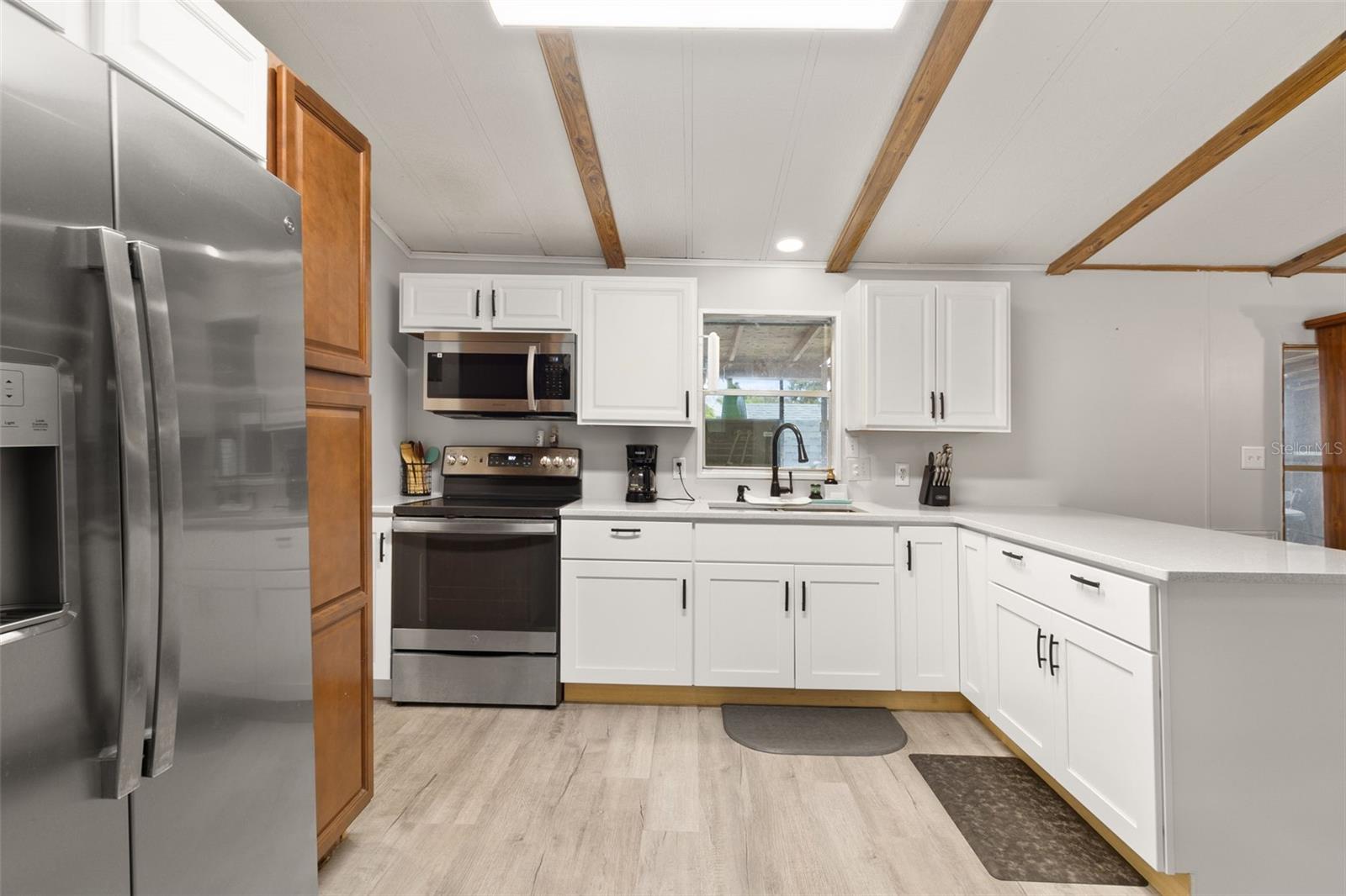 PRICE IMPROVEMENT on this property! This lovingly cared for manufactured house is seeking for new owner. 3 bedrooms, 2 bathrooms, 1,152 sqf property is a great choice as a first home for your family, your winter place in Florida, or even as an income generating investment. Inside, you will find the heart of the home with remodeled kitchen (2024) with sparkly quartz countertop and sleek stainless steel appliances. It is perfect for cooking and entertaining. Main bedroom is on the opposite wing of the house, giving privacy from the other 2 guest bedrooms, and everyone can gather in the living room flows to dining room. Step out to the back porch and sip your coffee in the morning, or gather round the fire pit on cool nights. Fenced in spacious backyard to house your favorite fruit trees or storing your big toys. 2 sheds are staying for you to keep your garden tools organized or as extra storages. The home boasts a new AC system (2023) to ensure comfort year-round. With newer roof (2018), new flooring on the guest bedrooms (2024) and updated plumbing, this property offers peace of mind and is ready for you to move in and enjoy. The community provide amenities such as pool, shuffleboard court and a clubhouse. Location can't get any better. Main arteries US 27 and I-4 are right around the corner. Beaches on both sides of Central Florida are only 80 miles away, Disney's theme parks are less than 10 miles. And Central Florida is filled with so many attractions, you can never be bored! Davenport itself has been blooming in the last 5 years, bringing so many business, job opportunities, shopping centers and multicultural cuisines to this side of town. Make your appointment today to check out this gem.