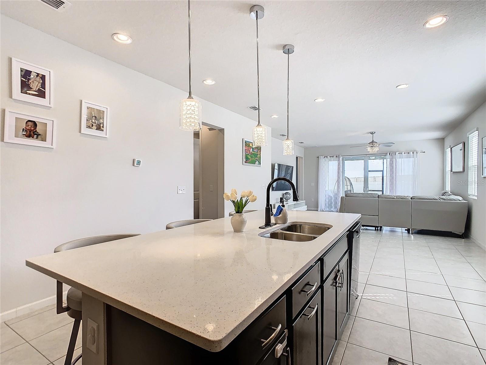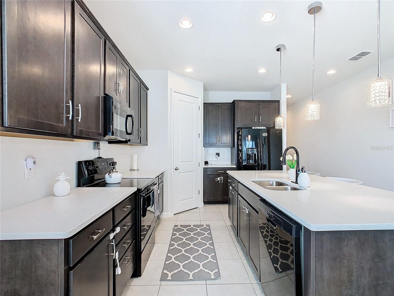 SELLER MOTIVATED!! INCLUDES one year home warranty!!This charming property will peak your interest from the moment you enter its 8’ exterior/interior doors. Premier ceramic tile flooring continues through a chic entry way, kitchen, family & dining area. Beautiful upgraded 42” espresso cabinets highlight an elegant kitchen which features quartz countertops, pantry and under mount stainless sink. A contemporary GE washer & dryer are included also. Lastly, the master bath is highlighted with an upgraded tile shower enclosure. This home is also perfect for entertaining because it includes an extended lanai, ideal for grilling, entertaining, or simply relaxing in your fenced backyard. A list of stylish features you’re certain to fall in love with. Opportunities for outdoor relaxation abound: residents can enjoy the community pool and cabana, a playground and covered pavilions—as well as a dog park! North Ridge is conveniently located off I-4 and less than five miles from a range of dining, shopping and entertainment options, including Posner Park Shopping Mall and resort golf courses. This home also qualifies for the USDA home loan program, making it an incredible opportunity for you to own your dream home in the heart of Davenport, Florida. Don’t miss your chance to make this stunning home your own!