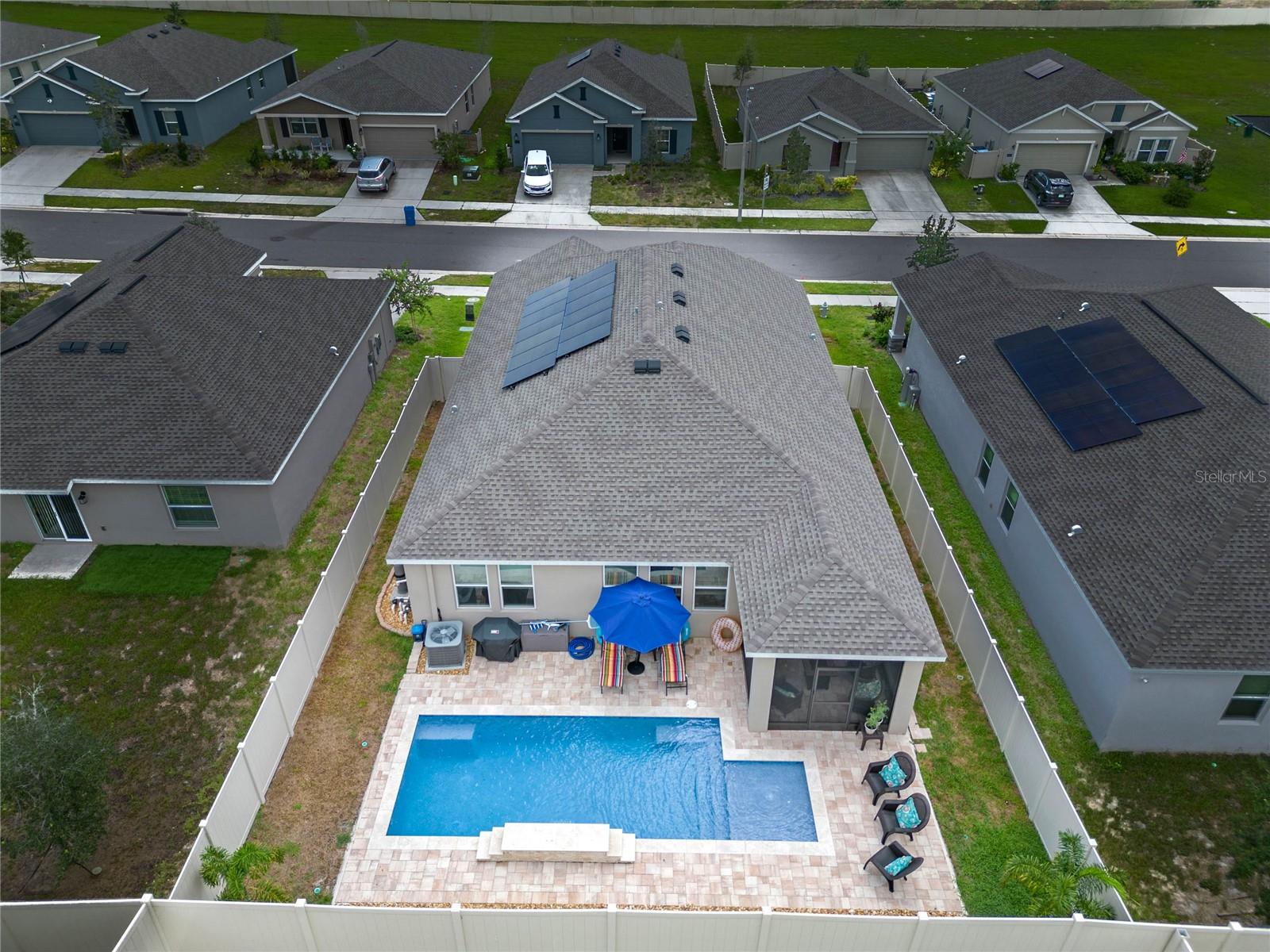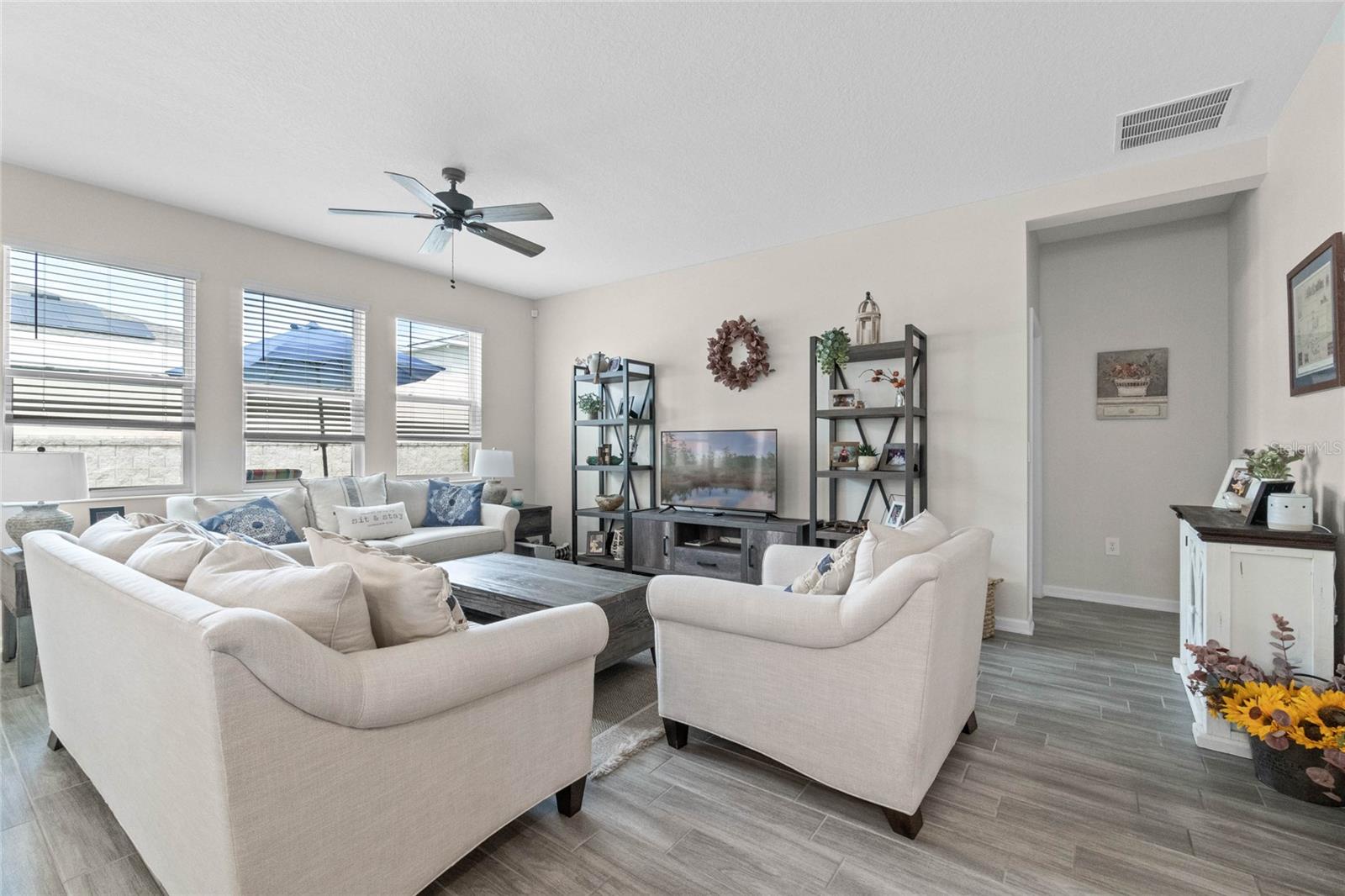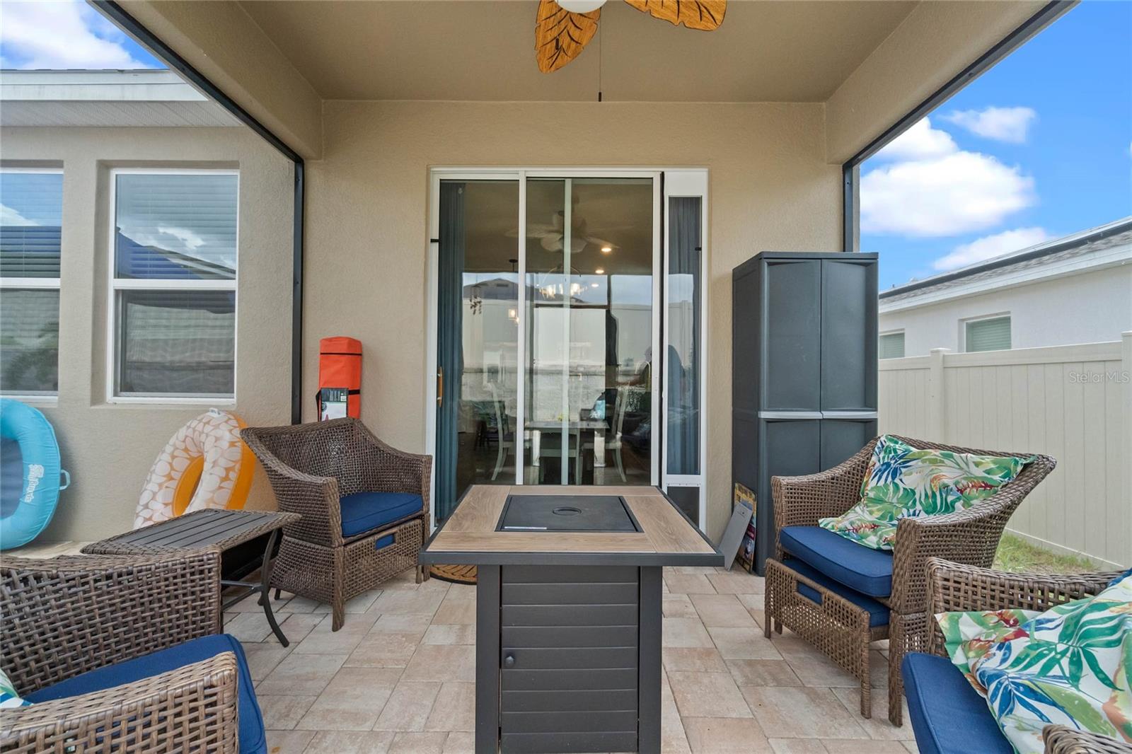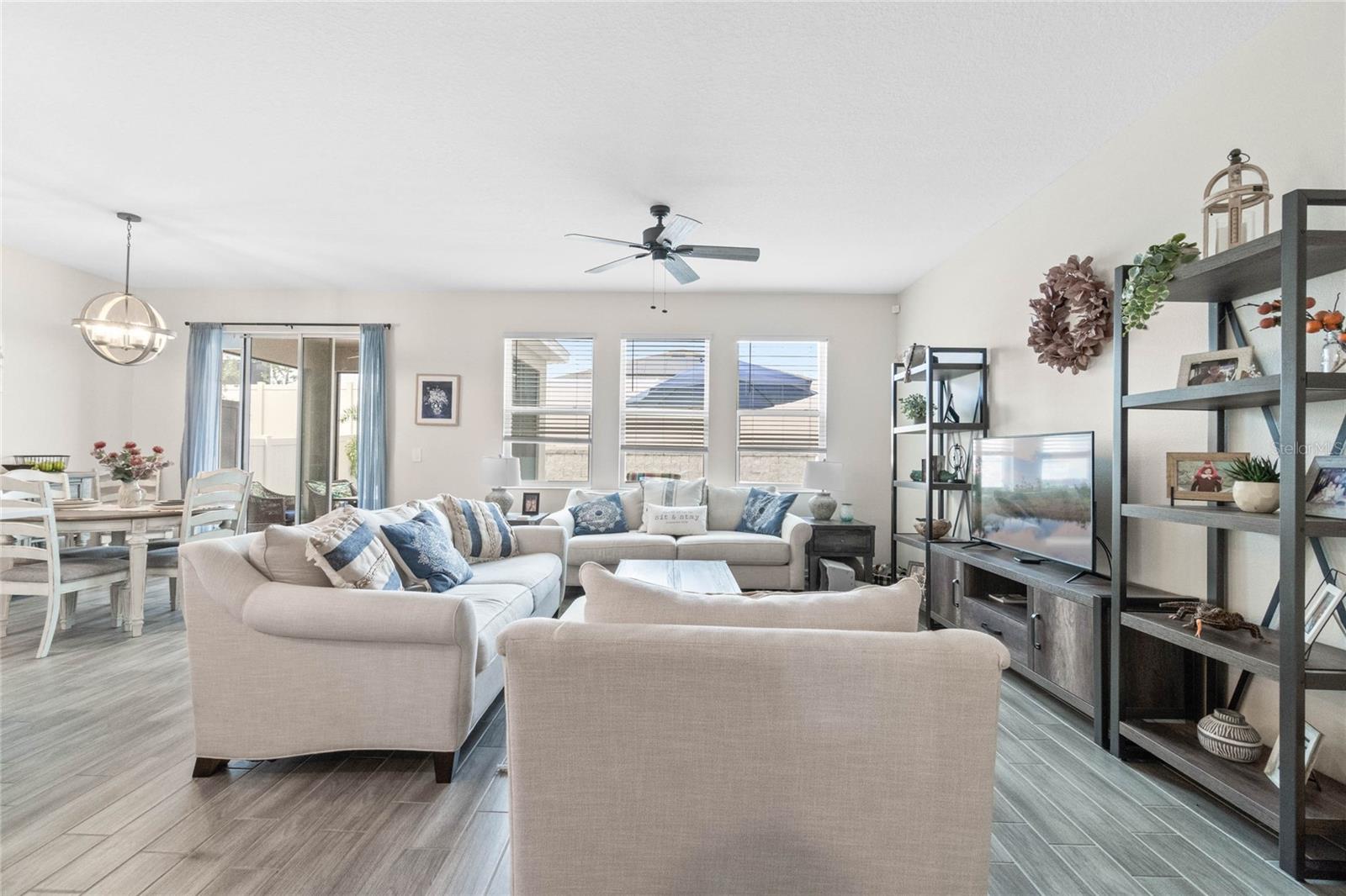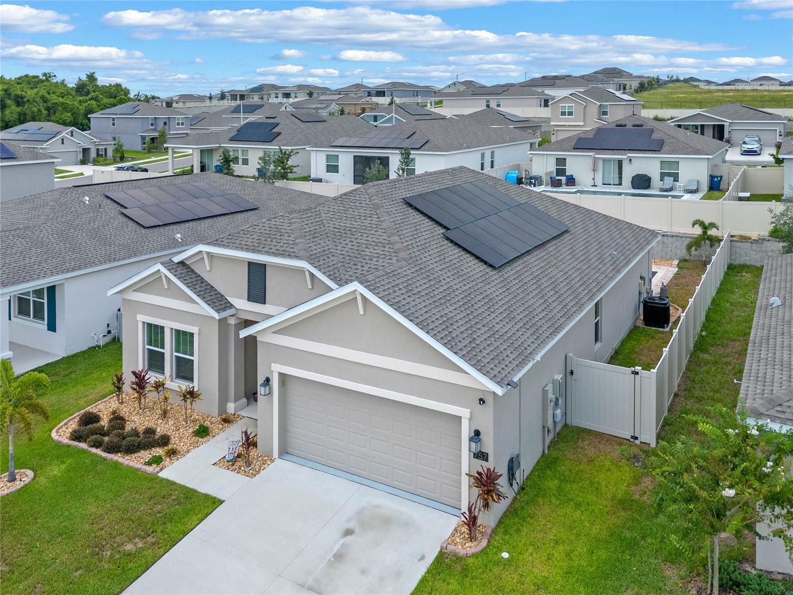 Welcome to 757 Citrus Reserve, a beautifully upgraded 4-bedroom, 2-bathroom home in the heart of Davenport. This property stands out with its thoughtful design choices, modern enhancements, and true Florida living atmosphere. Whether you're a growing family, someone who loves to entertain, or simply looking for a serene retreat, this home has it all. As you approach the property, the curb appeal immediately impresses. The upgraded landscaping creates a lush and inviting exterior, complemented by a striking glass front door that offers a modern touch while allowing natural light to flood the foyer. One of the standout features of this home is its open-concept design, which makes the space feel bright and airy. The kitchen is a chef’s dream, featuring brand-new cabinetry, a farmhouse sink, and stunning waterfall quartz countertops. The wood-look plank tile in the kitchen area adds both durability and elegance, perfect for easy maintenance while delivering a warm, modern aesthetic. For those who appreciate a sleek, organized space, under-cabinet automatic lighting offers an added touch of luxury, ensuring that every corner of the kitchen is well-lit. Adjacent to the kitchen, the dining and living areas flow seamlessly, providing ample room for gatherings. The master suite offers a peaceful retreat with a spacious walk-in closet and plenty of storage space, perfect for keeping your belongings organized. The additional bedrooms are equally well-appointed, offering comfortable spaces for family members or guests. With three full bathrooms, including tastefully upgraded finishes, every family member or visitor will enjoy their own private space. The functional layout makes this home ideal for hosting friends and family. The upgrades continue outside, where you'll find an extended screened-in patio that offers additional living space for relaxing or entertaining year-round. The backyard is a true oasis, featuring a sparkling saltwater pool surrounded by pavers and elegant travertine. The electric pool heater allows for year-round enjoyment, making this outdoor area the perfect spot to unwind after a long day. The fully fenced yard provides privacy and security, making it a great space for pets, children, or simply enjoying the beautiful Florida weather. Additional features of the home include pull-down attic steps with the attic lined in plywood for extra storage space, garage cabinets and shelving for optimal organization, and laundry cabinets for added convenience. The washer and dryer are included, making this home truly move-in ready. Every detail has been carefully considered to maximize storage and functionality. 757 Citrus Reserve is part of a community that offers additional amenities such as a pool, and dog park, making it the perfect environment for family living. The prime location in Davenport provides easy access to nearby schools, shopping centers, restaurants, and major highways, ensuring that everything you need is just a short drive away. This home has been meticulously upgraded and is ready for its next owner to enjoy all the luxury and comfort that it provides. With its modern design, thoughtful upgrades, and unbeatable location, 757 Citrus Reserve is a true Florida oasis waiting to welcome you home. Don't miss the opportunity to make this exceptional property yours!
