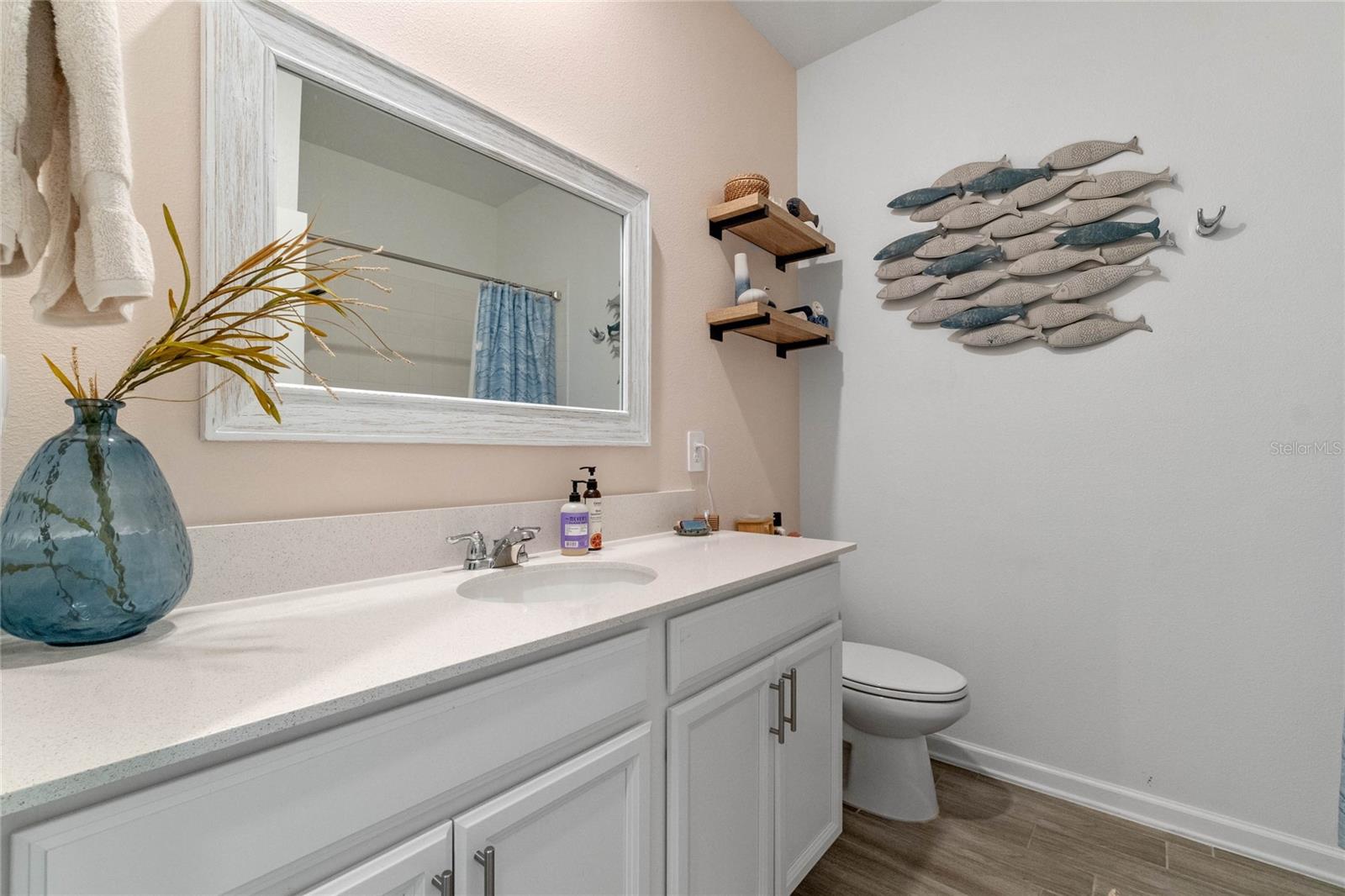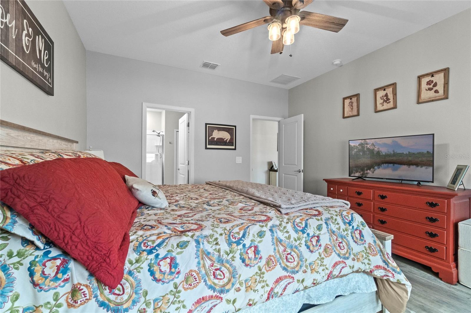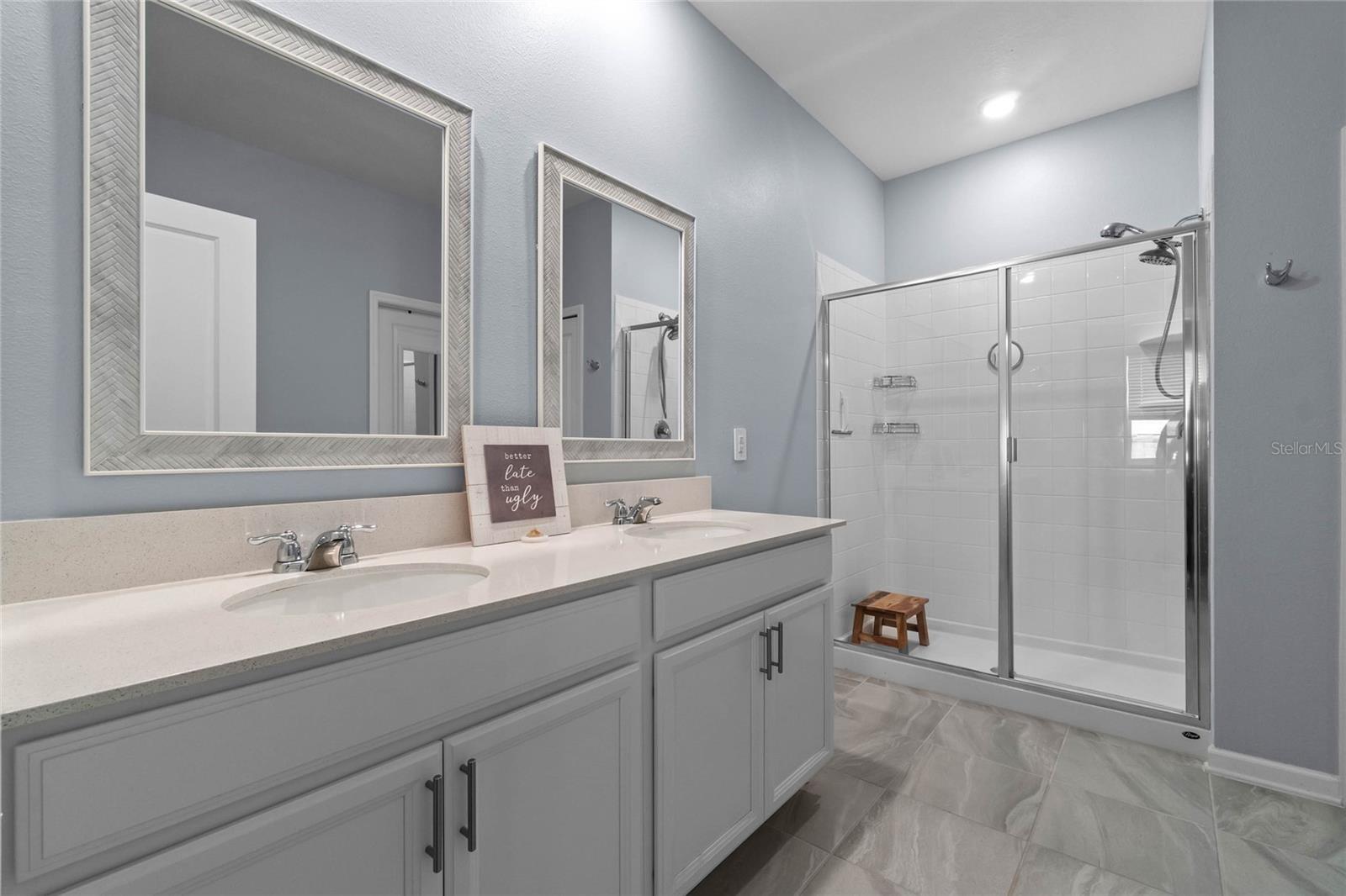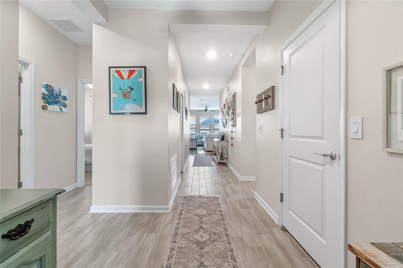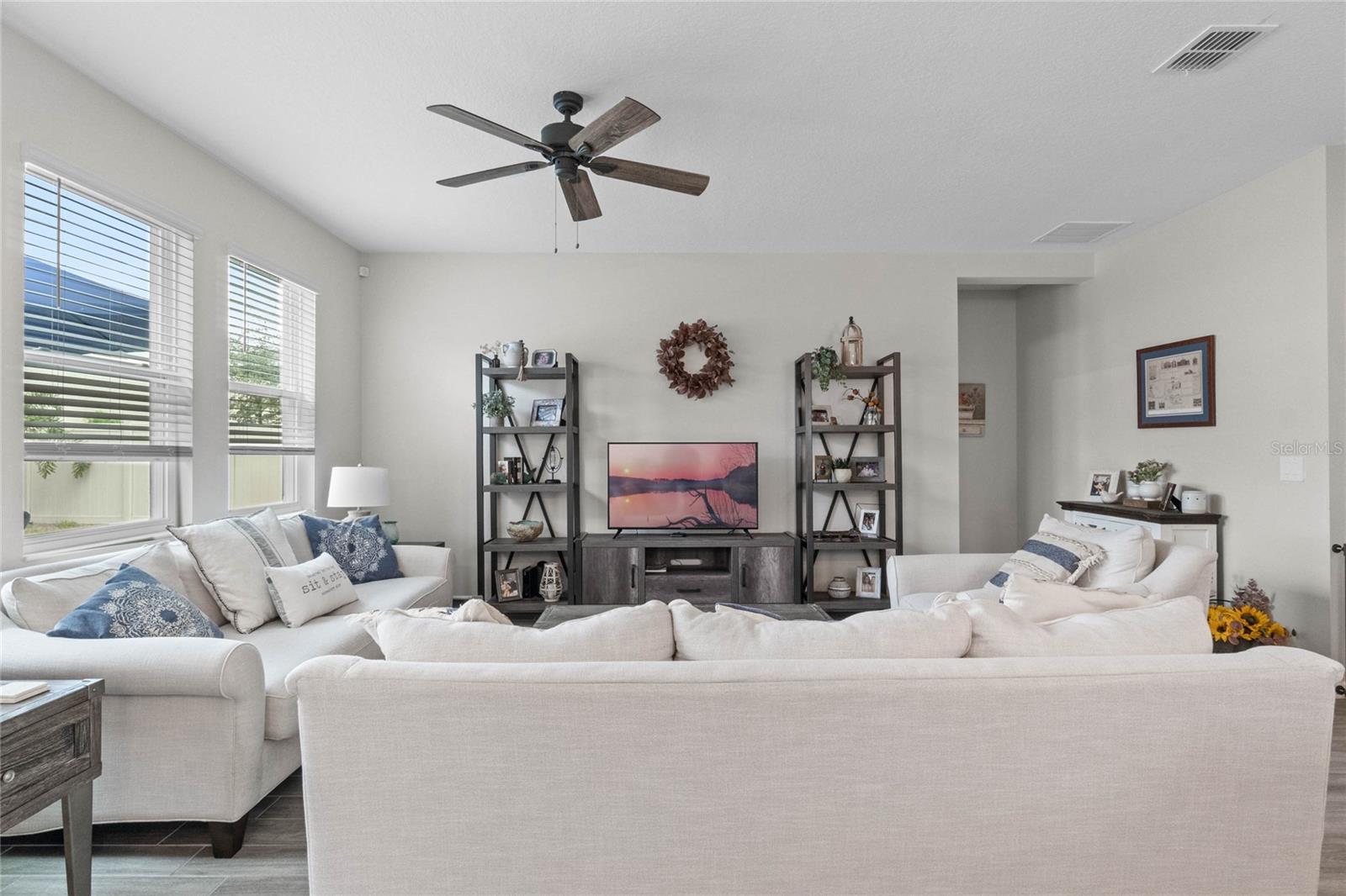 Welcome to 757 Citrus Reserve, a beautifully upgraded 4-bedroom, 2-bathroom home in the heart of Davenport. This property stands out with its thoughtful design choices, modern enhancements, and true Florida living atmosphere. Whether you're a growing family, someone who loves to entertain, or simply looking for a serene retreat, this home has it all. As you approach the property, the curb appeal immediately impresses. The upgraded landscaping creates a lush and inviting exterior, complemented by a striking glass front door that offers a modern touch while allowing natural light to flood the foyer. One of the standout features of this home is its open-concept design, which makes the space feel bright and airy. The kitchen is a chef’s dream, featuring brand-new cabinetry, a farmhouse sink, and stunning waterfall quartz countertops. The wood-look plank tile in the kitchen area adds both durability and elegance, perfect for easy maintenance while delivering a warm, modern aesthetic. For those who appreciate a sleek, organized space, under-cabinet automatic lighting offers an added touch of luxury, ensuring that every corner of the kitchen is well-lit. Adjacent to the kitchen, the dining and living areas flow seamlessly, providing ample room for gatherings. The master suite offers a peaceful retreat with a spacious walk-in closet and plenty of storage space, perfect for keeping your belongings organized. The additional bedrooms are equally well-appointed, offering comfortable spaces for family members or guests. With three full bathrooms, including tastefully upgraded finishes, every family member or visitor will enjoy their own private space. The functional layout makes this home ideal for hosting friends and family. The upgrades continue outside, where you'll find an extended screened-in patio that offers additional living space for relaxing or entertaining year-round. The backyard is a true oasis, featuring a sparkling saltwater pool surrounded by pavers and elegant travertine. The electric pool heater allows for year-round enjoyment, making this outdoor area the perfect spot to unwind after a long day. The fully fenced yard provides privacy and security, making it a great space for pets, children, or simply enjoying the beautiful Florida weather. Additional features of the home include pull-down attic steps with the attic lined in plywood for extra storage space, garage cabinets and shelving for optimal organization, and laundry cabinets for added convenience. The washer and dryer are included, making this home truly move-in ready. Every detail has been carefully considered to maximize storage and functionality. 757 Citrus Reserve is part of a community that offers additional amenities such as a pool, and dog park, making it the perfect environment for family living. The prime location in Davenport provides easy access to nearby schools, shopping centers, restaurants, and major highways, ensuring that everything you need is just a short drive away. This home has been meticulously upgraded and is ready for its next owner to enjoy all the luxury and comfort that it provides. With its modern design, thoughtful upgrades, and unbeatable location, 757 Citrus Reserve is a true Florida oasis waiting to welcome you home. Don't miss the opportunity to make this exceptional property yours!