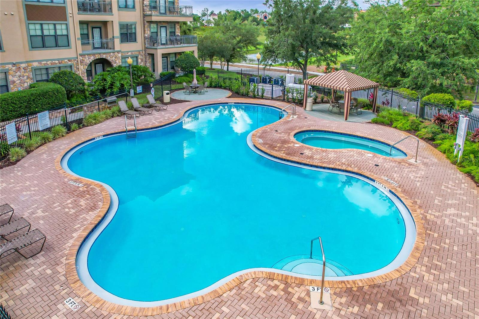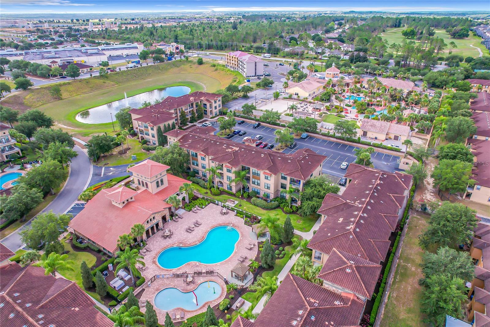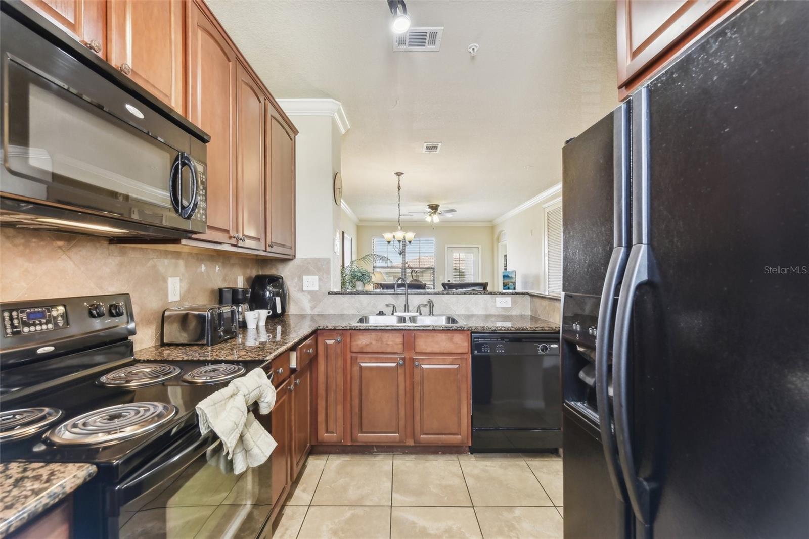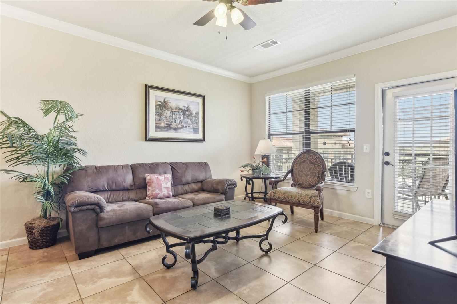 Welcome to Bella Piazza, a Tuscan-style resort and is great for short term vacation leasing, long term tenants, or make it your permanent residence! This is a 2 bedroom / 2 bathroom end unit on the 3rd floor (top floor) of a building close to the main exit, allowing for easy in and out for the community! And yes, the building does have an elevator, so no need to worry about carrying groceries or luggage up the stairs! Step in through the front door into the main living space. This floor plan is split, with the left side of the condo being the living space, and the right side the bedrooms and bathrooms. The kitchen, dining area, and living room all flow together. You will notice the high-end touches in this condo include crown molding, granite countertops, and solid wood cabinets. In addition to the dining room table, there is additional seating in the breakfast bar as well! And through the living room, you also have access to the covered balcony. If you turn right, you will find the 2nd bedroom as well as the 2nd bathroom. This bathroom is not ensuite, but rather right next to the bedroom, meaning easy access for those staying in the 2nd bedroom but also the convenience of not going through a bedroom during the day! Between the two bedrooms is a closet that houses the stackable washer and dryer. The master suite is at the back of the unit and features a large closet and an ensuite bathroom, with garden tub and separate tile shower. You can also access the balcony through this bedroom as well! The owners recently replaced the carpets in the home with luxury vinyl plank, and the home has a BRAND NEW hot water heater! This condo is being sold fully furnished and turnkey! The community features two separate pools, one in the main clubhouse area, and another the next building over. The clubhouse requires key access, and has a business center, fitness center, large patio space, and pools. Monthly condo fee includes cable, internet, trash, and water! Schedule your showing today!
