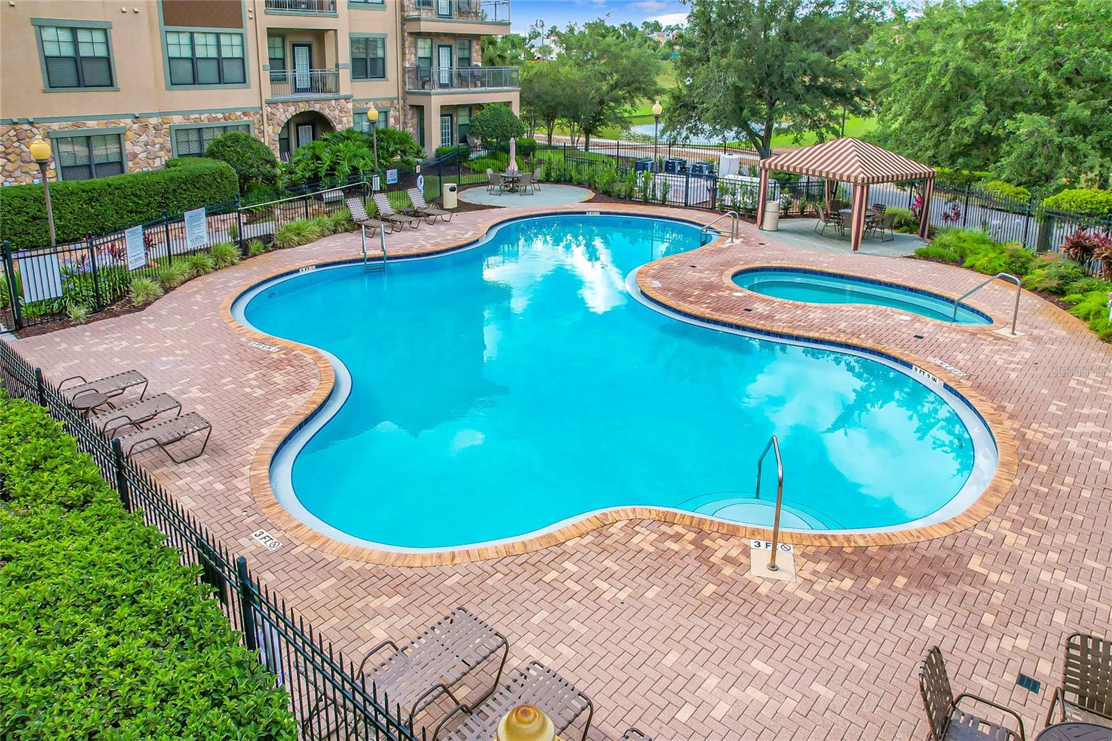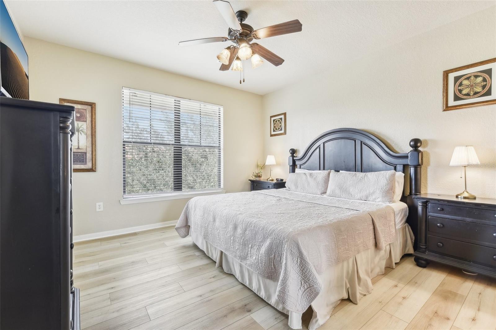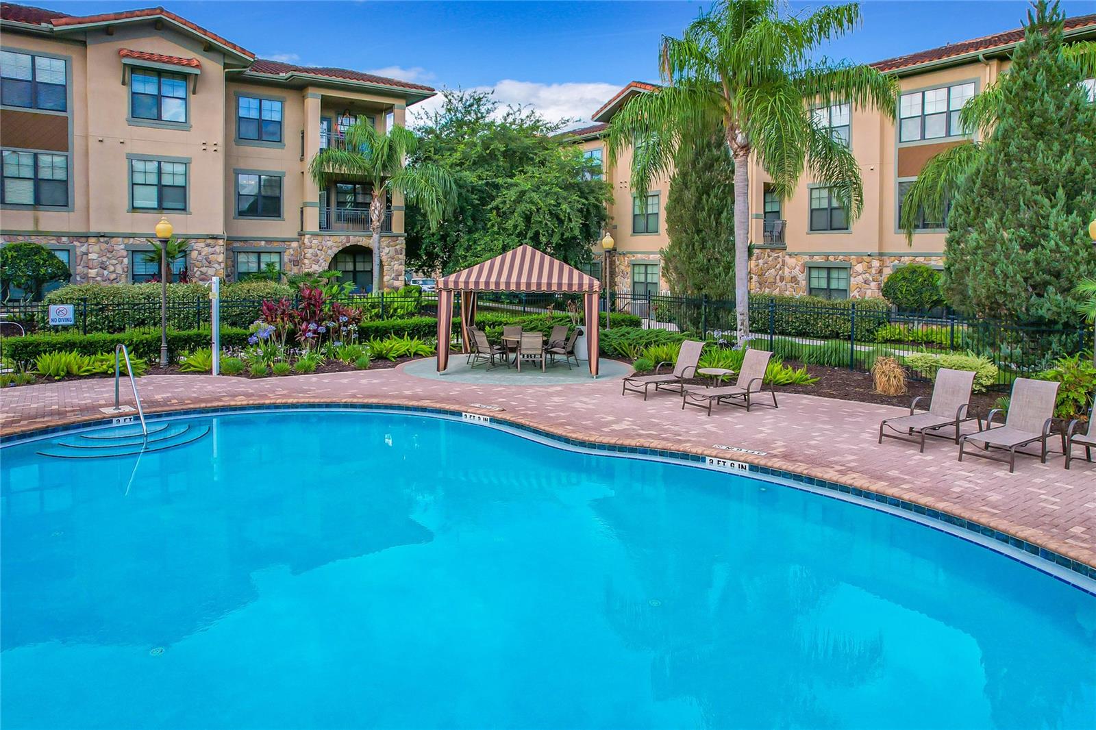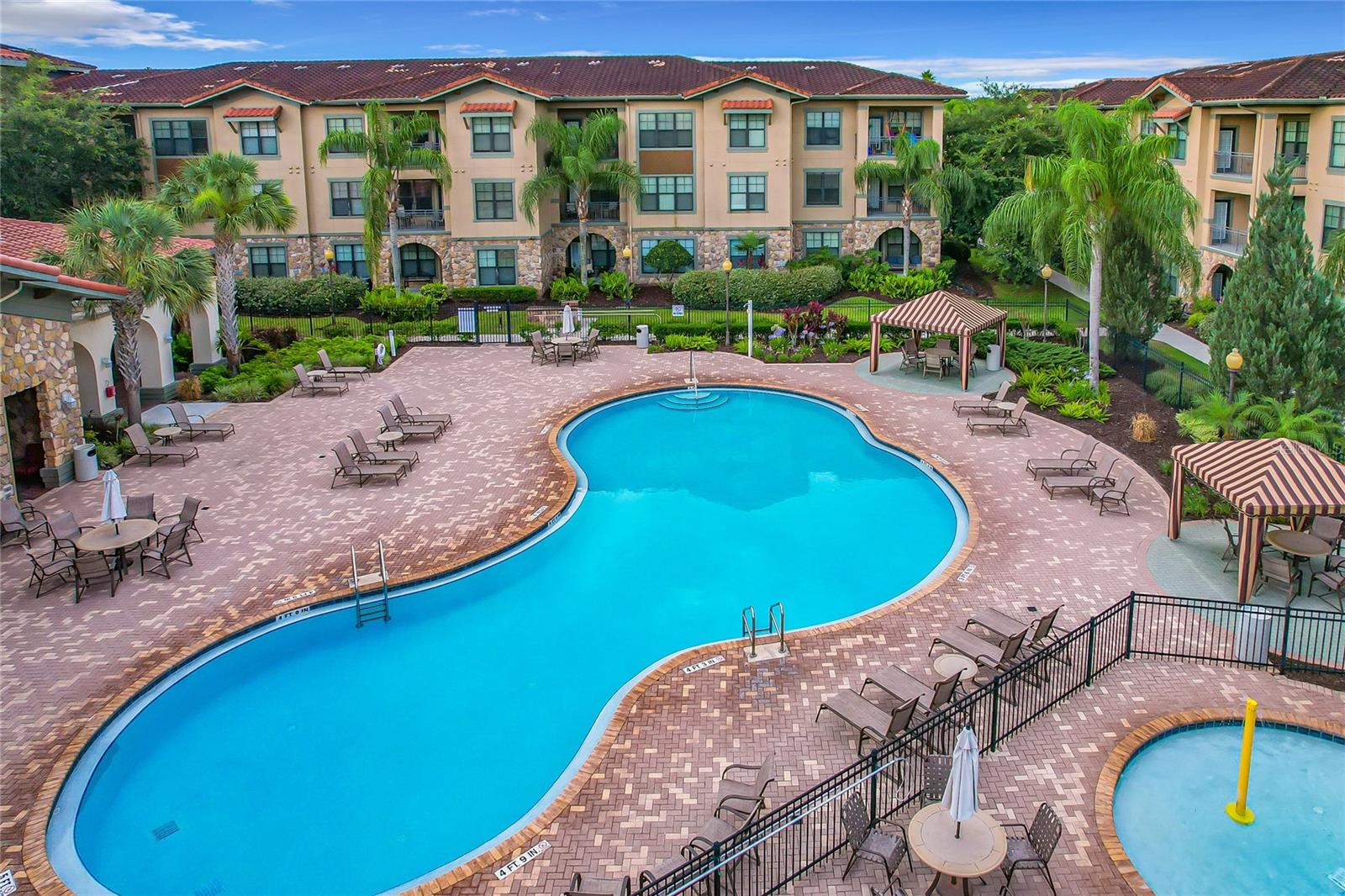 Welcome to Bella Piazza, a Tuscan-style resort and is great for short term vacation leasing, long term tenants, or make it your permanent residence! This is a 2 bedroom / 2 bathroom end unit on the 3rd floor (top floor) of a building close to the main exit, allowing for easy in and out for the community! And yes, the building does have an elevator, so no need to worry about carrying groceries or luggage up the stairs! Step in through the front door into the main living space. This floor plan is split, with the left side of the condo being the living space, and the right side the bedrooms and bathrooms. The kitchen, dining area, and living room all flow together. You will notice the high-end touches in this condo include crown molding, granite countertops, and solid wood cabinets. In addition to the dining room table, there is additional seating in the breakfast bar as well! And through the living room, you also have access to the covered balcony. If you turn right, you will find the 2nd bedroom as well as the 2nd bathroom. This bathroom is not ensuite, but rather right next to the bedroom, meaning easy access for those staying in the 2nd bedroom but also the convenience of not going through a bedroom during the day! Between the two bedrooms is a closet that houses the stackable washer and dryer. The master suite is at the back of the unit and features a large closet and an ensuite bathroom, with garden tub and separate tile shower. You can also access the balcony through this bedroom as well! The owners recently replaced the carpets in the home with luxury vinyl plank, and the home has a BRAND NEW hot water heater! This condo is being sold fully furnished and turnkey! The community features two separate pools, one in the main clubhouse area, and another the next building over. The clubhouse requires key access, and has a business center, fitness center, large patio space, and pools. Monthly condo fee includes cable, internet, trash, and water! Schedule your showing today!