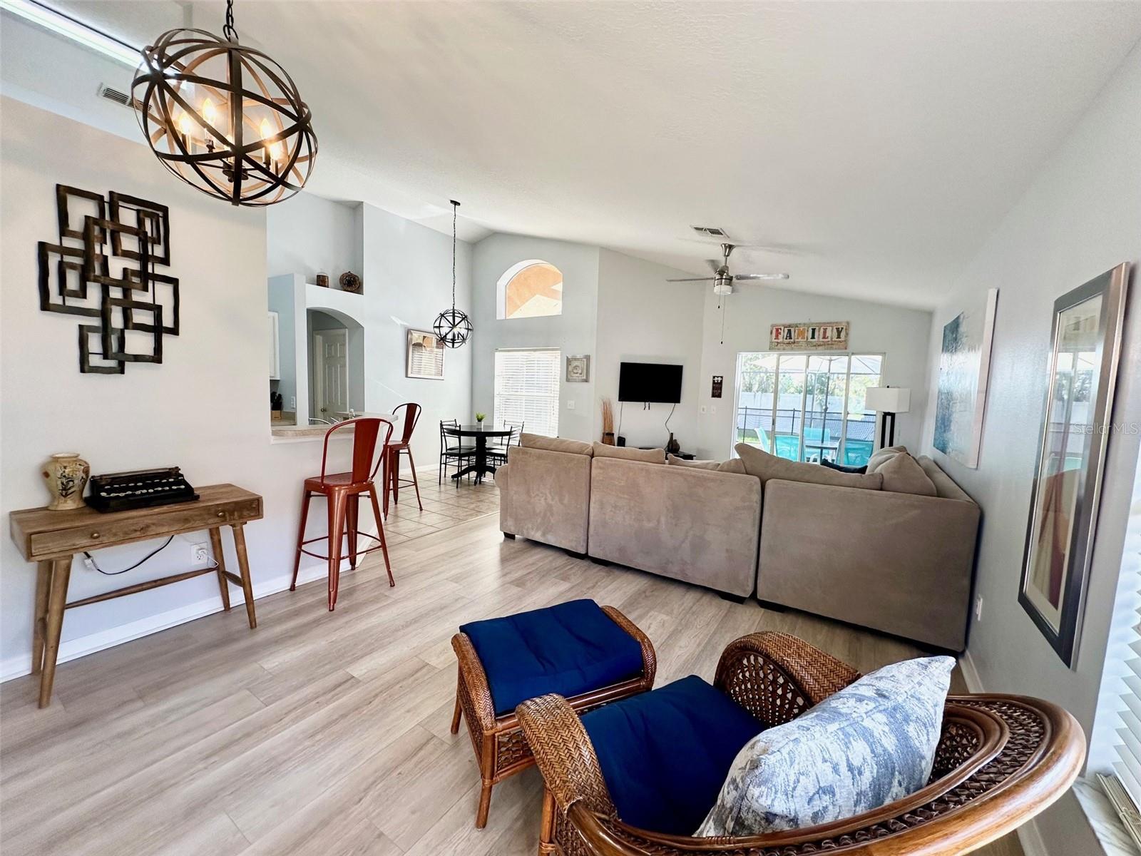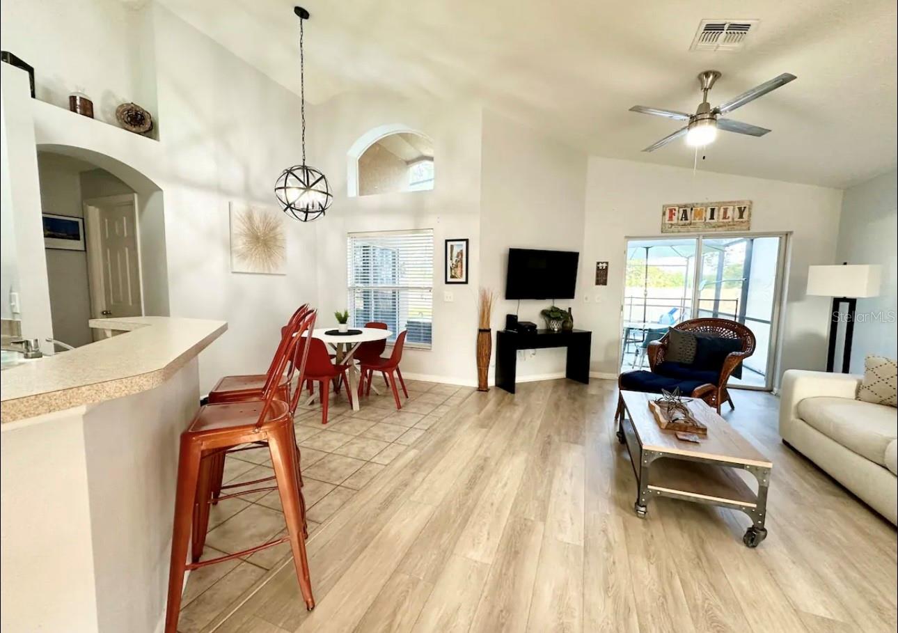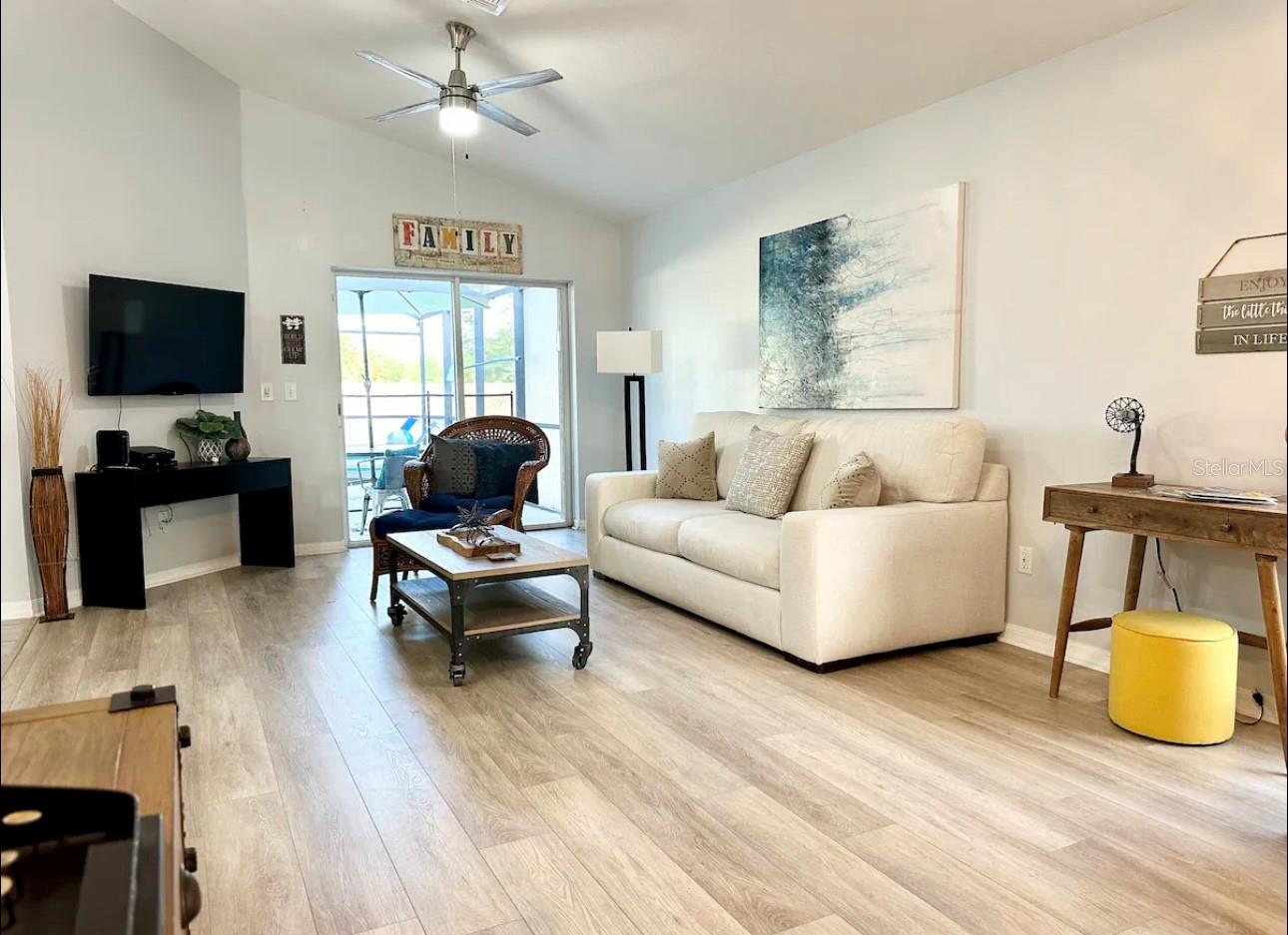 PRICE REDUCTION! MOTIVATED SELLER!! Looking for the perfect investment property? This income producing short term rental(airbnb) is a turnkey opportunity, comes fully furnished and ready to generate revenue from day one! The house has been completely renovated with new laminate flooring, garage has separate in garage A/C and garage is completely insulated and game room. Heated pool and seperate hot tub/spa. New kitchen and appliances. Tankless water heater. The home has no rear neighbors. Located minutes from Disney World and other park attractions, shopping, restaurants, I4 and more! Schedule your personal tour for this immaculate beauty. Enjoy your private backyard oasis, while enjoying your sparkling pool and added above ground spa. The community offers fantastic resort-style amenities including a manned guard gate, community pool, clubhouse, arcade room, volleyball, playground, hot tub and more! The home features vaulted ceilings, a living/dining room combo, separate kitchen with family room, split bedroom plan and 2 car garage. Included in the community are the valet trash, cable, internet, all lawn and landscape is included. House is ready to rent.