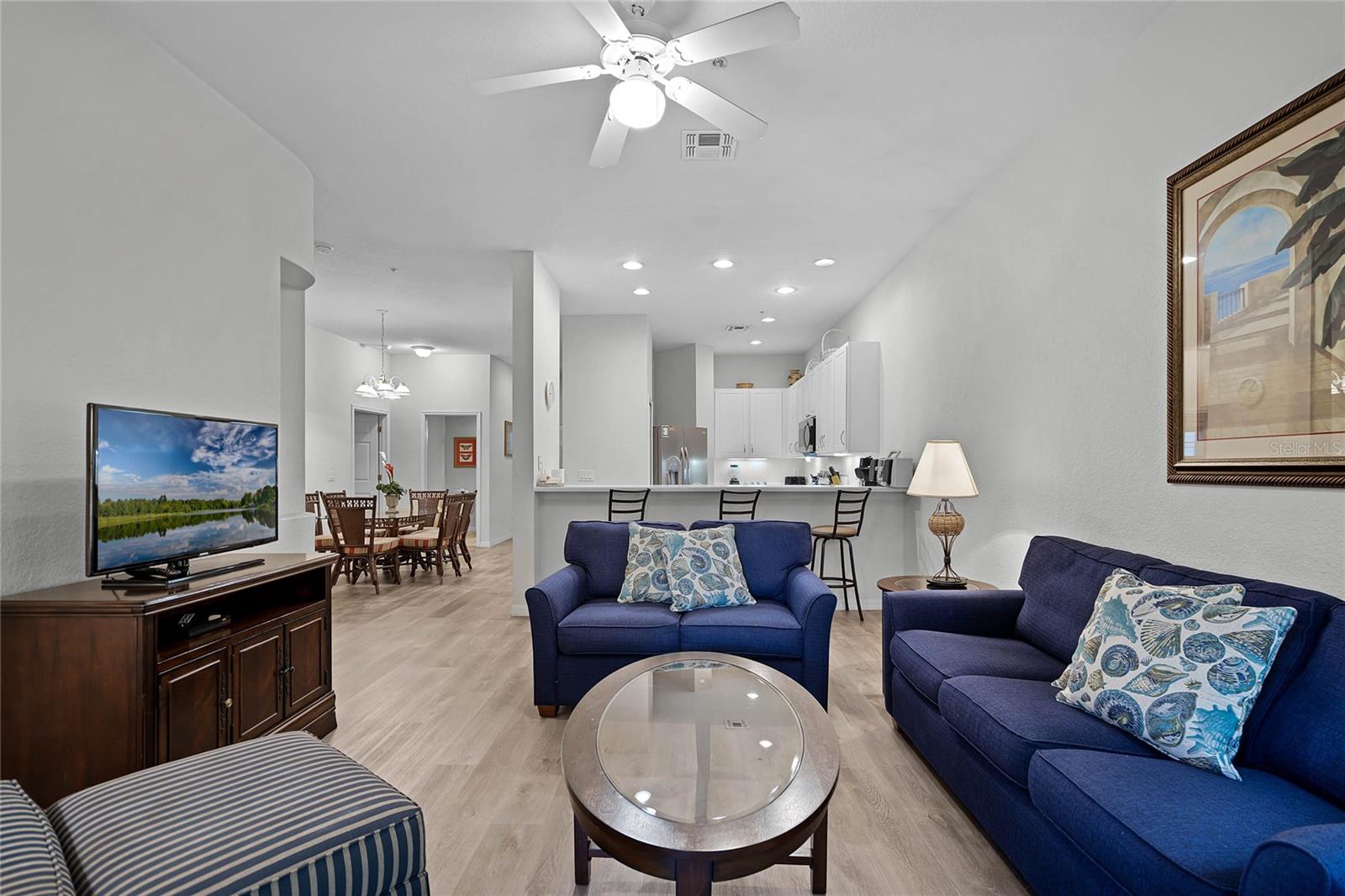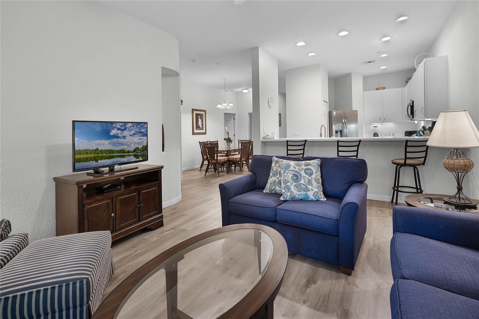 Escape to your own tropical paradise at 306 Lucaya Loop, a fully furnished 2-bedroom, 2-bathroom first floor end unit condo in the heart of Bahama Bay Resort. Located within 10 miles to Disney World. Recent upgrades, including a new HVAC system and water heater, provide modern comfort and peace of mind. The Dishwasher and Washer/Dryer also replaced this Year. As an owner, you'll have unlimited access to Bahama Bay's resort-style amenities, including 4 shimmering pools, Kiddy Splash pool, a sandy beach, tennis courts, a well-equipped fitness center, and delicious on-site dining. Gas Grills and Playground located a few steps from the front door of this condo. When you're ready to explore, Central Florida's world-famous attractions, shopping, and dining are just a short drive away. This turnkey condo offers the perfect blend of relaxation and convenience, making it an ideal investment for those seeking a vacation home that feels like an everyday escape.