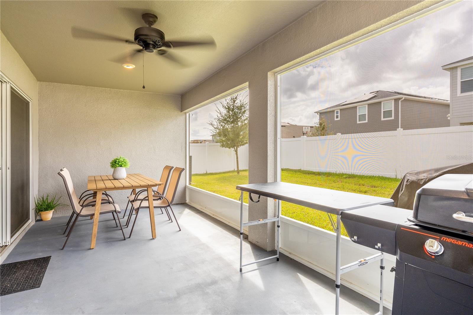 This beautiful, nearly new (2022) single-family home offers you a luxurious living experience, where upon entering you will feel the spaciousness of the open concept, with a great room, vaulted ceilings, and upgraded features throughout. Enjoy vinyl plank flooring, stainless steel appliances, quartz countertops, and a tile backsplash that provides the perfect contrast in the open kitchen. The spacious master suite includes a coffered ceiling and dual walk-in closets. Outside, relax on the covered and screened back porch. Astonia community amenities include a resort-style pool, playground, dog park, and scenic conservation areas. Located just minutes from Magic Kingdom, shopping, and major highways, this home is the perfect blend of comfort and convenience.