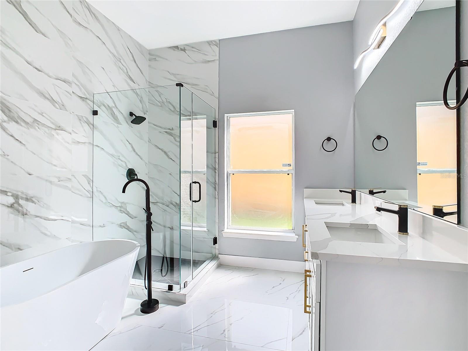 PRICE IMPROVEMENT! Step into a world of elegance and sophistication with this meticulously upgraded masterpiece. Every detail of this stunning home has been thoughtfully curated to create an oasis of comfort and style. As you enter, be greeted by the seamless porcelain tile that flows gracefully throughout the first floor, exuding an air of refinement. The expansive open layout invites you to experience a harmonious blend of space and warmth, perfect for both intimate gatherings and grand entertaining. The heart of the home—a chef’s dream kitchen—boasts a generous center island, a charming farmer’s sink, and exquisite quartz countertops that make culinary creations a delight. Imagine hosting dinner parties in the family room, where large windows frame picturesque views of the sparkling pool and serene spa, providing a perfect backdrop for relaxation and enjoyment. Retreat to the first-floor master bedroom, a true sanctuary featuring sliding doors that lead directly to your private outdoor haven. The newly designed master bath is a luxurious escape in itself, featuring elegant cabinetry, a separate shower, a sumptuous soaking tub, and double sinks, all crafted for both style and functionality. The second-floor offers an additional primary suite, complete with its own lavish master bathroom, ensuring ultimate privacy and comfort for family or guests. The luxury plank tile flooring on the upper level adds a polished touch, elevating the entire space. With significant updates including a new roof (June 2018), a new A/C unit (April 2021), and a new pool pump (April 2021), this home not only dazzles but also provides peace of mind and reliability for years to come. This move-in ready gem is a rare find, offering an exquisite blend of modern upgrades, exceptional functionality, and unparalleled comfort. Don’t miss your chance to call this luxurious residence your own. Schedule your private viewing today and experience the allure of this exceptional home firsthand!