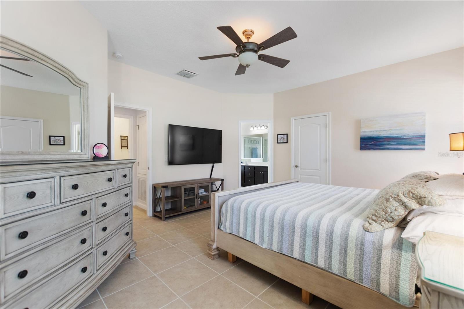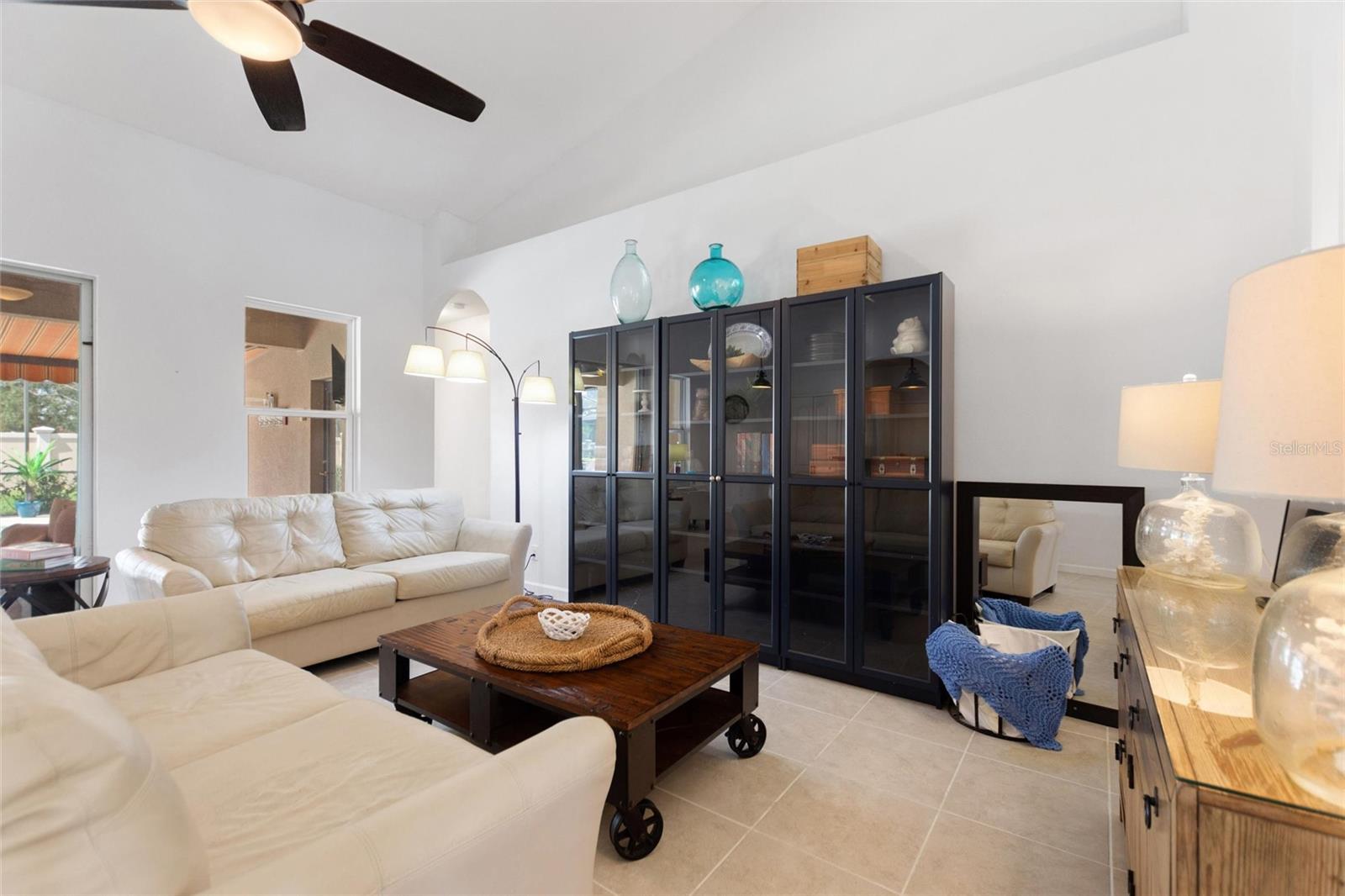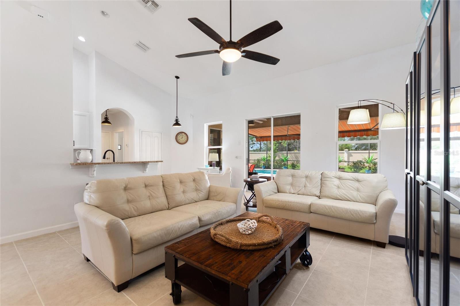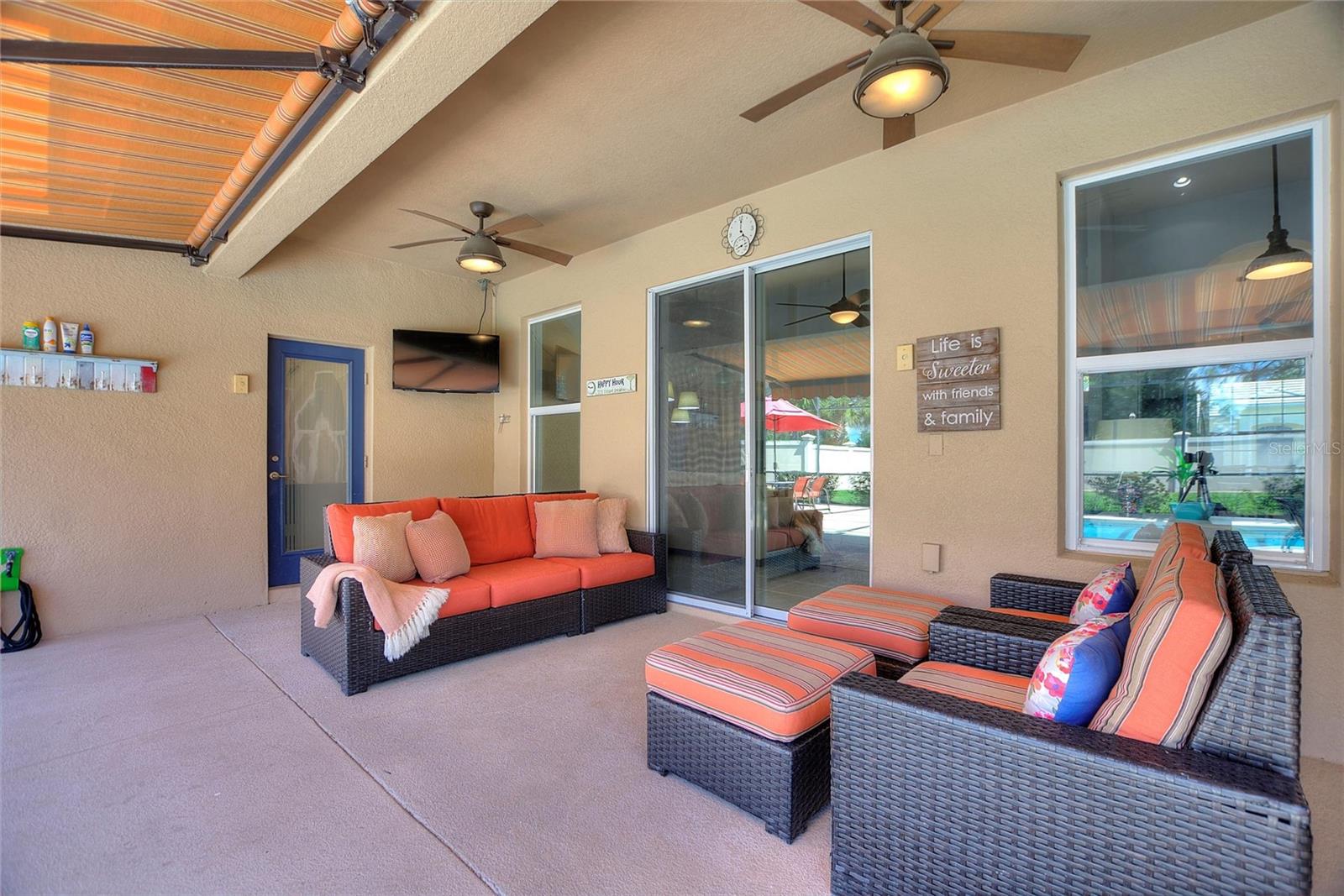 Welcome to this stunning, single-level 5-bedroom home, where every detail is crafted for both comfort and style. The moment you step inside, vaulted ceilings and an open, airy layout invite you into a space perfect for both relaxation and lively gatherings. The formal dining room, which seats eight, flows seamlessly into a spacious living area designed for entertaining, while the sparkling, fully equipped kitchen and chic bar area ensure you’re always at the heart of the action. Outside, an expansive pool deck surrounds the oversized 15’x30’ pool, offering space for six lounge chairs, two dining tables for ten, and a cozy outdoor living room under roof, complete with a wall-mounted TV. A sleek, remote-controlled retractable Venetian-style awning adds a touch of luxury to your outdoor experience, making this home ideal for enjoying both quiet mornings and fun-filled afternoons with family and friends. Perfectly maintained and filled with flawless, timeless furnishings, this home offers a sleek yet laid-back vibe, creating the perfect retreat for both residents and guests. Impeccable care has been given to every aspect of this home, making it truly one of a kind. Beyond the home, you’ll find yourself in a vibrant community known for its fun, resort-style amenities. Whether you’re floating along the Lazy River, zipping down the Resort Slide, playing volleyball in the pool, or enjoying a match on the tennis courts, the options for recreation are endless. The clubhouse offers a fitness center and an on-site café, making it easy to embrace an active, social lifestyle. And just minutes away, you’ll find championship golf courses, fabulous restaurants, and shopping, providing the ultimate in convenience and entertainment. This home and community strike the perfect balance between sophistication and fun, making it an ideal place to live, relax, and entertain.