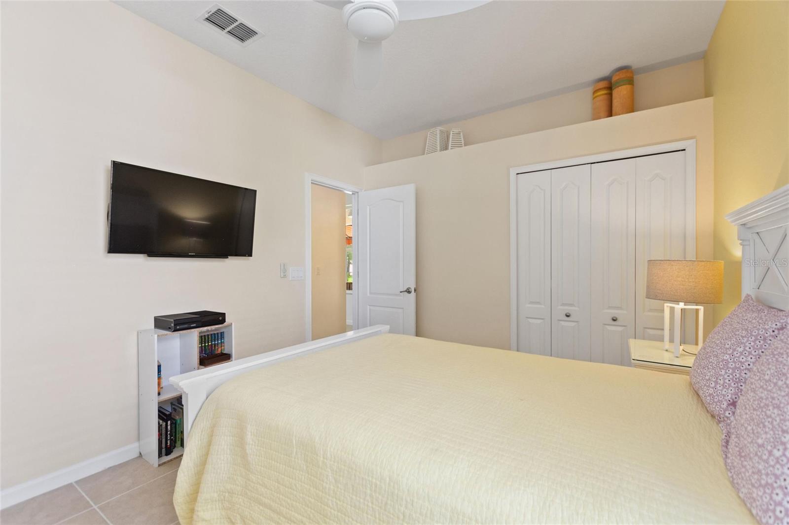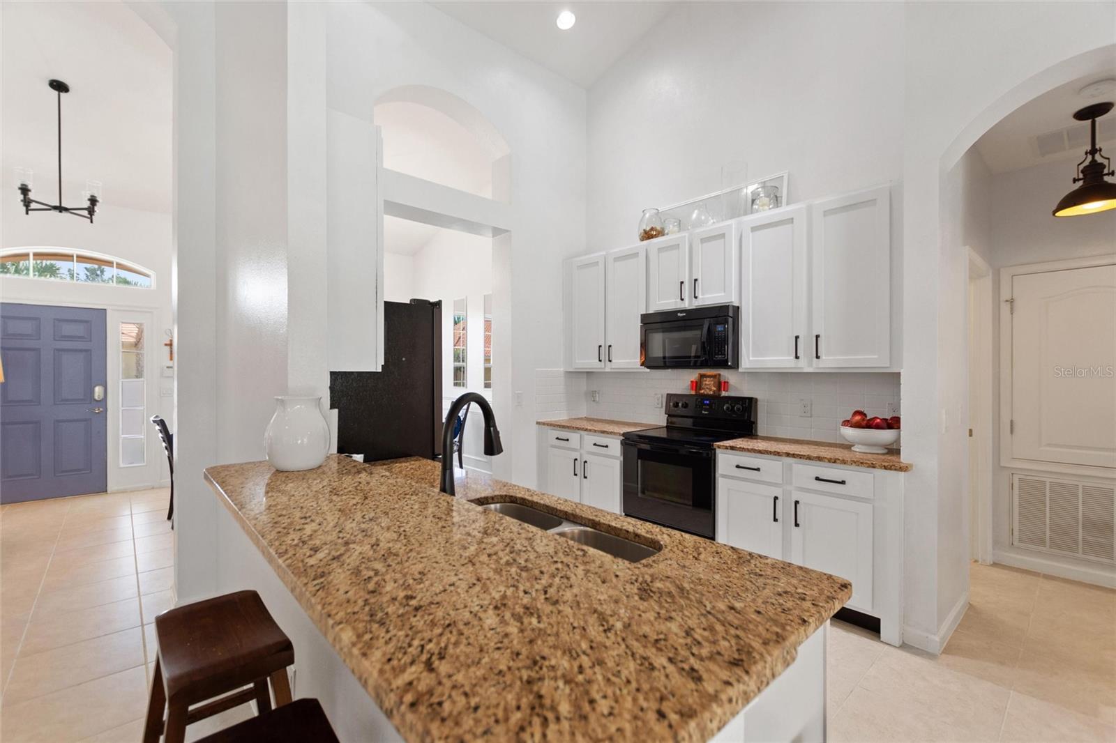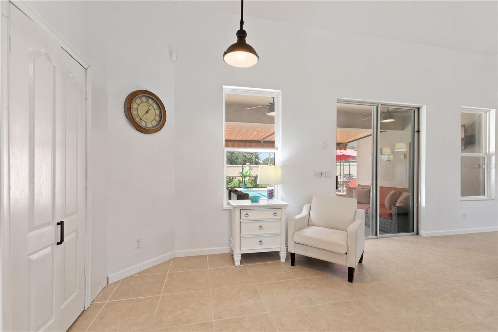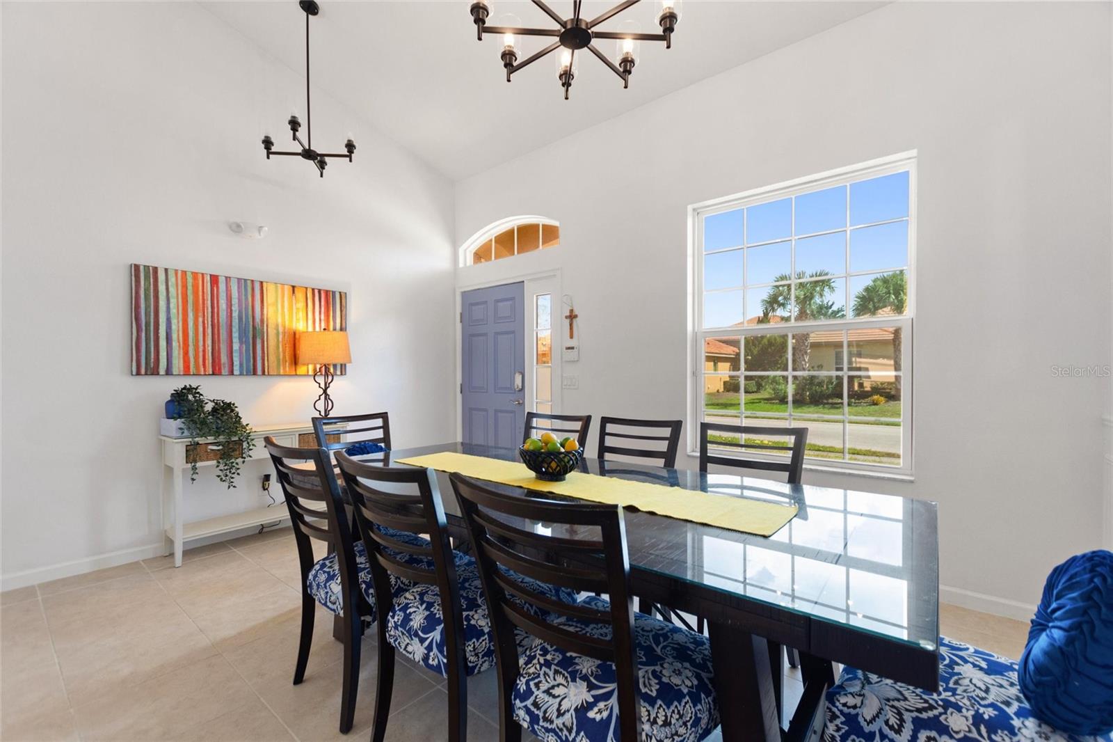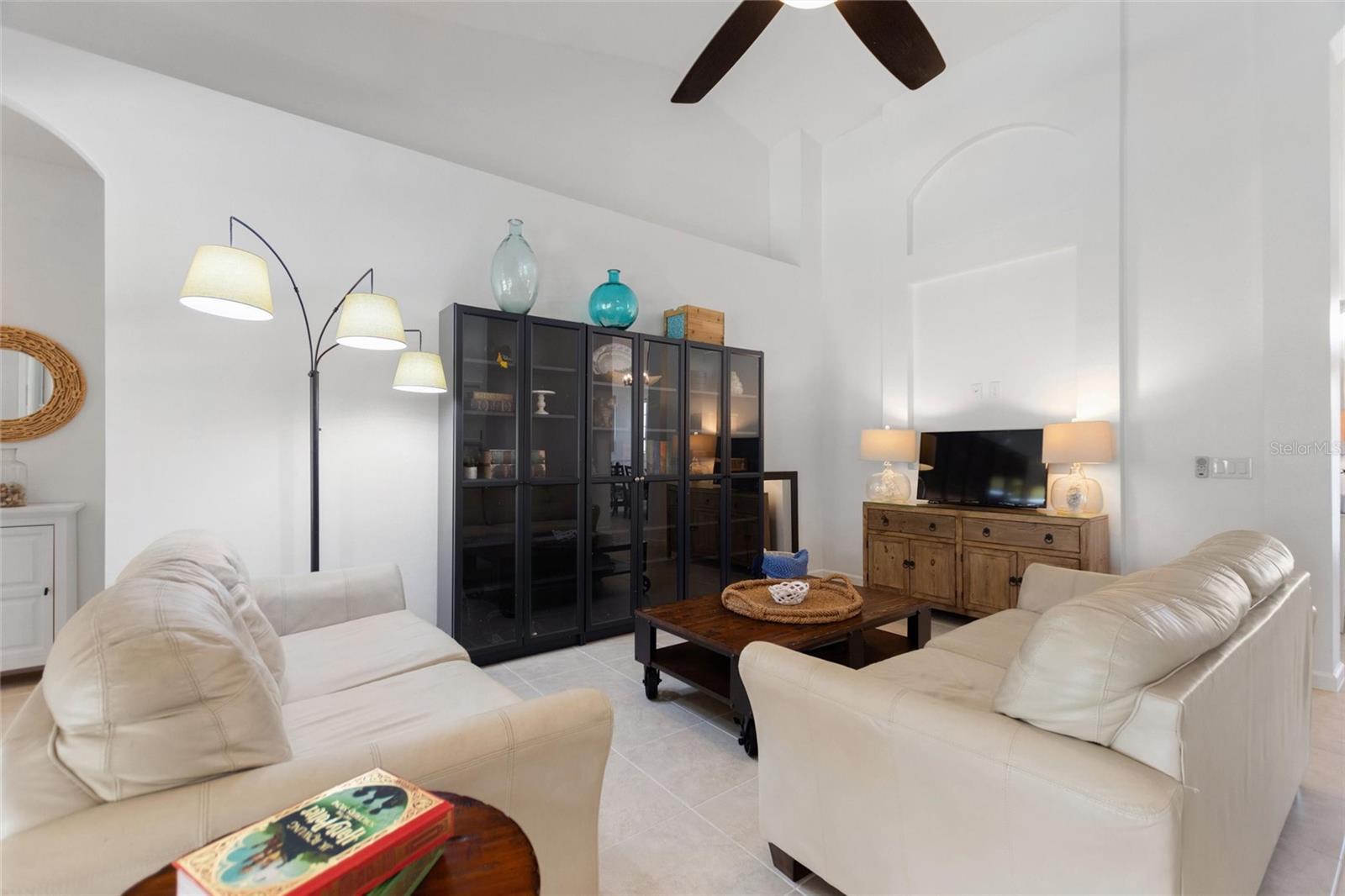 Welcome to this stunning, single-level 5-bedroom home, where every detail is crafted for both comfort and style. The moment you step inside, vaulted ceilings and an open, airy layout invite you into a space perfect for both relaxation and lively gatherings. The formal dining room, which seats eight, flows seamlessly into a spacious living area designed for entertaining, while the sparkling, fully equipped kitchen and chic bar area ensure you’re always at the heart of the action. Outside, an expansive pool deck surrounds the oversized 15’x30’ pool, offering space for six lounge chairs, two dining tables for ten, and a cozy outdoor living room under roof, complete with a wall-mounted TV. A sleek, remote-controlled retractable Venetian-style awning adds a touch of luxury to your outdoor experience, making this home ideal for enjoying both quiet mornings and fun-filled afternoons with family and friends. Perfectly maintained and filled with flawless, timeless furnishings, this home offers a sleek yet laid-back vibe, creating the perfect retreat for both residents and guests. Impeccable care has been given to every aspect of this home, making it truly one of a kind. Beyond the home, you’ll find yourself in a vibrant community known for its fun, resort-style amenities. Whether you’re floating along the Lazy River, zipping down the Resort Slide, playing volleyball in the pool, or enjoying a match on the tennis courts, the options for recreation are endless. The clubhouse offers a fitness center and an on-site café, making it easy to embrace an active, social lifestyle. And just minutes away, you’ll find championship golf courses, fabulous restaurants, and shopping, providing the ultimate in convenience and entertainment. This home and community strike the perfect balance between sophistication and fun, making it an ideal place to live, relax, and entertain.