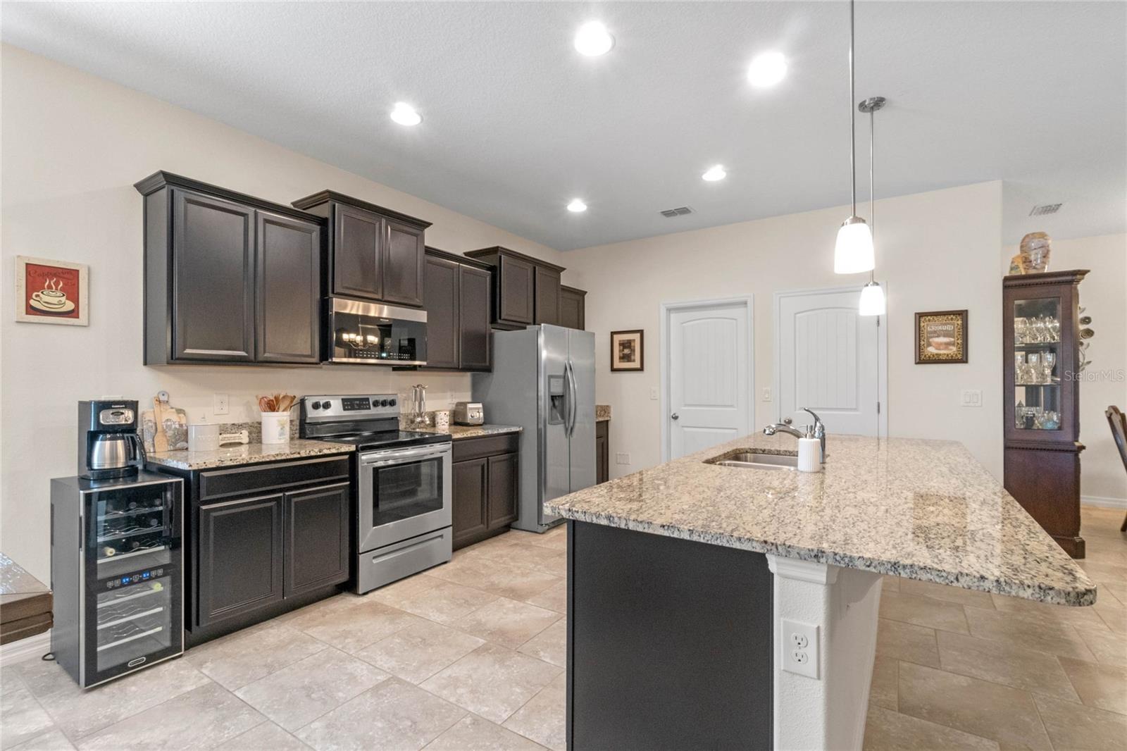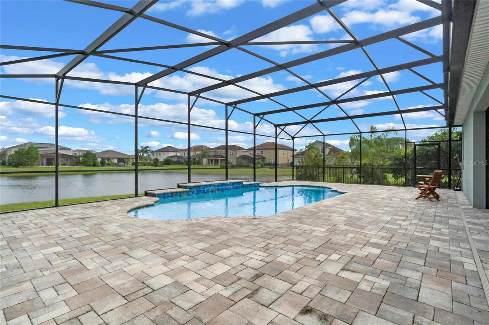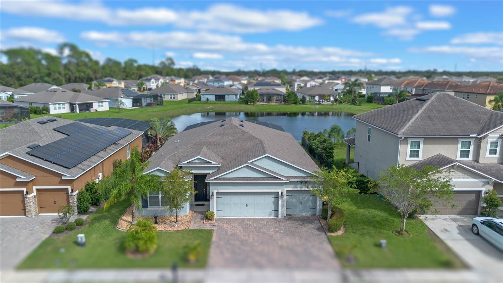 Welcome to 226 Brunswick Drive, a stunning 4-bedroom, 3-bathroom home in the heart of Davenport, Florida, offering luxury living in a serene water lot setting with no rear neighbors. As you approach, you'll appreciate the spacious 3-car garage, providing ample parking and storage. Upon entering, the open floorplan immediately invites you in, with an expansive layout perfect for both relaxation and entertainment. The gourmet kitchen, featuring a massive center island, becomes the hub for gatherings, making it ideal for hosting friends and family. The split floorplan ensures maximum privacy, with bedrooms thoughtfully placed to create functional spaces for everyone. The living areas are adorned with sleek tile flooring, offering a modern and cohesive look throughout. Each of the four bedrooms is generously sized, providing plenty of room to unwind. The master suite serves as a personal retreat, with its own private access to the pool area. The en-suite bathroom boasts a relaxing garden tub, double sinks, and plenty of counter space, offering a spa-like experience. Step outside to discover the highlight of this home—an enclosed extended patio with a gorgeous saltwater pool, perfect for cooling off on hot Florida days. The entire backyard is fully enclosed, offering privacy and the ideal space for outdoor dining or lounging, with tranquil water views as your backdrop. With no rear neighbors, this peaceful oasis becomes your own private paradise. This home combines the best of indoor and outdoor living, making it a must-see for anyone seeking a blend of comfort, style, and seclusion in the heart of Davenport. This home is situated Providence which is award winning. The community hosts many events from food truck nights, to bingo nights! There are two pools, one Jr Olympic, the other a zero entry with slides, gorgeous fitness center, dog park, playground, sidewalks throughout, and the neighborhood is golf cart friendly. It is also 24 hour guard gated and there is a beautiful golf course winding throughout. The community also has the Blue Heron restaurant and bar that has views of the course! Great place to live and play!