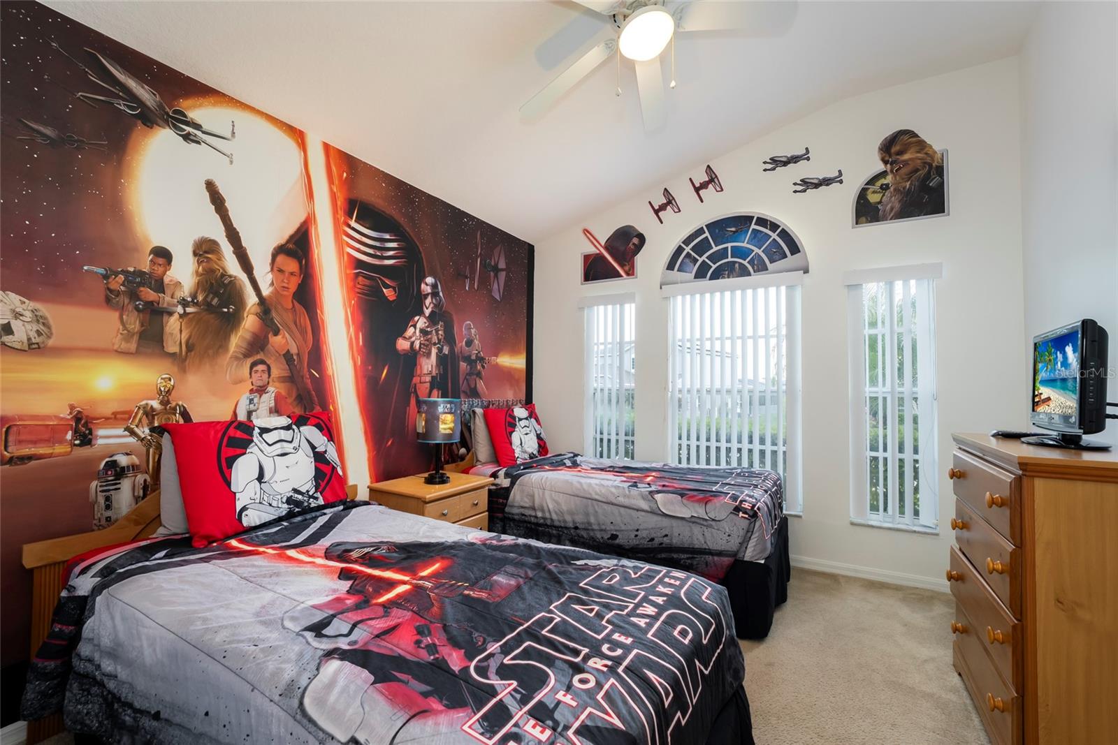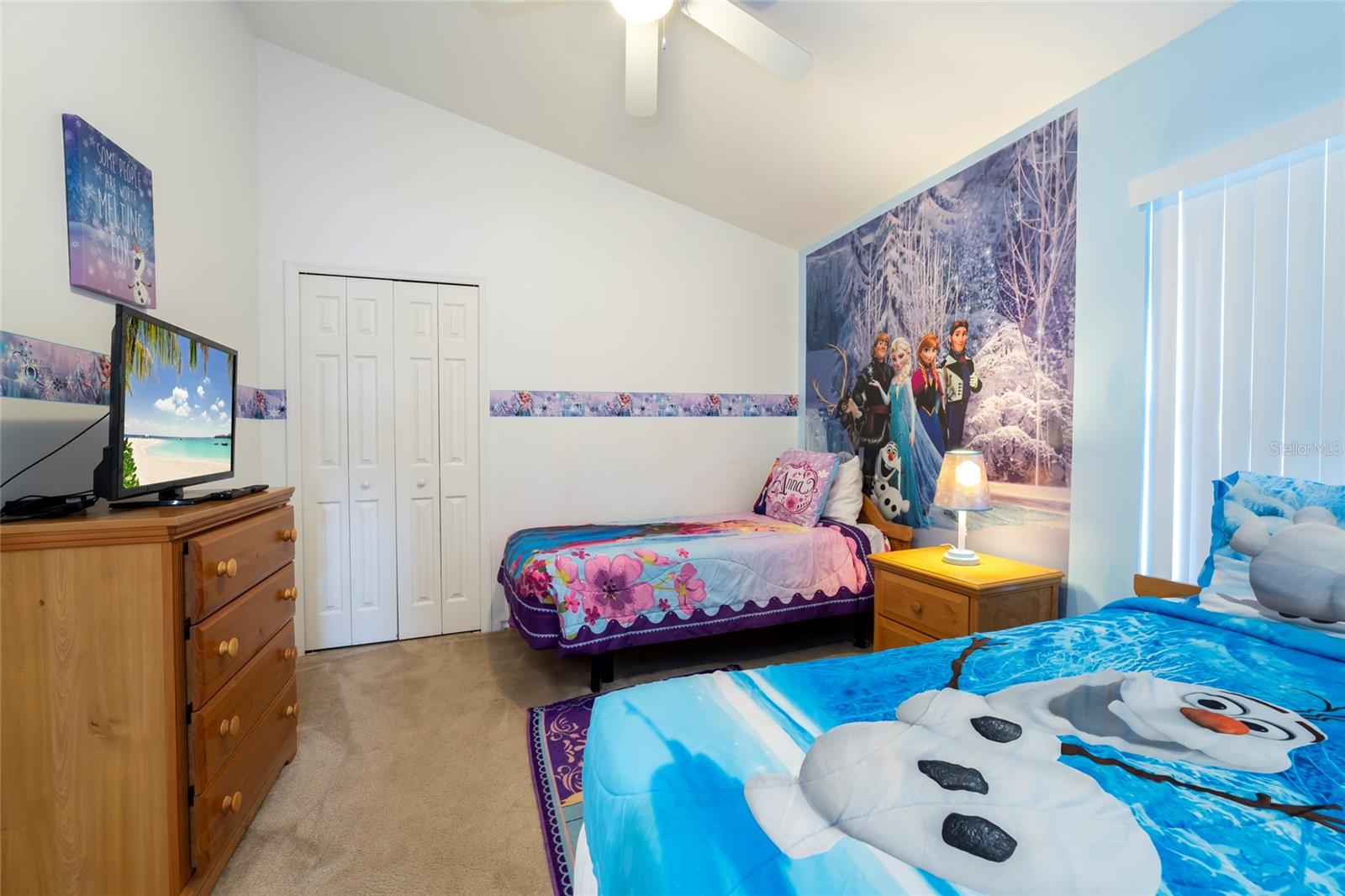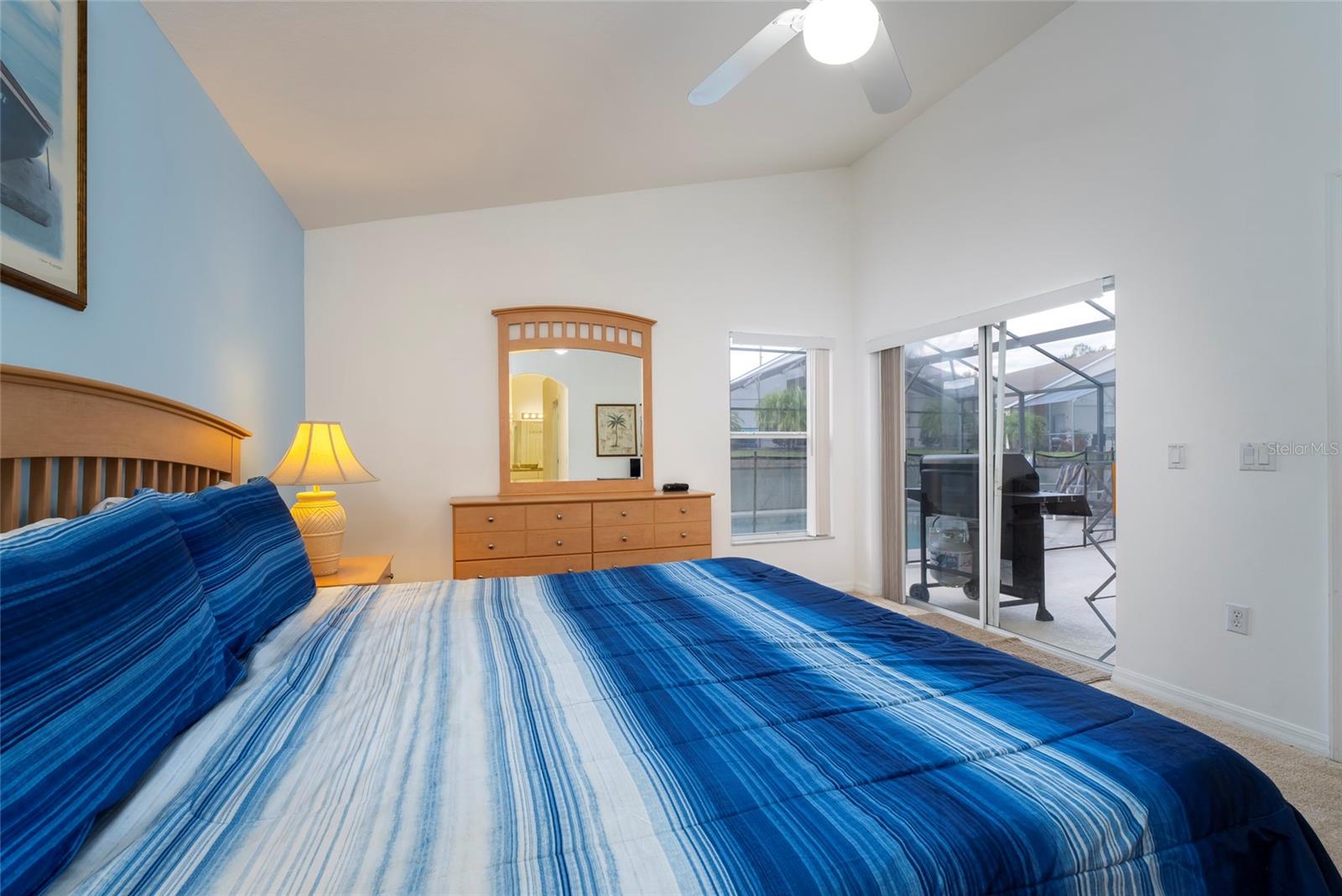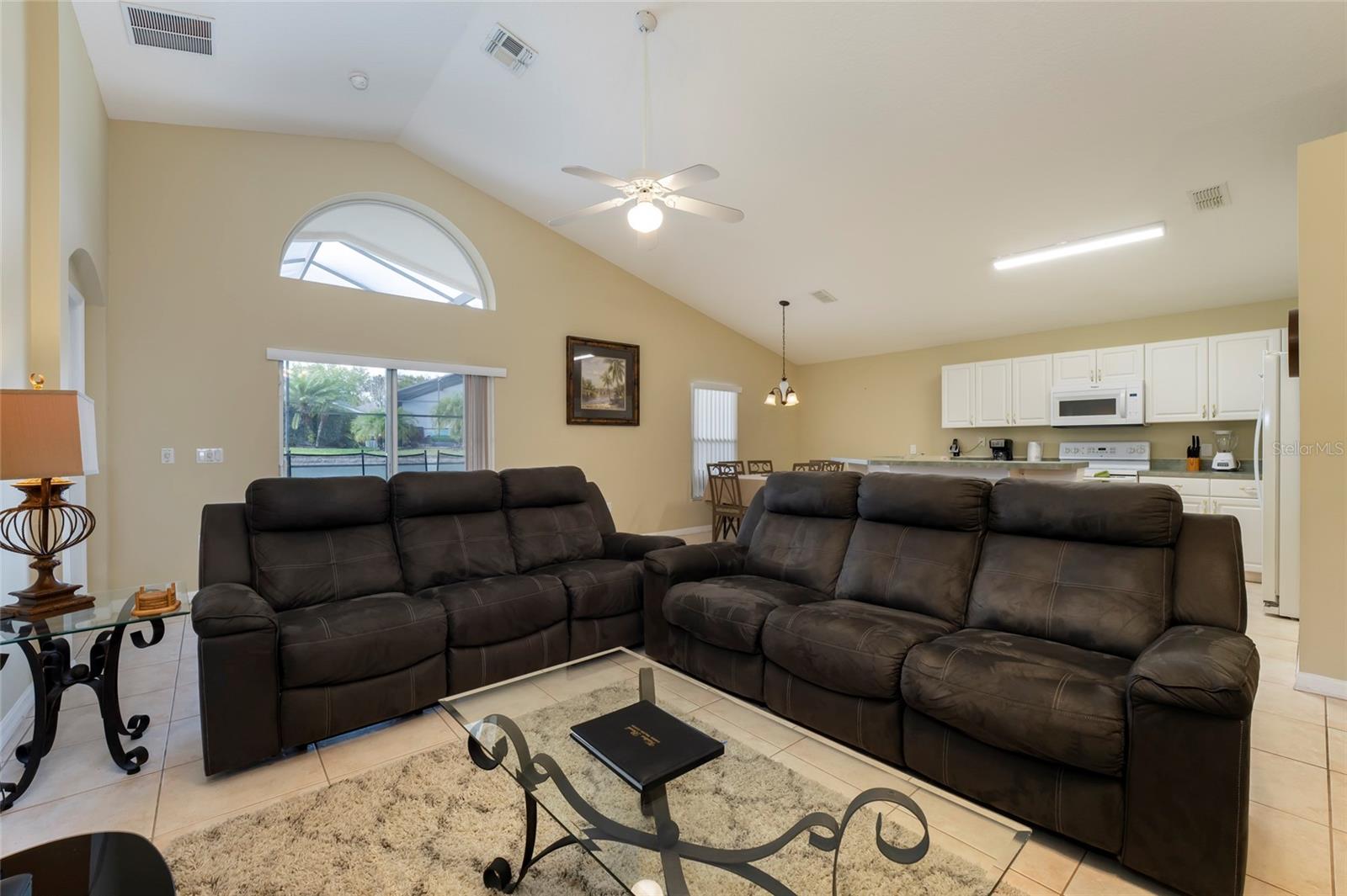 Great location for your vacation home purchase or residence. 4-bedrooms and 3 baths on a single level in a gated community, located just moments from popular theme parks. This property comes fully furnished with rentals in place that may convey with sale. The spacious layout features a distinct dining area separate from the kitchen, complemented by a cozy breakfast nook for casual meals. A conveniently located bathroom serves the pool area, enhancing the indoor-outdoor living experience. The thoughtful split floorplan ensures privacy for all guests, while the primary bedroom boasts an en-suite bathroom with double vanities, a garden tub, and a walk-in shower. Outdoors, you can unwind in both the community pool and your own private, heated, and enclosed pool and spa, perfect for year-round relaxation. New roof 09/2024