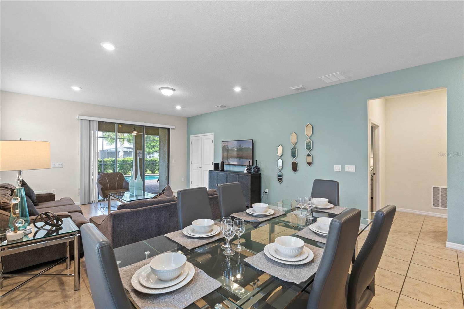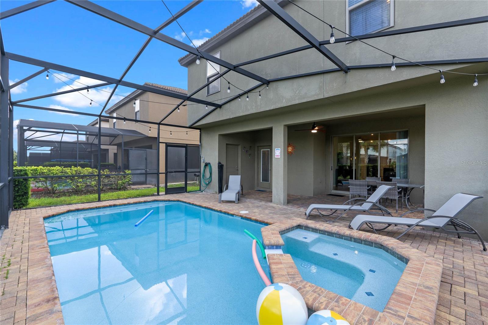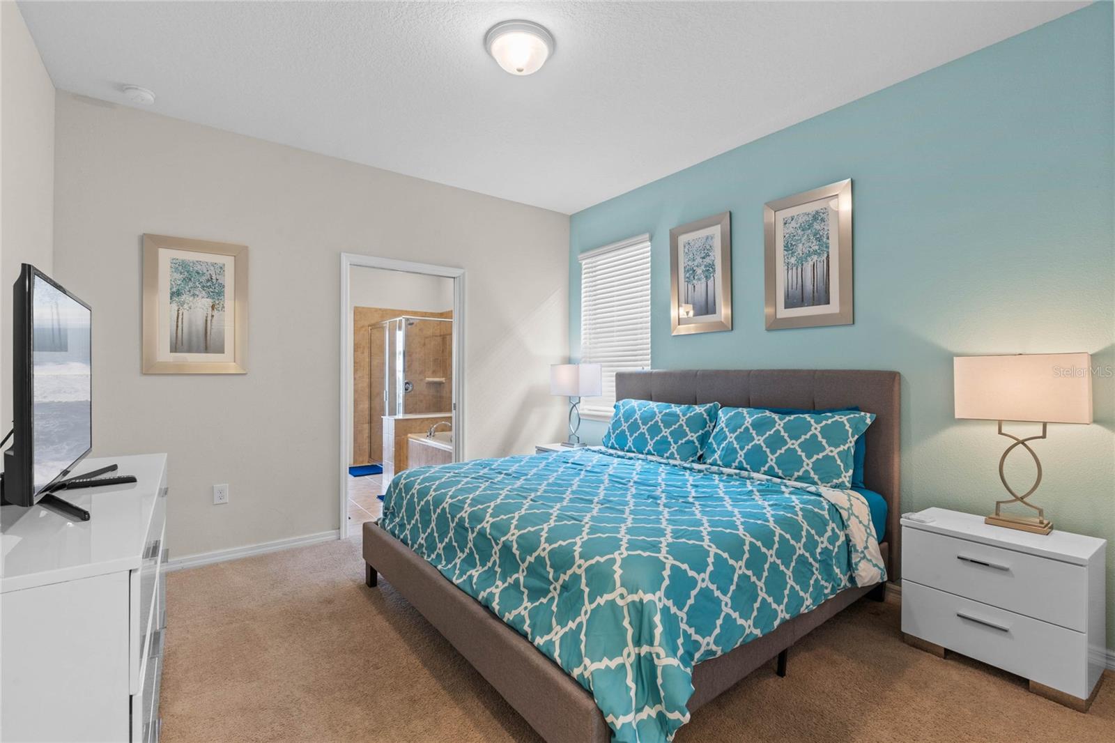 You have found it!!!!! This is an amazing 7 bed, 5.5 bath home in the exclusive Solterra resort. Currently being used as a vacation home, this wonderful home has been professionally decorated and no expense has been spared to make it a very special place to stay. With a wonderful floor plan...the home has a lovely flow.... as you enter through the lobby, there is a bright and airy kitchen with stainless steel appliances and granite worktops, the large island/ breakfast bar is a great place to sit with a cup of coffee in the morning and plan the day, the dining area leads into the large open plan living area that overlooks the sunny pool deck. This home has two master suites, one downstairs and one upstairs, the large master suite downstairs has an ensuite bathroom, with dual vanities and also access to the pool deck. Upstairs the primary bedroom also has a large spa like bathroom; Bedroom 3 is also ensuite, Bedroom 4 & 5 share a bathroom. All the bedrooms are stylishly decorated and a good size, the two themed twin bedrooms will delight the younger visitors and these twin rooms also share a bathroom. The large loft upstairs is spacious and comfortable and is a great extra living space. Back downstairs, the sunny pool deck has a lanai that allows for al fresco dining and the sparkling blue pool and spa is a great place to cool off after topping up your tan. The garage has been converted into a fabulous games room with a Star Wars theme, the perfect place for all ages!! Solterra is an exclusive community close to shops, restaurants and the world-famous Florida theme parks. HOA fees include Internet, Yard maintenance, Trash, 24-hour guard & use of the facilities/ amenities. The amenities in this guard gated community include a 5600 sq.ft. clubhouse, Beach entry resort-style pool complete with a waterslide, lazy river, and water playground. The poolside bar & grill lounge serves food for poolside dining as you relax, there is also a fitness center, tennis courts, and the Solterra Club Trail. If you are looking for a short term rental home then you can't miss this one!!! This is a fabulous home, it is being sold as you see it…. fully furnished. Call for a showing today.