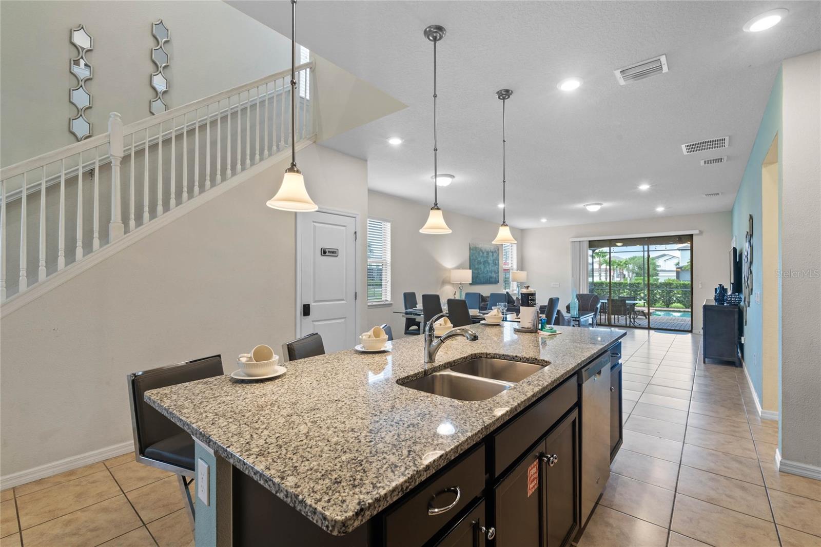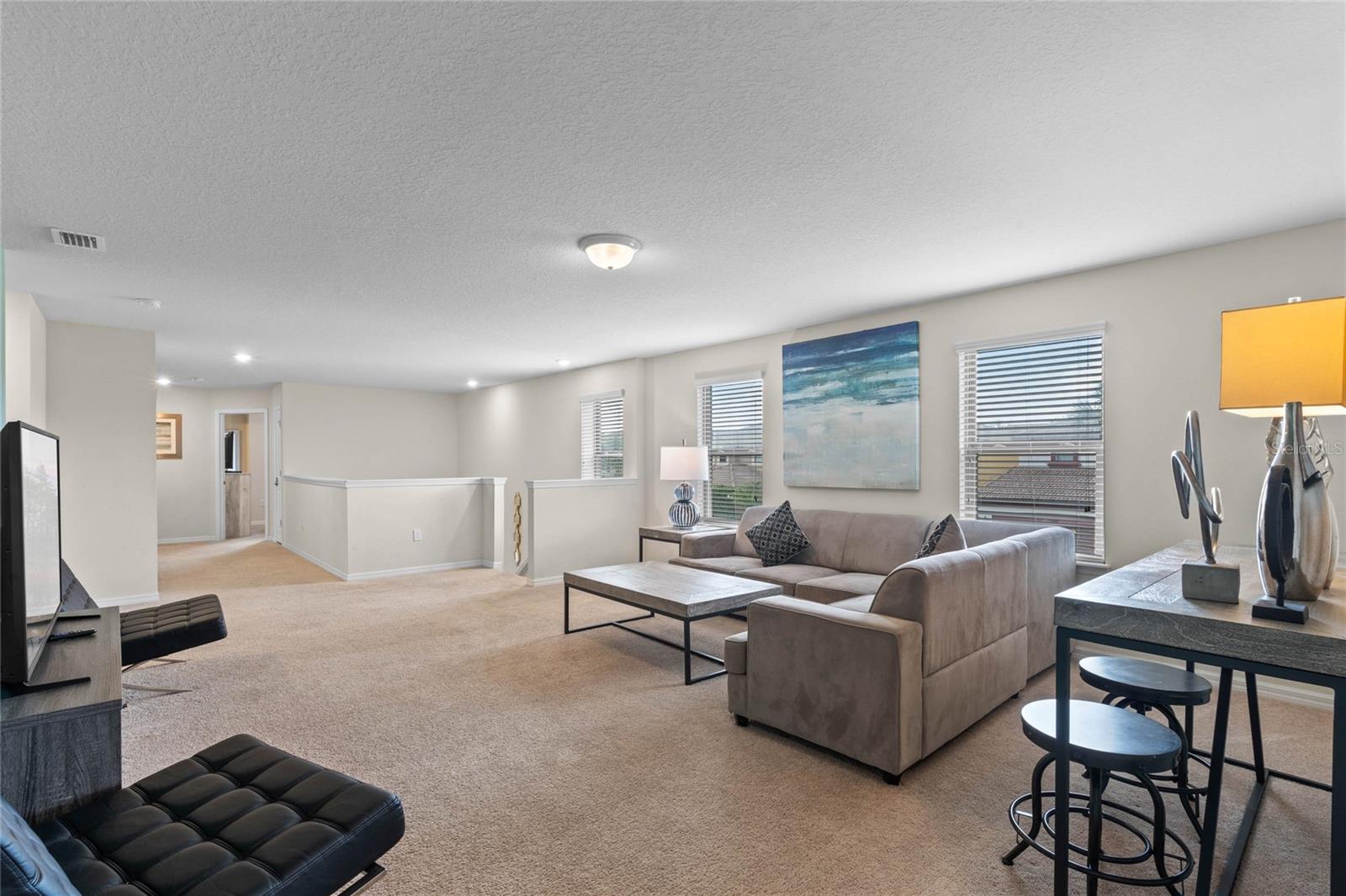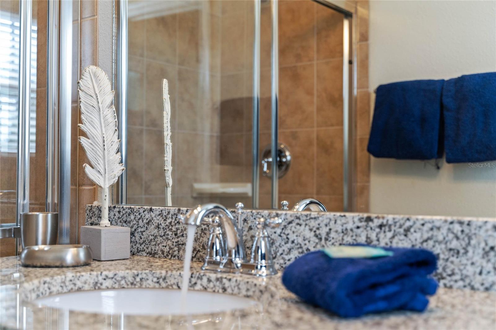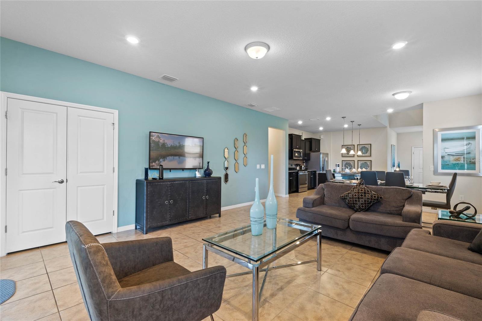 You have found it!!!!! This is an amazing 7 bed, 5.5 bath home in the exclusive Solterra resort. Currently being used as a vacation home, this wonderful home has been professionally decorated and no expense has been spared to make it a very special place to stay. With a wonderful floor plan...the home has a lovely flow.... as you enter through the lobby, there is a bright and airy kitchen with stainless steel appliances and granite worktops, the large island/ breakfast bar is a great place to sit with a cup of coffee in the morning and plan the day, the dining area leads into the large open plan living area that overlooks the sunny pool deck. This home has two master suites, one downstairs and one upstairs, the large master suite downstairs has an ensuite bathroom, with dual vanities and also access to the pool deck. Upstairs the primary bedroom also has a large spa like bathroom; Bedroom 3 is also ensuite, Bedroom 4 & 5 share a bathroom. All the bedrooms are stylishly decorated and a good size, the two themed twin bedrooms will delight the younger visitors and these twin rooms also share a bathroom. The large loft upstairs is spacious and comfortable and is a great extra living space. Back downstairs, the sunny pool deck has a lanai that allows for al fresco dining and the sparkling blue pool and spa is a great place to cool off after topping up your tan. The garage has been converted into a fabulous games room with a Star Wars theme, the perfect place for all ages!! Solterra is an exclusive community close to shops, restaurants and the world-famous Florida theme parks. HOA fees include Internet, Yard maintenance, Trash, 24-hour guard & use of the facilities/ amenities. The amenities in this guard gated community include a 5600 sq.ft. clubhouse, Beach entry resort-style pool complete with a waterslide, lazy river, and water playground. The poolside bar & grill lounge serves food for poolside dining as you relax, there is also a fitness center, tennis courts, and the Solterra Club Trail. If you are looking for a short term rental home then you can't miss this one!!! This is a fabulous home, it is being sold as you see it…. fully furnished. Call for a showing today.