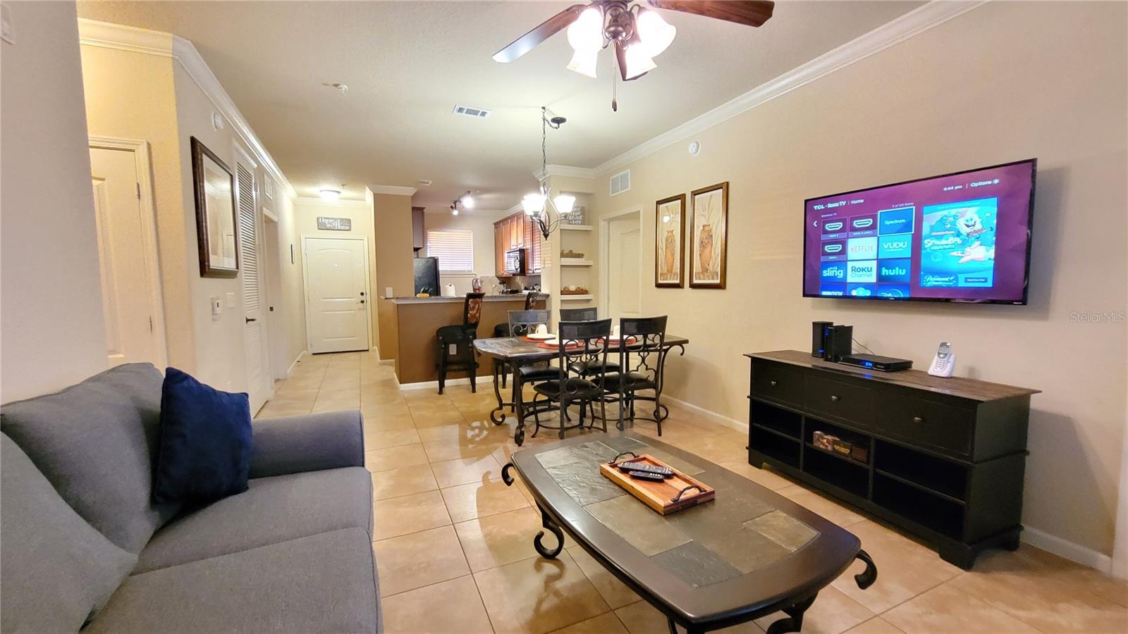 FULLY FURNISHED!!! 3 Bed, 3 bath, extremely well taken care of. Very Quiet top floor Tuscan style unit with Elevators and 15 MIN FROM DISNEY PARKS! All TV are upgraded smart tv, installed wall mount, with hidden wires to have an extremely clean appearance. Spectrum TV, Netflix, Amazon Prime, and all apps for smart TV. Three baths, so no fighting over that long bath after a frantic day out. Extremely upgraded units with Granite Counter tops, actual wood cabinets, crown molding, nice tile through-out house and carpets in bedrooms. Use for resident or even short term rental which makes this a great investment property. Current management company has future bookings already in place if desired as vacation home and will come highly recommended by owner. This Unit is extremely well taken care of and a must see. There are 2 resort style heated community pools, with bathrooms for both men and women, that will be enjoyable to the entire family when staying at the Bella Piazza Resort. There is a kiddie pool with a water playground, a fitness center, business center, game room, BBQ area and on site manager. Publix grocery store and restaurant dining are just steps away! AND DON'T FORGET YOU ARE NOT FAR FROM THE PARKS AND OTHER FUN FAMILY ACTIVITIES. JUST BRING YOUR TOOTHBRUSH AND SWIMSUITS AND LET THE FUN BEGIN! Don’t miss this unit!