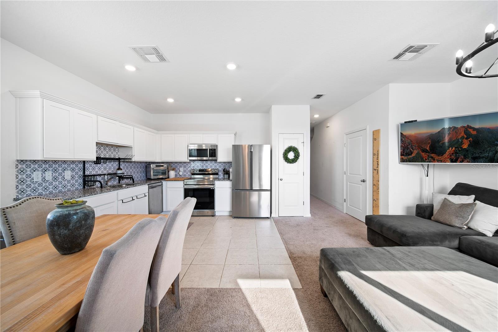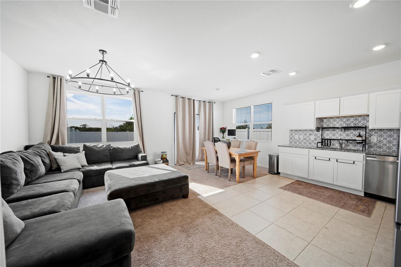 This gorgeous, 2023 townhome is an absolute dream! At 3 bedrooms, 2.5 bathrooms and situated in the highly sought-after neighborhood of Madison Place, there is something for everyone here, come inside and take a look! Driving up you will appreciate a corner lot, the lovely front porch and the spacious, attached one-car garage. As you step inside, soaring high ceilings greet you as well as cozy carpeting throughout. Just ahead you will find a convenient half bath on the way to the heart of the home, the airy, open living area. The kitchen is a chef’s dream, with stainless steel appliances, unique tile backsplash, granite countertops and plenty of cabinetry, you will be pleased as you host your next gathering in this beautiful and functional space! Upstairs you will find the primary suite, complete with a massive walk-in closet and attached en-suite with shower/tub combo. This space is bright and open with extra large windows and a stunning, chandelier light fixture. Down the hall you will find two more bedrooms and a shared bathroom giving you ample space for overnight guests or both would make a perfect office/den. Off the back you will find a shady concrete patio overlooking the private, fenced-in rear yard, perfect for summer barbecues, running around with your furry friends and spring gardening! Madison Place includes many wonderful amenities such as a nice nearby playground and a community pool with a covered seating area. Centrally located with easy access to HWY 27, close to shopping, dining, top-rated schools, and less than an hour away from many exciting attractions in the popular Orlando! Do not miss out on this rare opportunity to own a new home with nothing to do, just move in and enjoy! Call today to learn more and schedule your tour!
